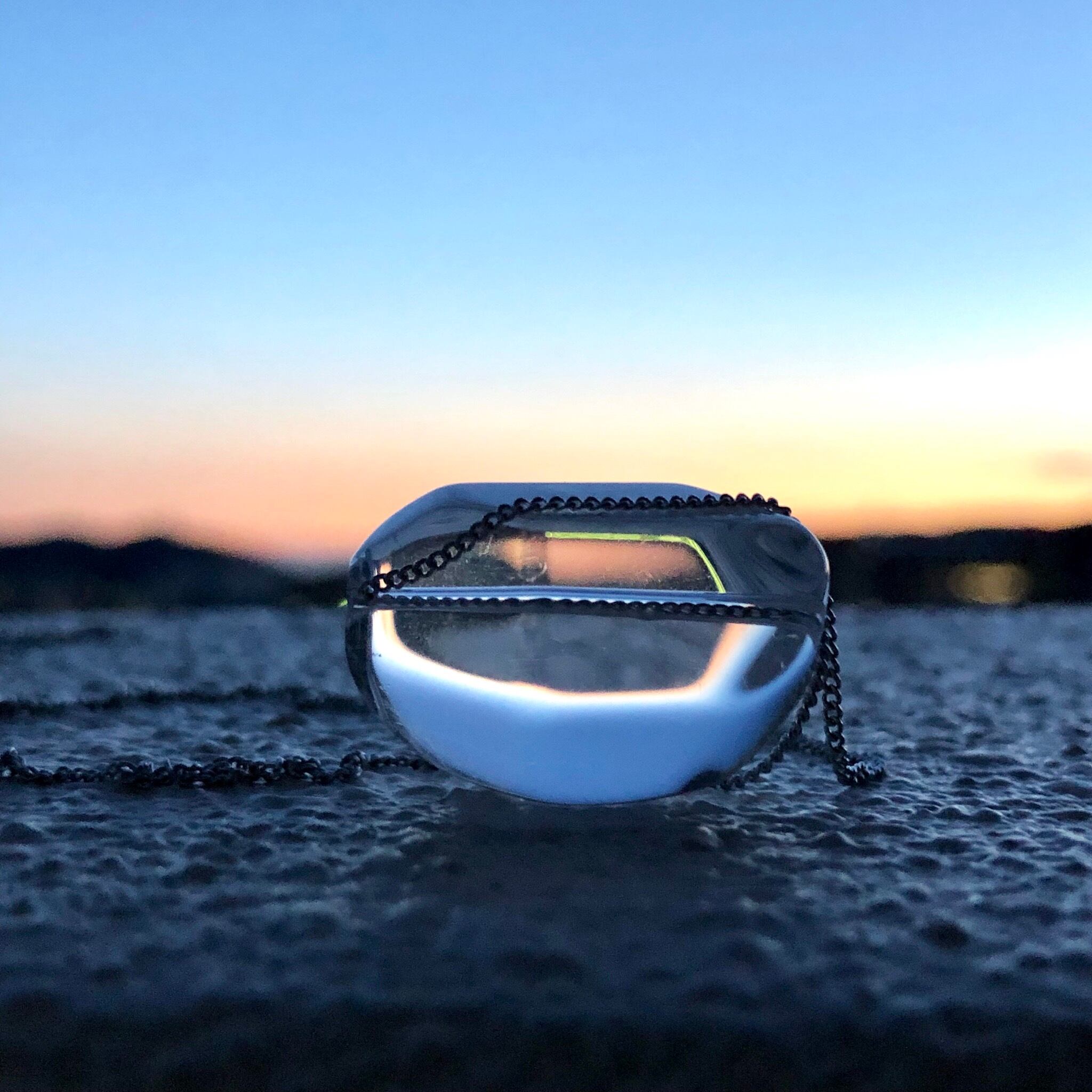 まるで氷のようなフォルムで、水晶玉の中にチェーンが透き通って見えるのが斬新で人気商品✨