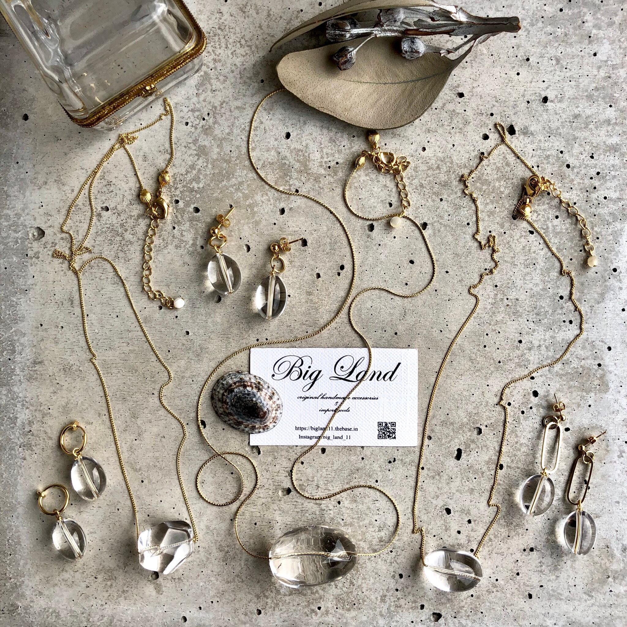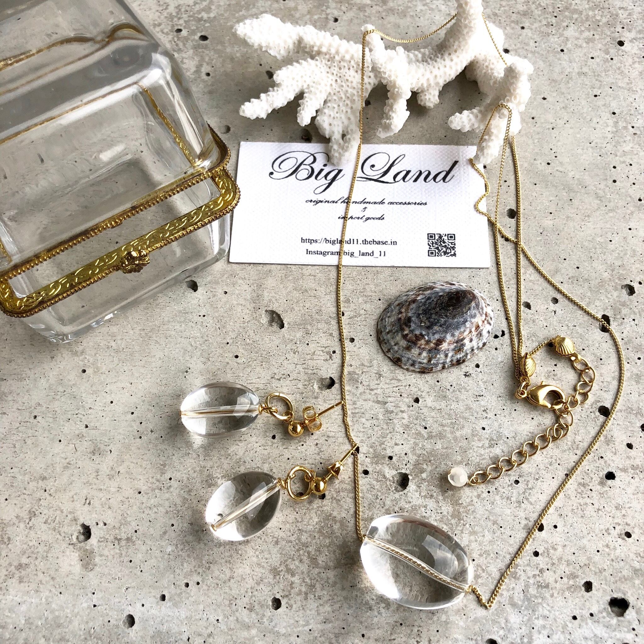 クリアカラーなので、どんなお洋服の色にも合わせれオールマイティーで水晶ネックレスとセットコーデもgood