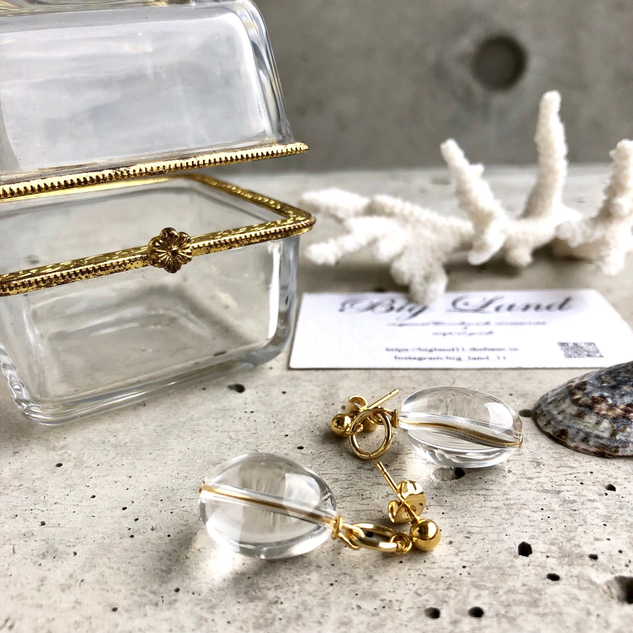 水晶ピアス (4月誕生石)