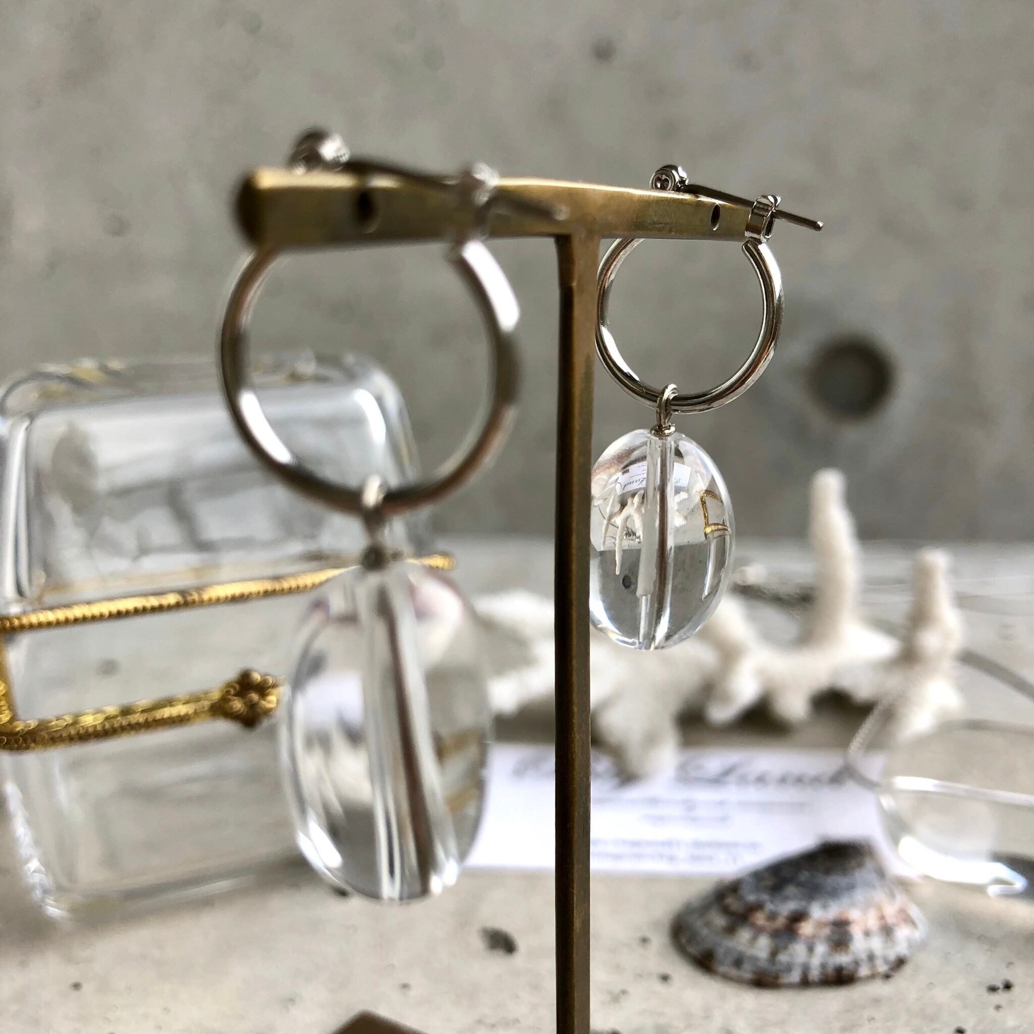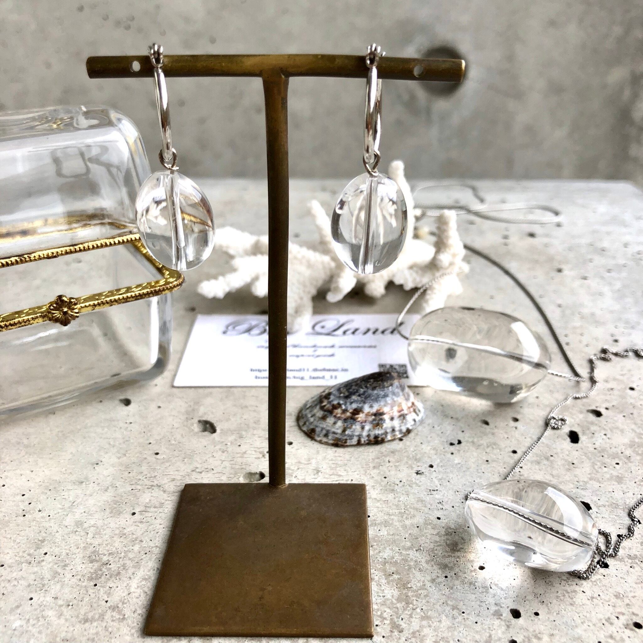 水晶ピアス チタンフープ (4月誕生石)