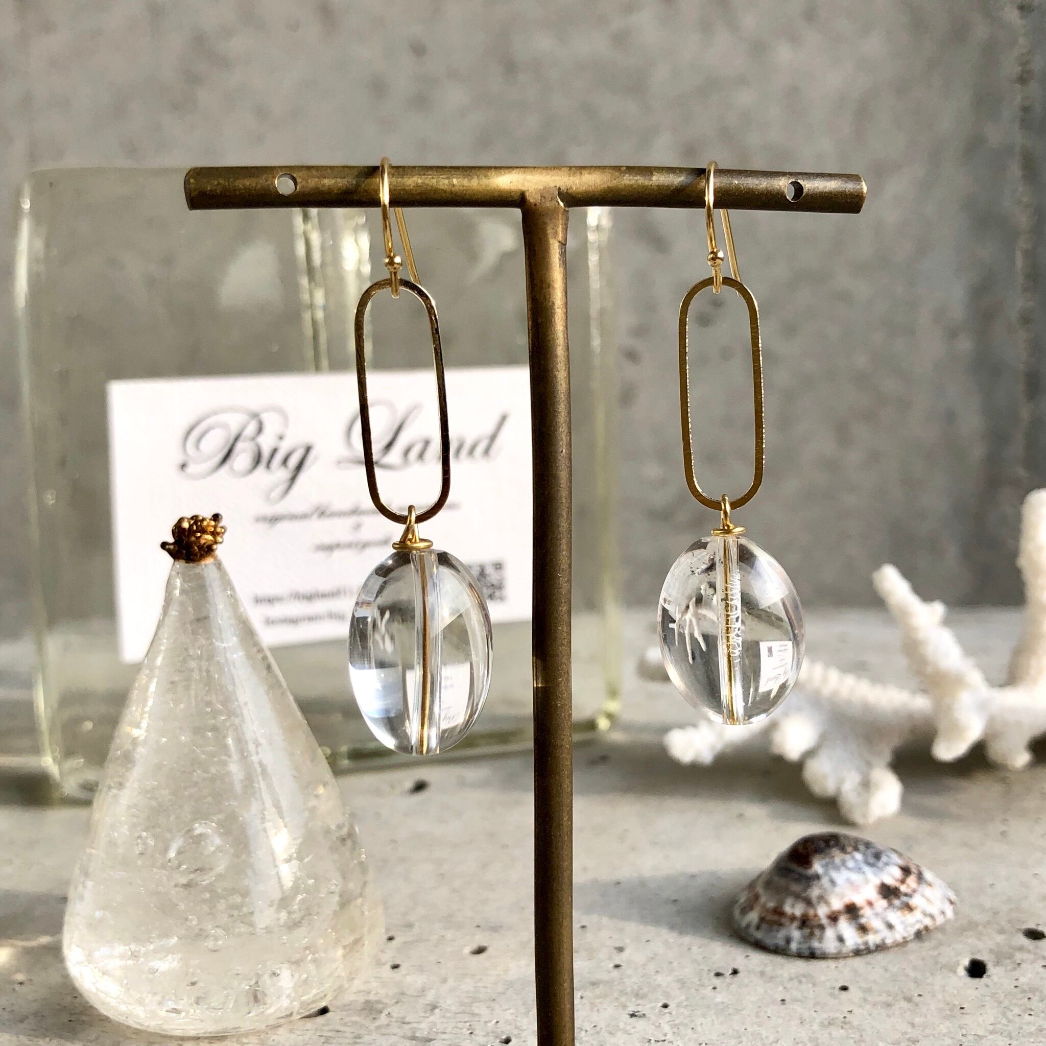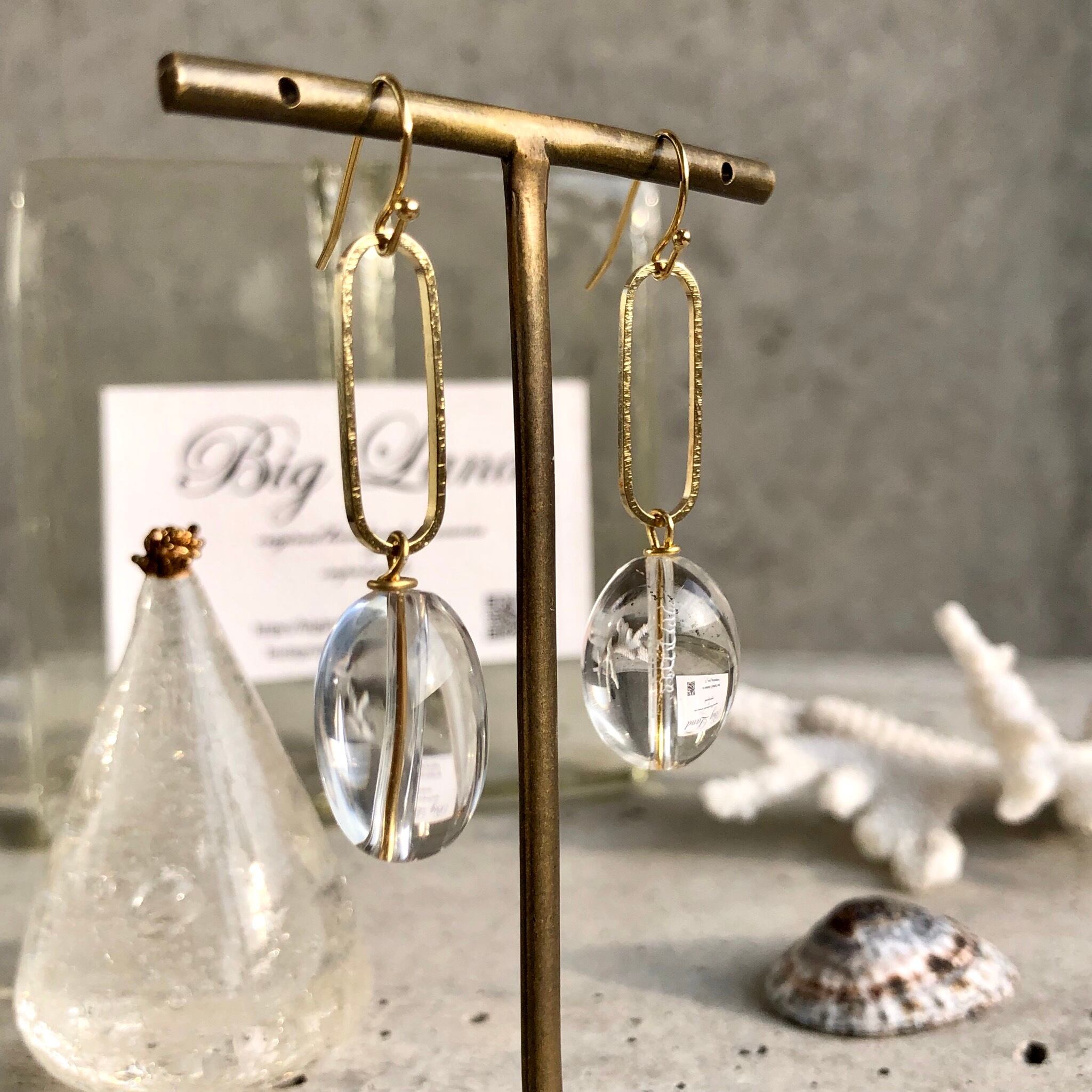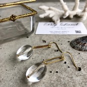 小ぶりな楕円タマゴ型が優しい雰囲気で少し長めのサイズにして揺れる事により水晶にキラキラと光が差し遊び心のあるデザインに仕上げました✨