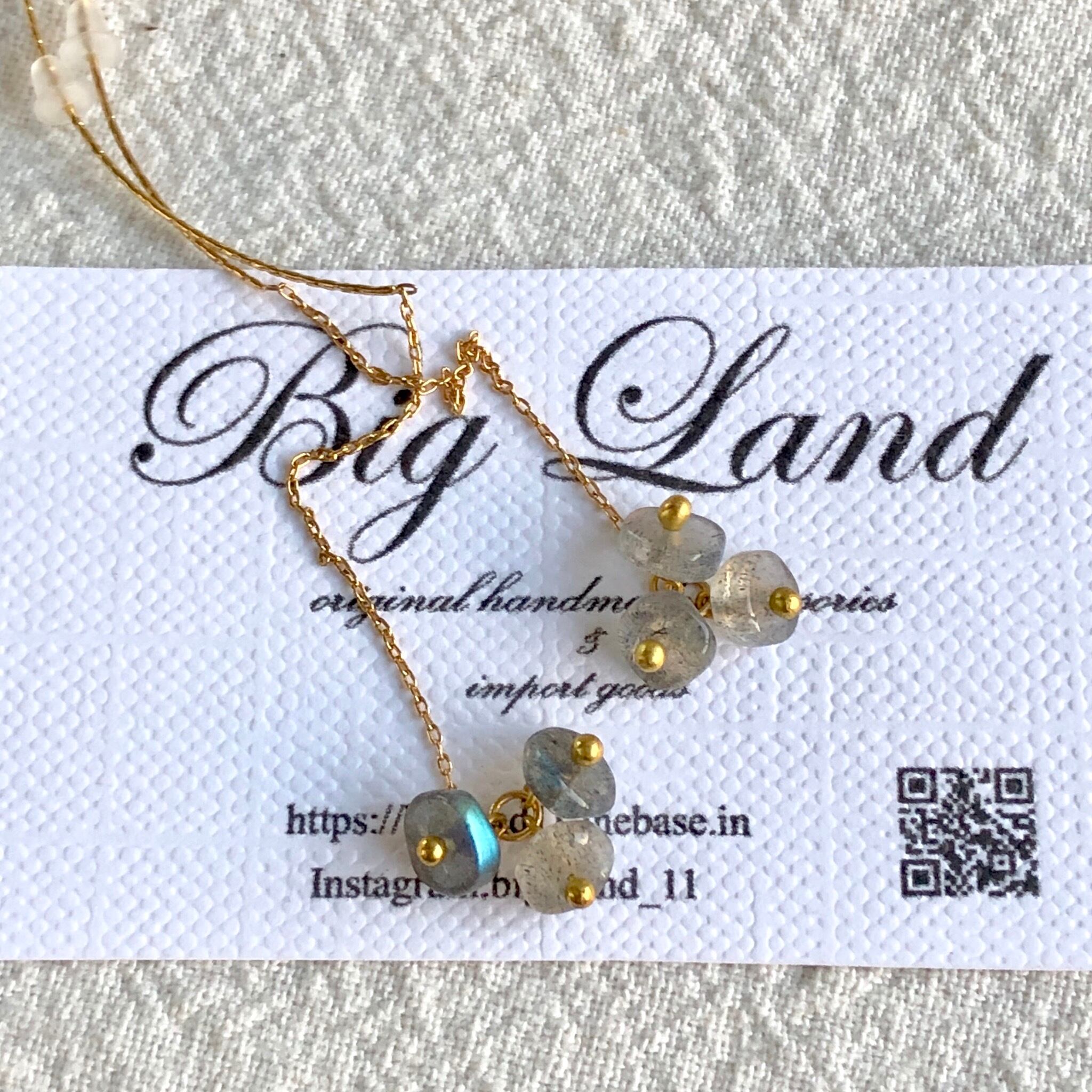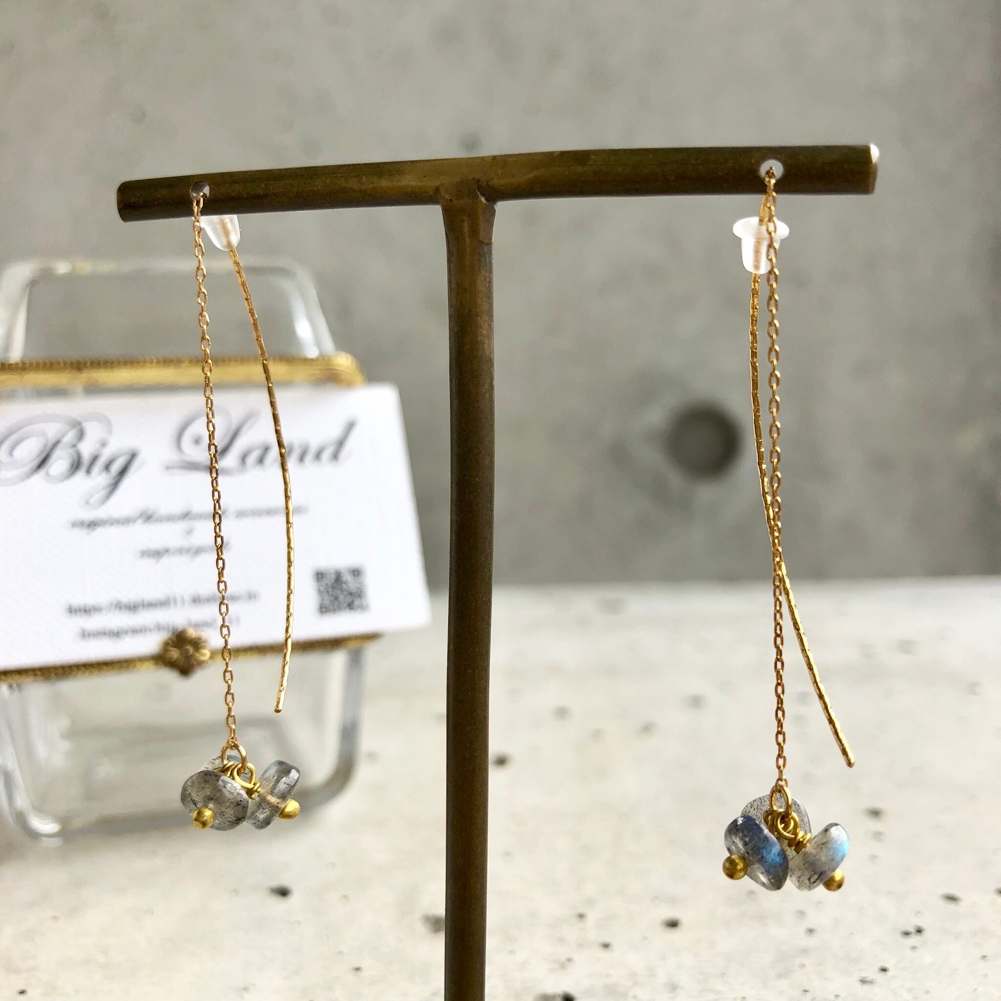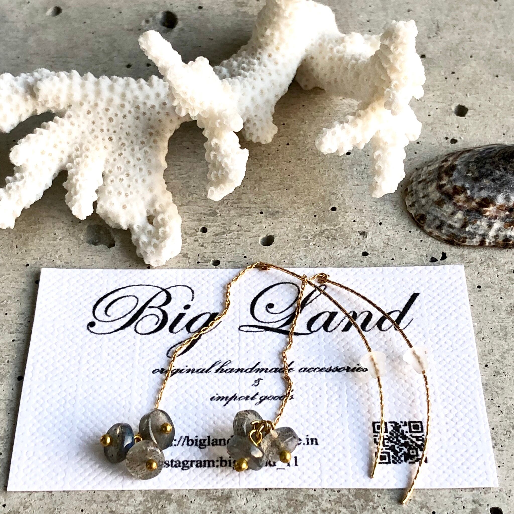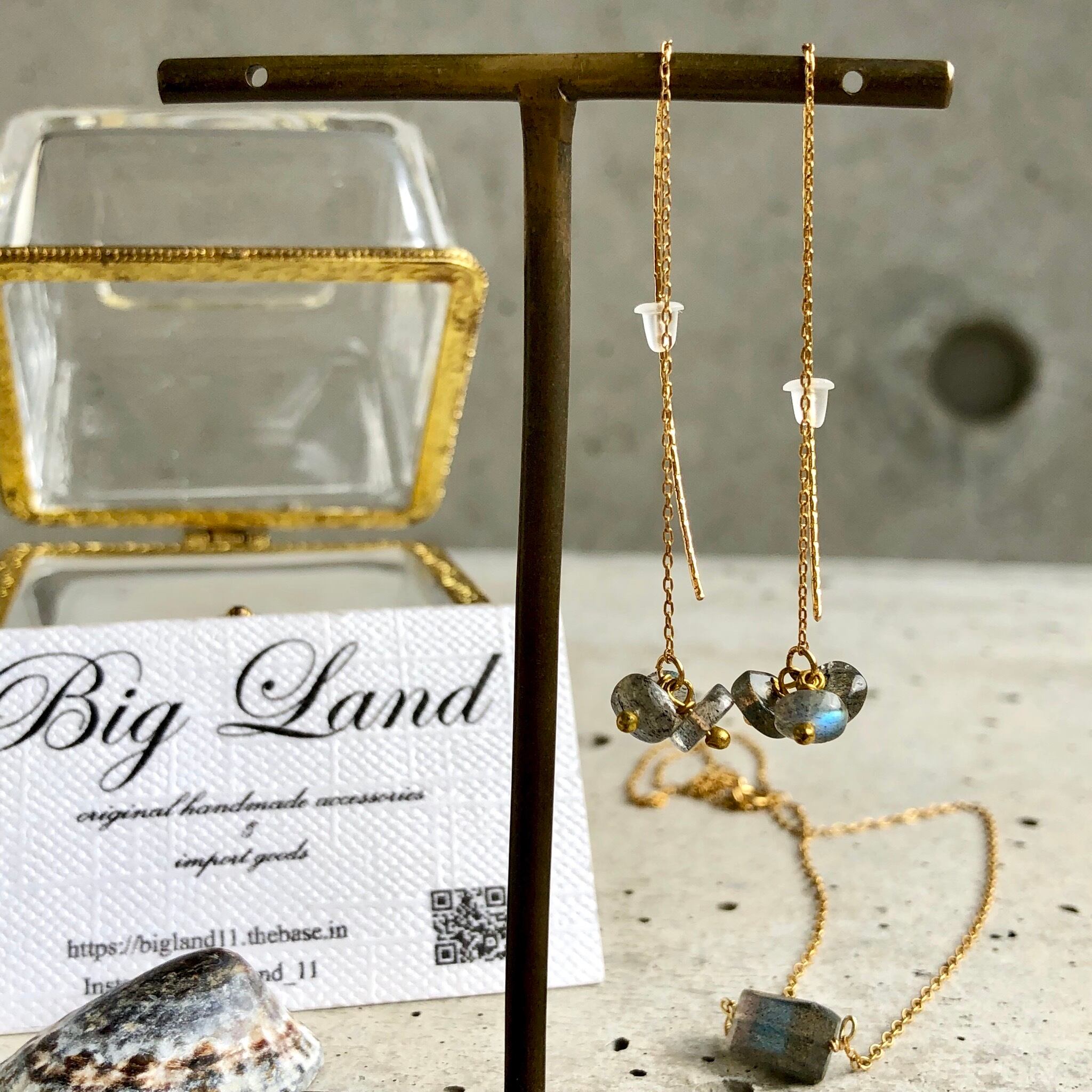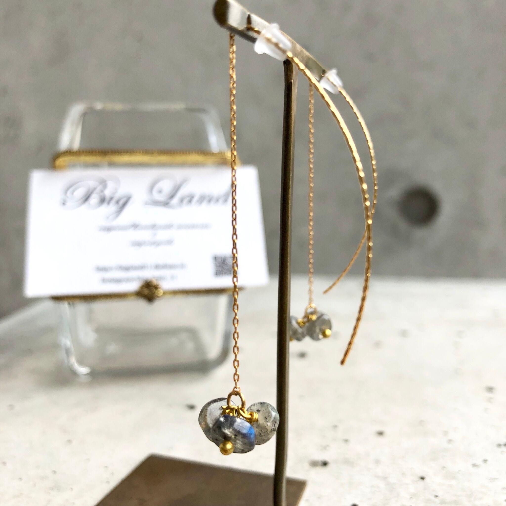 キラキラと色々な表情を見せてくれるラブラドライトならではの輝きに思わず溜息が出そうになります☺️✨華奢なデザインで揺れるピアスは女性らしくてモテピアス‼️