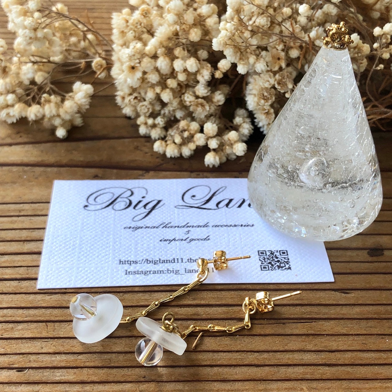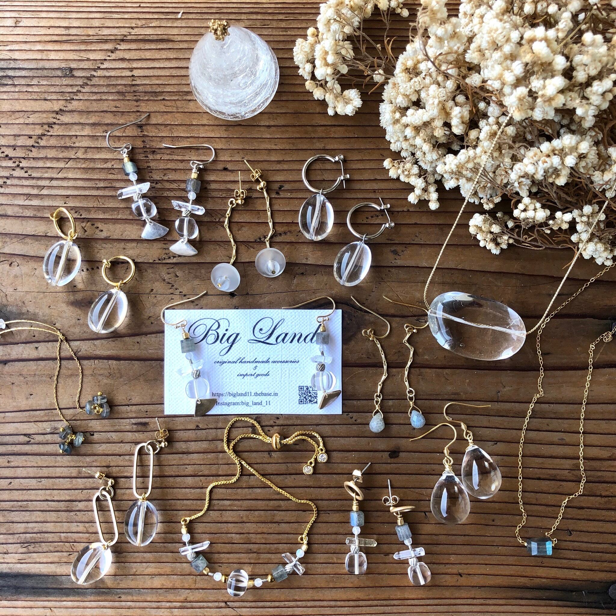 水晶に光が差し込むと大変神秘的でシンプルなクリア色は夏のカラフルなお洋服にも合わせ易いです‼️