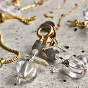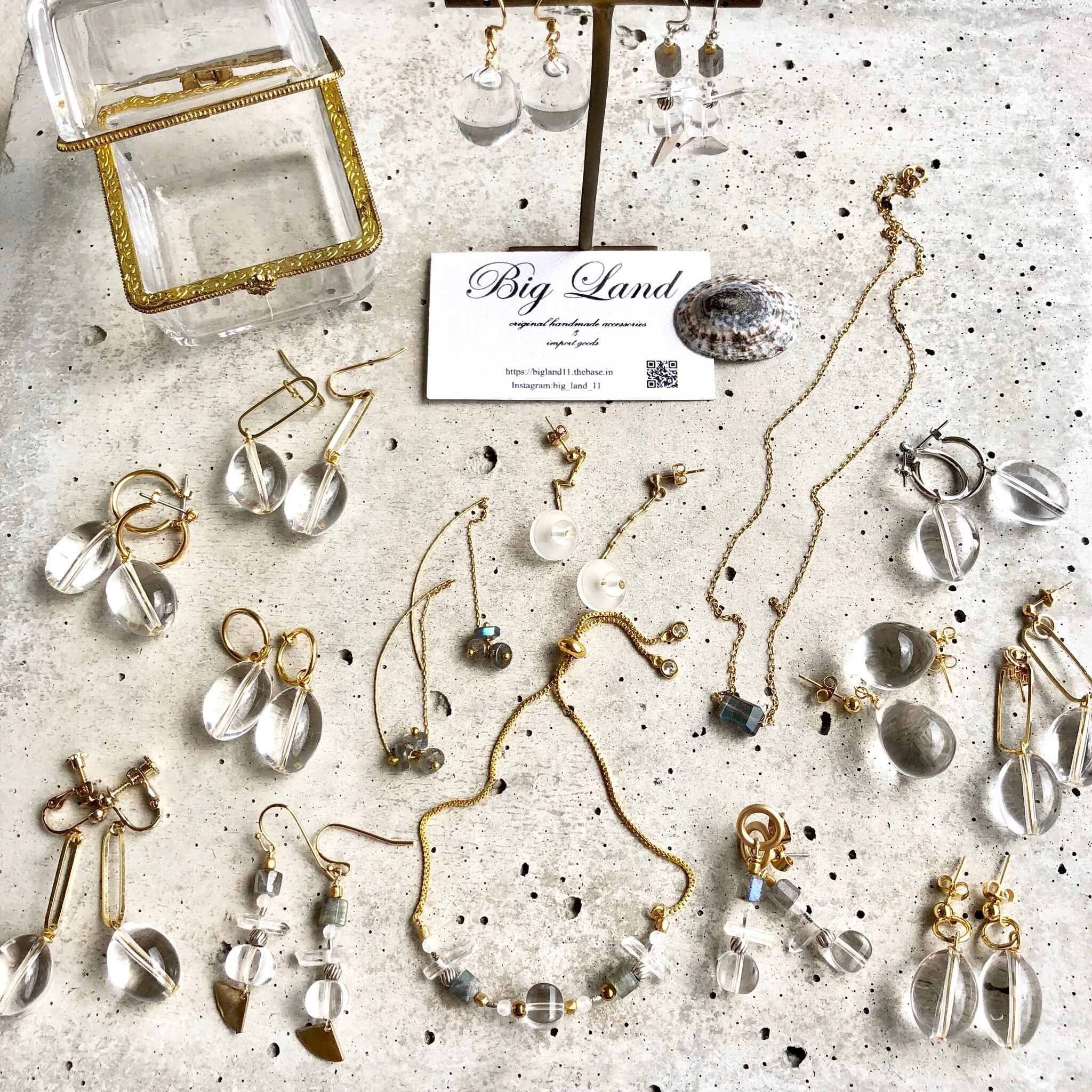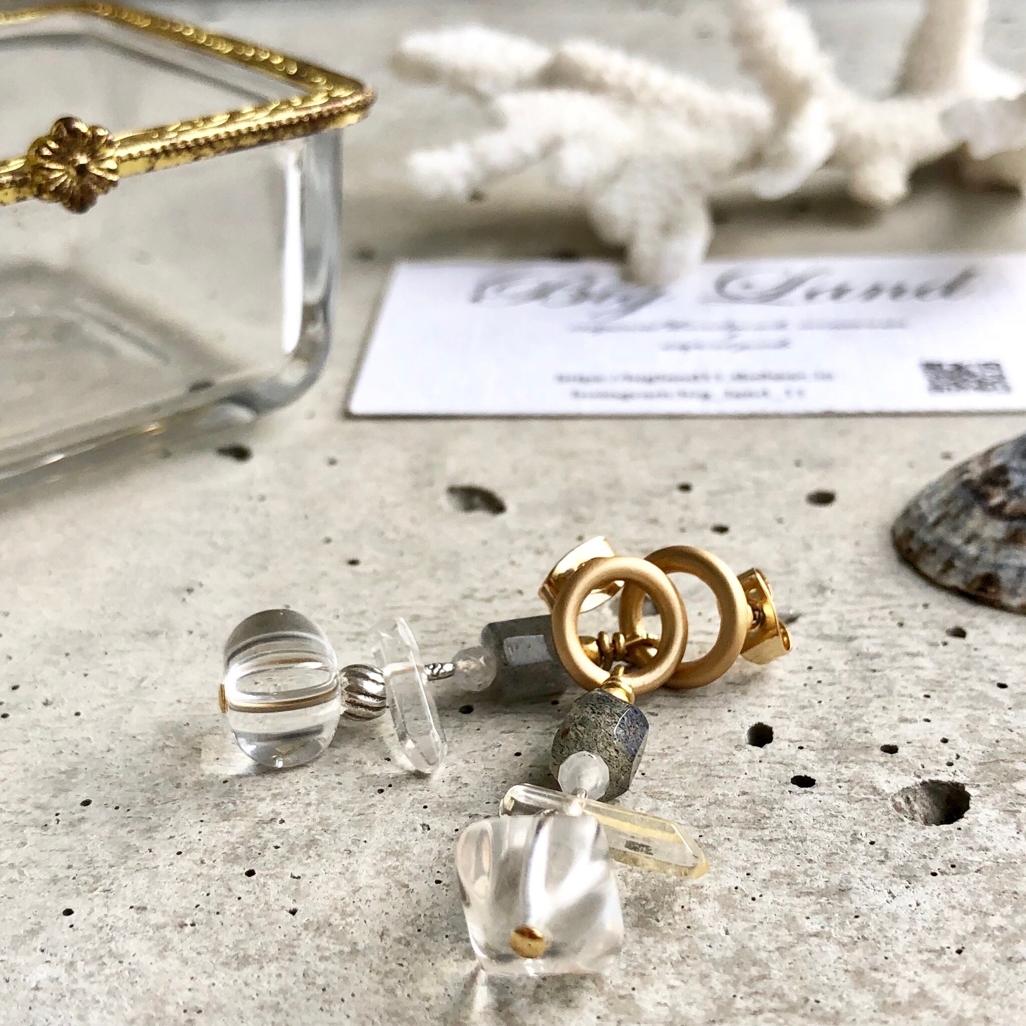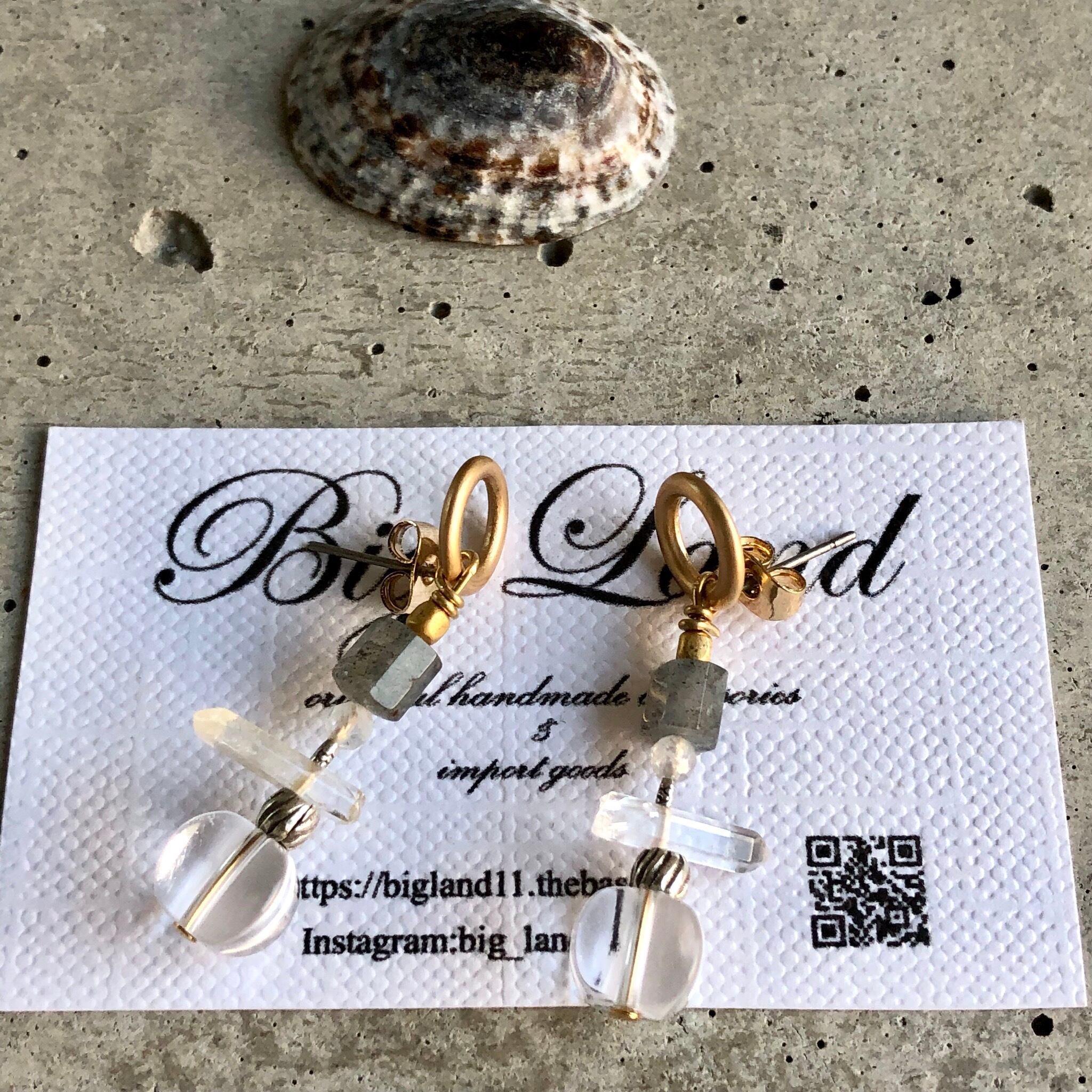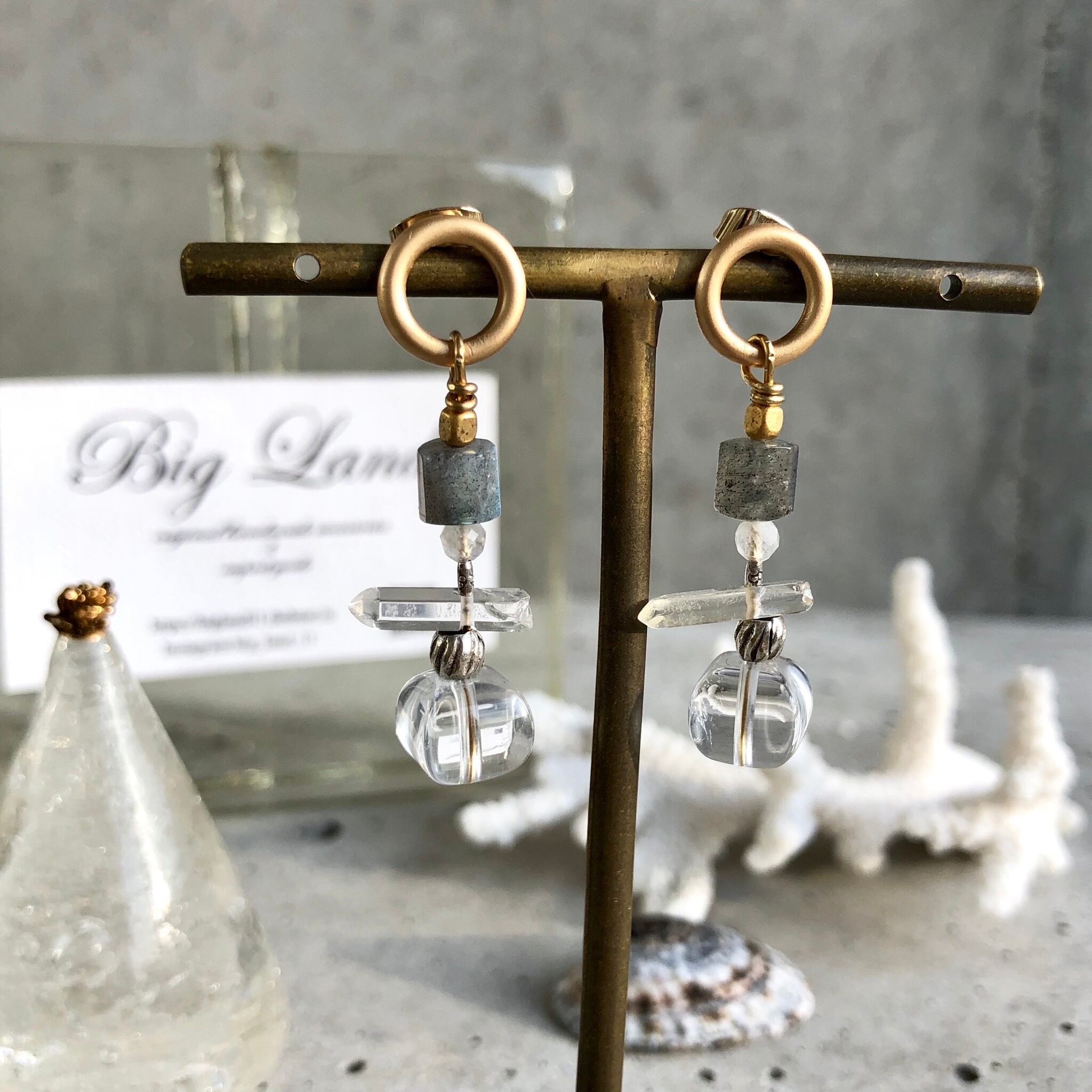 水晶、ラブラドライト、大変繊細な多面カットのレインボームーンストーン、カレンシルバー等を面白く色々と組み合わせナチュラルでどこか芸術的な雰囲気で洗練されたデザインに仕上げました✨