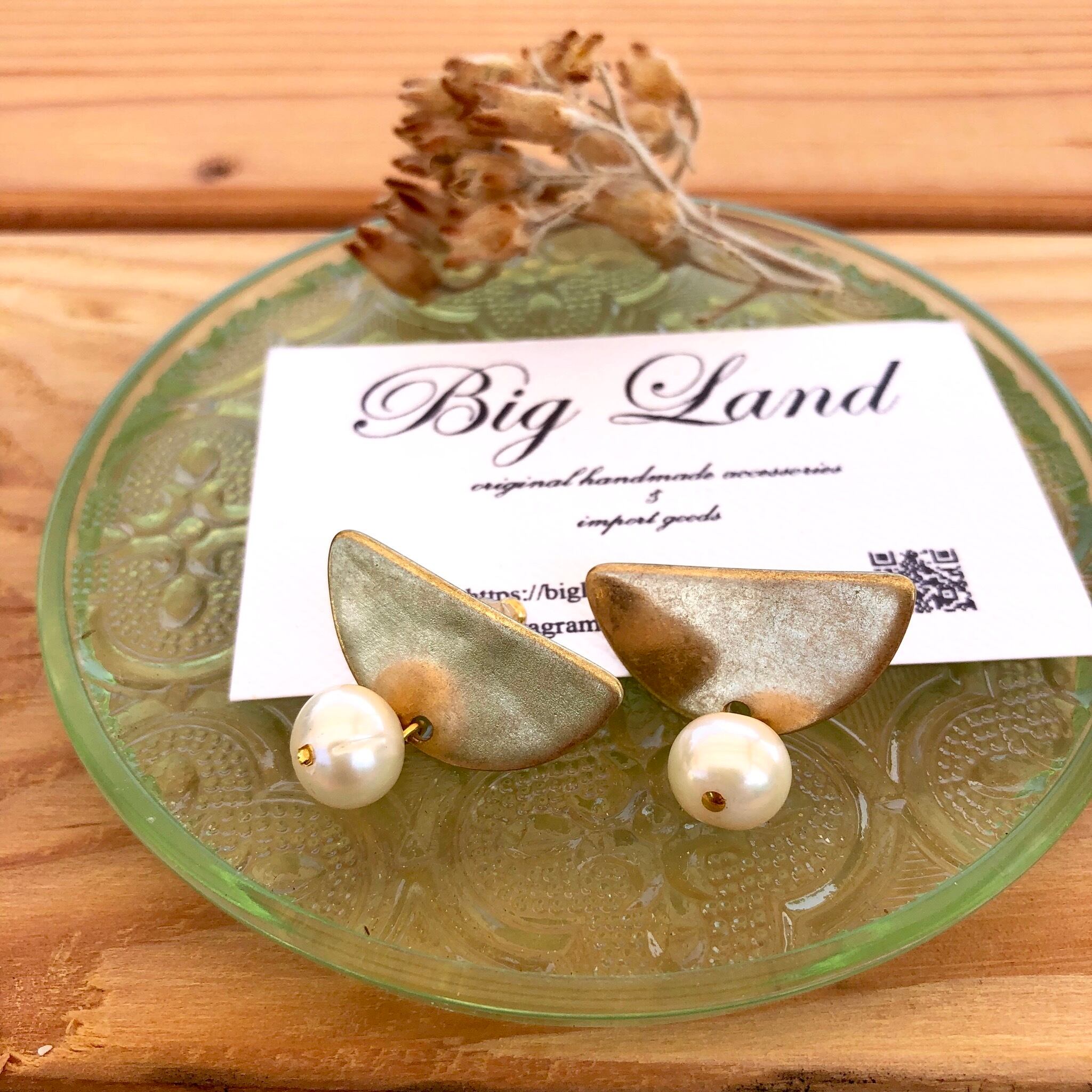 天然パールとアンティーク風な真鍮との組み合わせがオシャレで....ヴィンテージぽくもあります!!