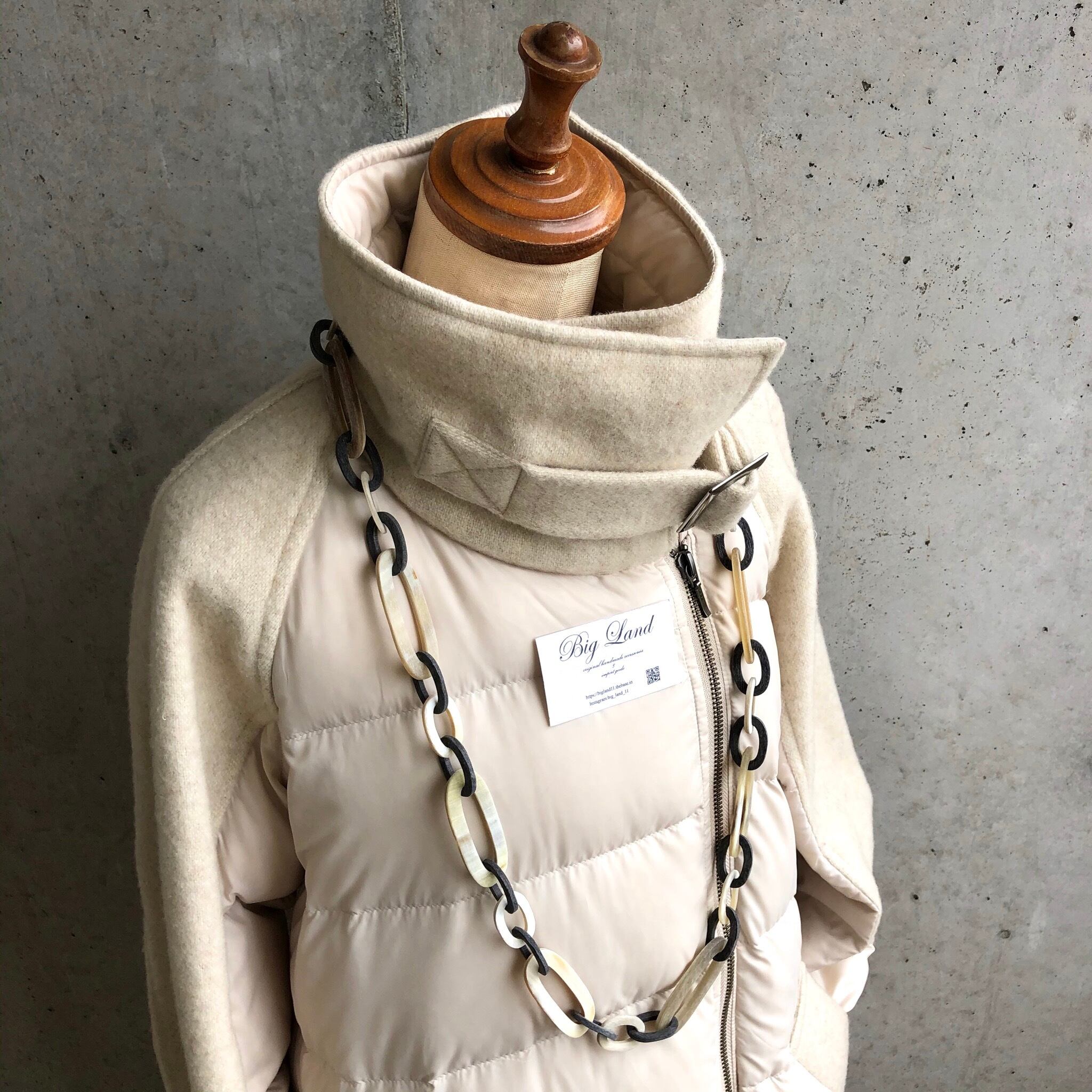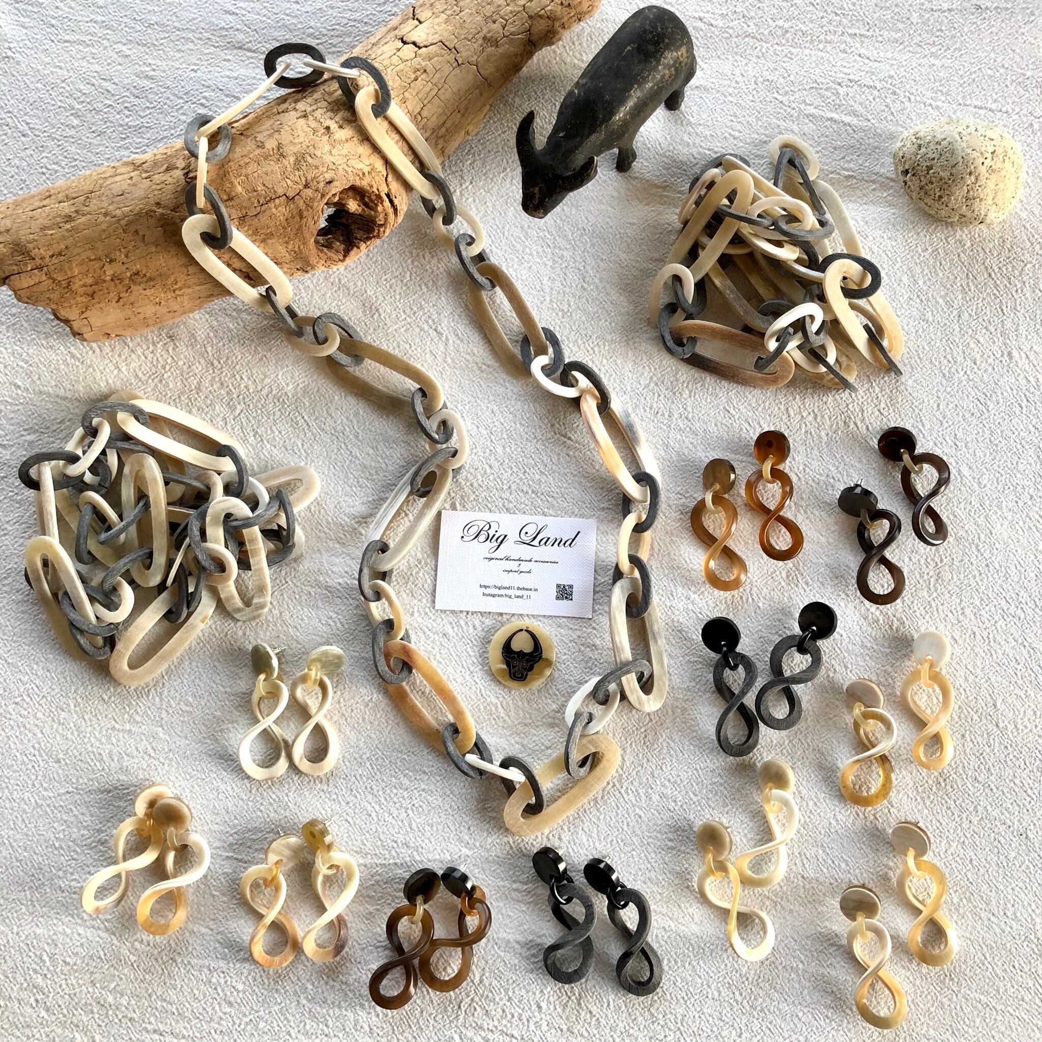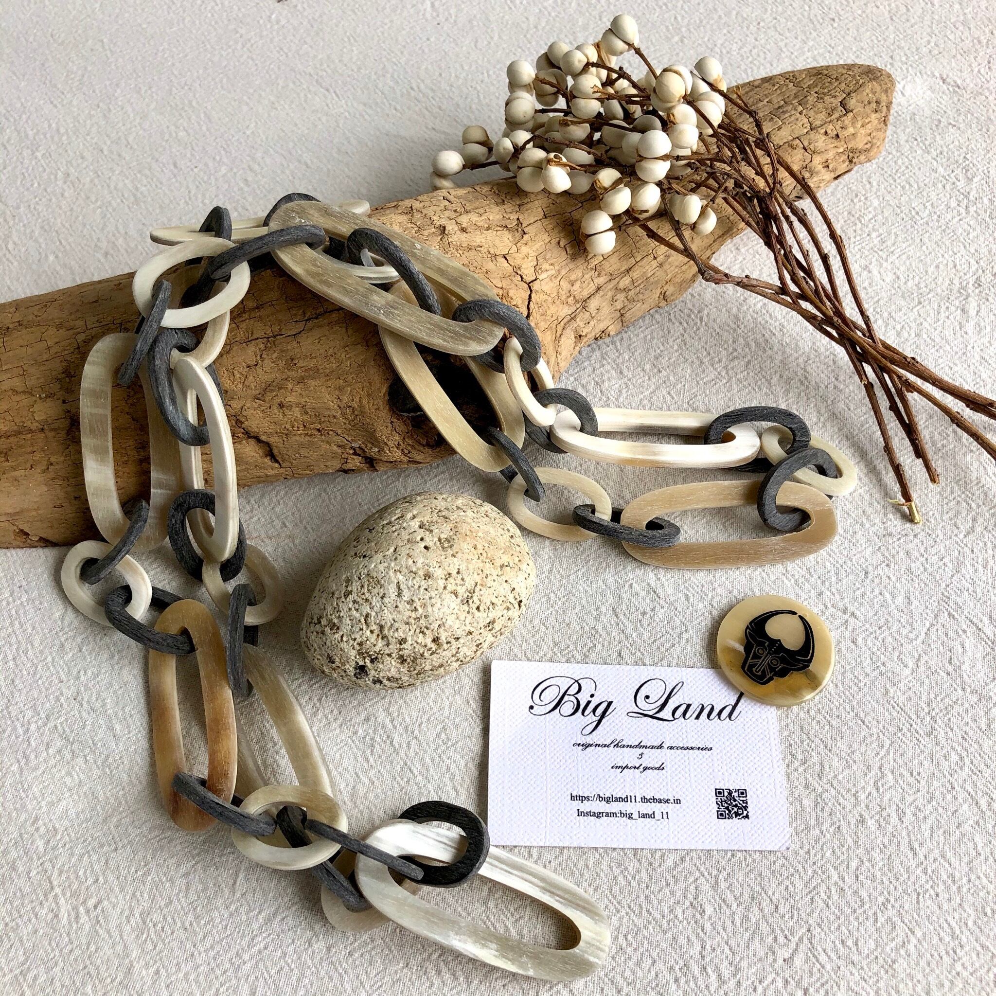 夏の汗ばむ季節でも天然素材の水牛角の為お肌に優しく、秋冬はニットにこちらを装着するだけで、存在感がありオシャレに差がつきます✨