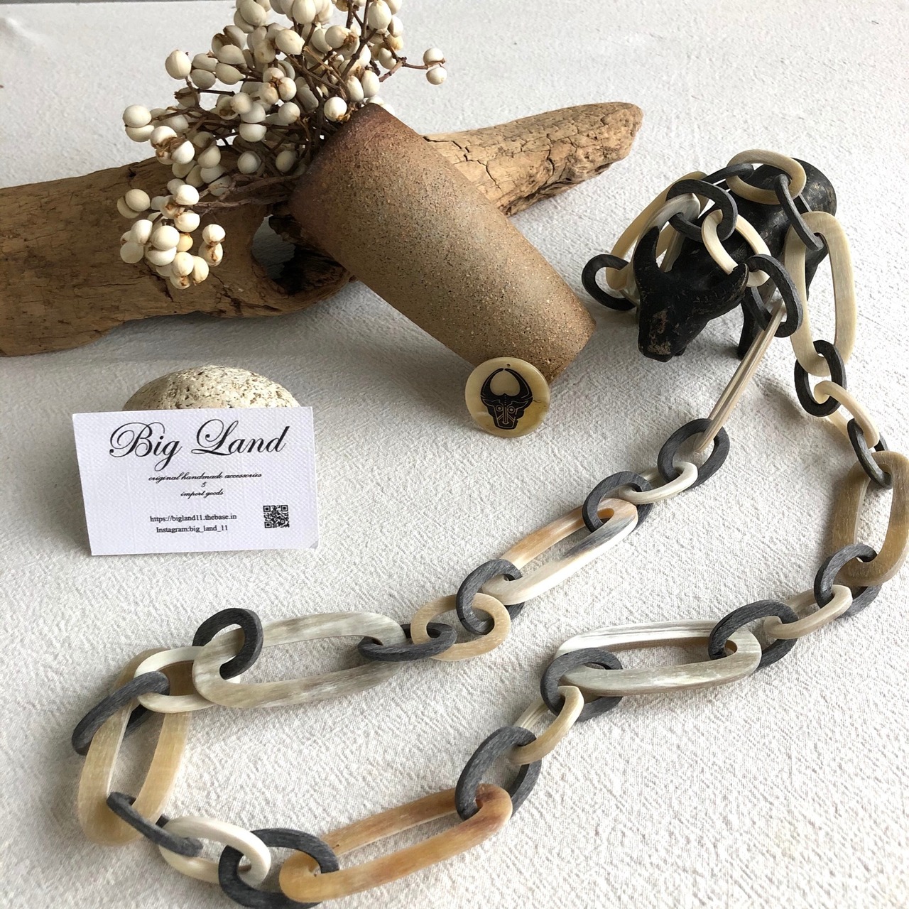 水牛角を削りマット仕上げに加工したなんともシックで大変珍しいネックレスでイチオシ✨
