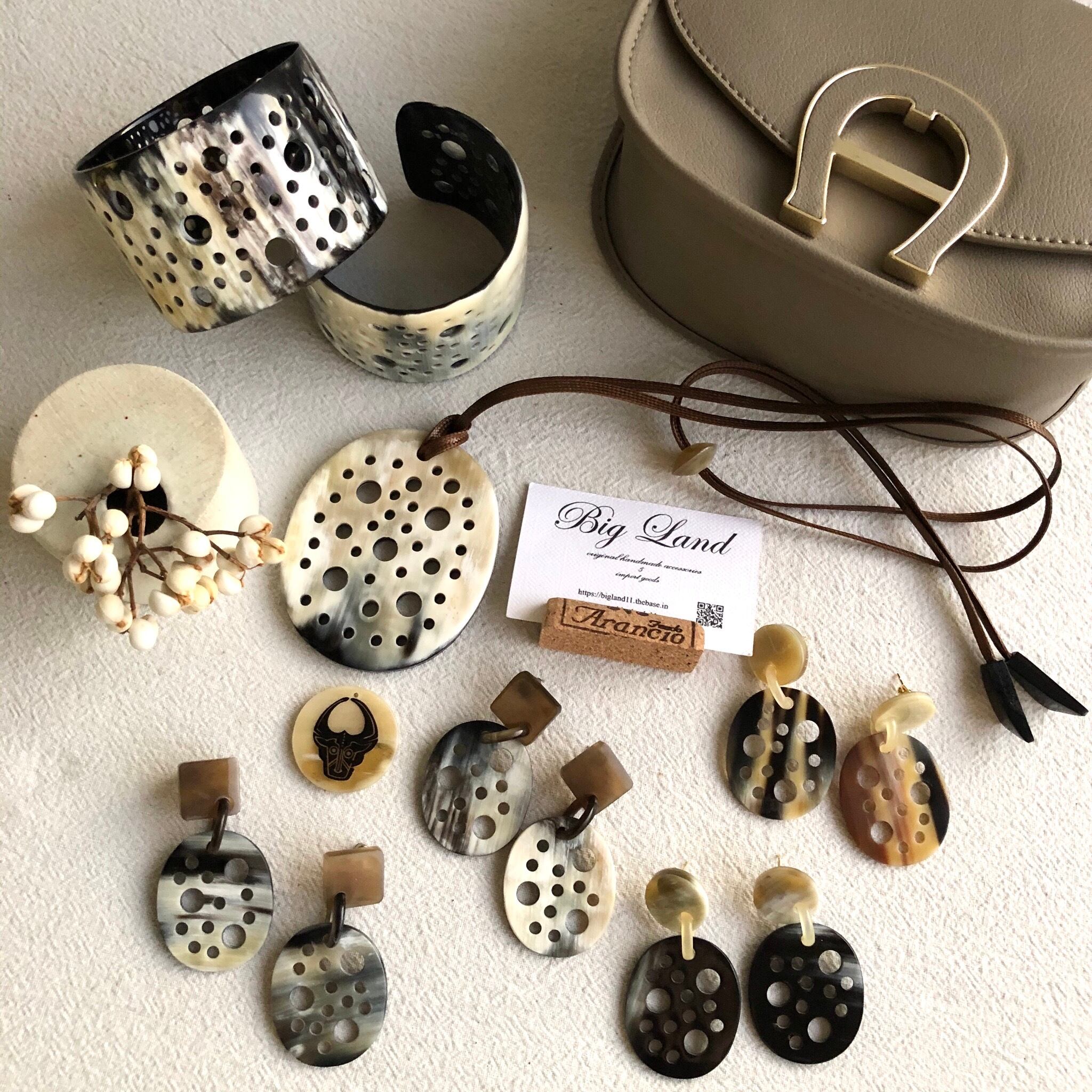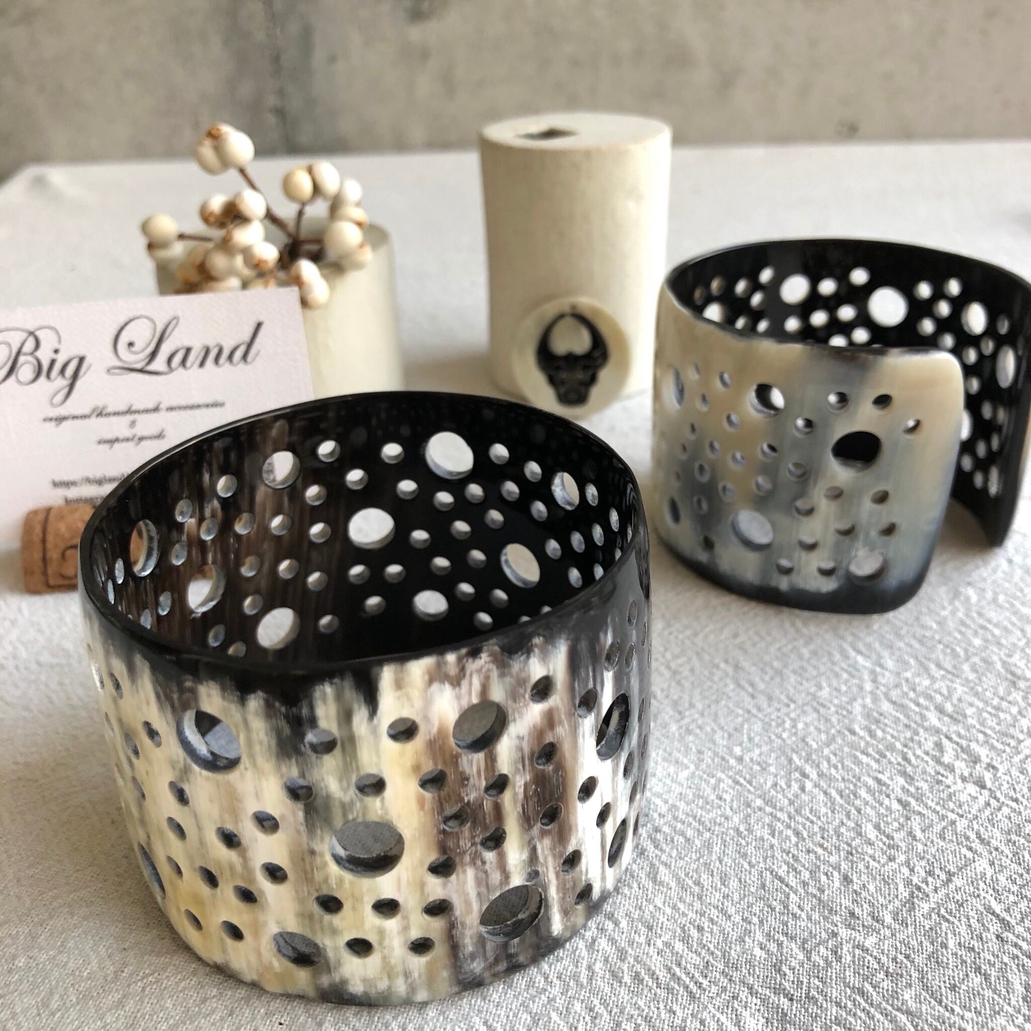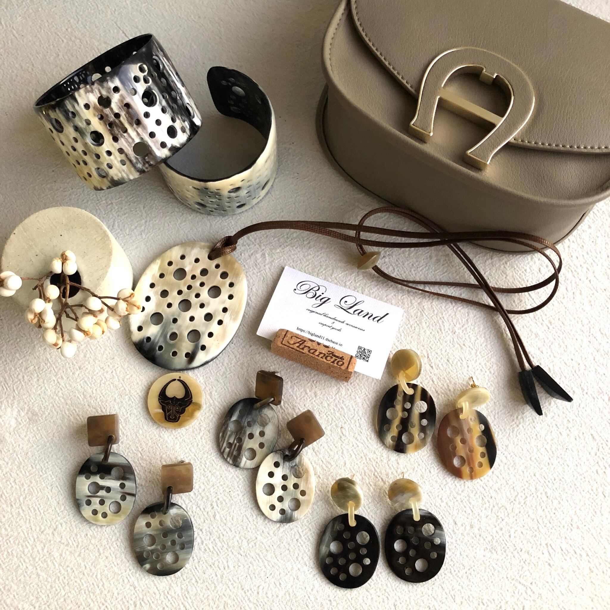トレンドの水牛角で作られた個性的且つ芸術的で、ドット柄にコーデしてとことんドットを楽しみたくなるデザインに仕上げました‼️アート好きな方にオススメで私も愛用してます^_^
