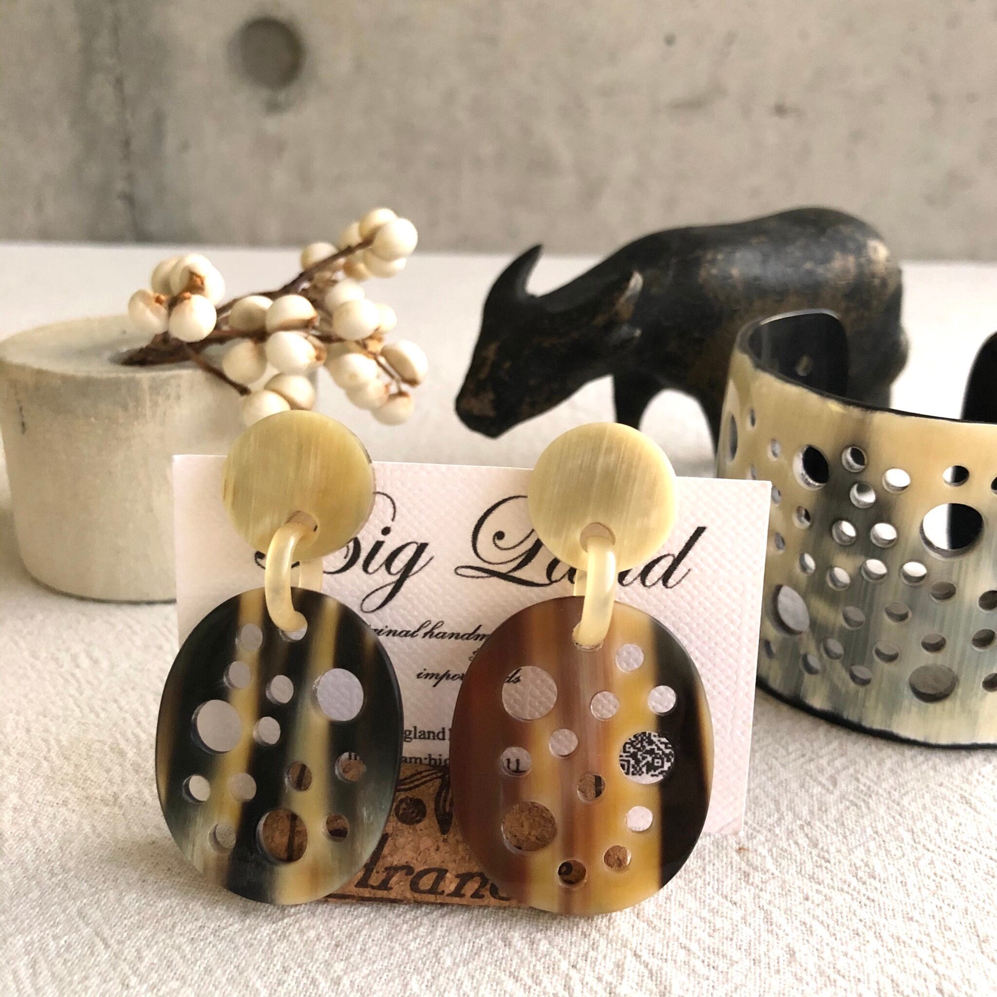 トレンドの水牛角で作られたピアス