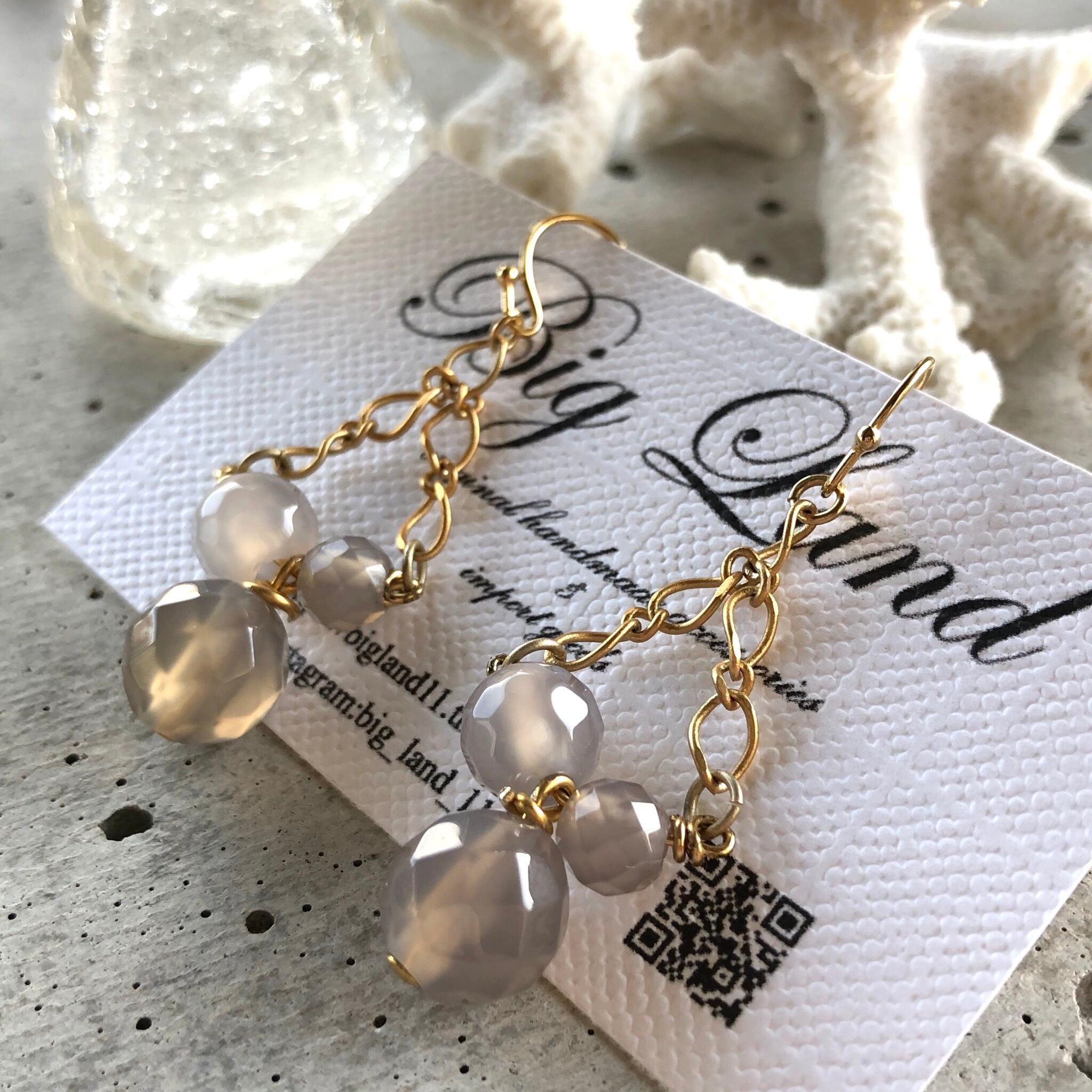 こちらの天然石はソフト多面カットとマットゴールドチェーンと組み合わせ、綺麗めコーデに合わせたりパーティースタイルアクセサリーとしてもお使いできます‼︎