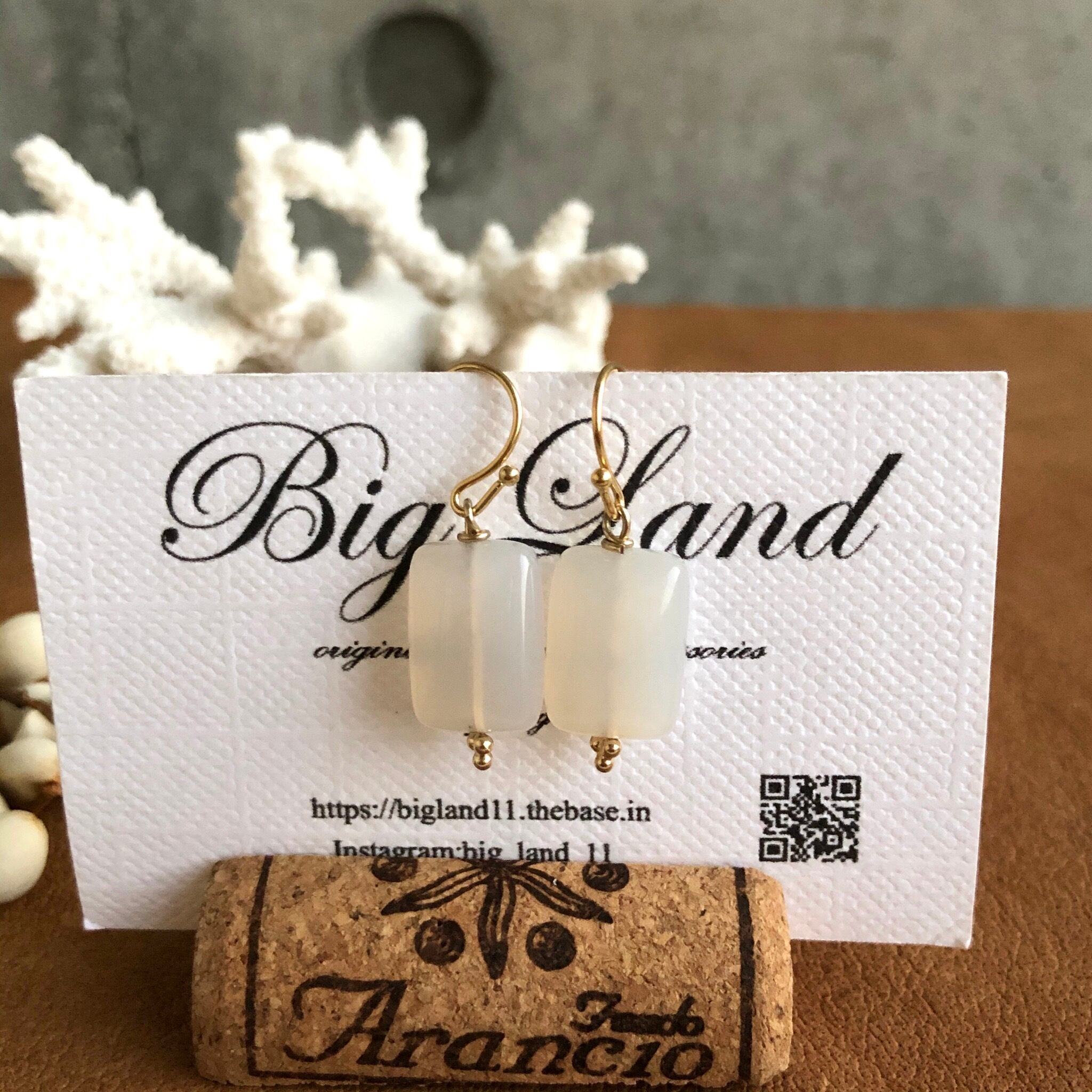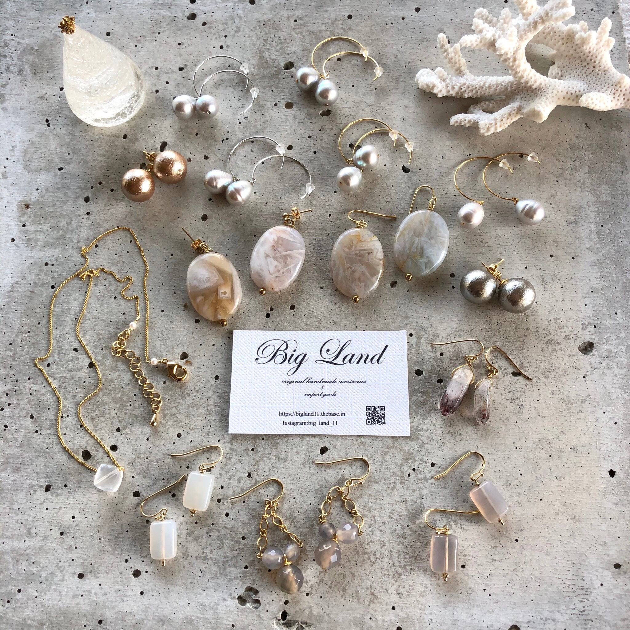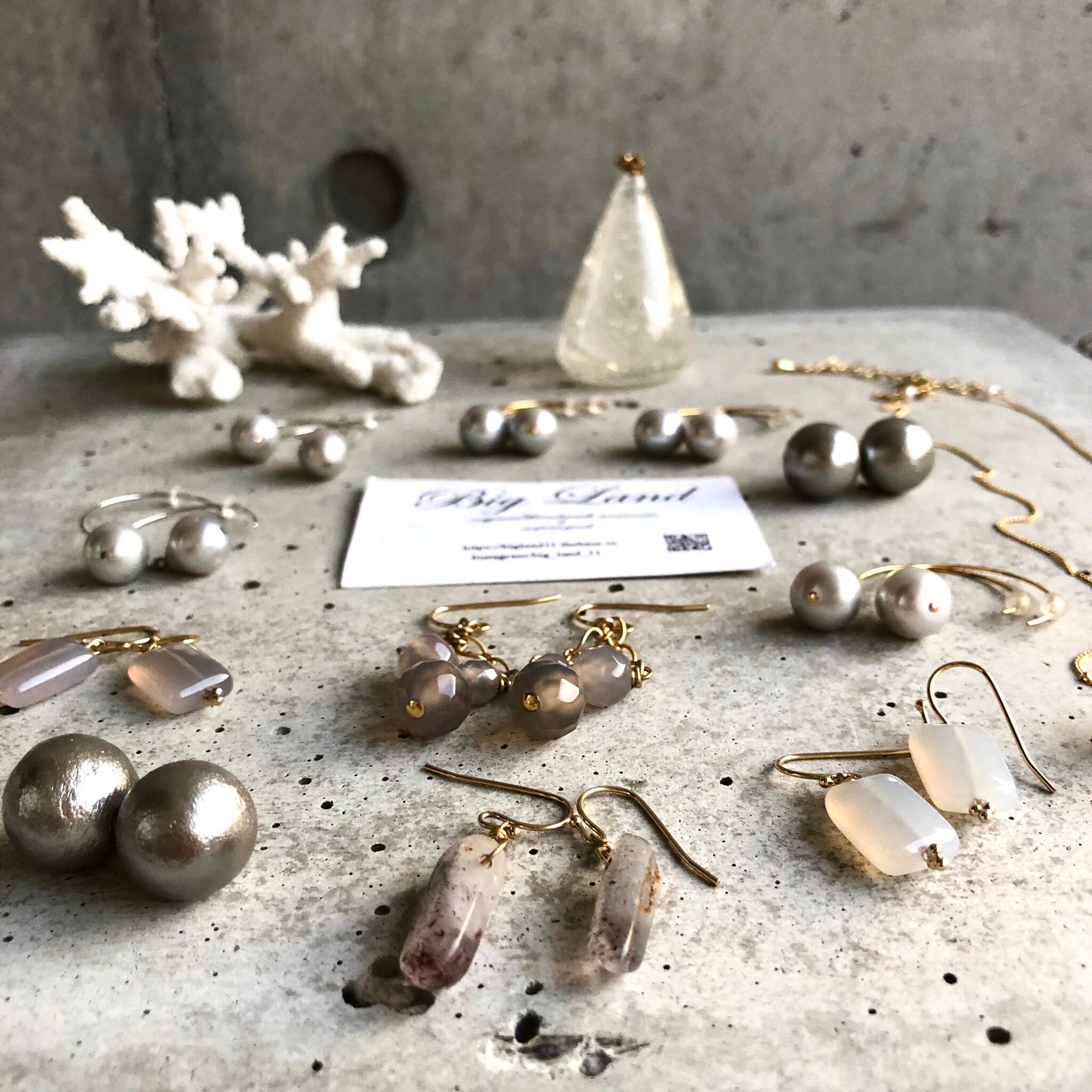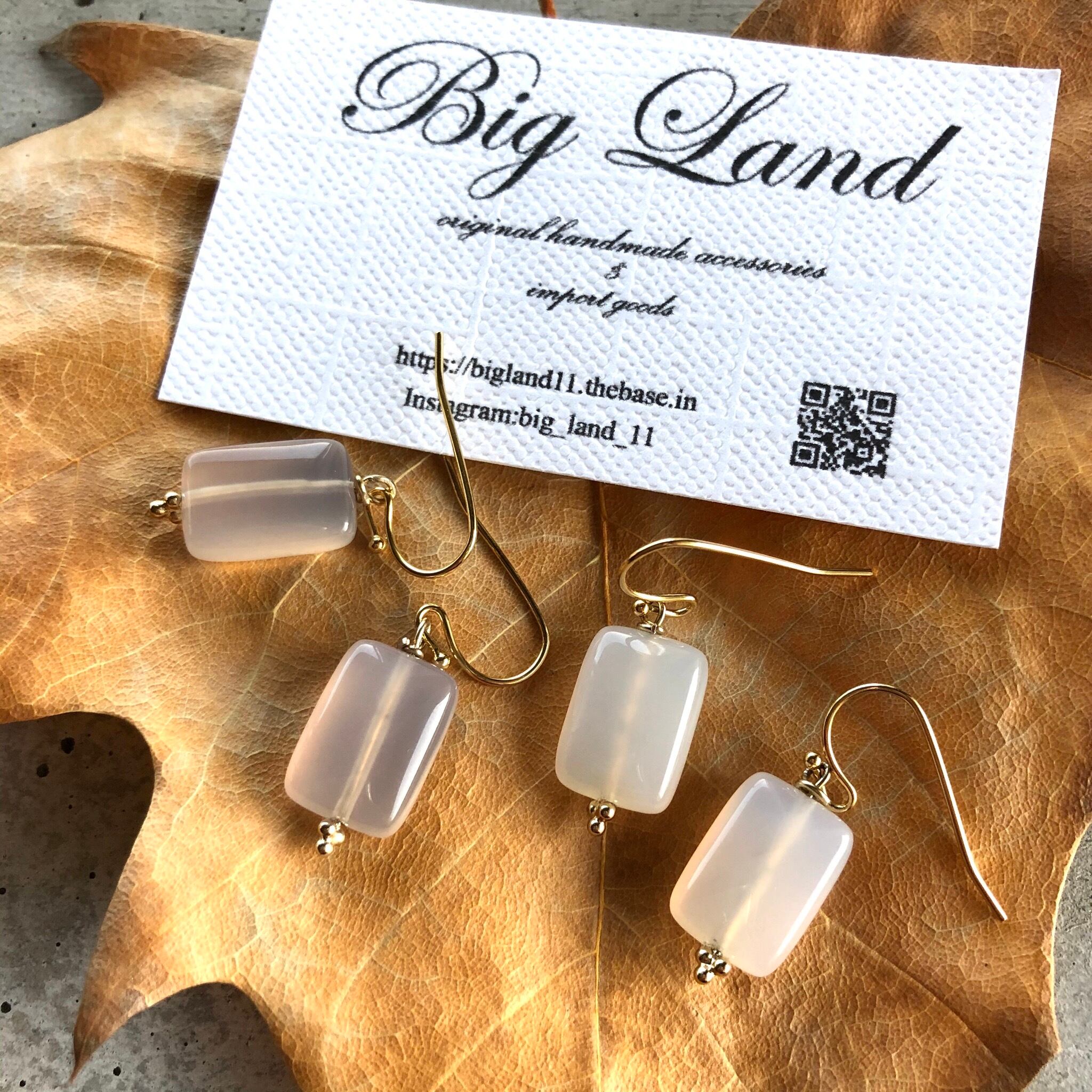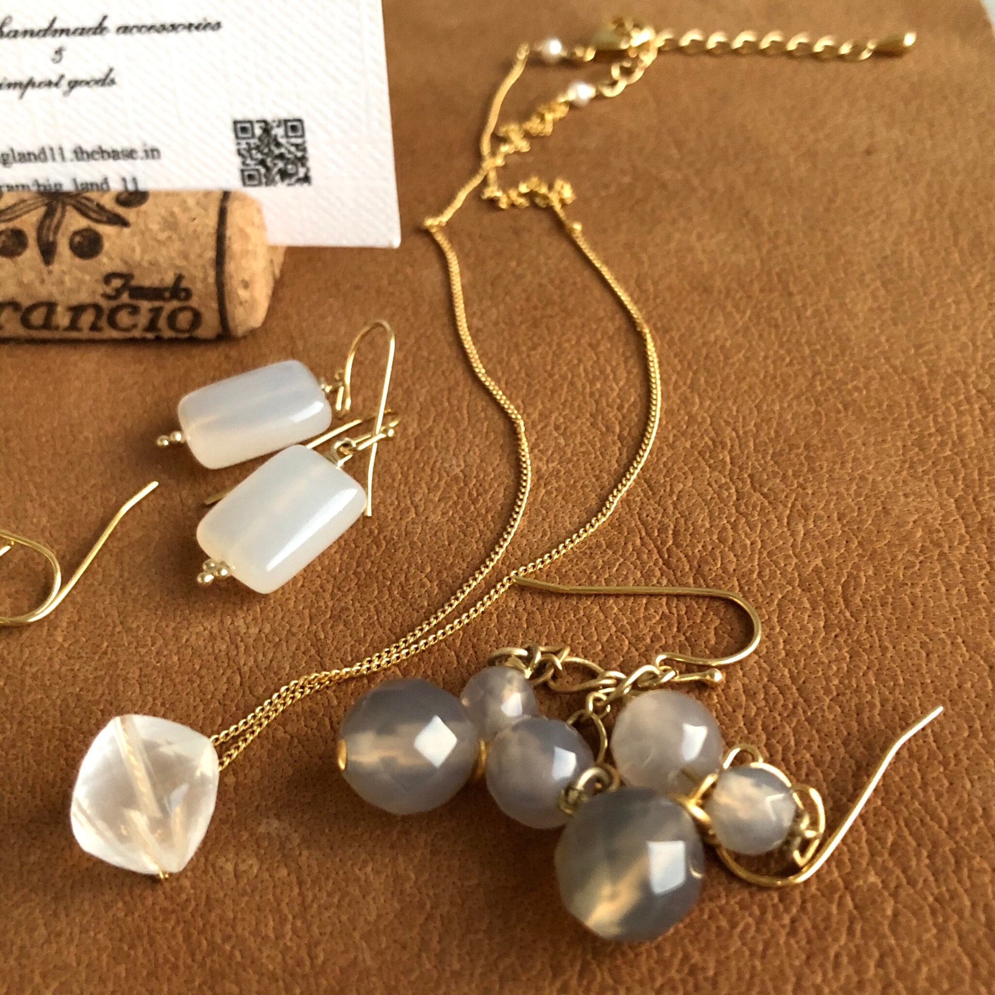 シンプルで丸みを帯びた天然石のカルセドニーがお顔周りを明るくし、グレーやアイボリーのお洋服と組み合わせたり、普段使いもし易くオススメです✨