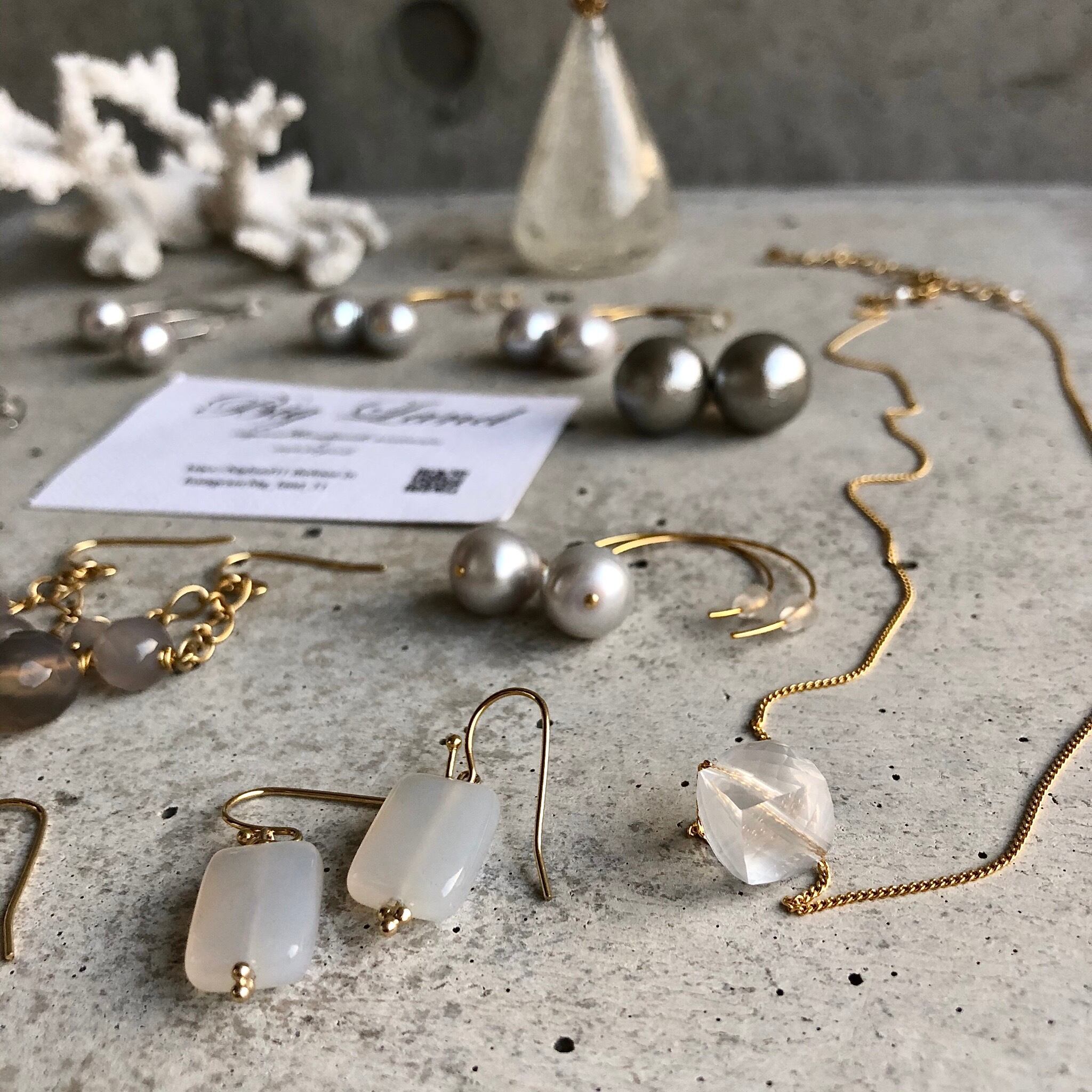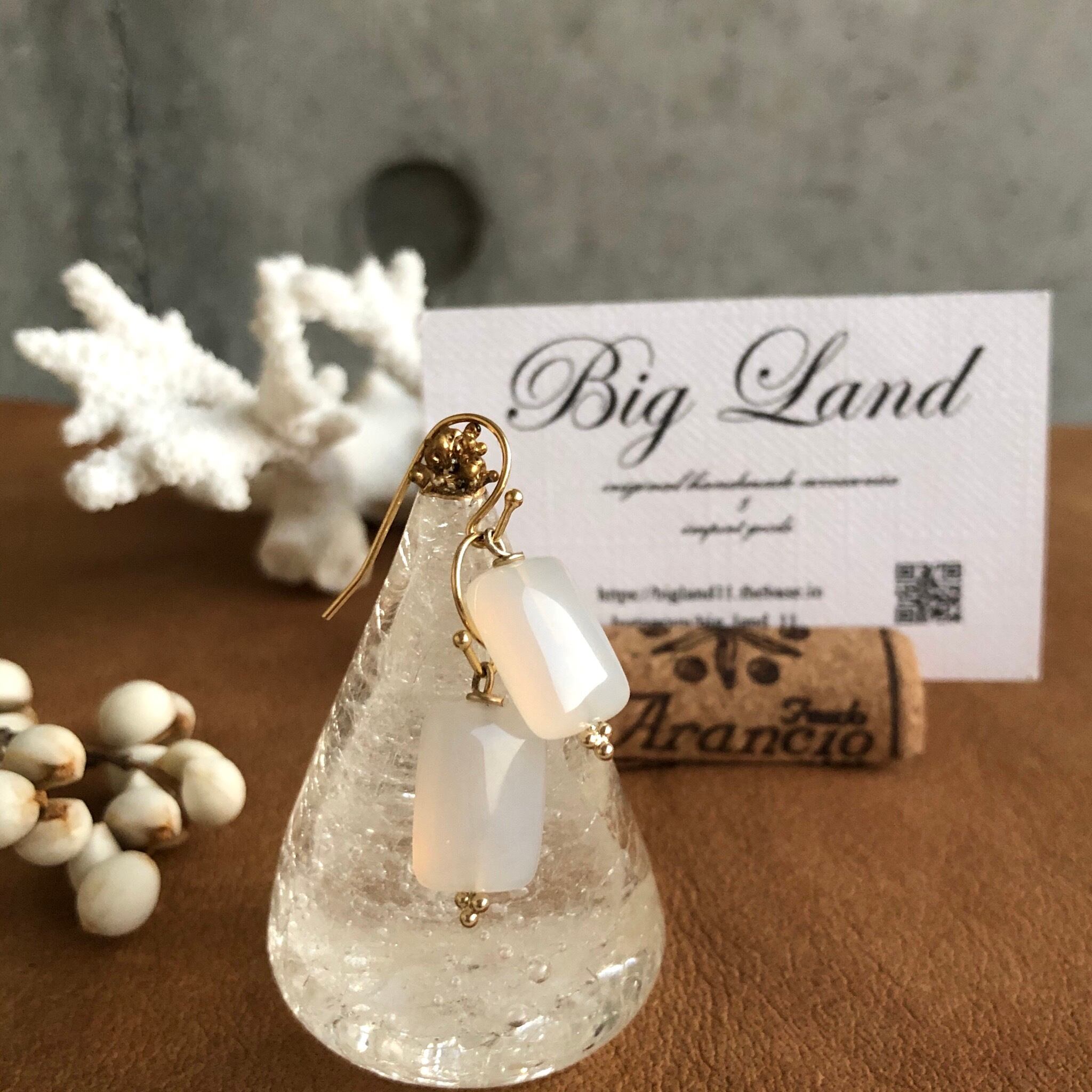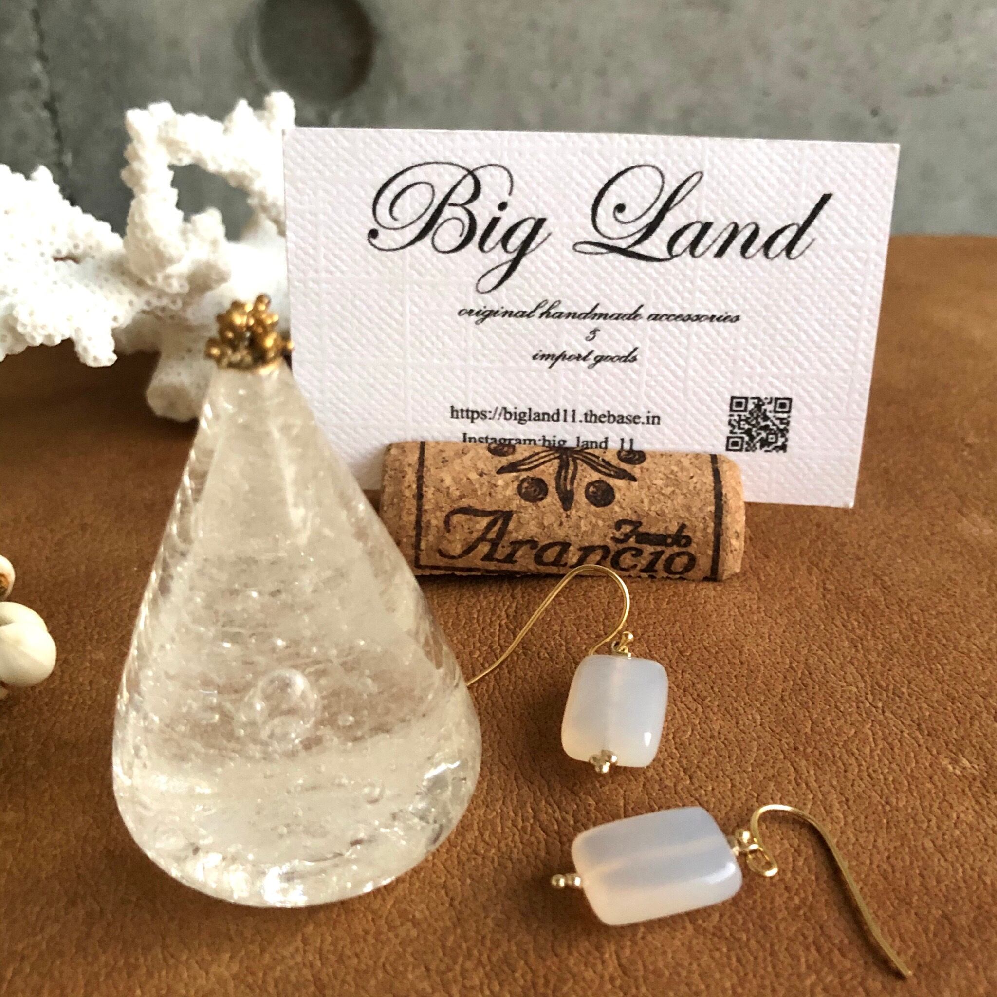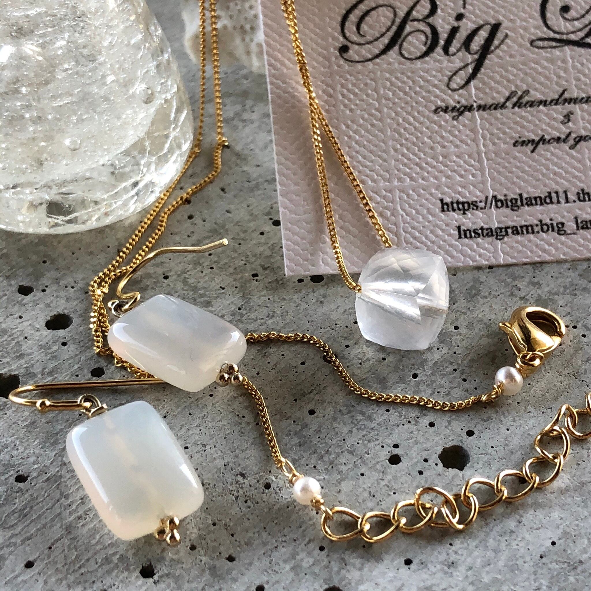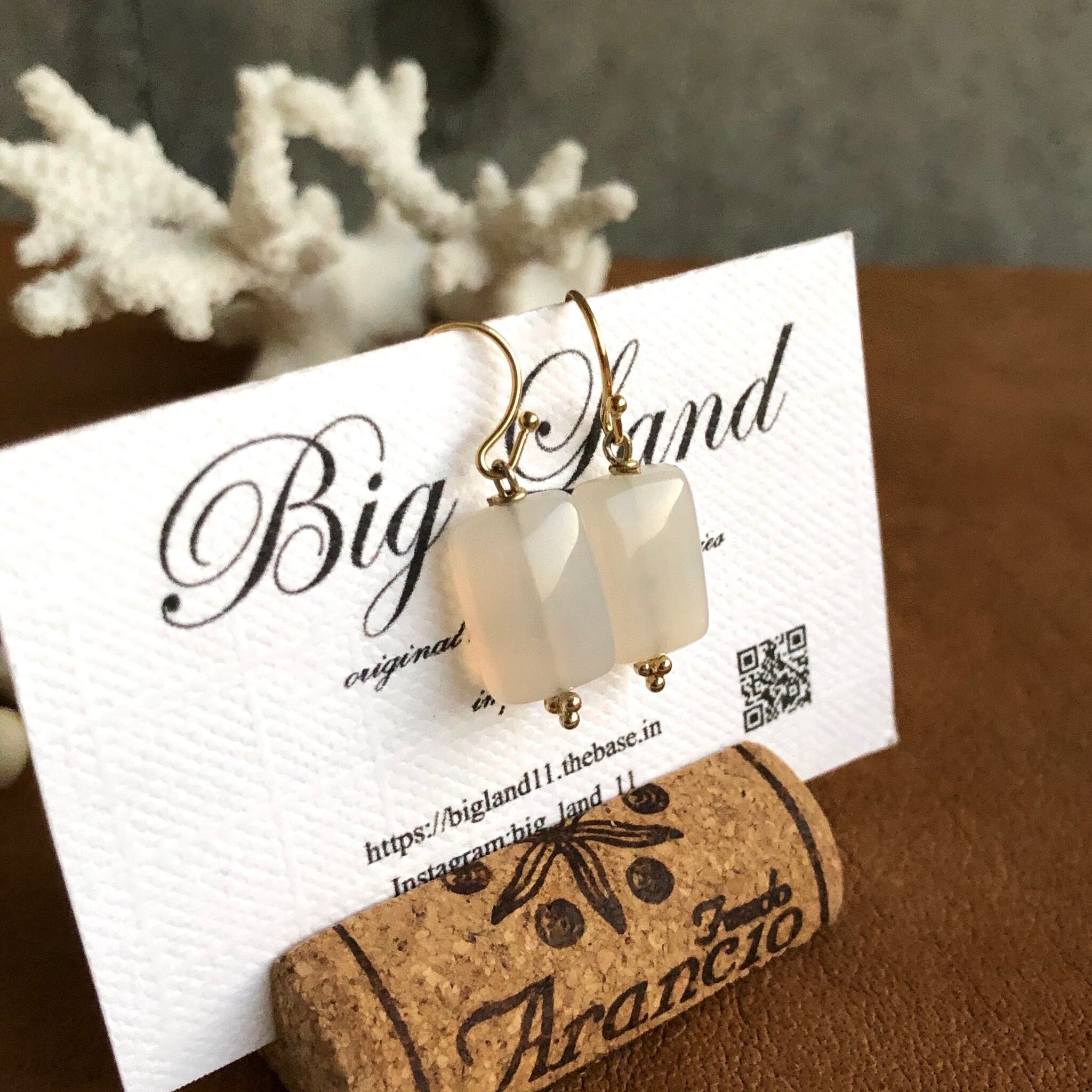 シンプルで丸みを帯びた天然石のカルセドニーがお顔周りを明るくし、グレーやアイボリーのお洋服と組み合わせたり、普段使いもし易くオススメです✨