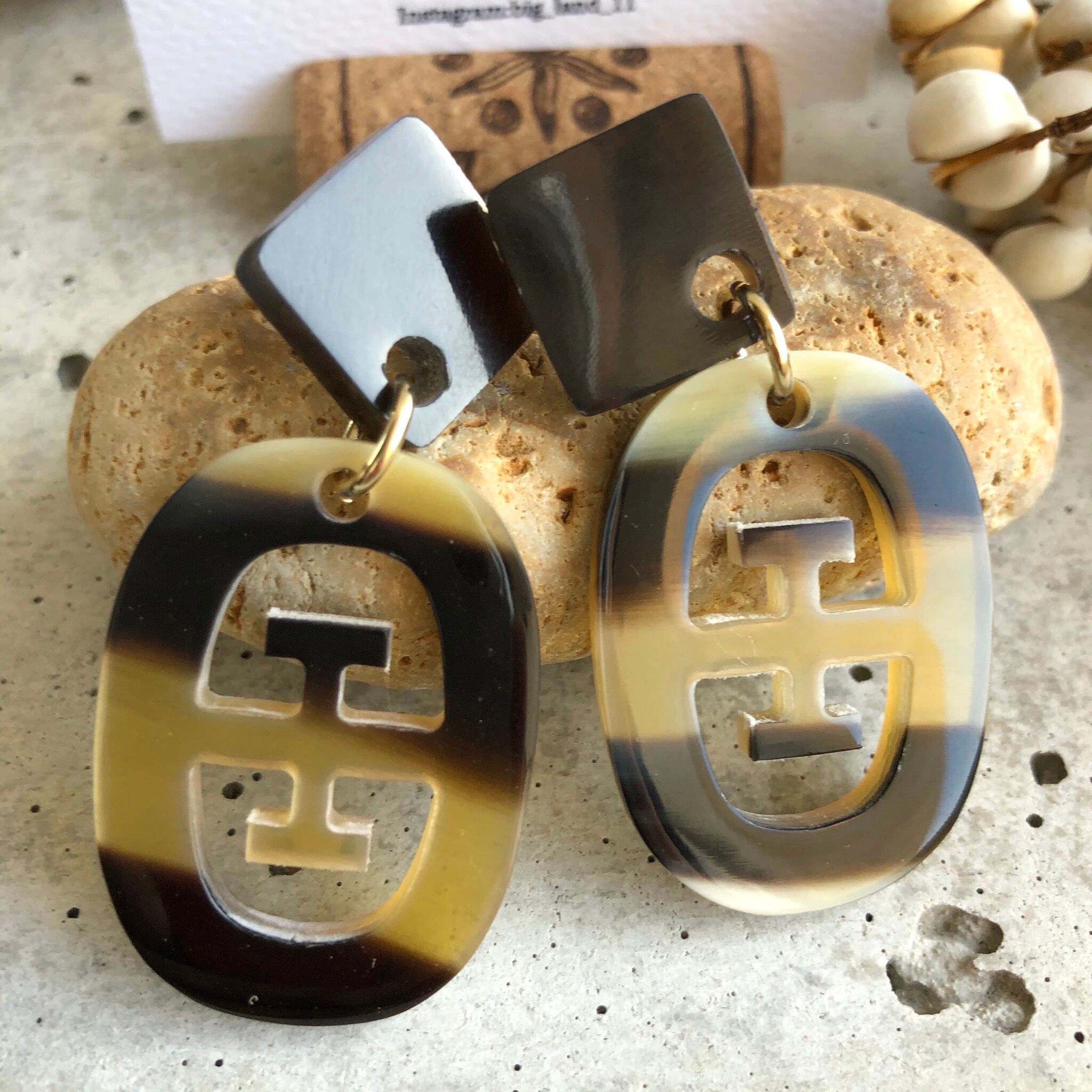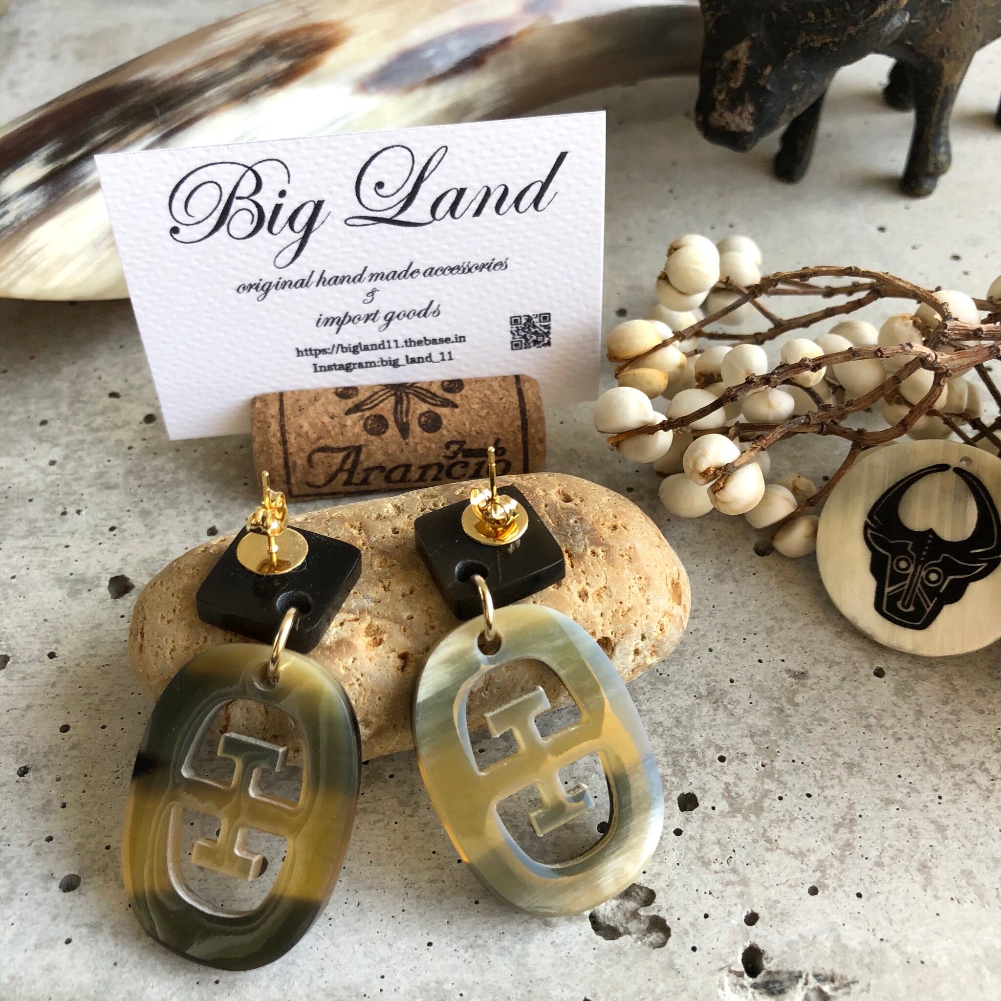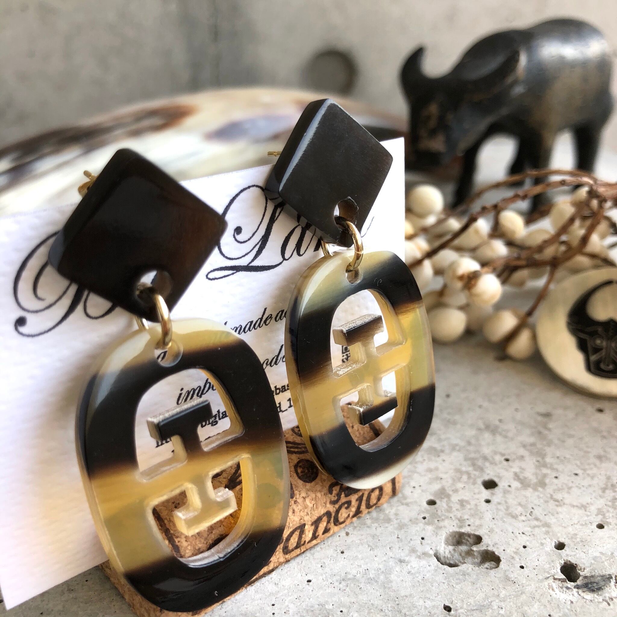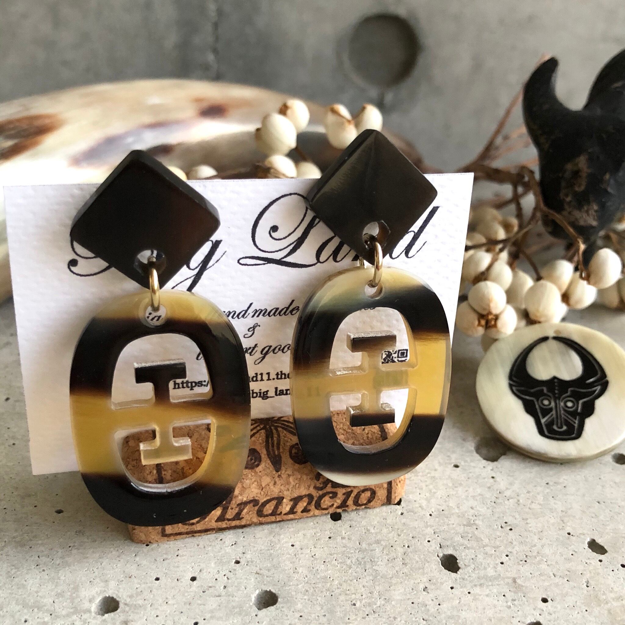トレンドの水牛角で作られたピアスでゴールドのリングと組み合わせ上品な雰囲気に仕上がりました✨