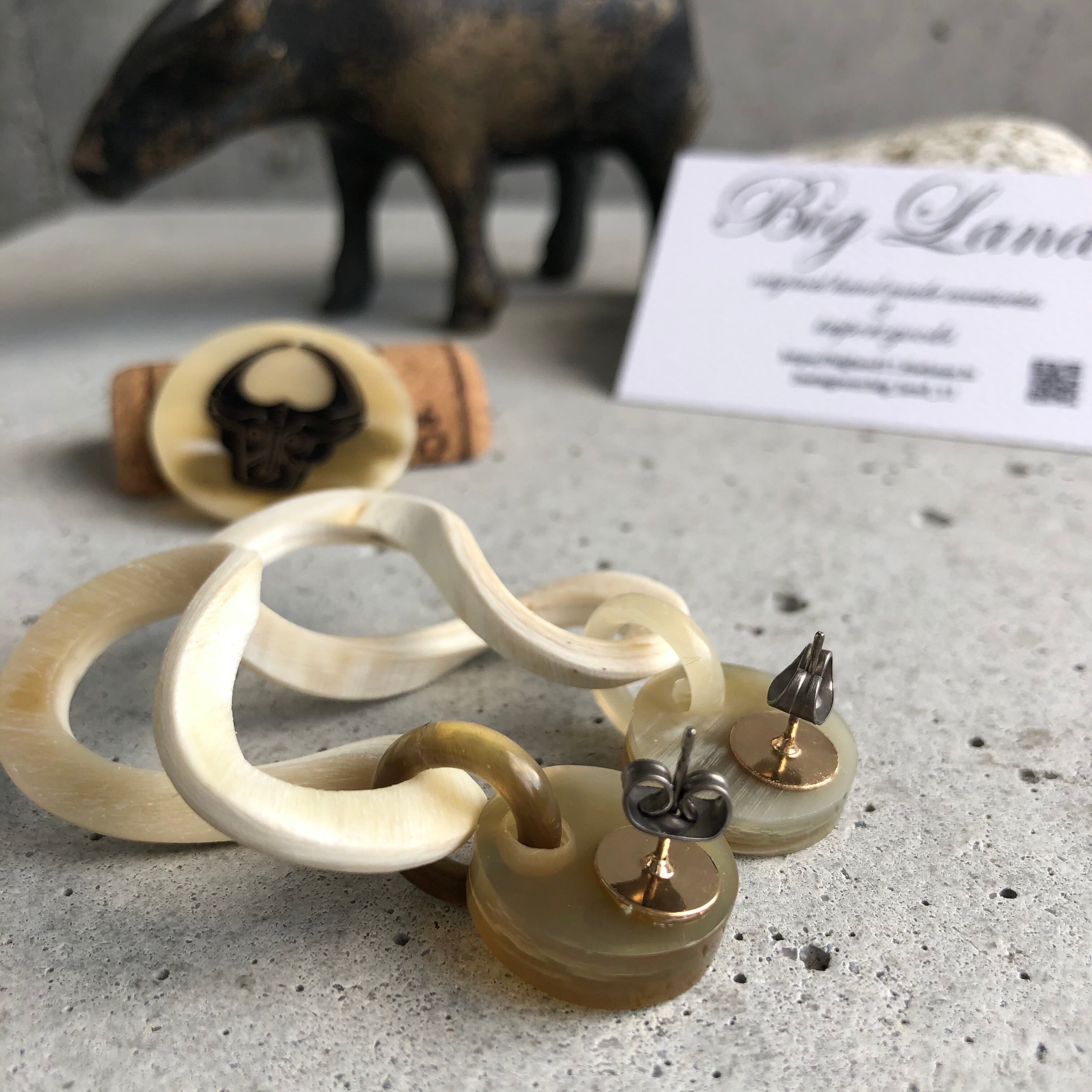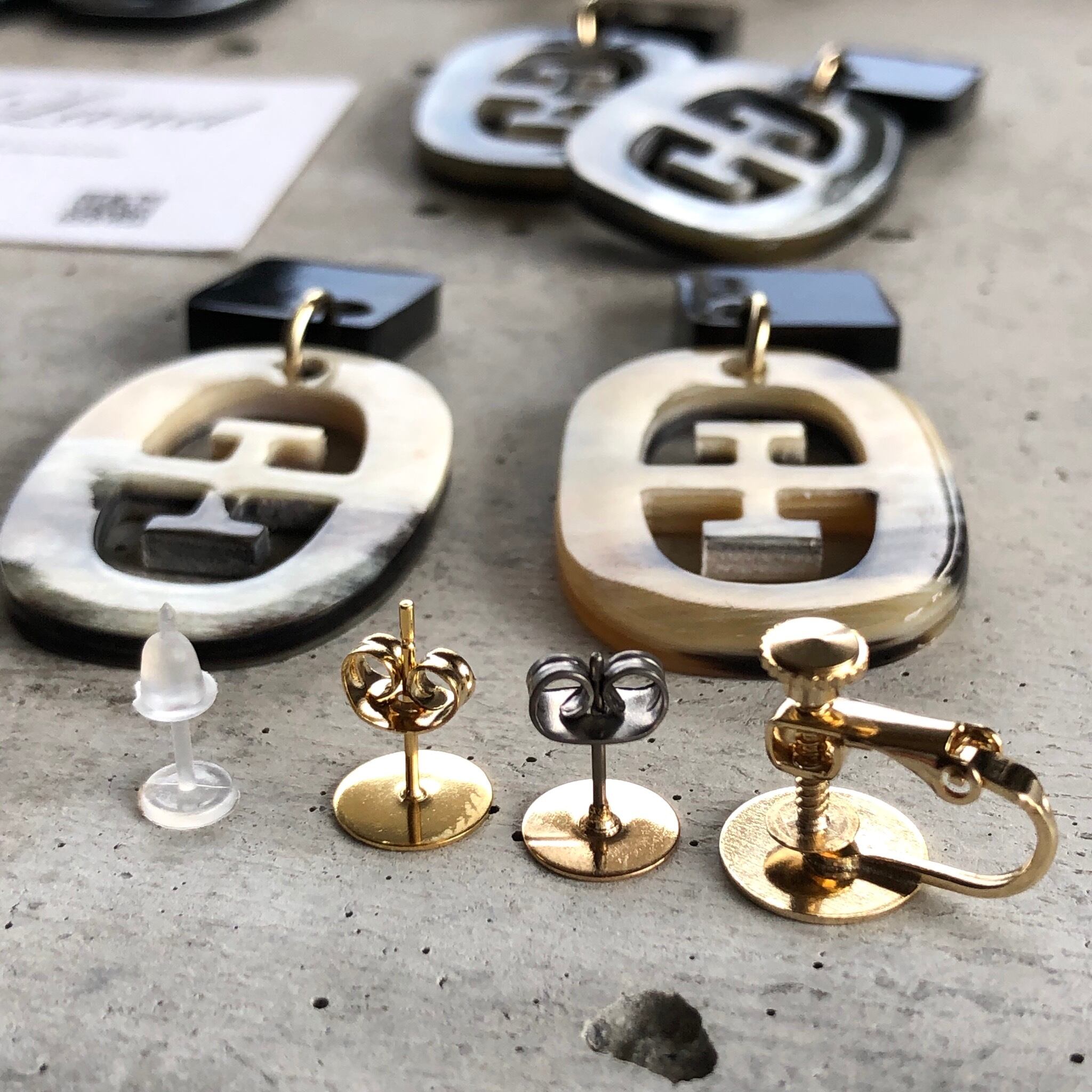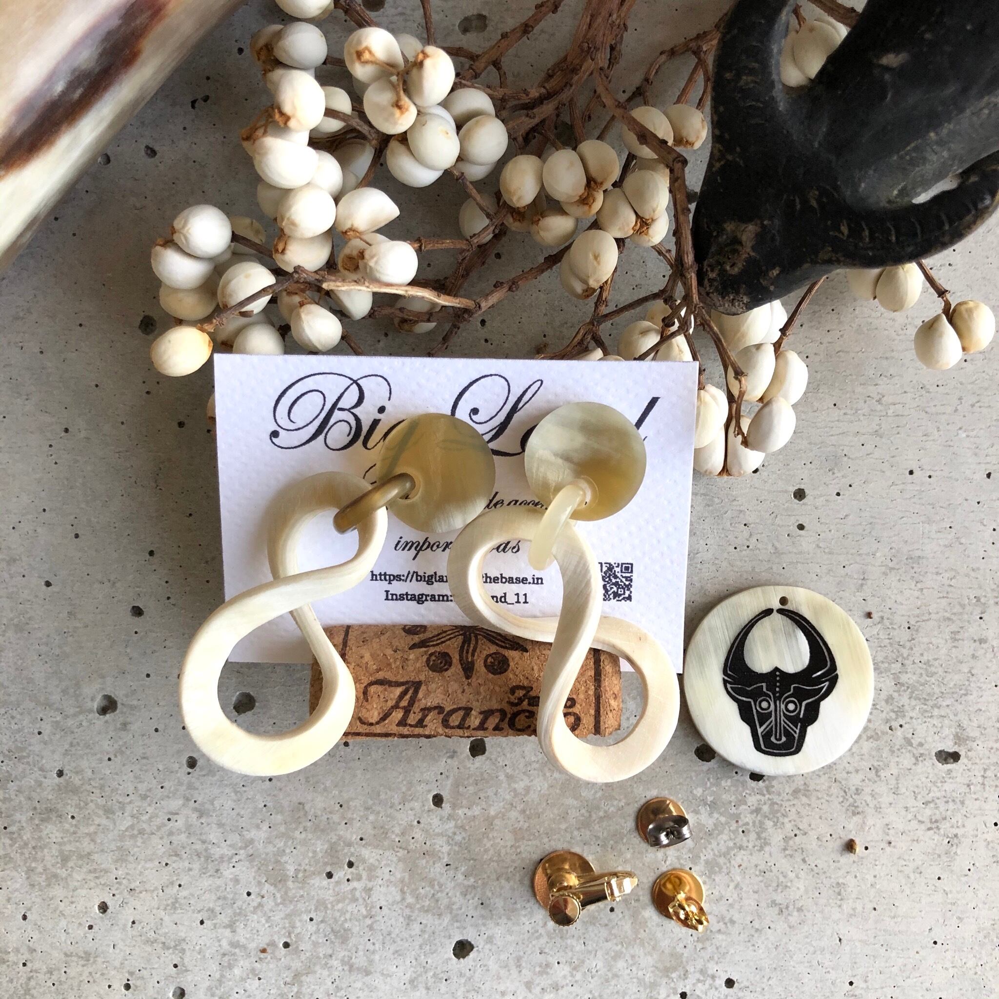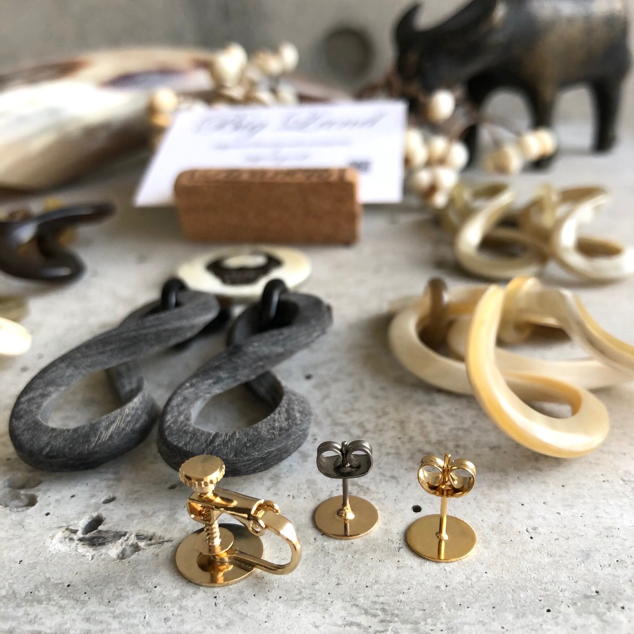 上品な色合いと無限を彷彿するようなモチーフがなんとも言えないデザインで、大ぶりなのに大変軽いのが水牛アクセサリーの特徴です✨