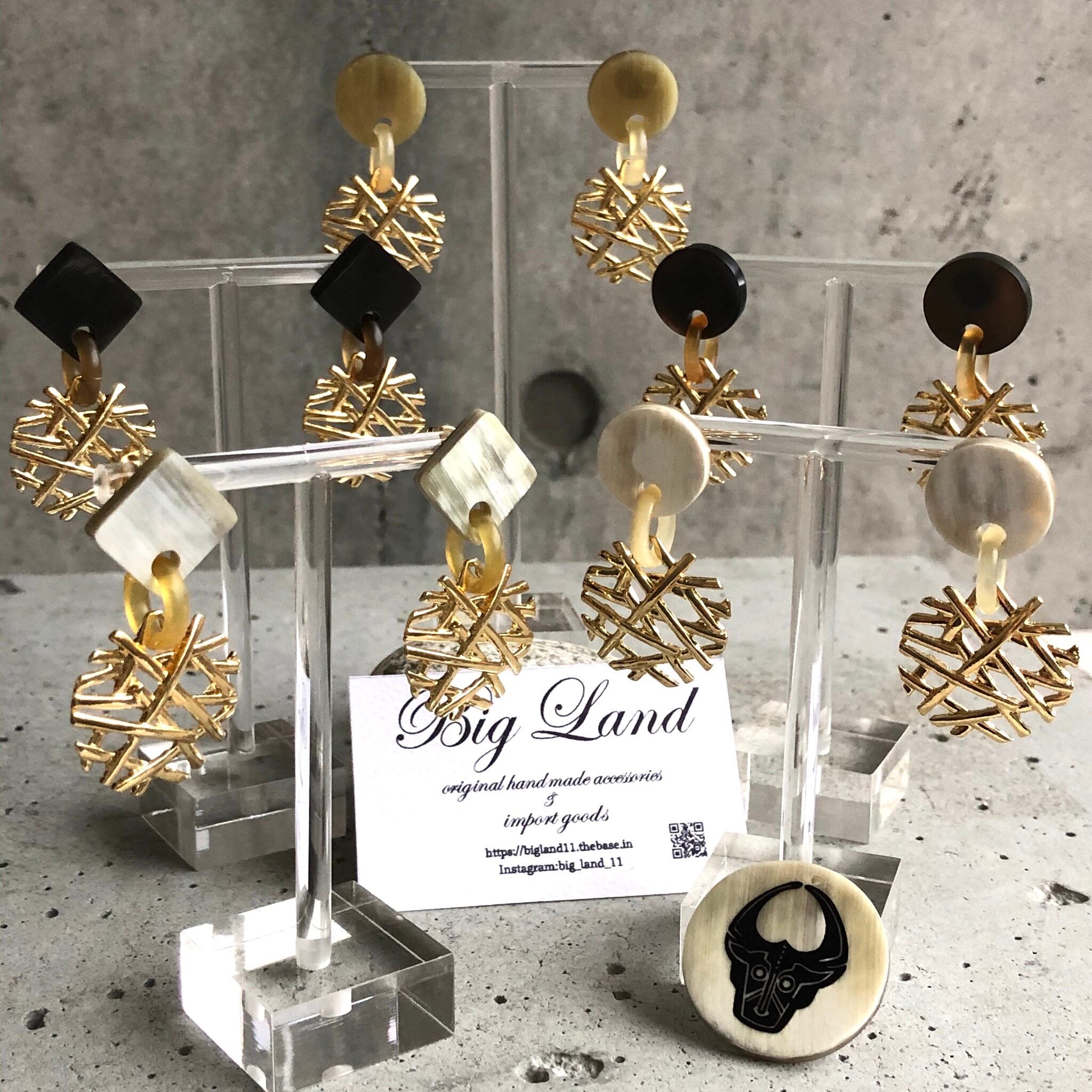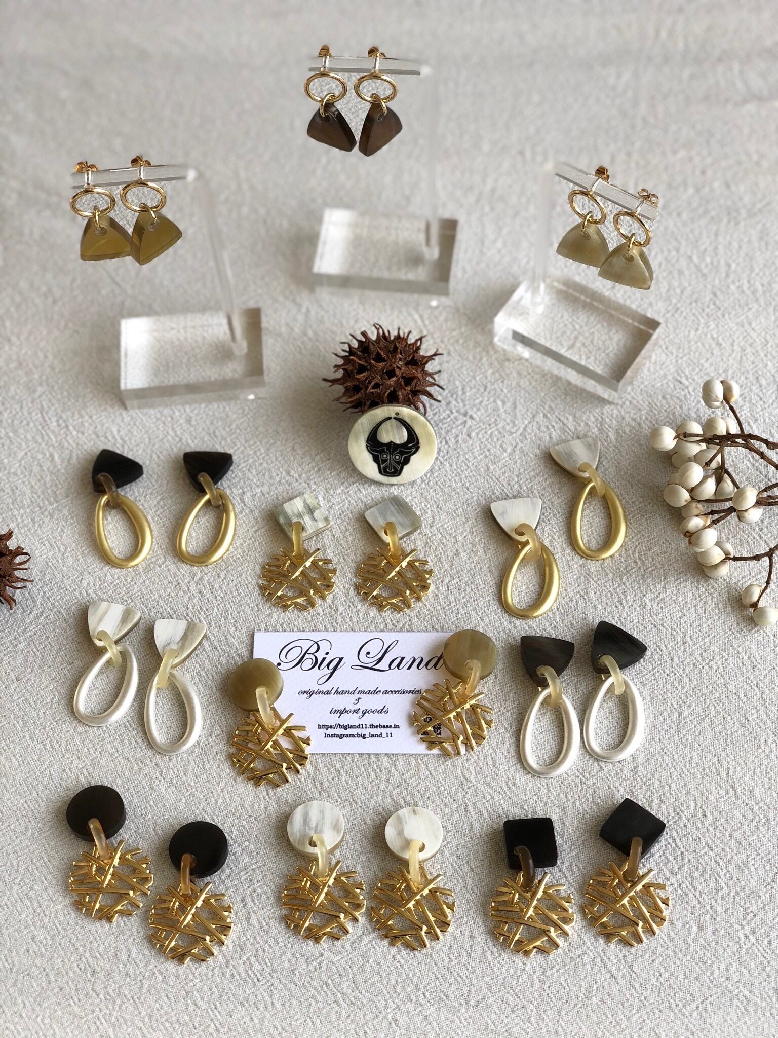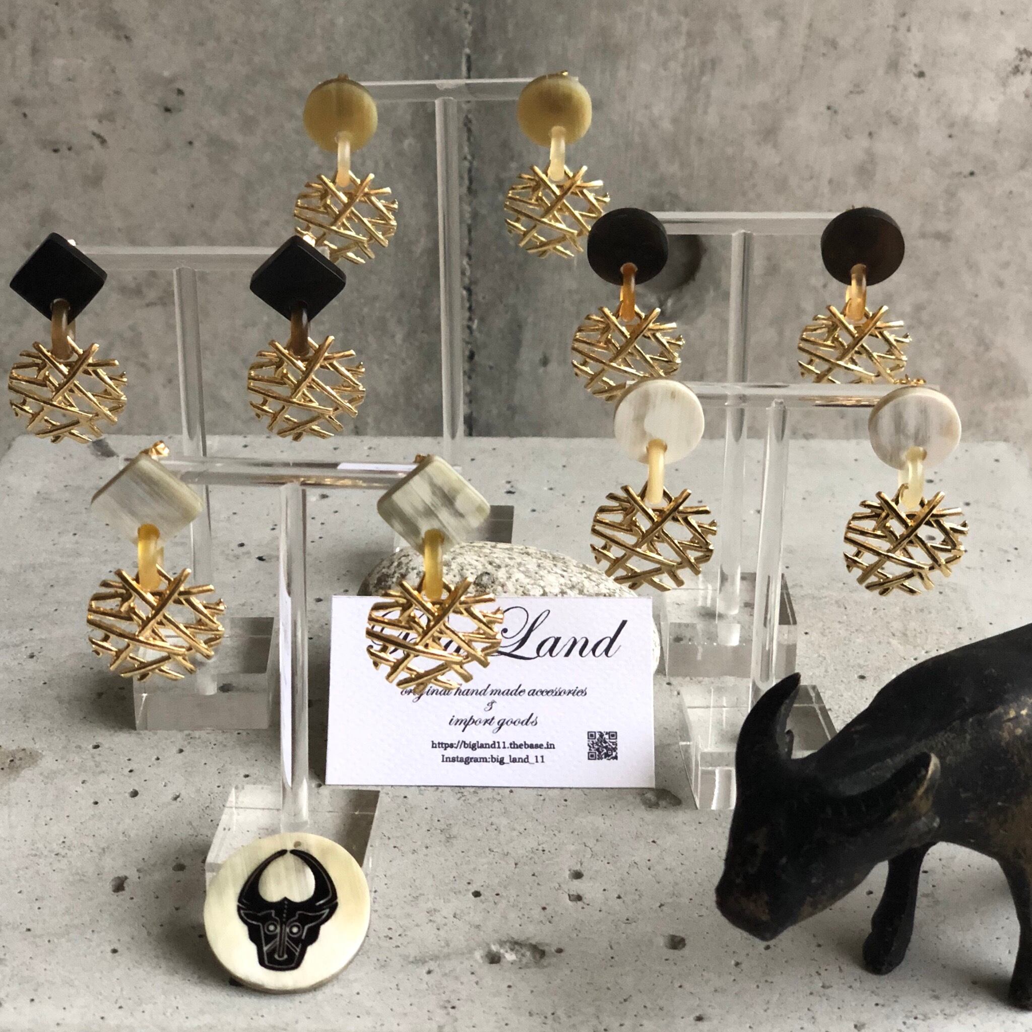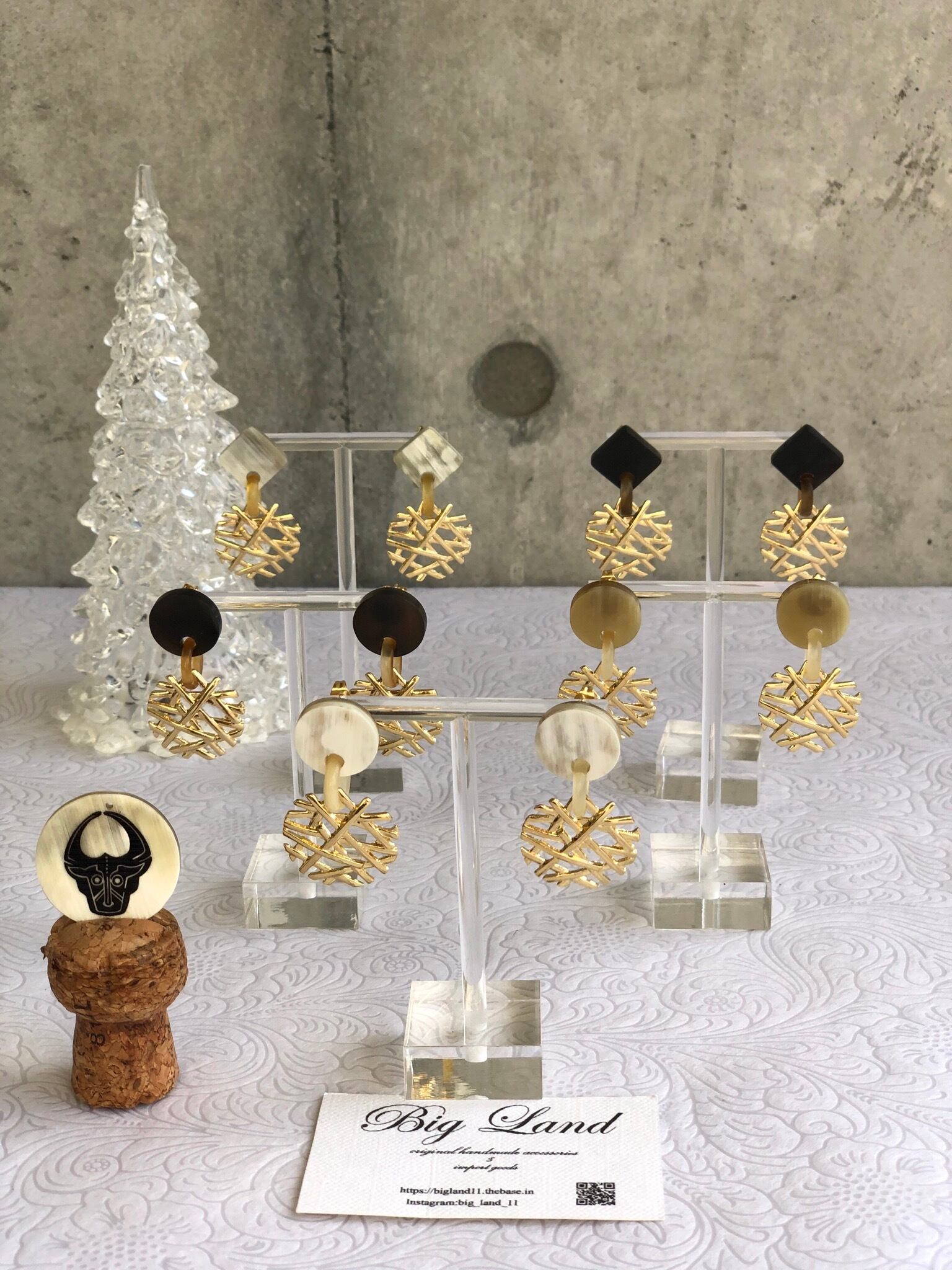 水牛とゴールドを組み合わせラグジュアリーに仕上げ華やかで大人っぽいデザインは、お出かけやパーティースタイルにも使え、天然の水牛と組み合わせる事により高級感が増し、若い方からマダムにと幅広い年齢層にご愛用して頂けます‼️