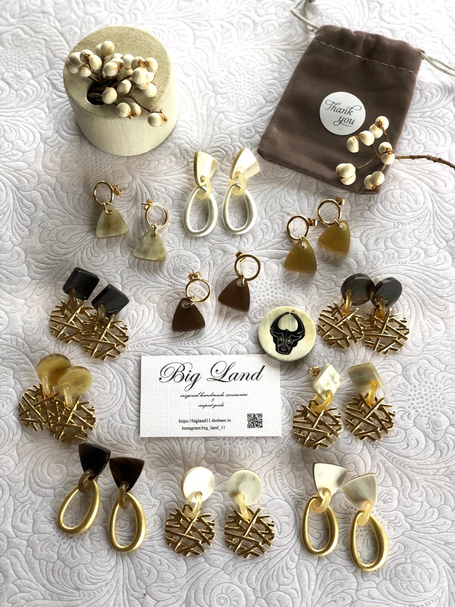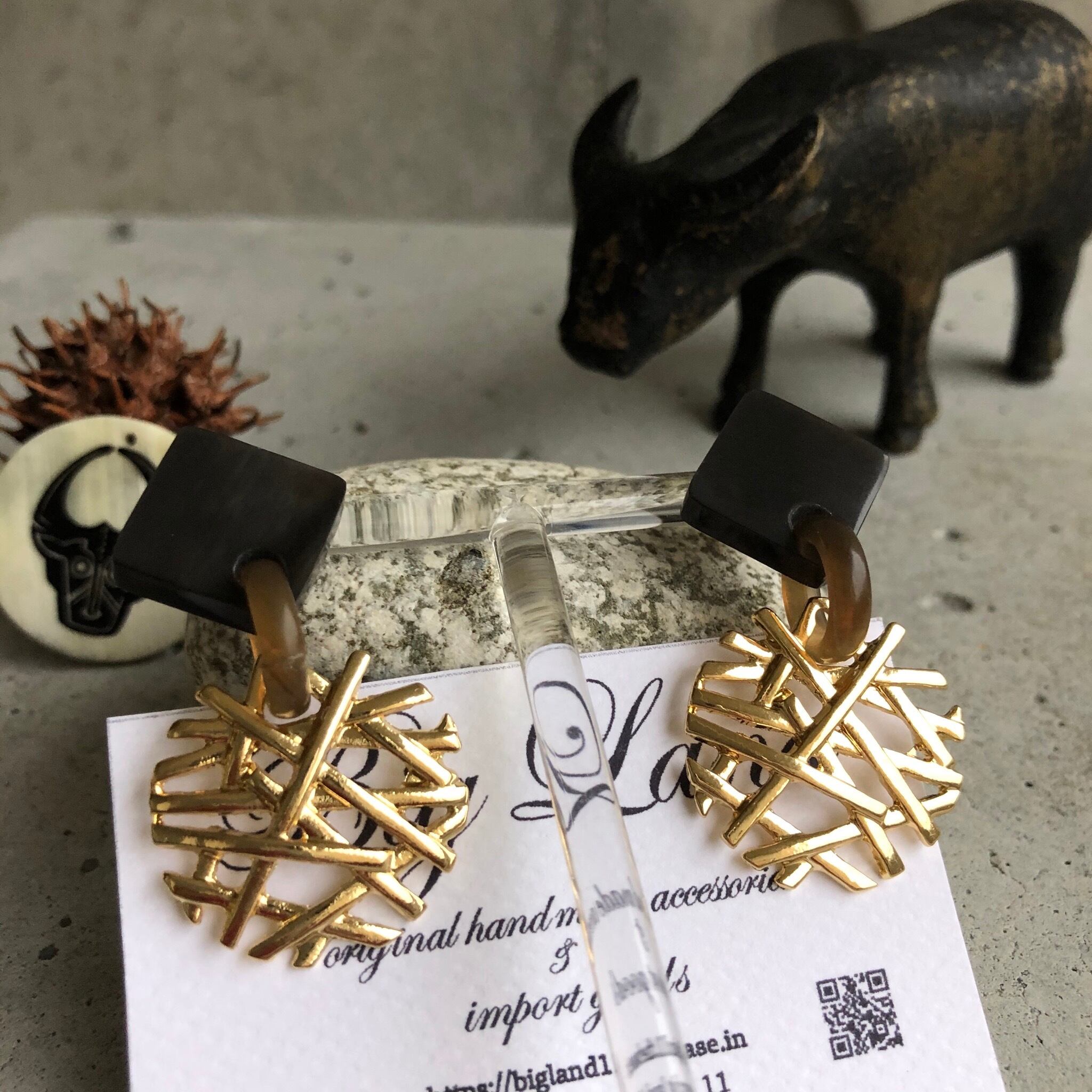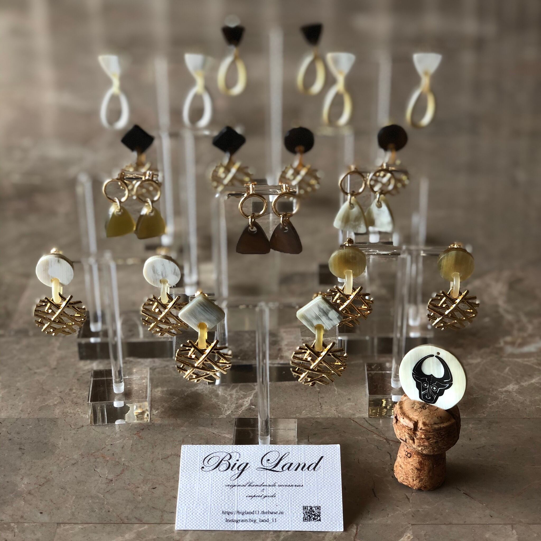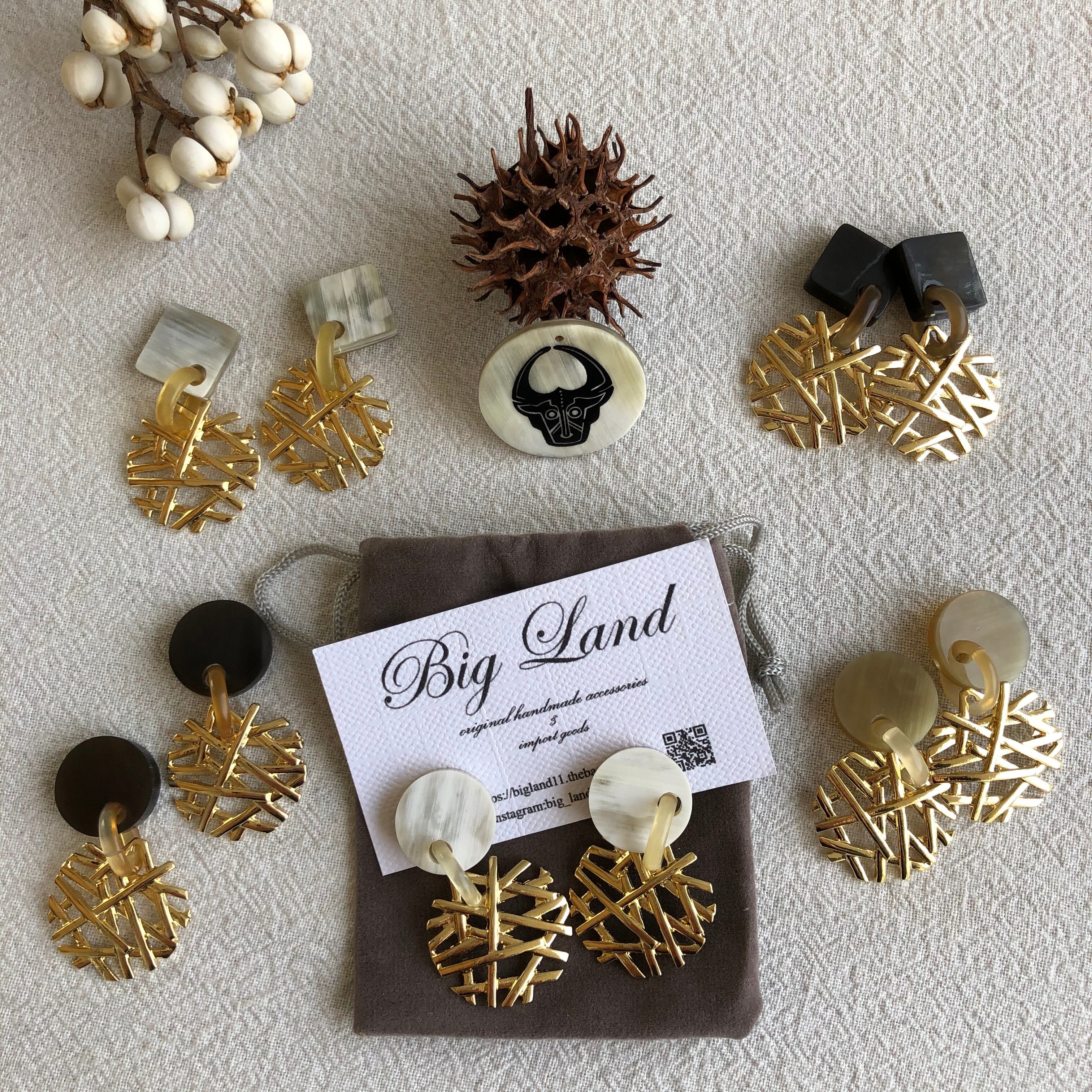 水牛とゴールドを組み合わせラグジュアリーに仕上げ華やかで大人っぽいデザインは、お出かけやパーティースタイルにも使え、天然の水牛と組み合わせる事により高級感が増し、若い方からマダムにと幅広い年齢層にご愛用して頂けます‼️