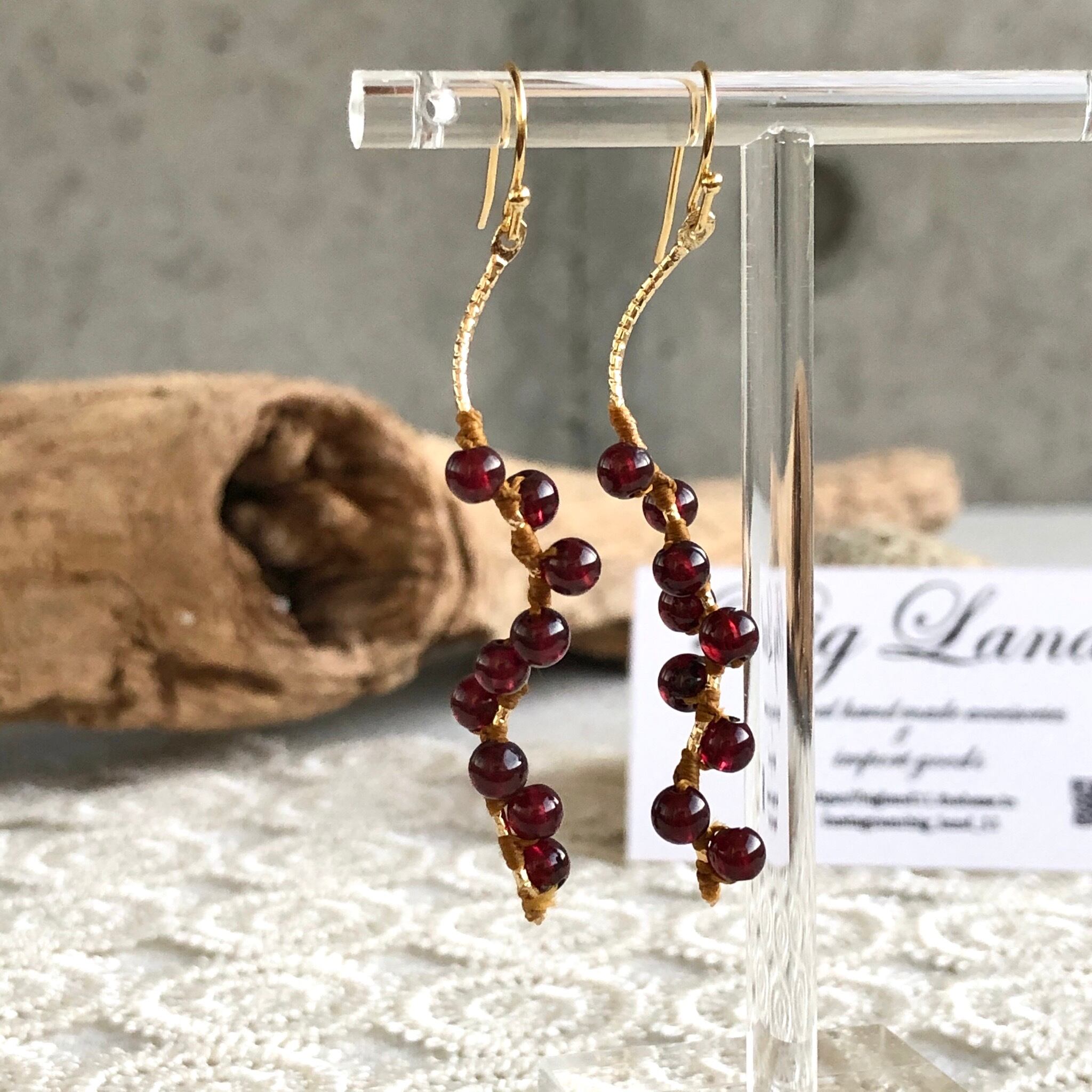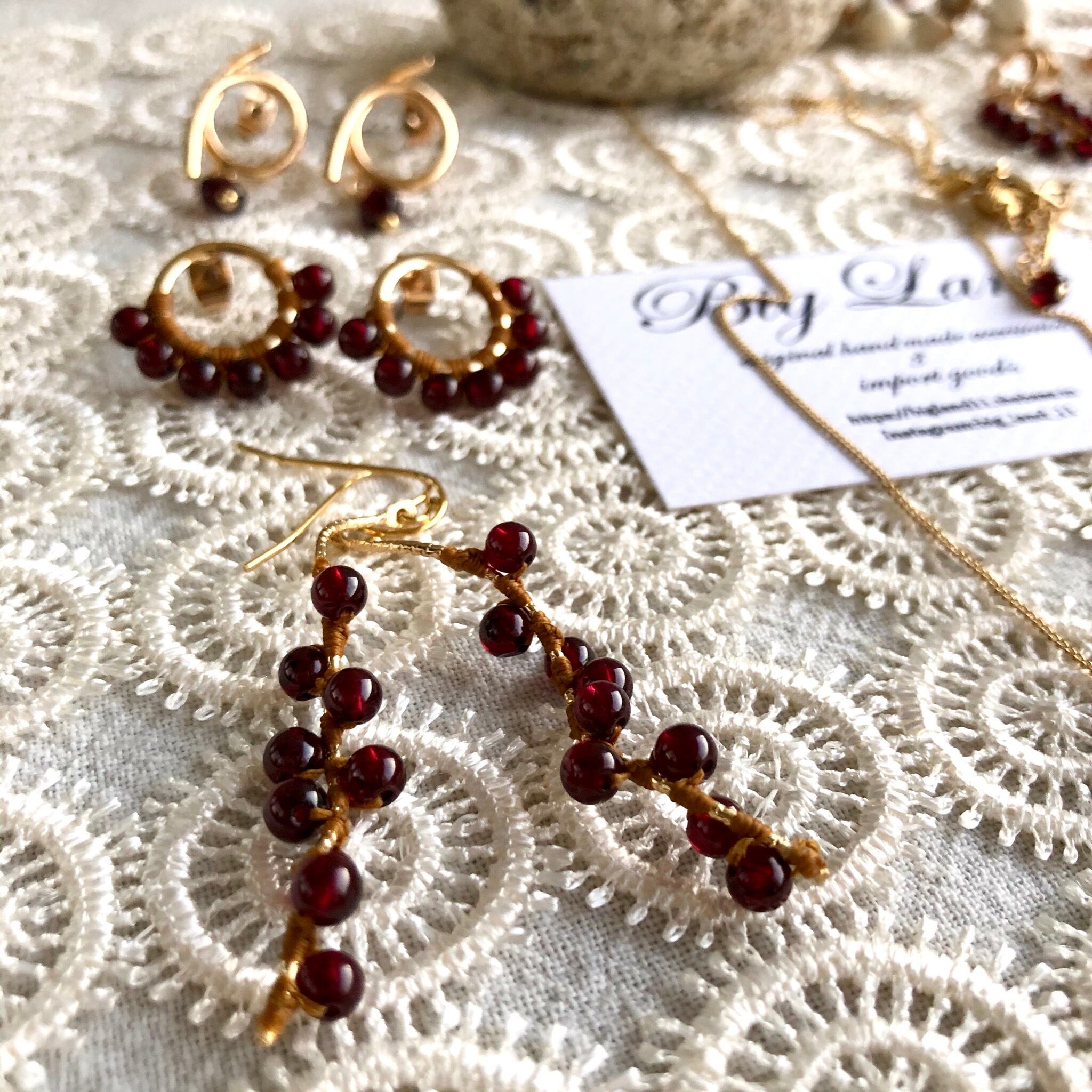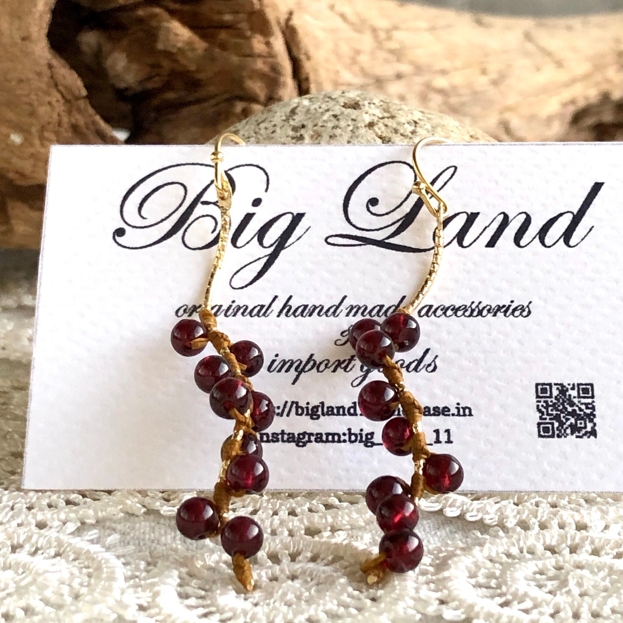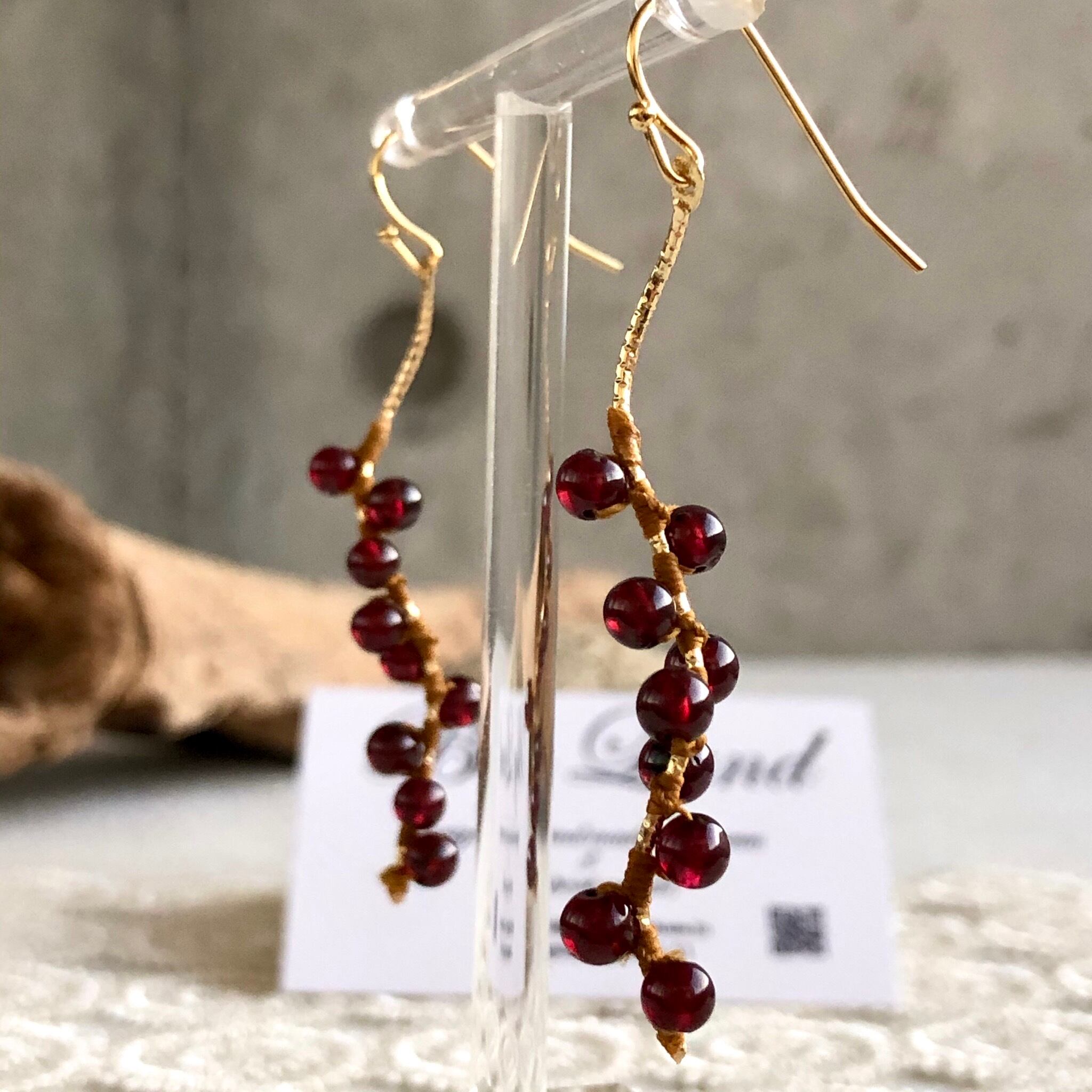 一粒一粒手間をかけて糸でひと編みひと編みしました‼️ザクロ石とも言われ、まるで果実のようなフォルムで揺れ感があり遊び心のあるデザインに