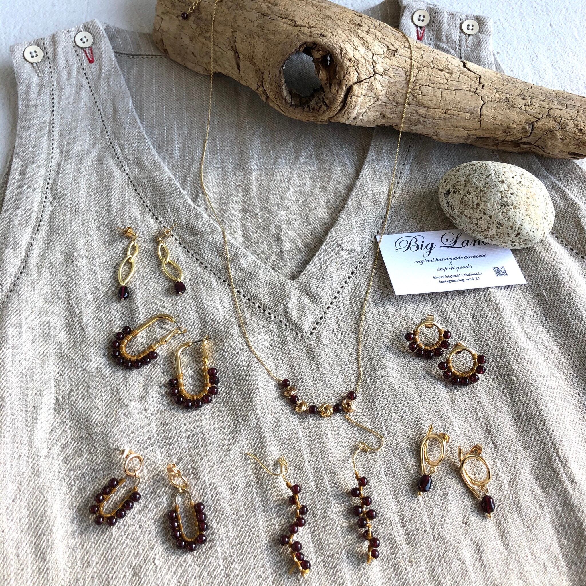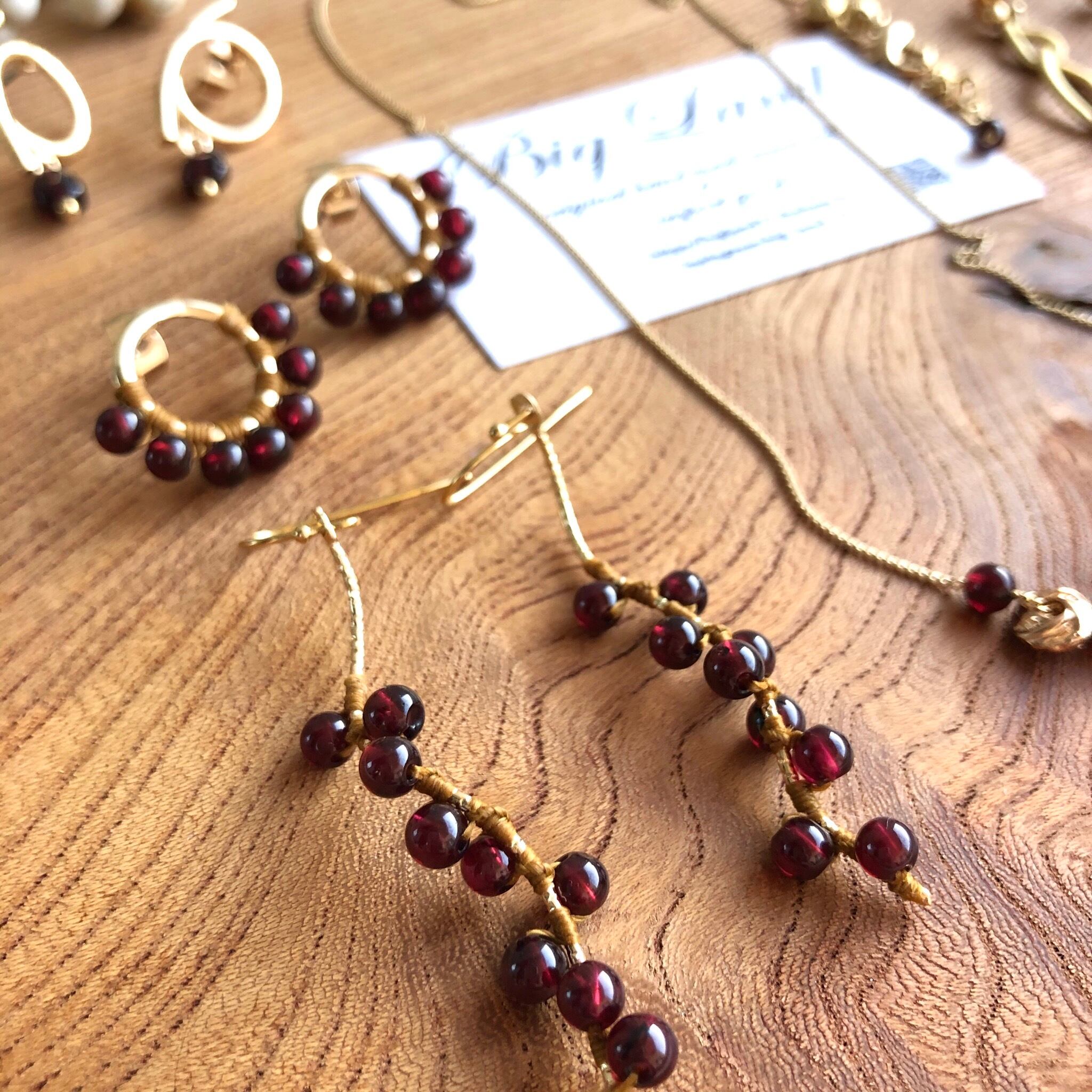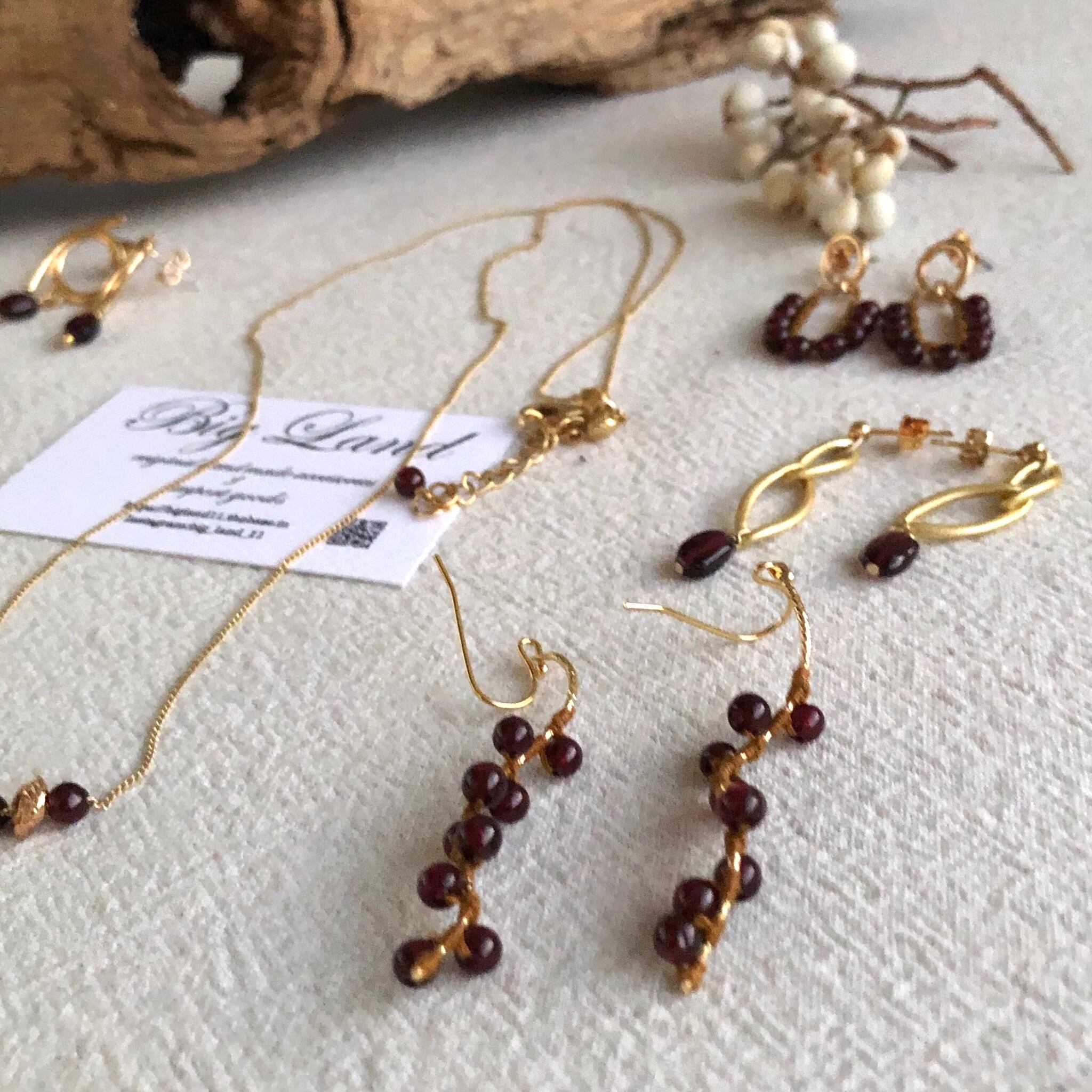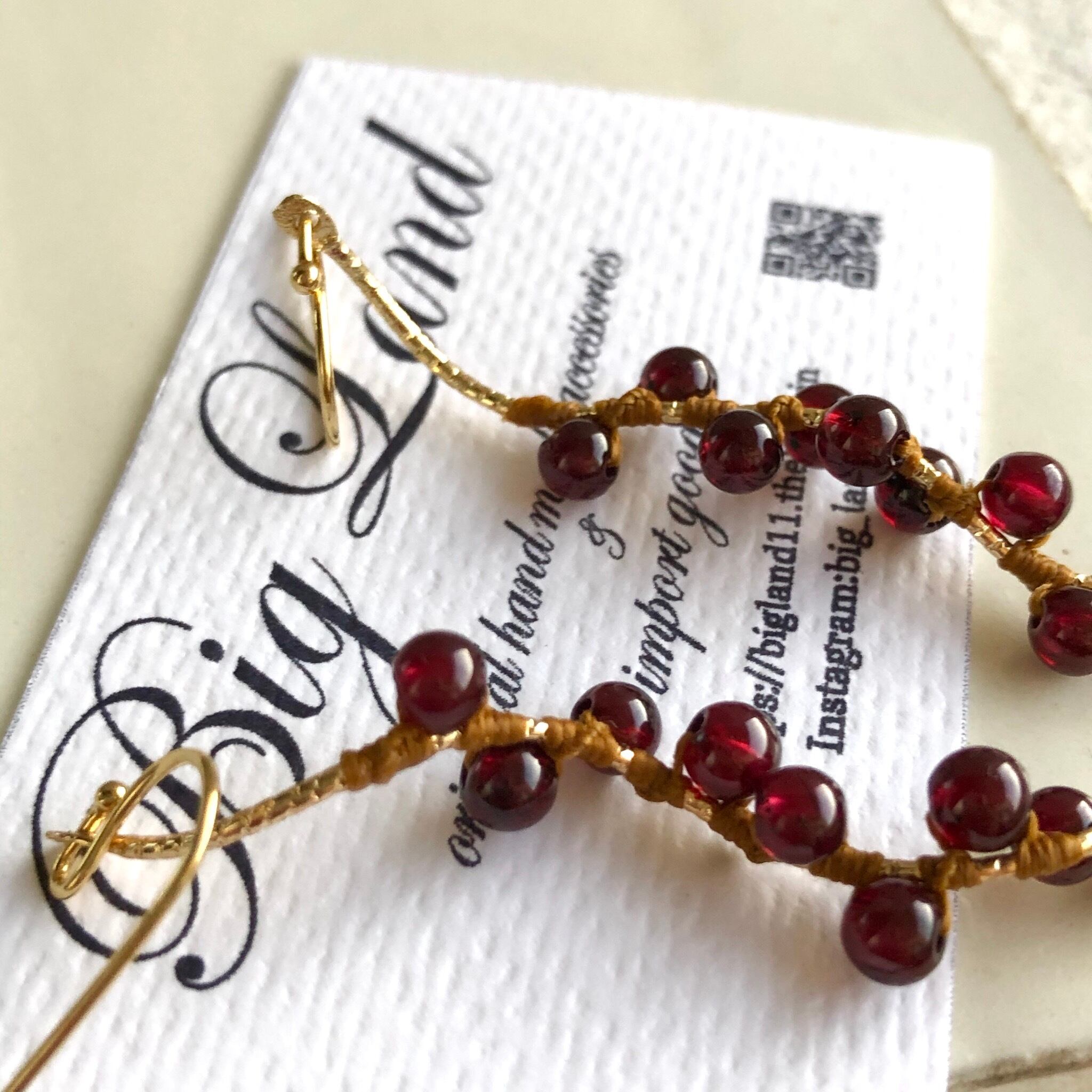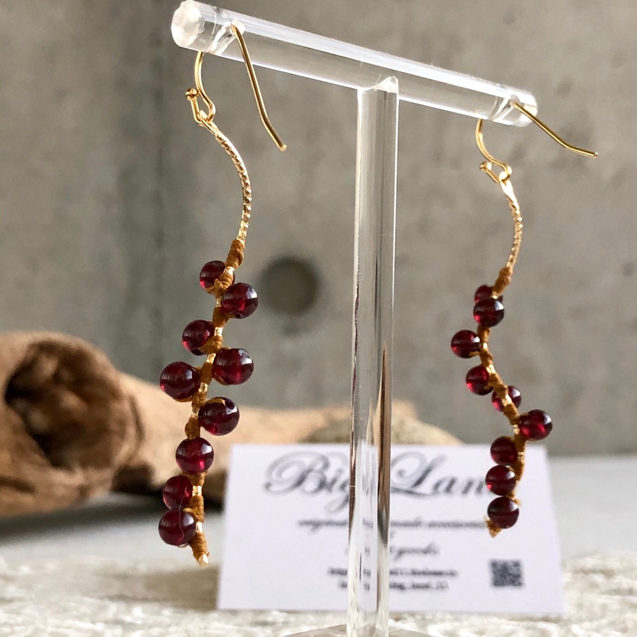 一粒一粒手間をかけて糸でひと編みひと編みしました‼️ザクロ石とも言われ、まるで果実のようなフォルムで揺れ感があり遊び心のあるデザインに