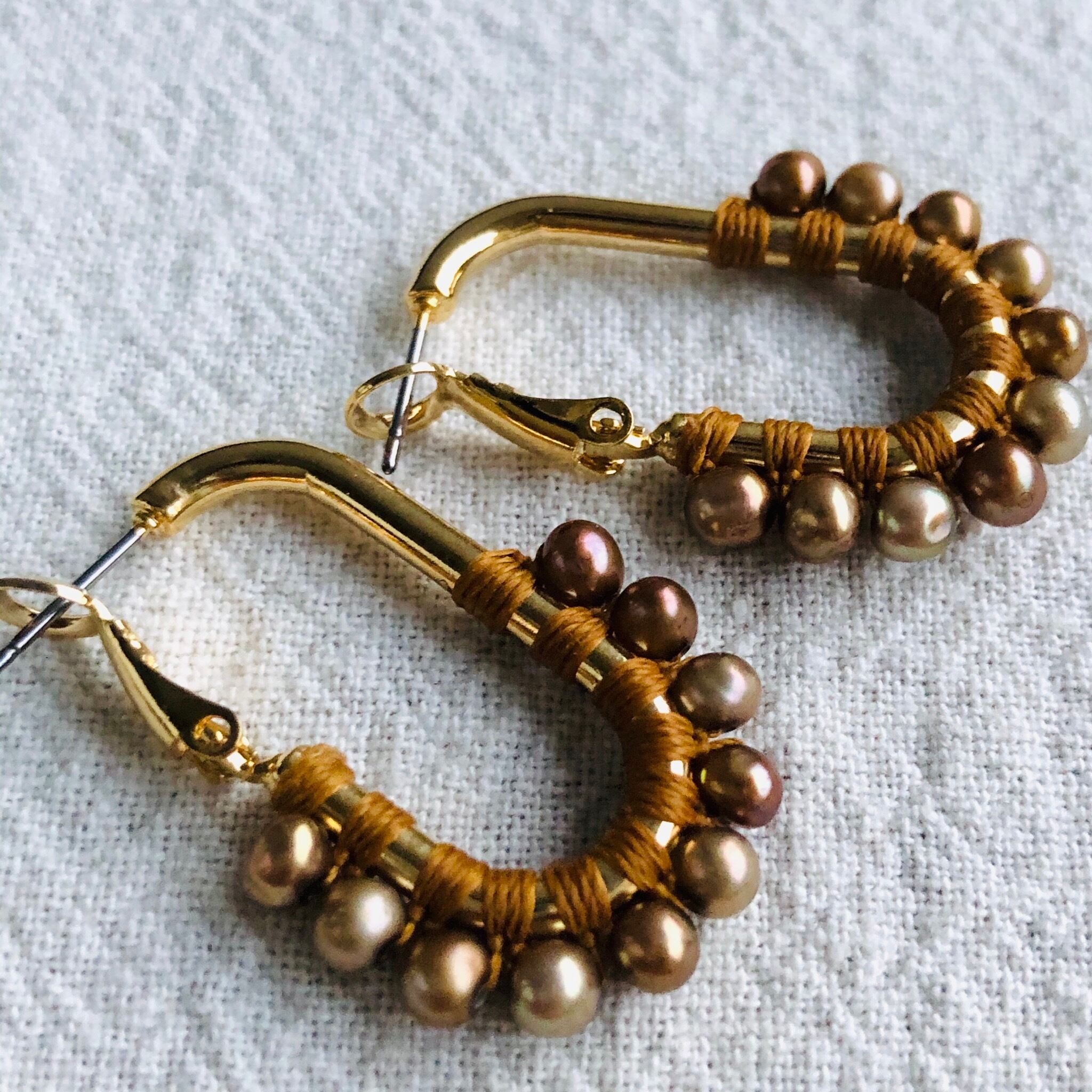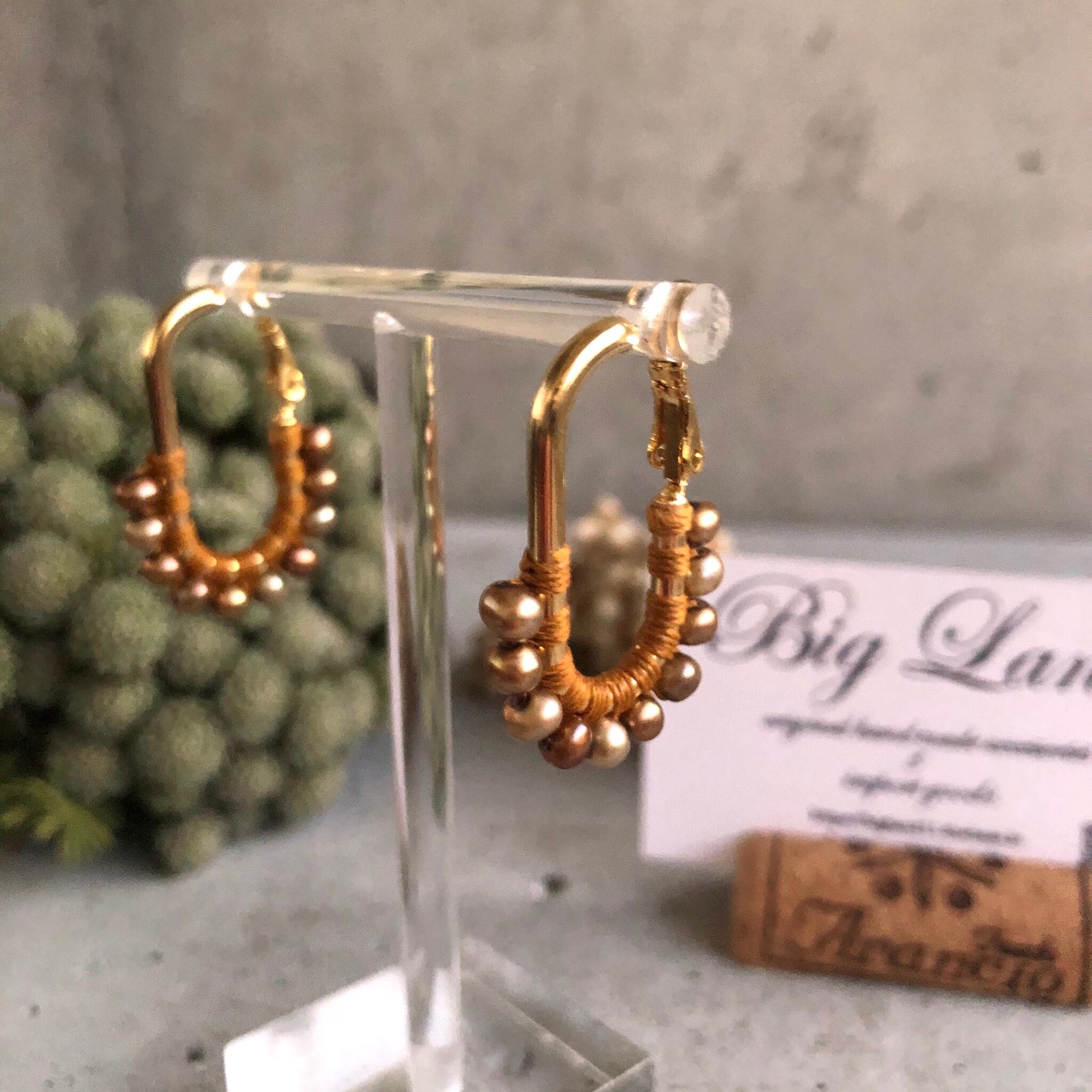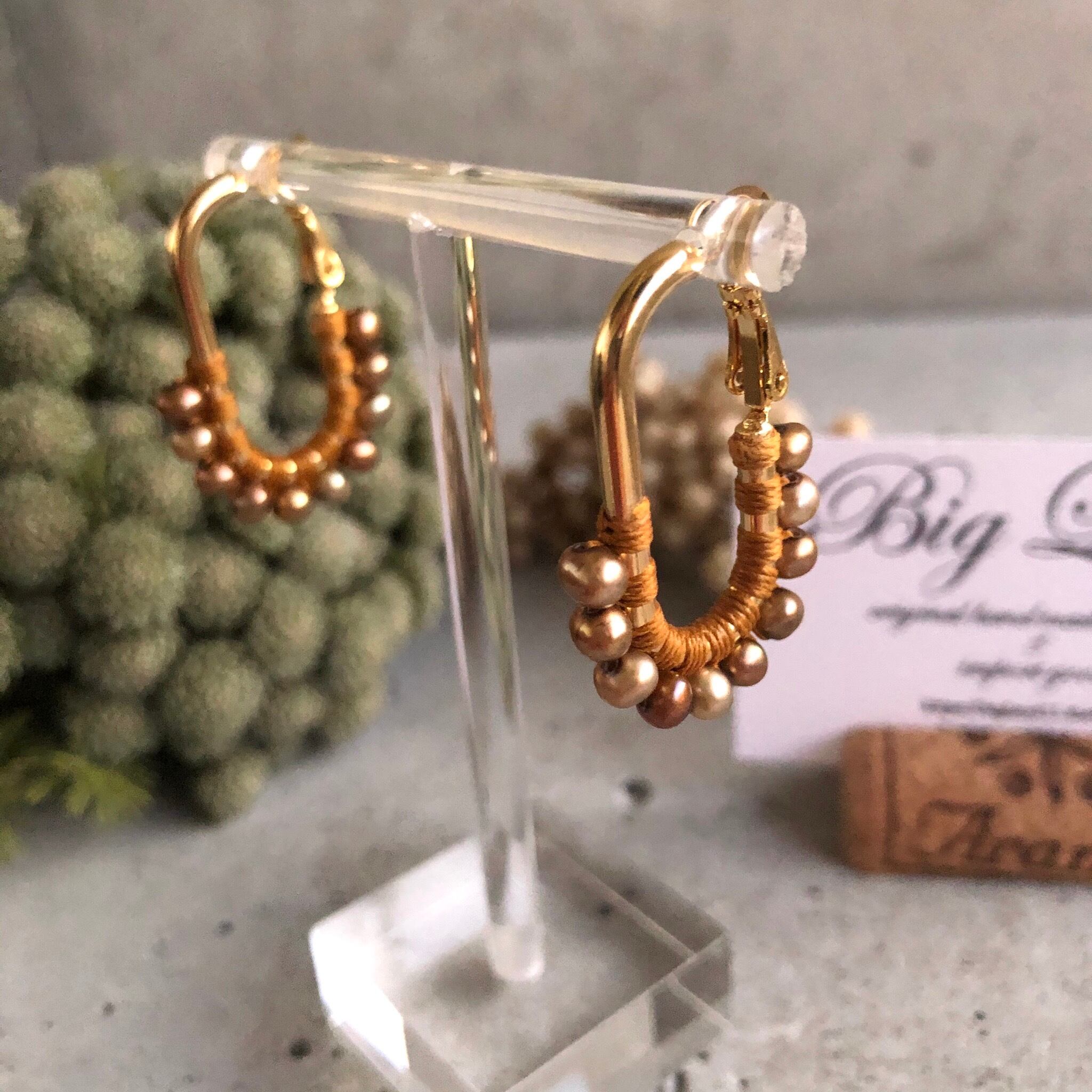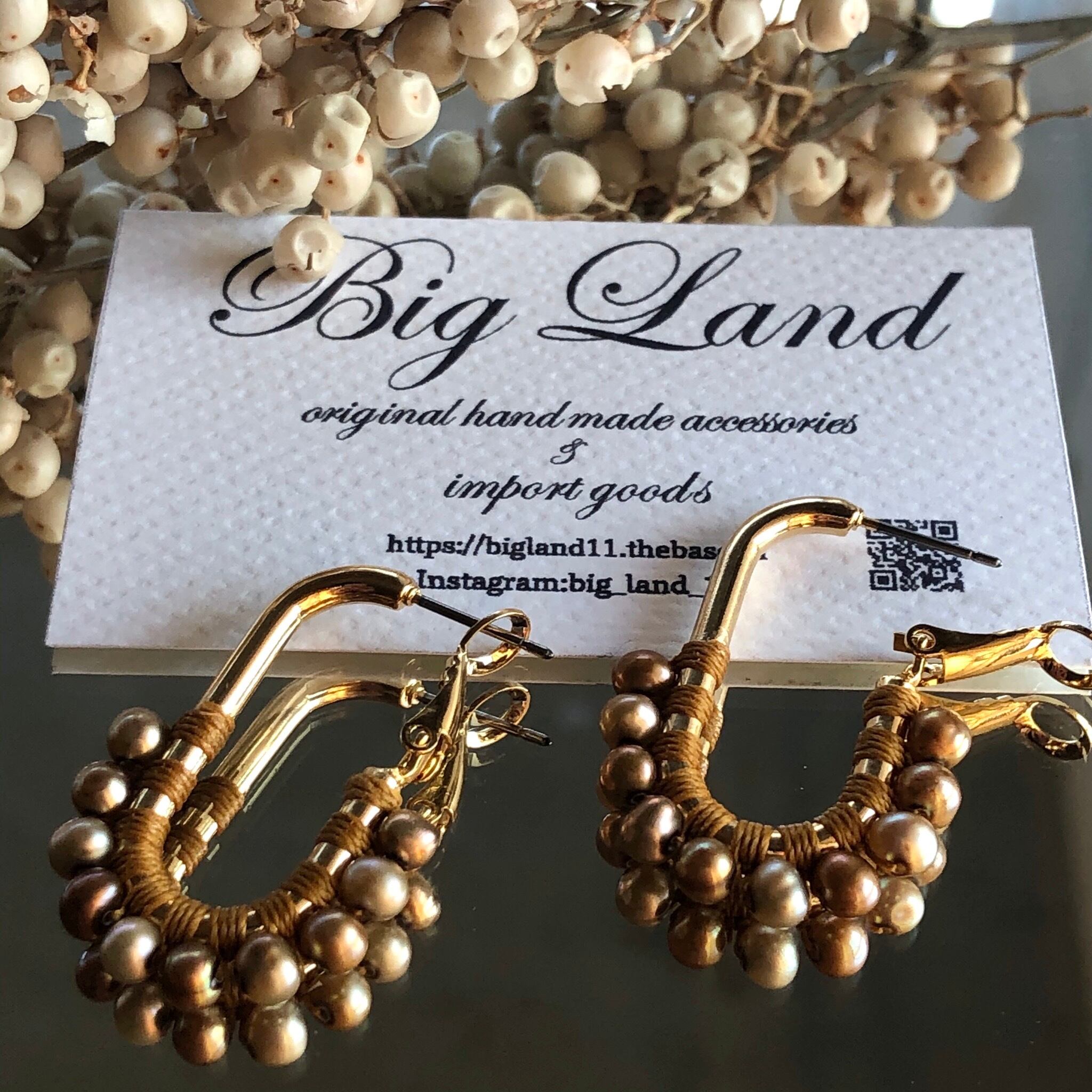 開閉式のぽってりした重厚感あるフープが高品質で、一粒一粒手間をかけて糸でひと編みひと編みし高級感ある縦長のフープは小顔効果があり私自身も愛用中で周りの方から高評価でオーダーも入り、今回色違いで沢山ご用意しました‼️