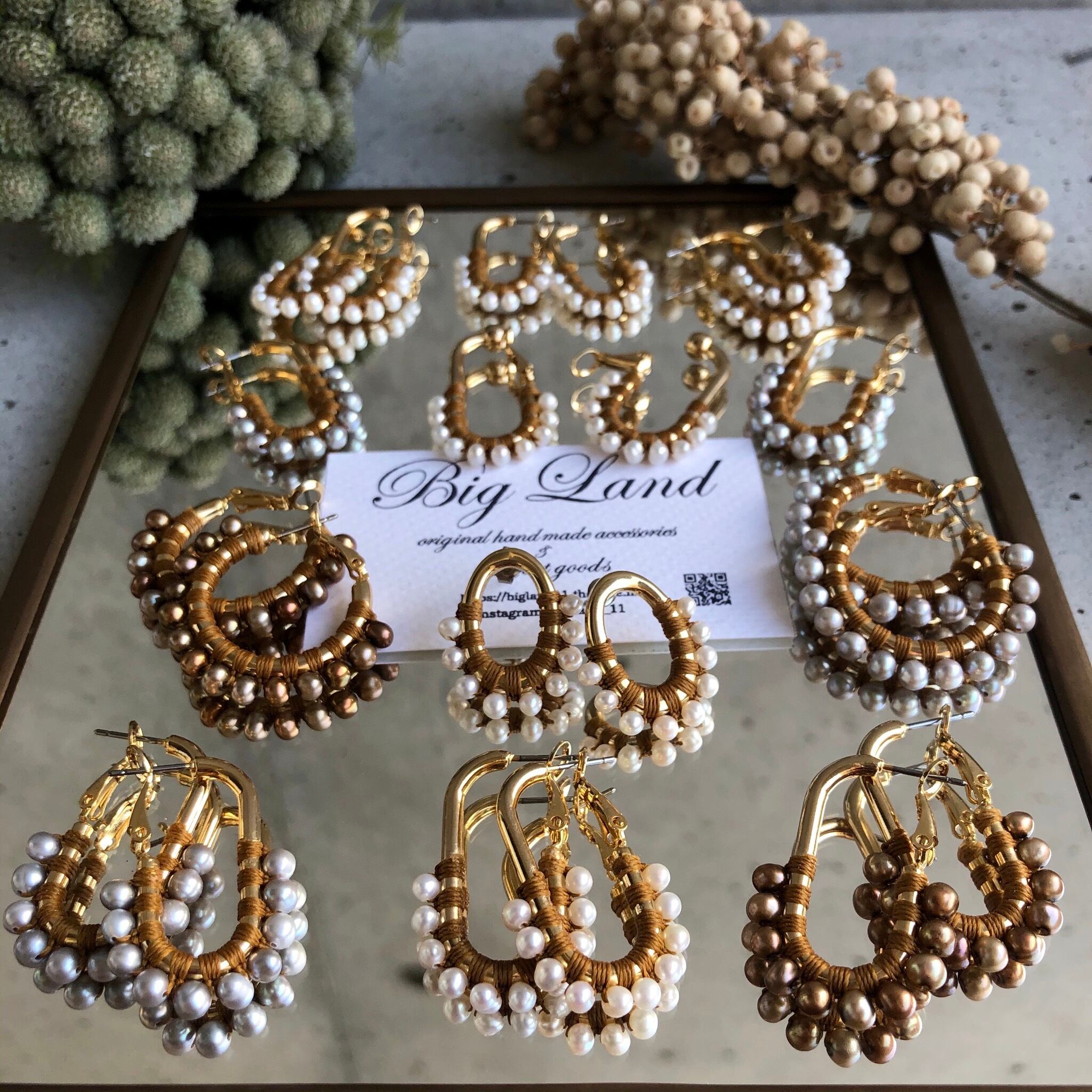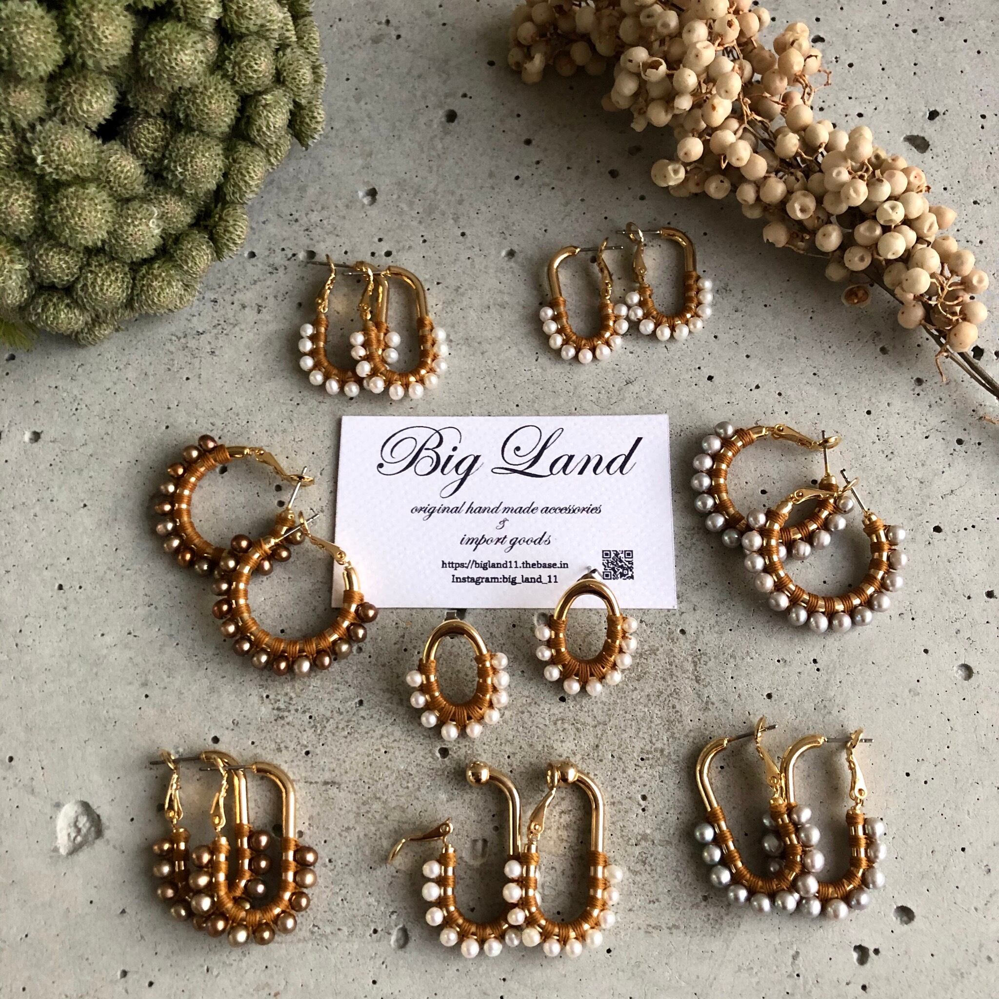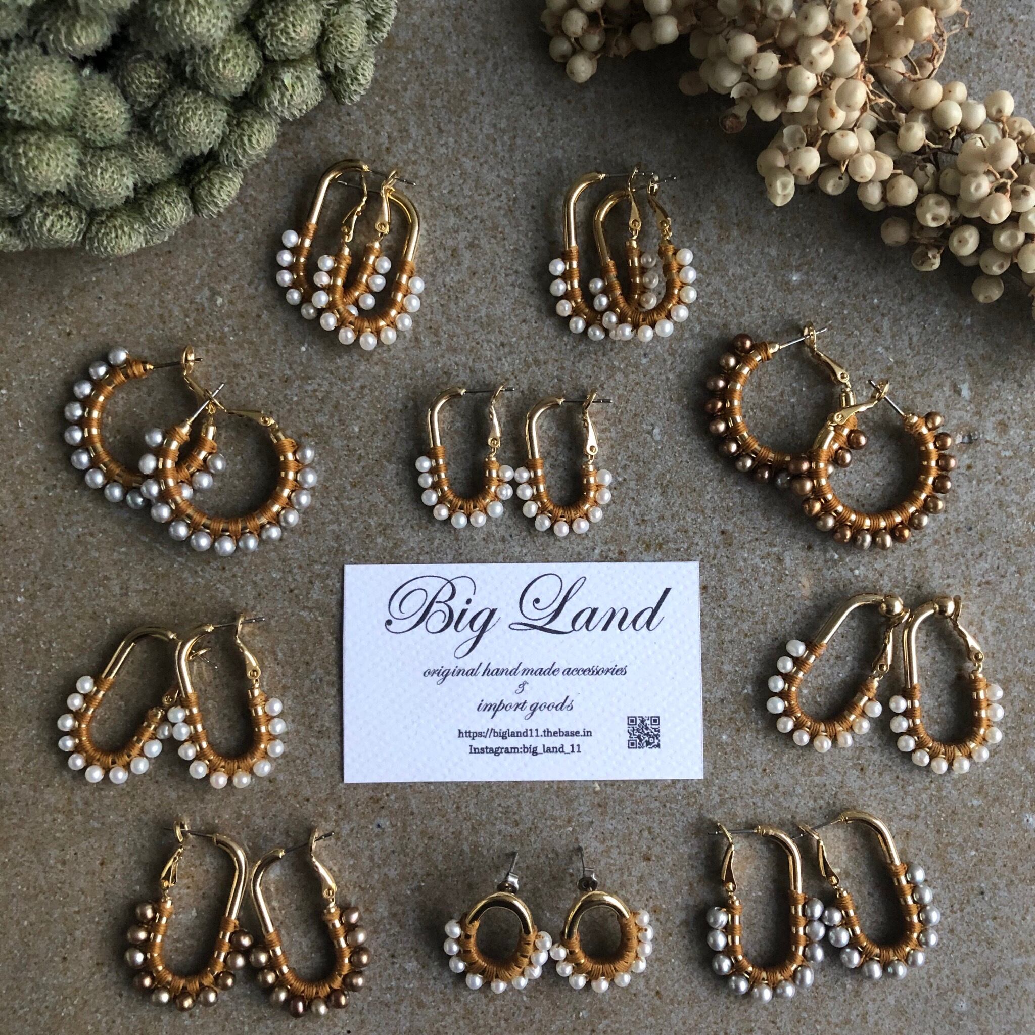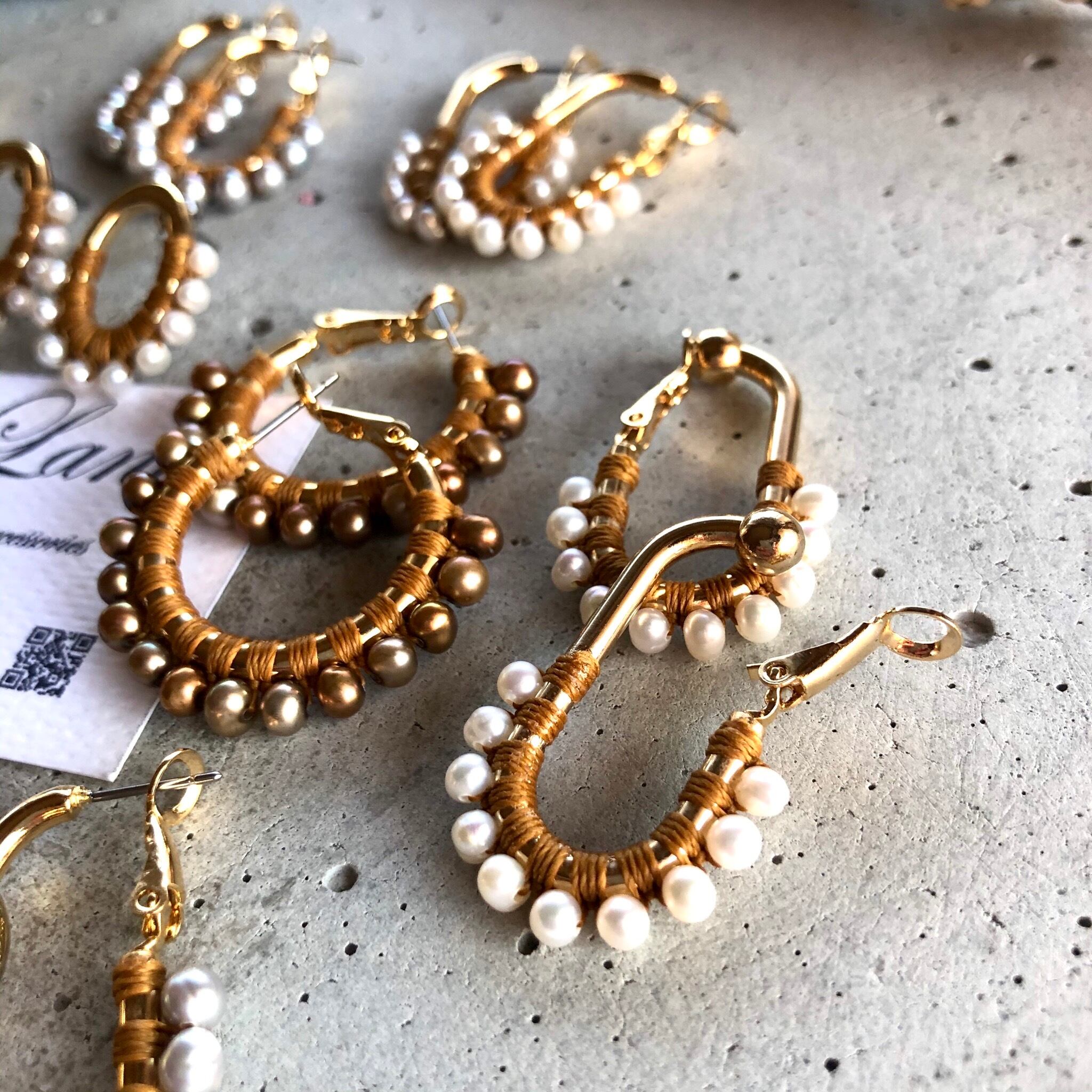 一粒一粒、手間をかけて糸でひと編みひと編みし高級感ある縦長のフープは小顔効果があり私自身も愛用中で周りの方からも高評価でオーダーも入り、今回色違いで沢山ご用意しました‼️