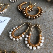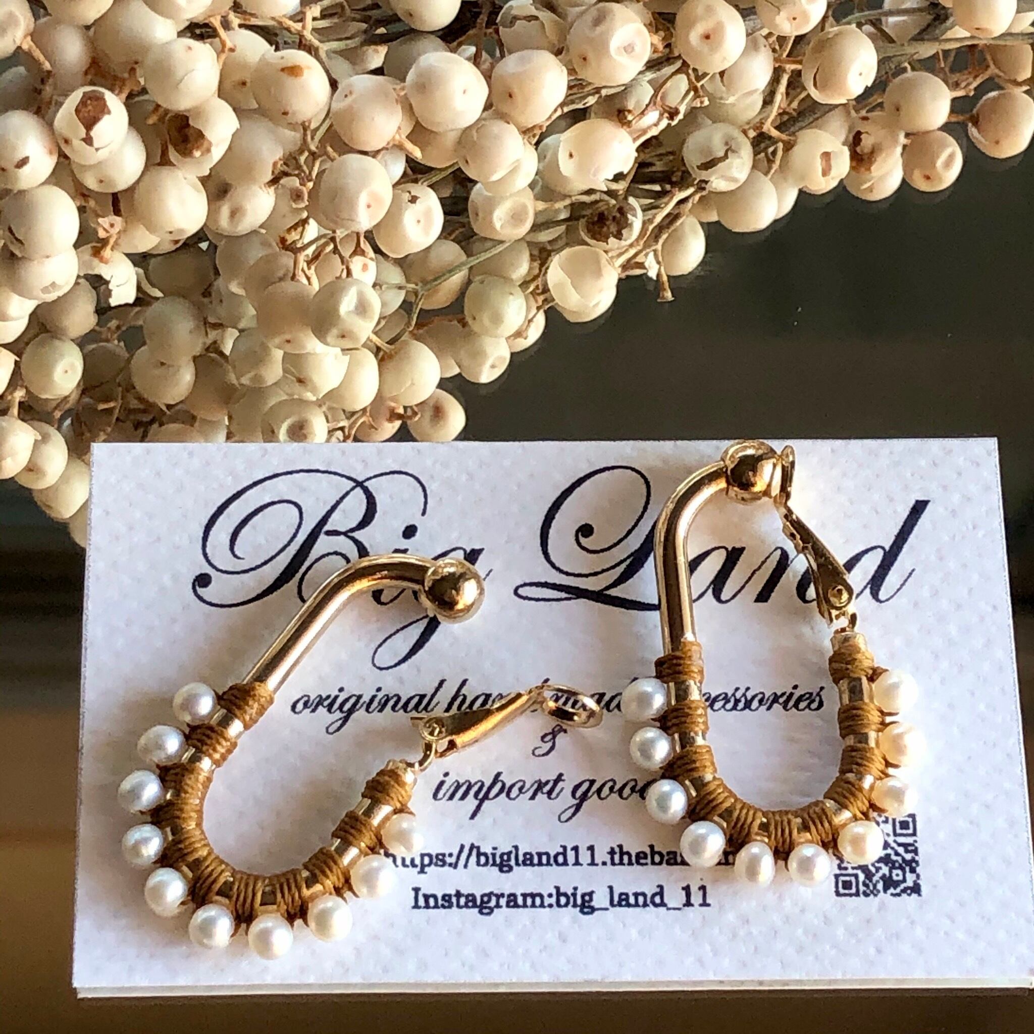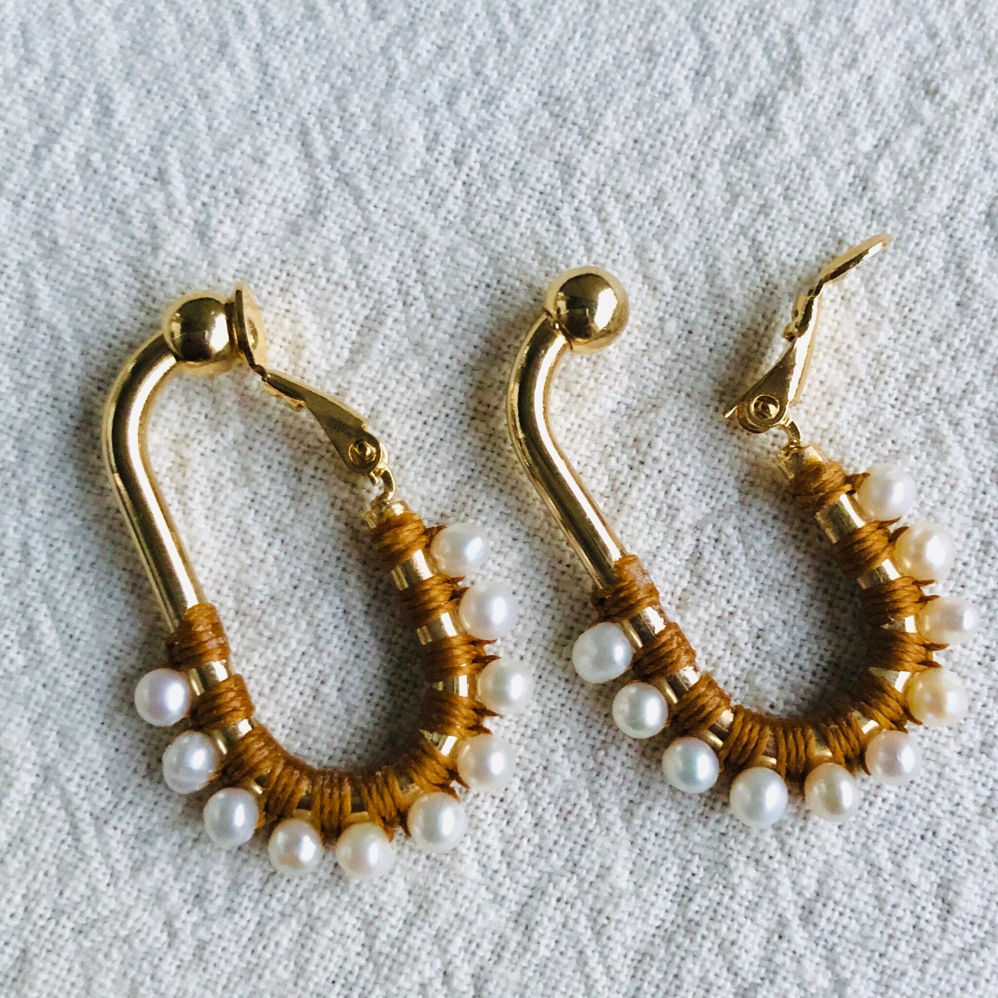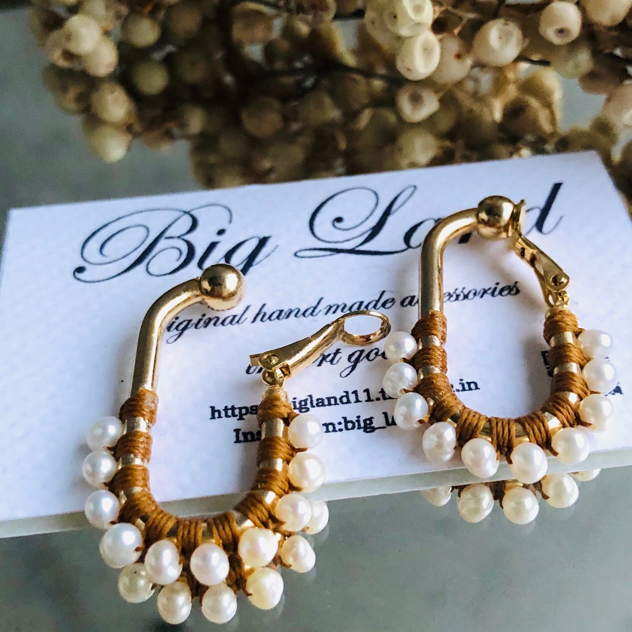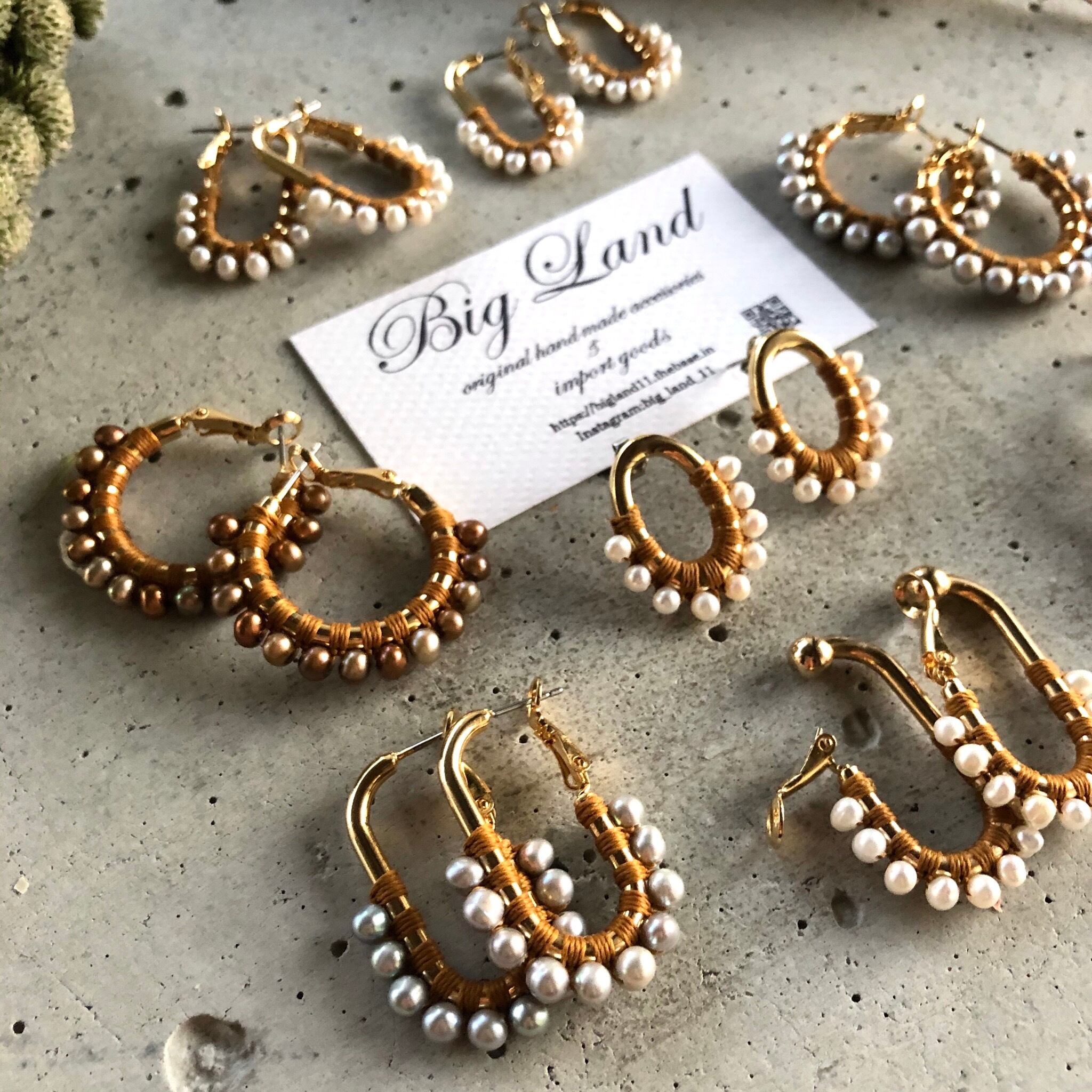 一粒一粒、手間をかけて糸でひと編みひと編みし高級感ある縦長のフープは小顔効果があり私自身も愛用中で周りの方からも高評価でオーダーも入り、今回色違いで沢山ご用意しました‼️