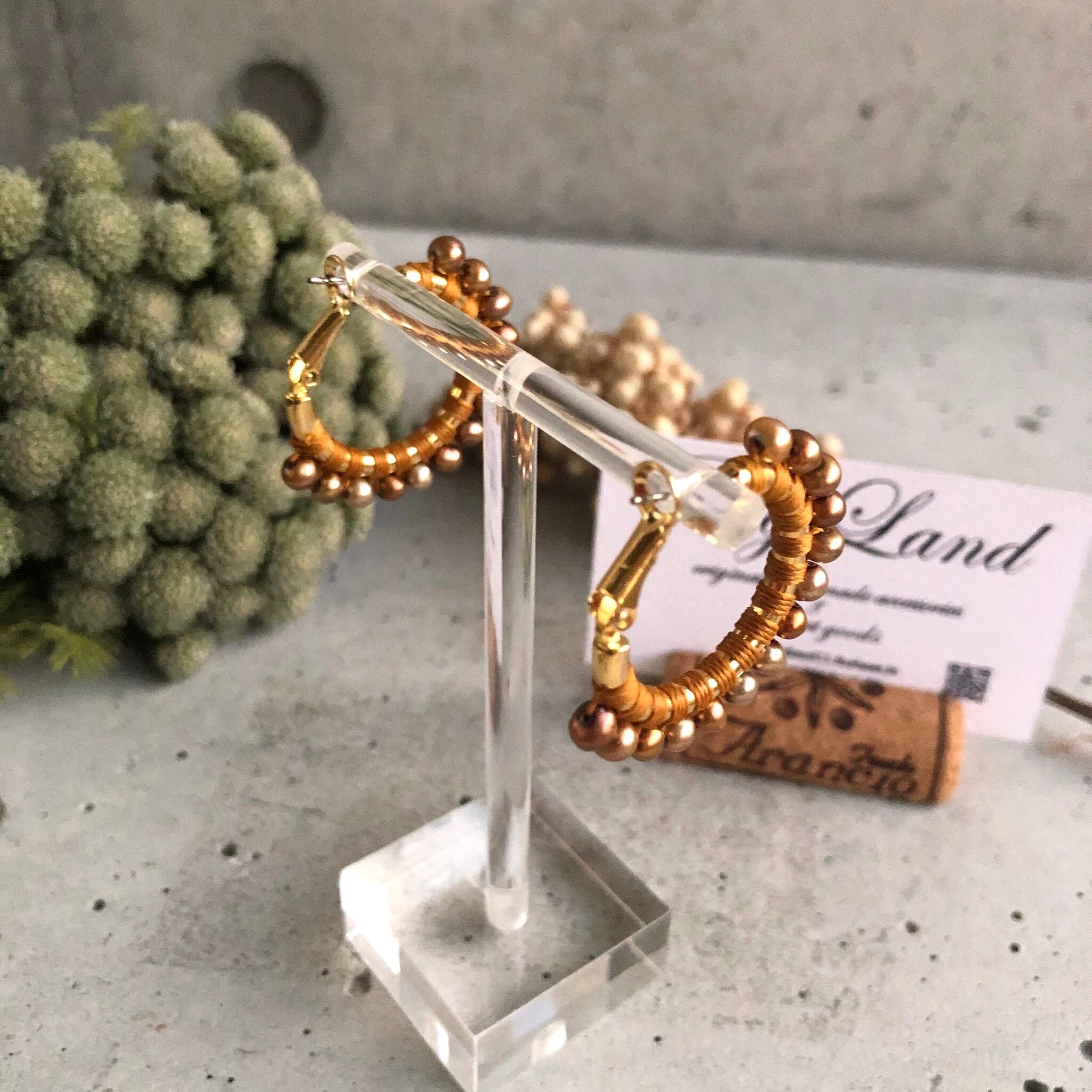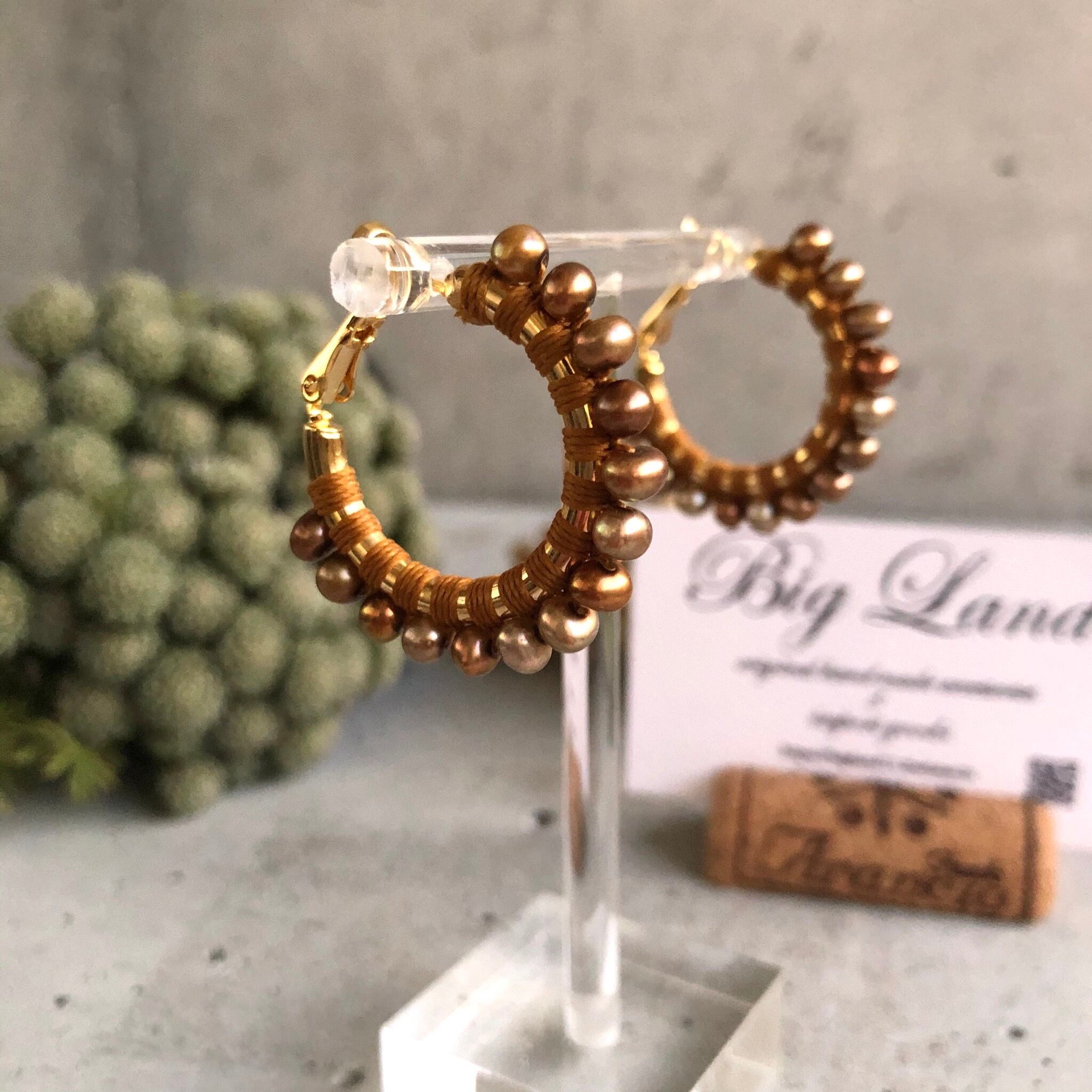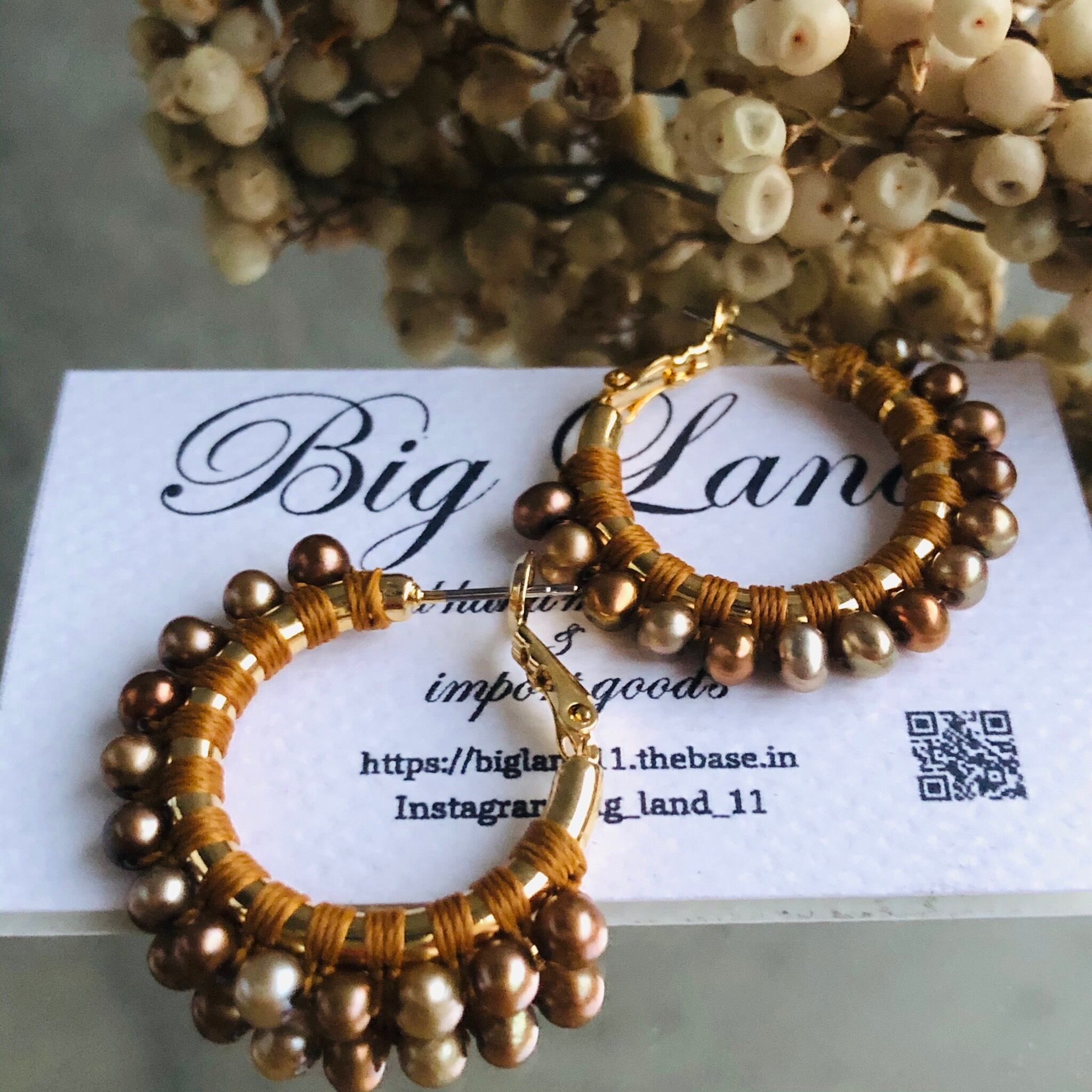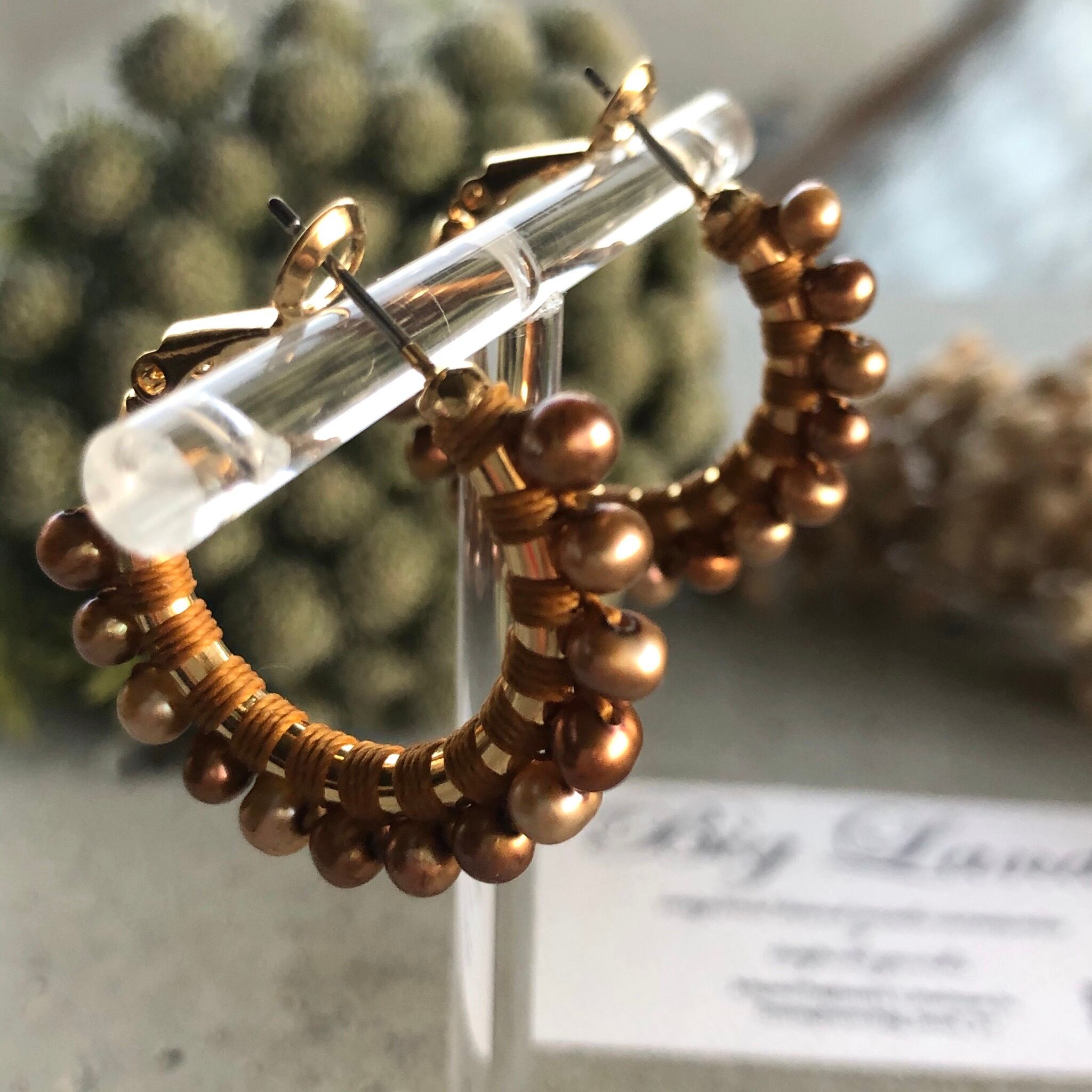 開閉式のぽってりした重厚感あるフープと大変美しい照りのあるパールを一粒一粒糸で丁寧にしっかり編みあげ、高級感がありどんなお洋服にも合うので出番が多くなると思います‼️