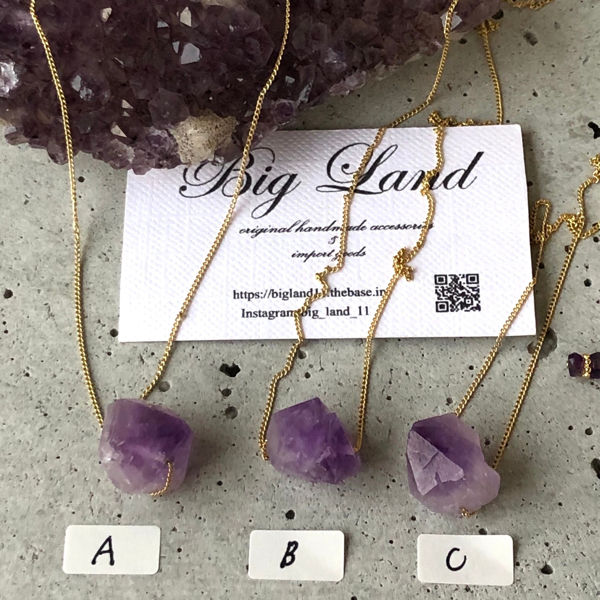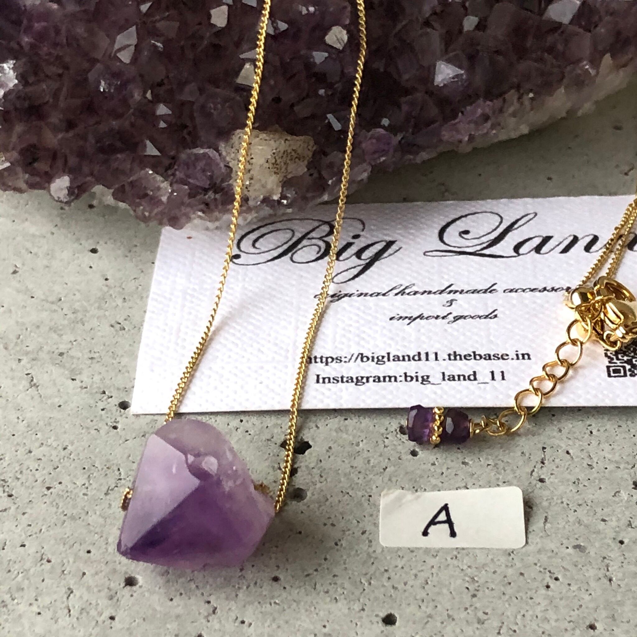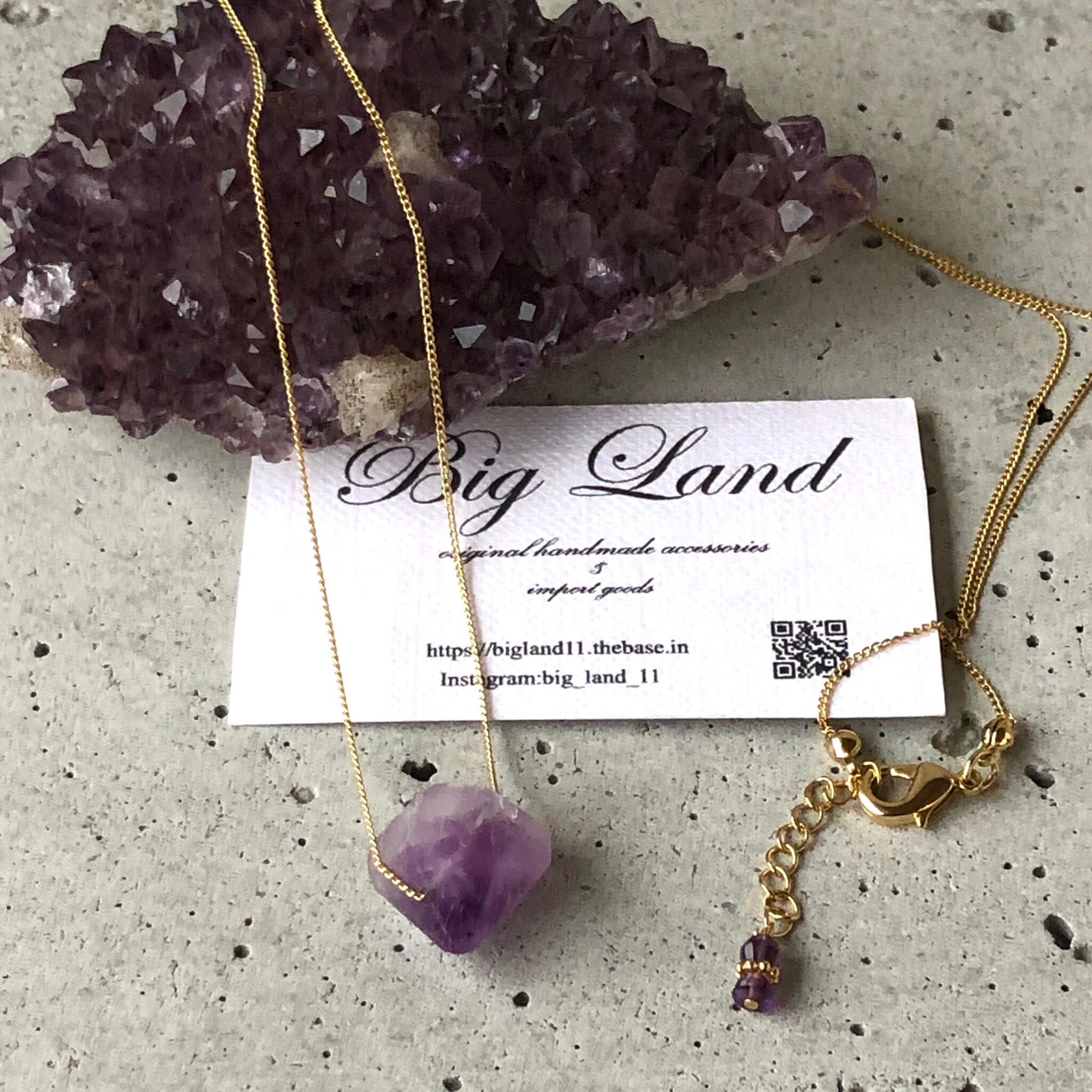 2月生まれのパワーストン、高貴な紫色「アメジスト」美しいライトカラーアメジスト原石を使い自然豊かな魅力のある一点モノのネックレスに仕上げ、若い方からご年配の方にもお使い頂けます✨