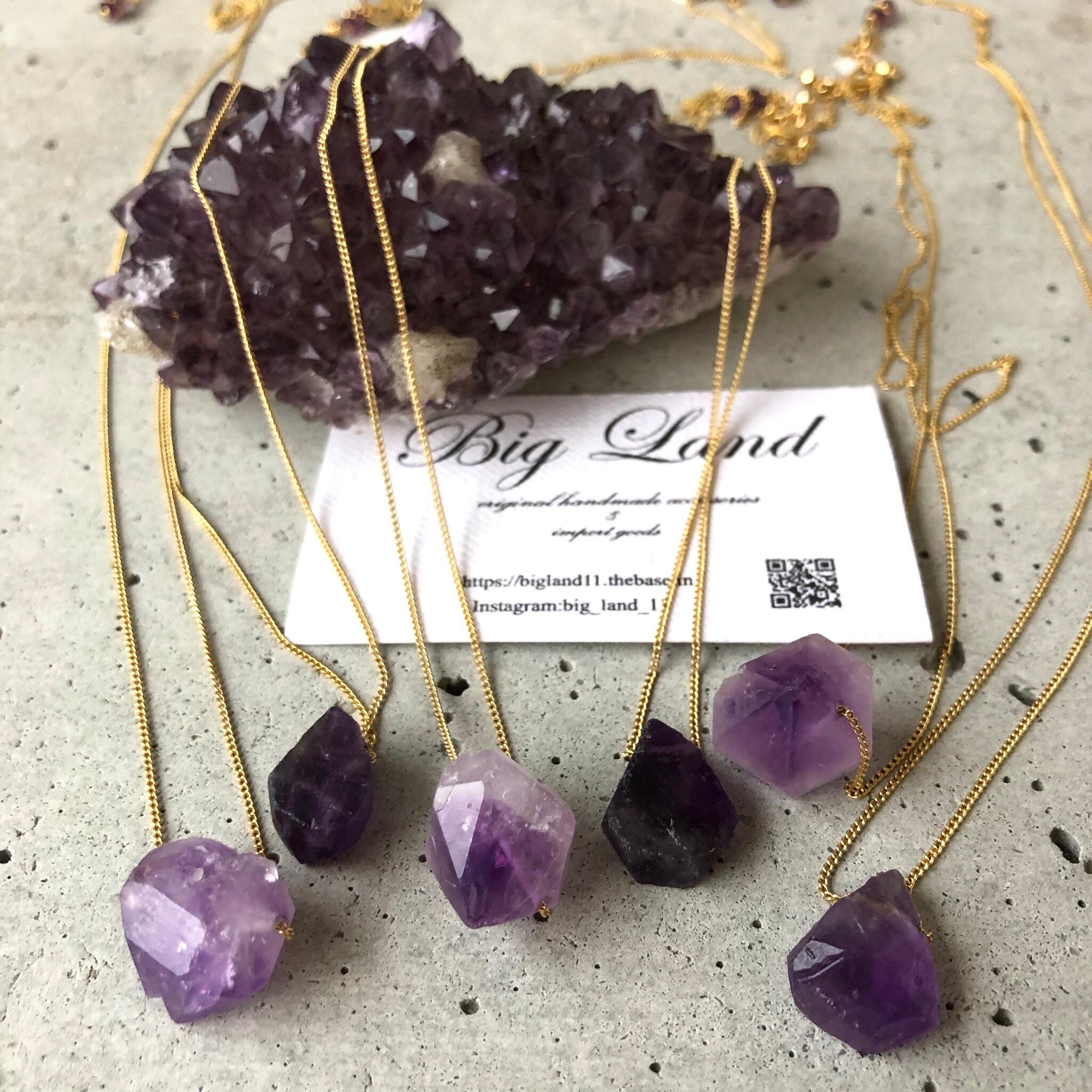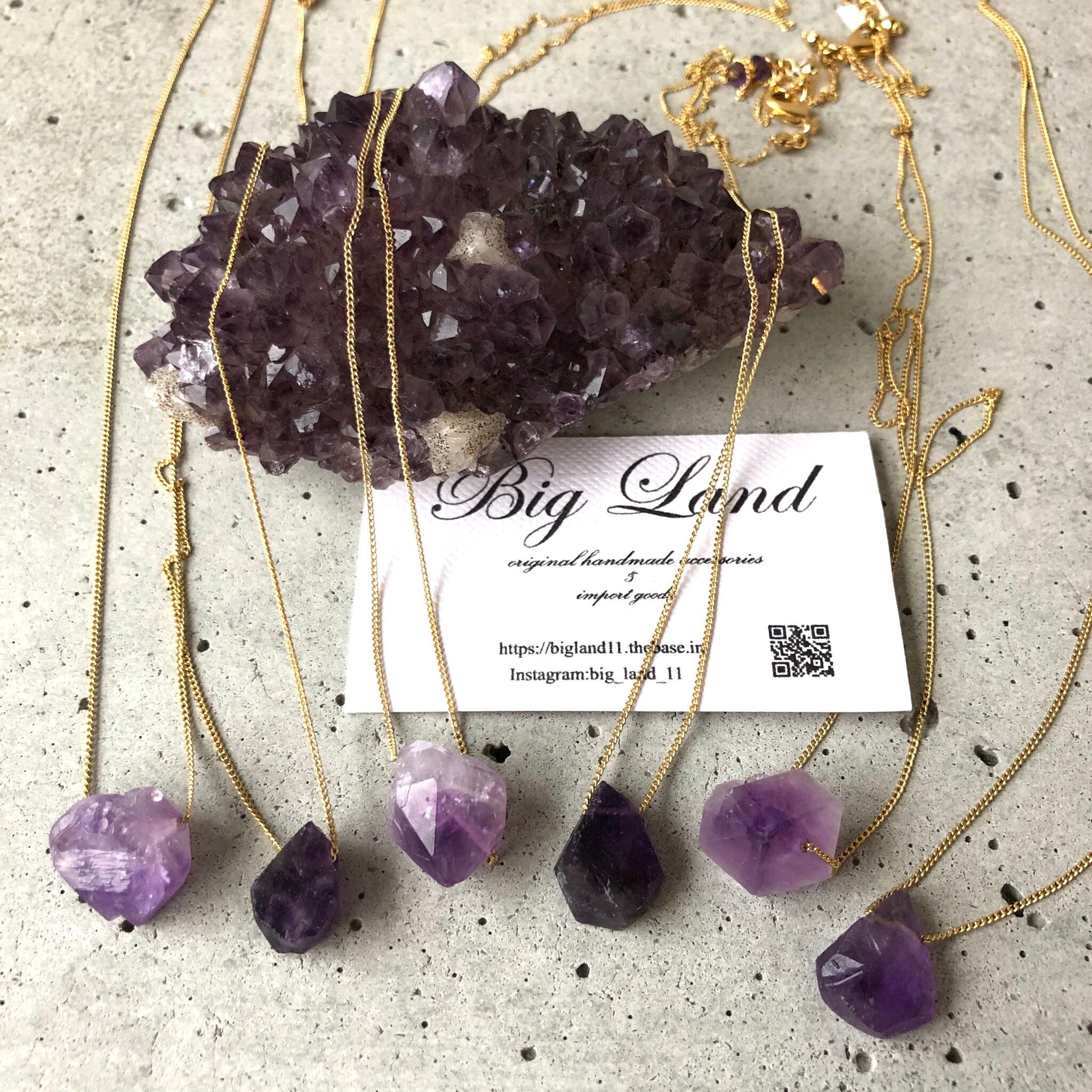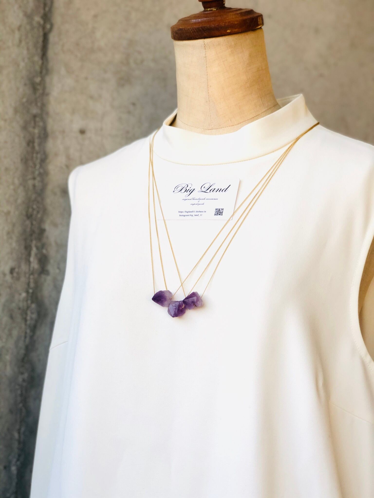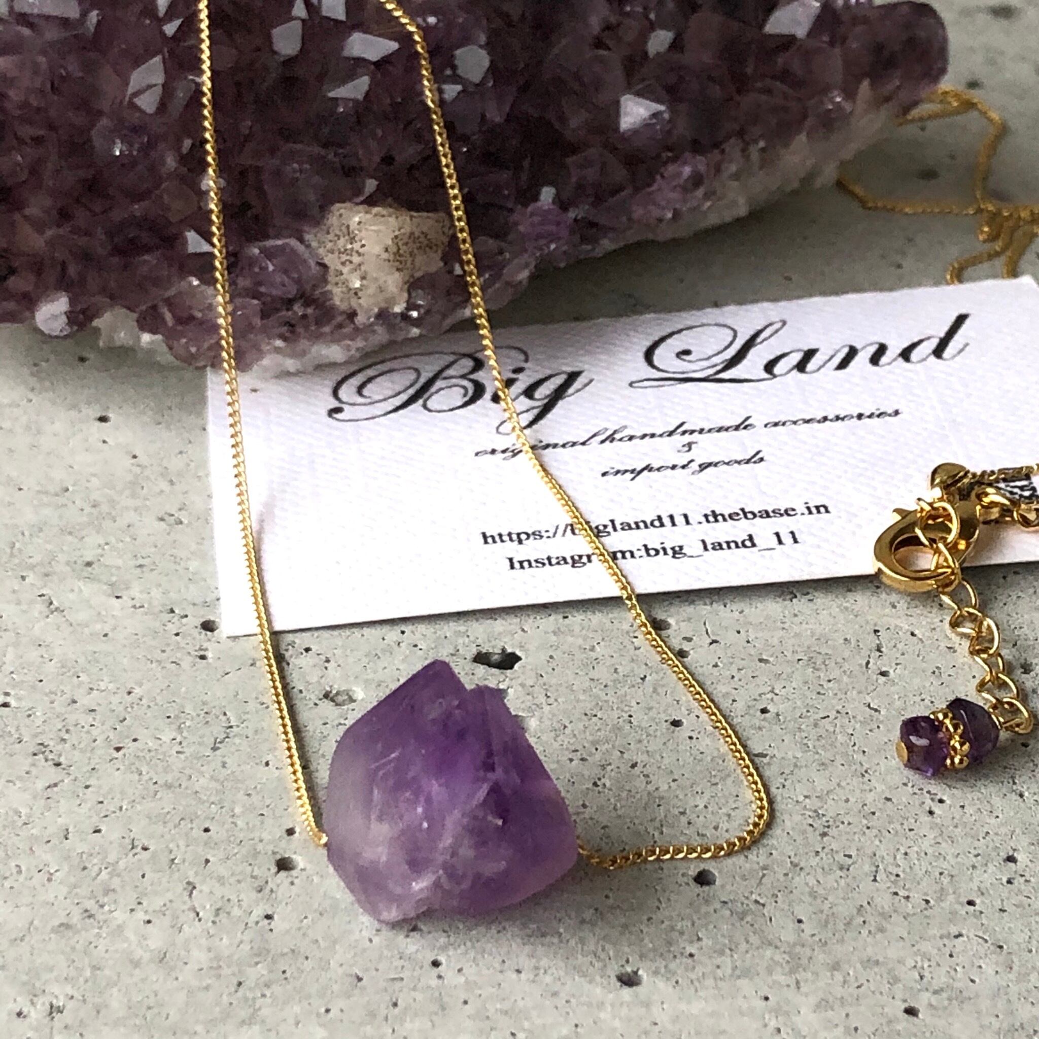 2月生まれのパワーストン、高貴な紫色「アメジスト」美しいライトカラーアメジスト原石を使い自然豊かな魅力のある一点モノのネックレスに仕上げ、若い方からご年配の方にもお使い頂けます✨