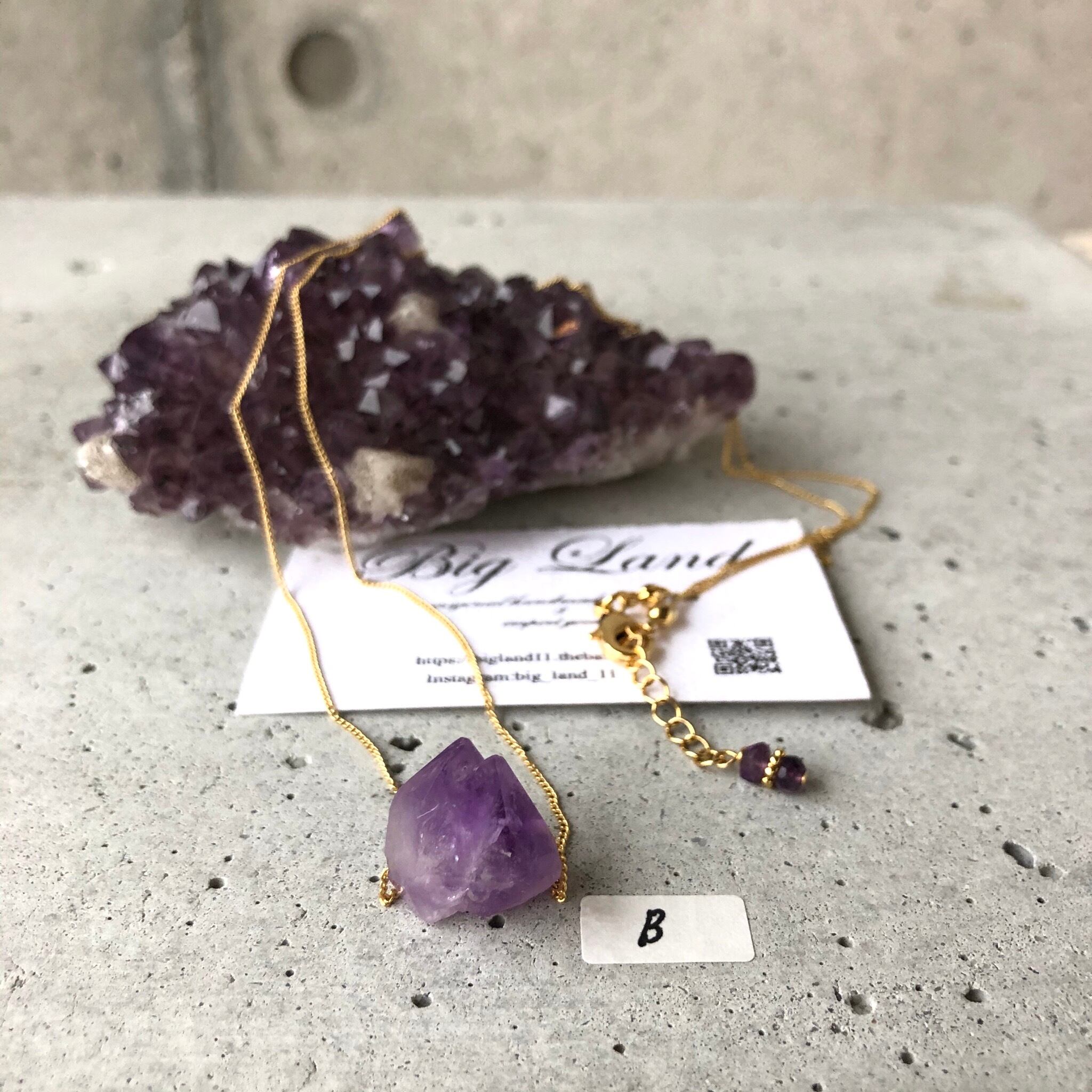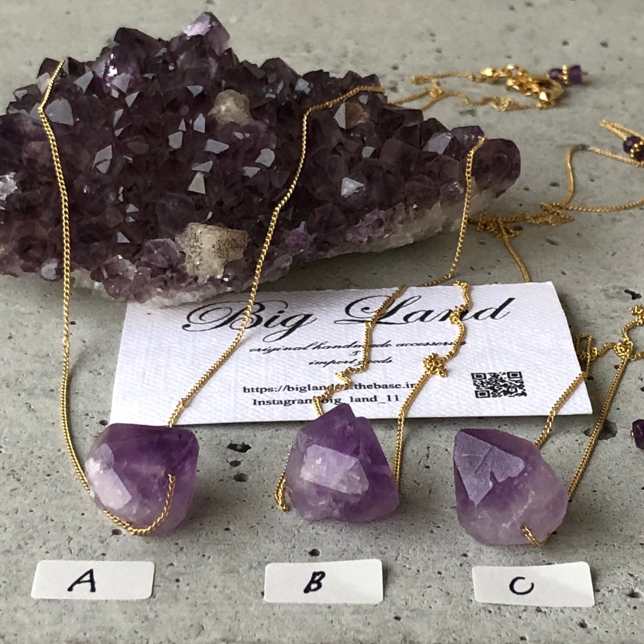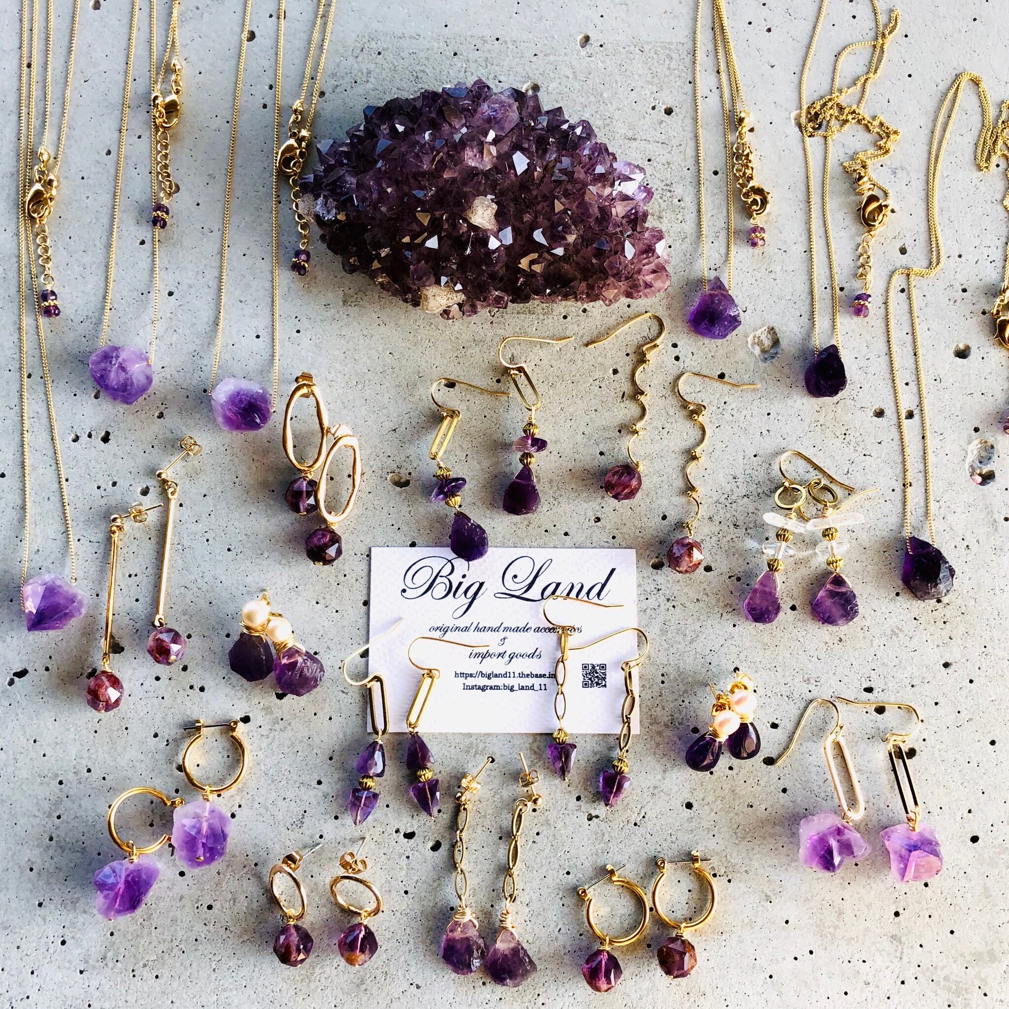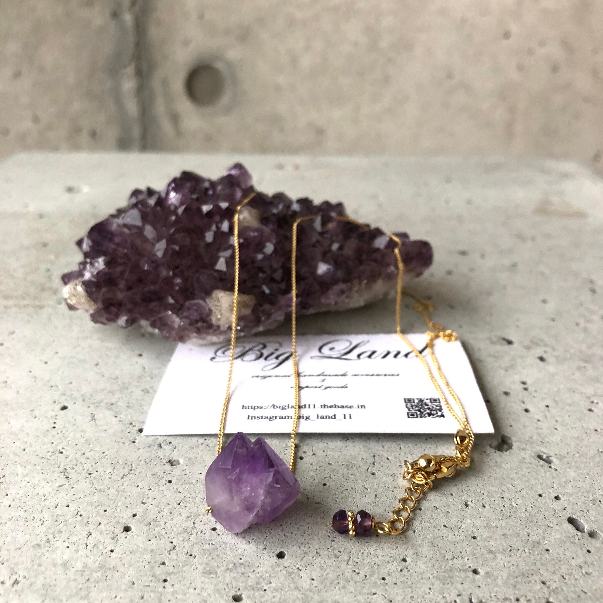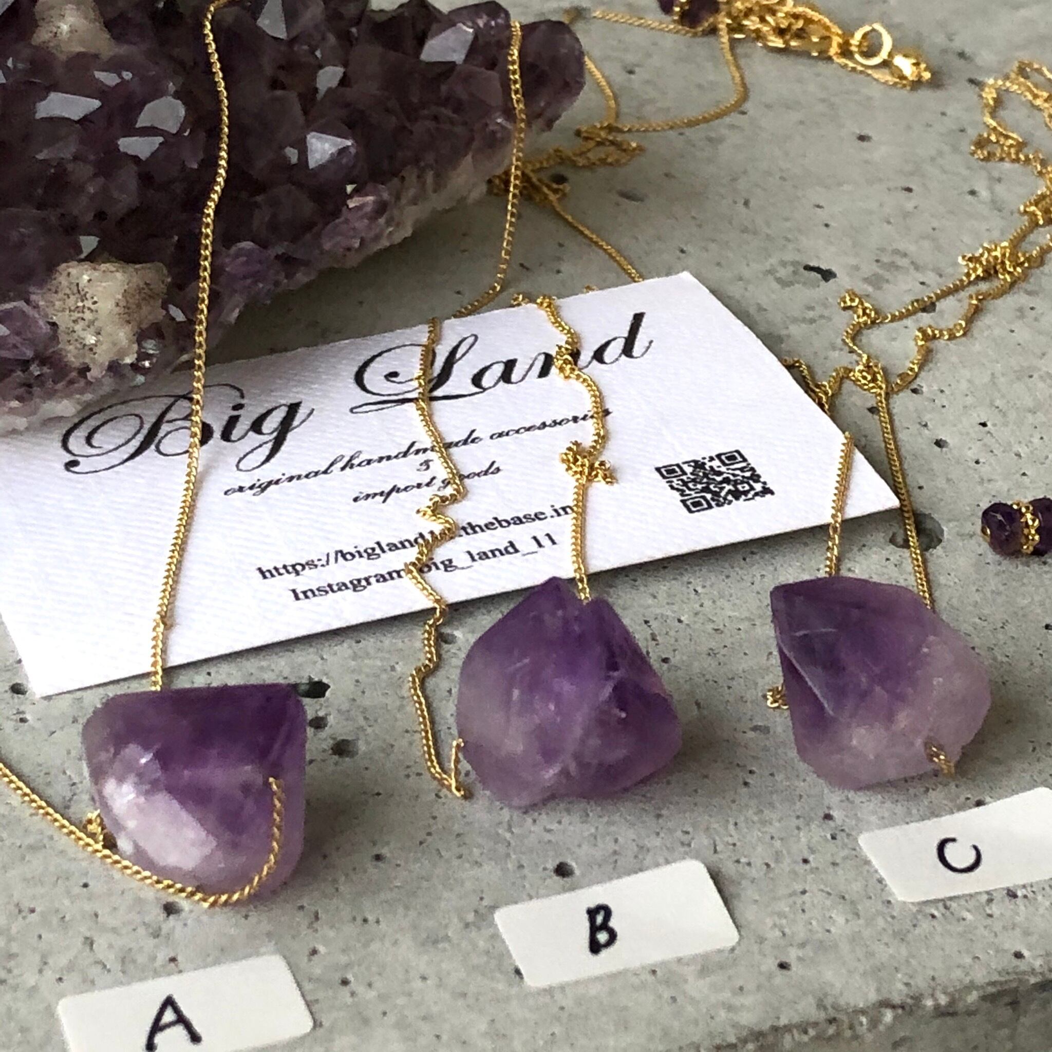 2月生まれのパワーストン、高貴な紫色「アメジスト」美しいライトカラーアメジスト原石を使い自然豊かな魅力のある一点モノのネックレスに仕上げ、若い方からご年配の方にもお使い頂けます✨