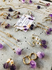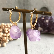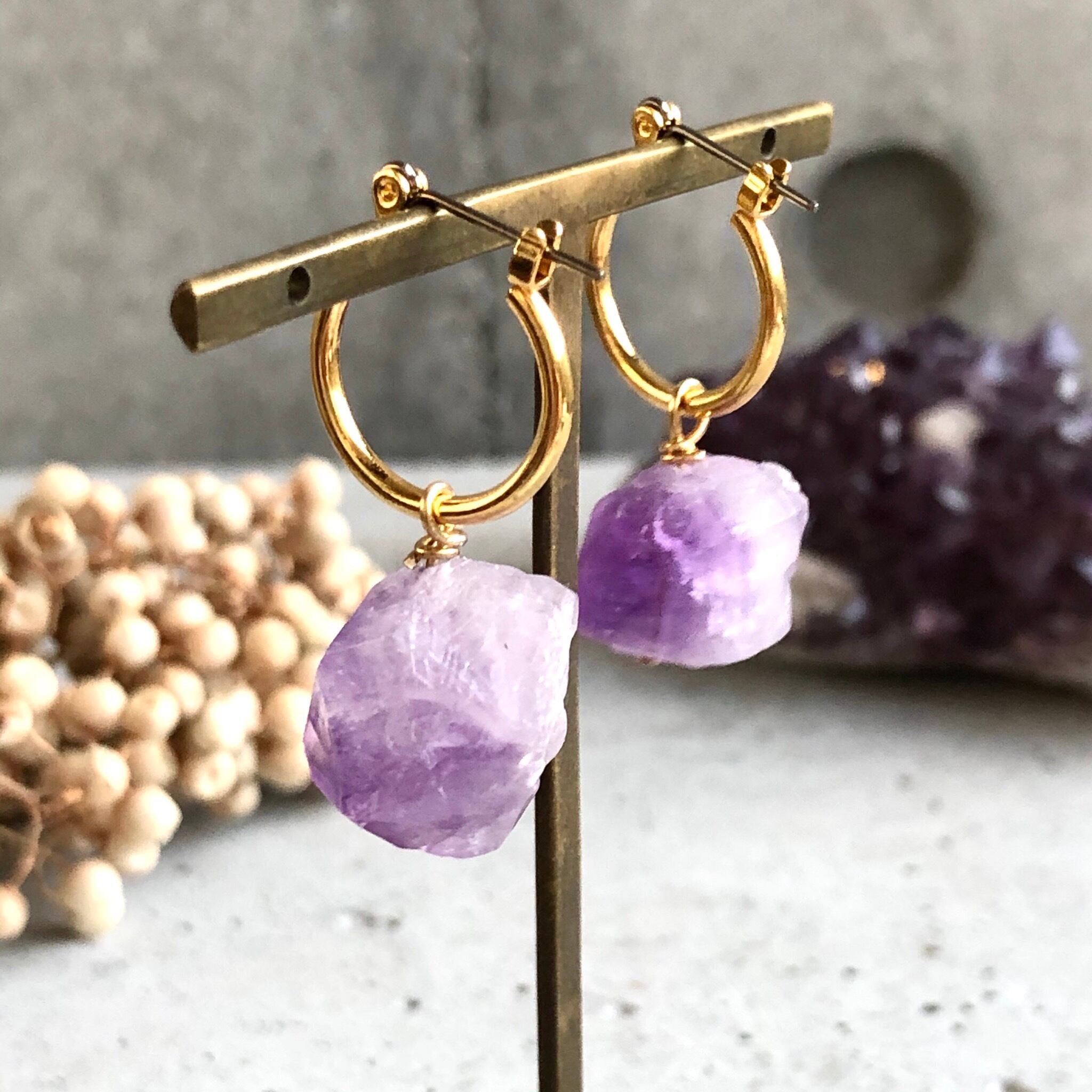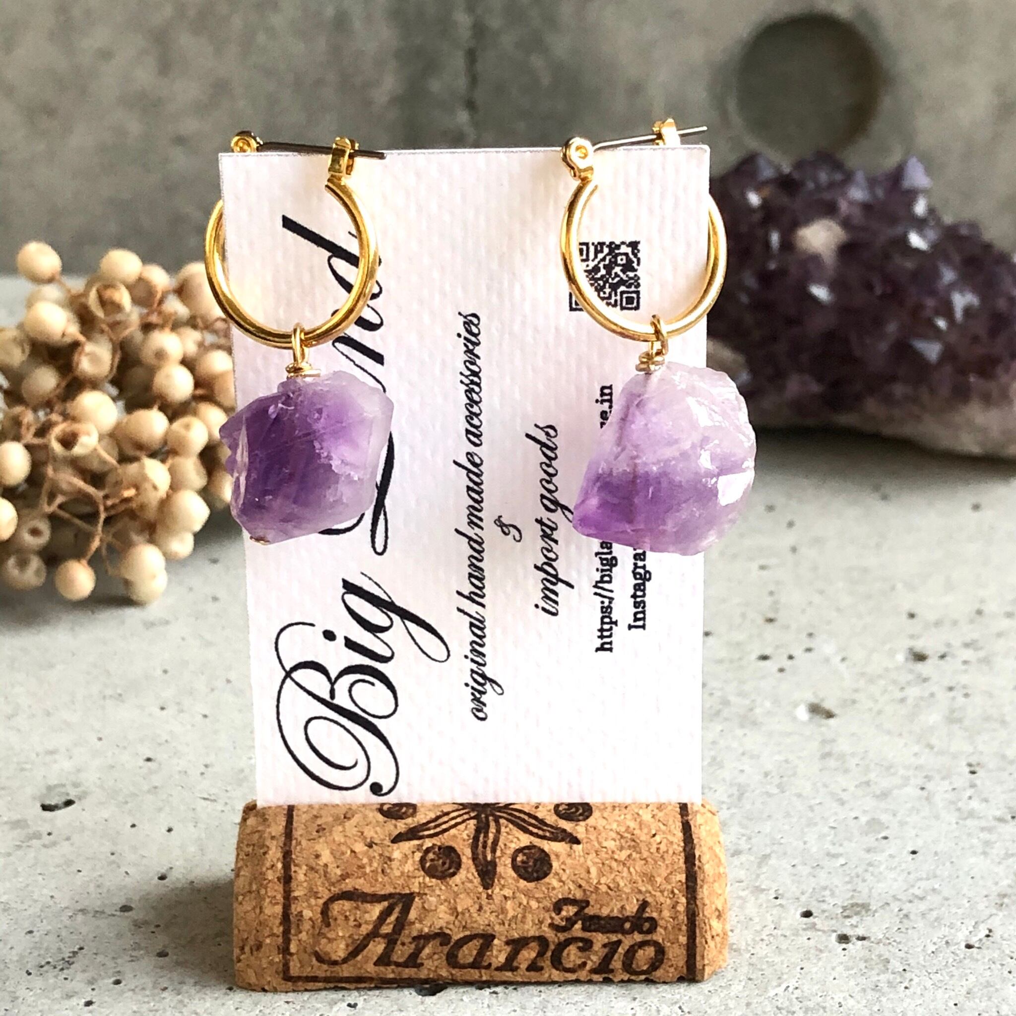 2月生まれのパワーストン、高貴な紫色「アメジスト」美しいライトカラーアメジスト原石を使い自然豊かな魅力のある一点モノのピアスに仕上げ、