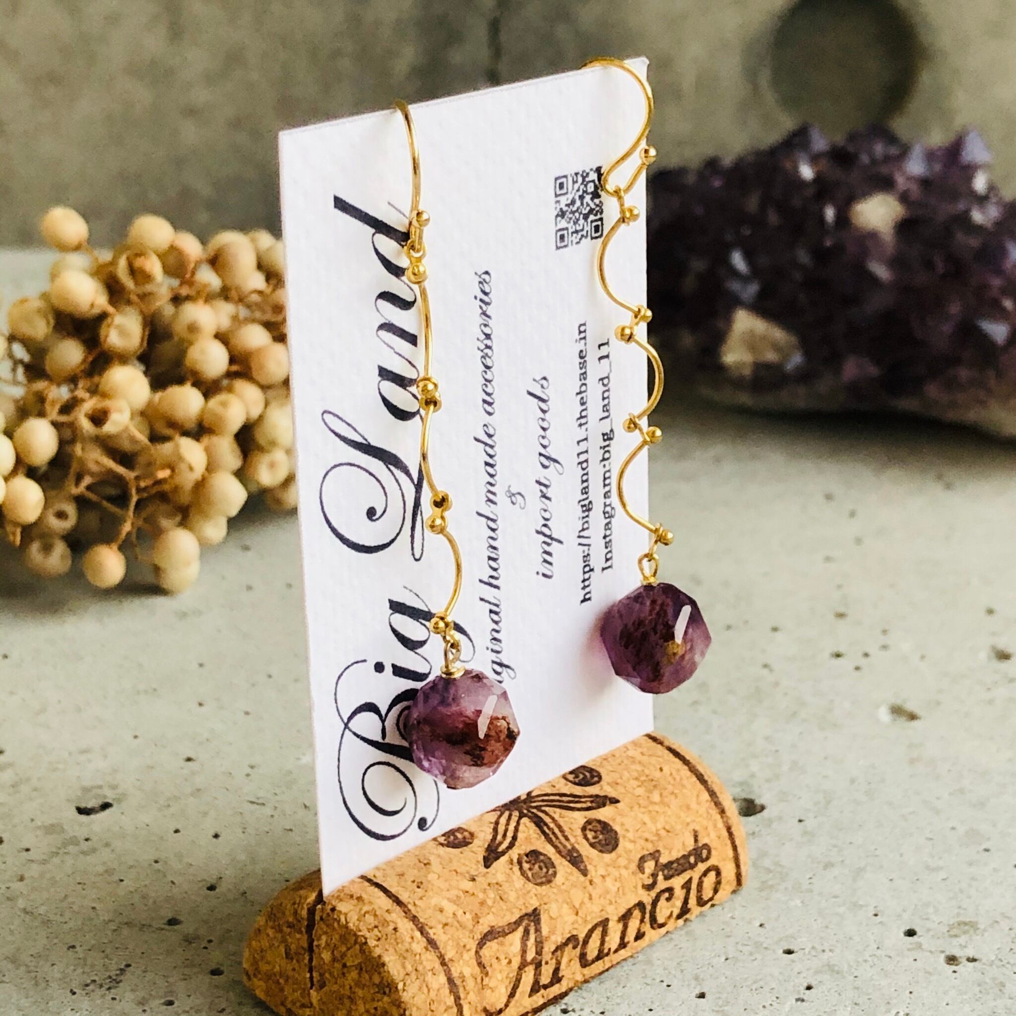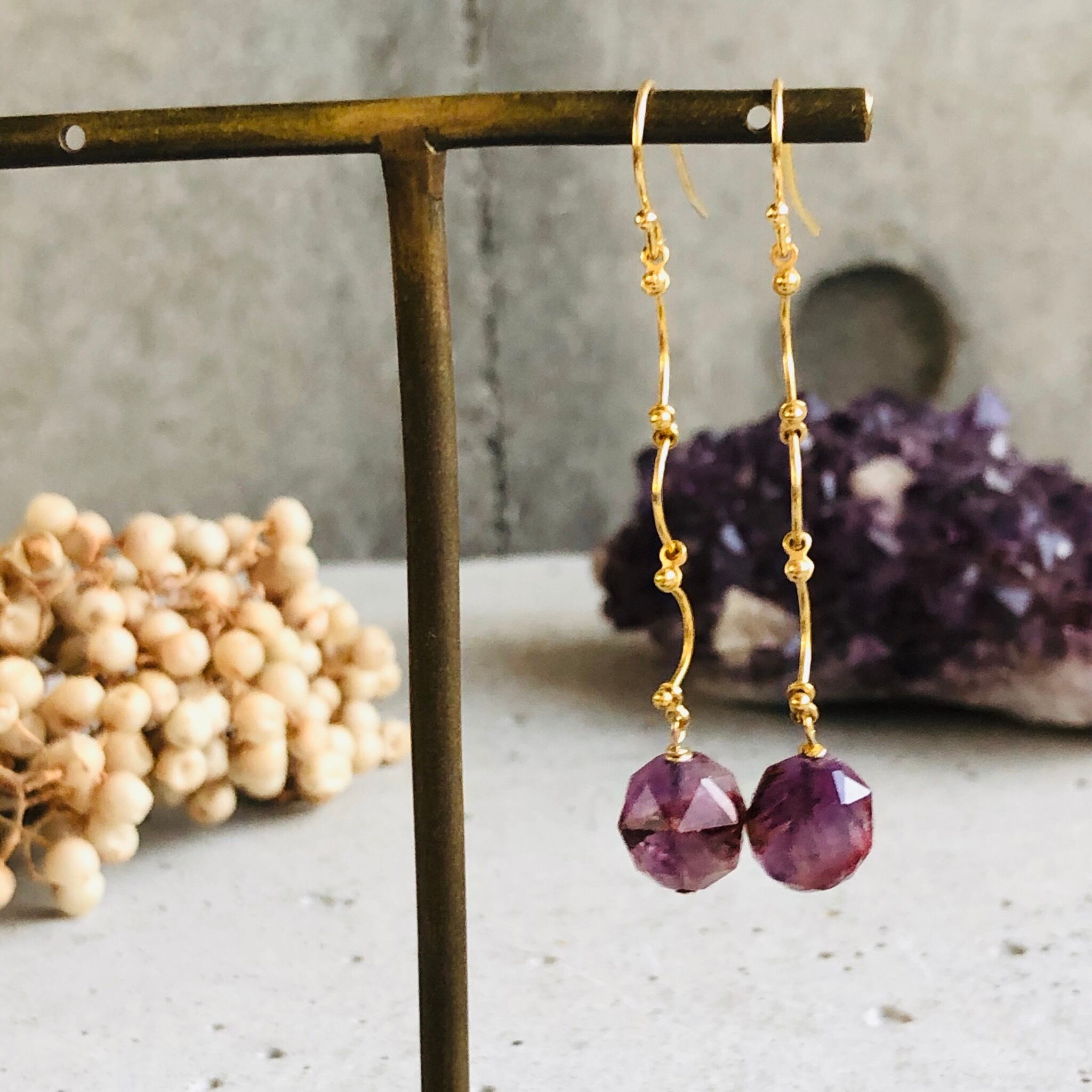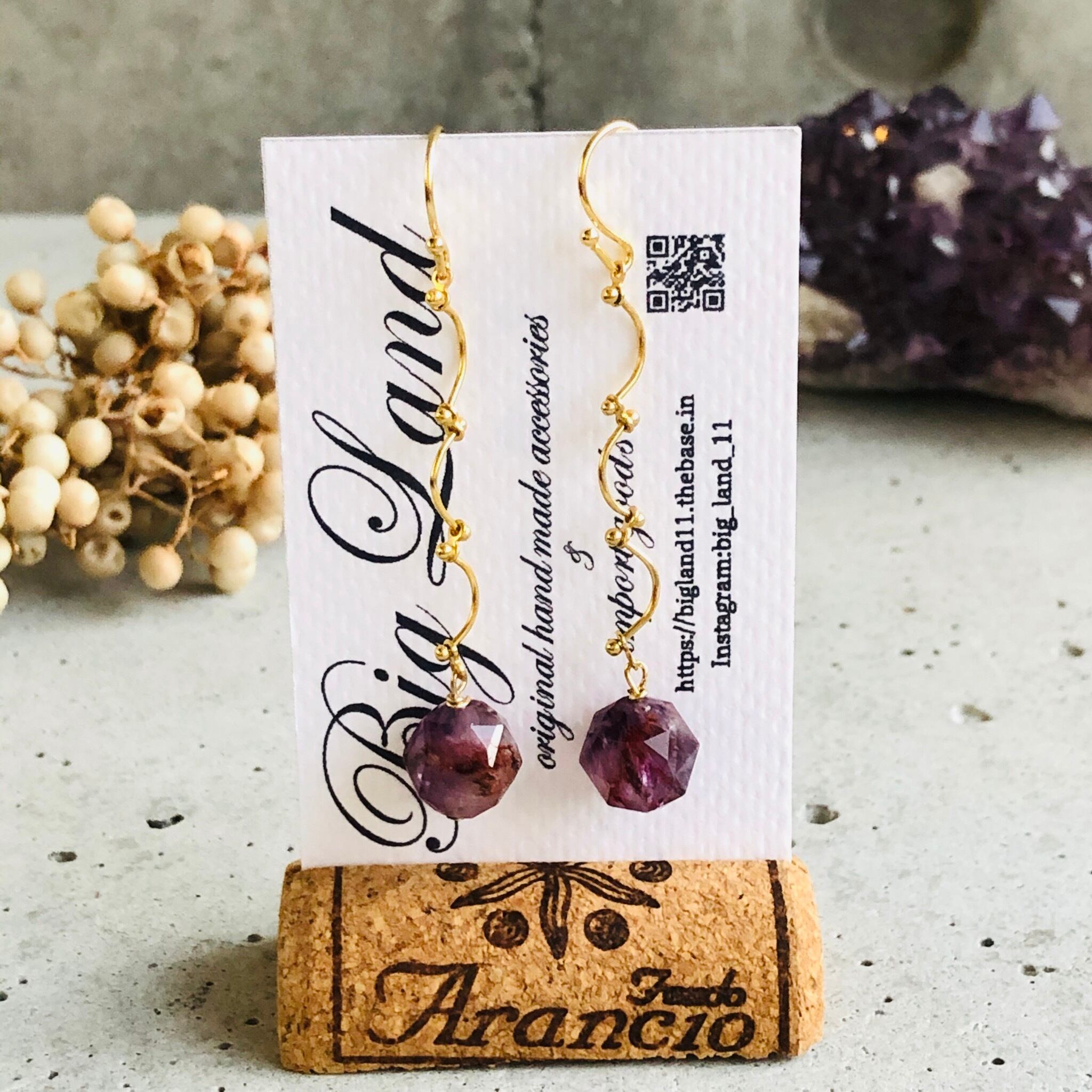 2月生まれのパワーストン、高貴な紫色「アメジスト」美しいカッティングのアメジストを使い人気の揺れ感あるモテピアスに仕上げました✨綺麗目ファッションからカジュアルスタイルにもgood✨