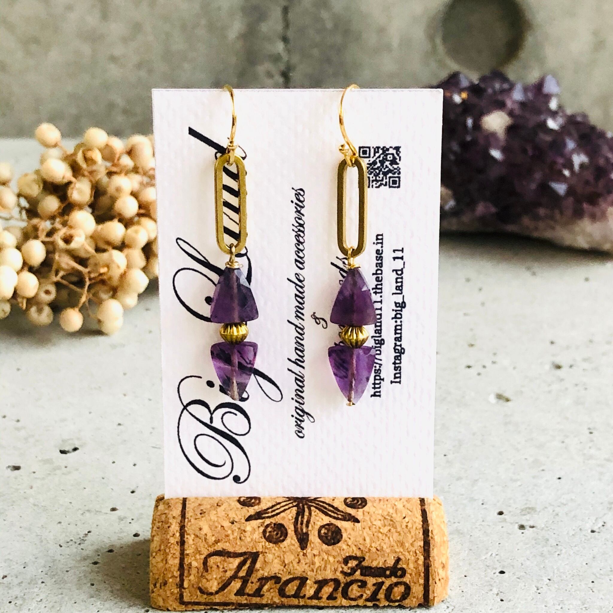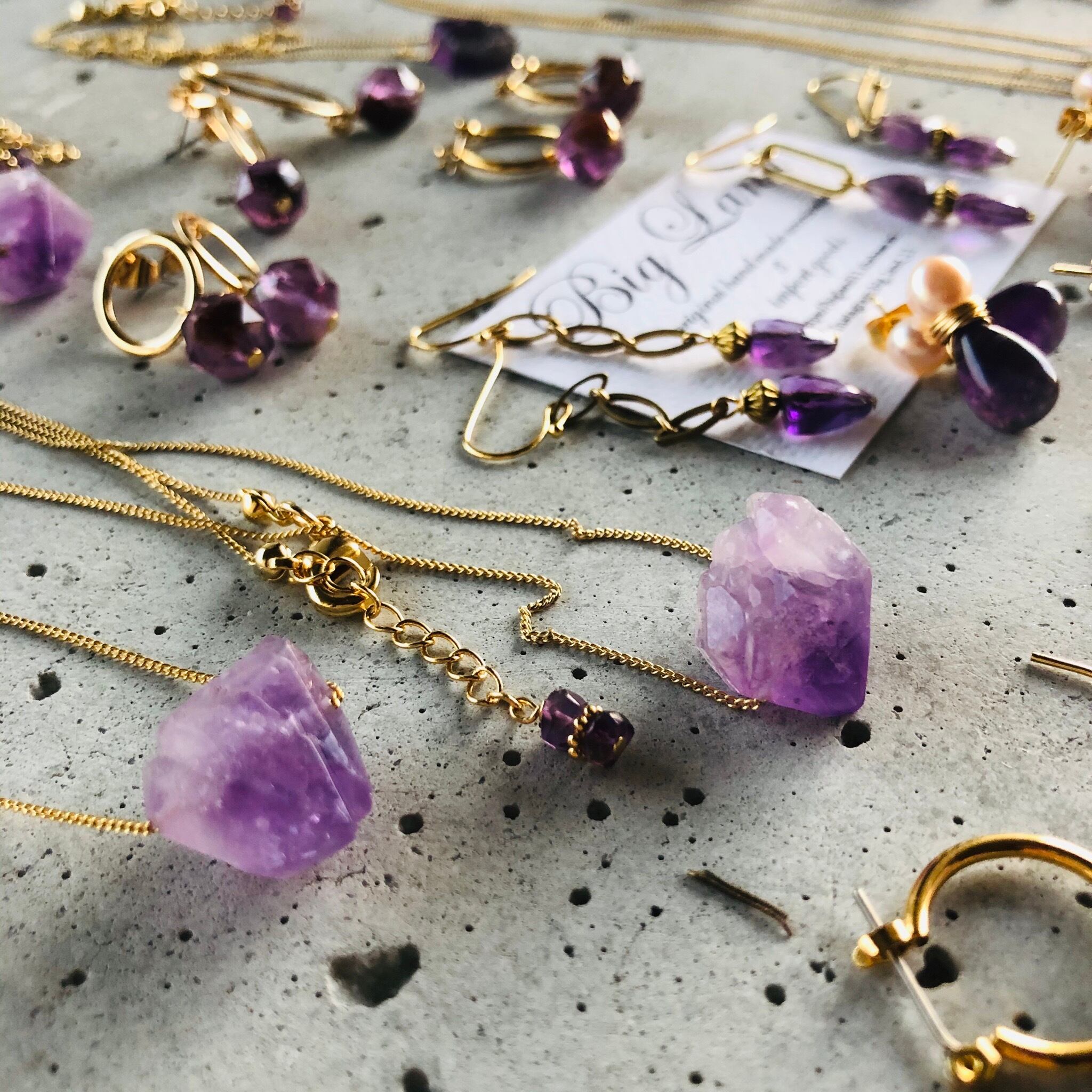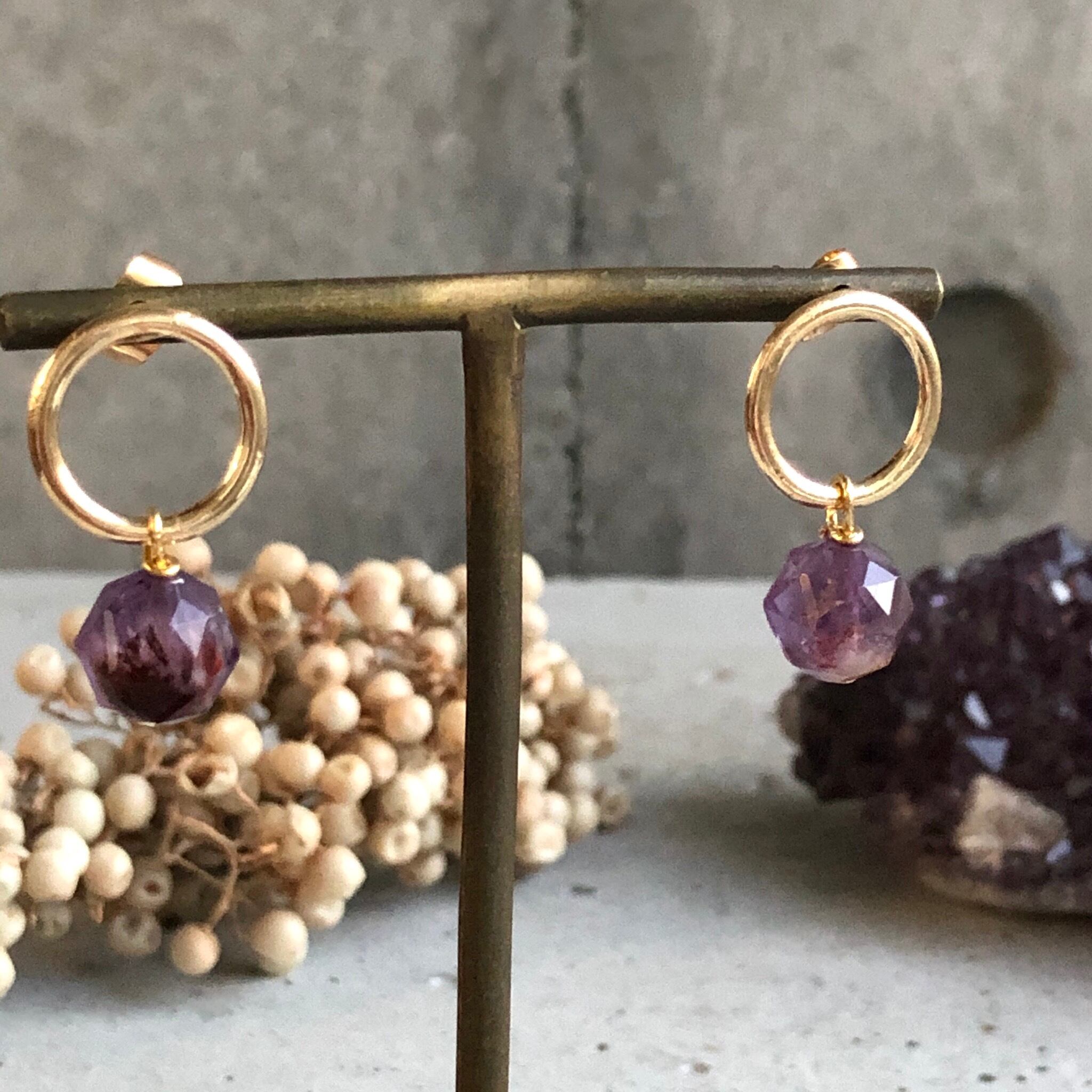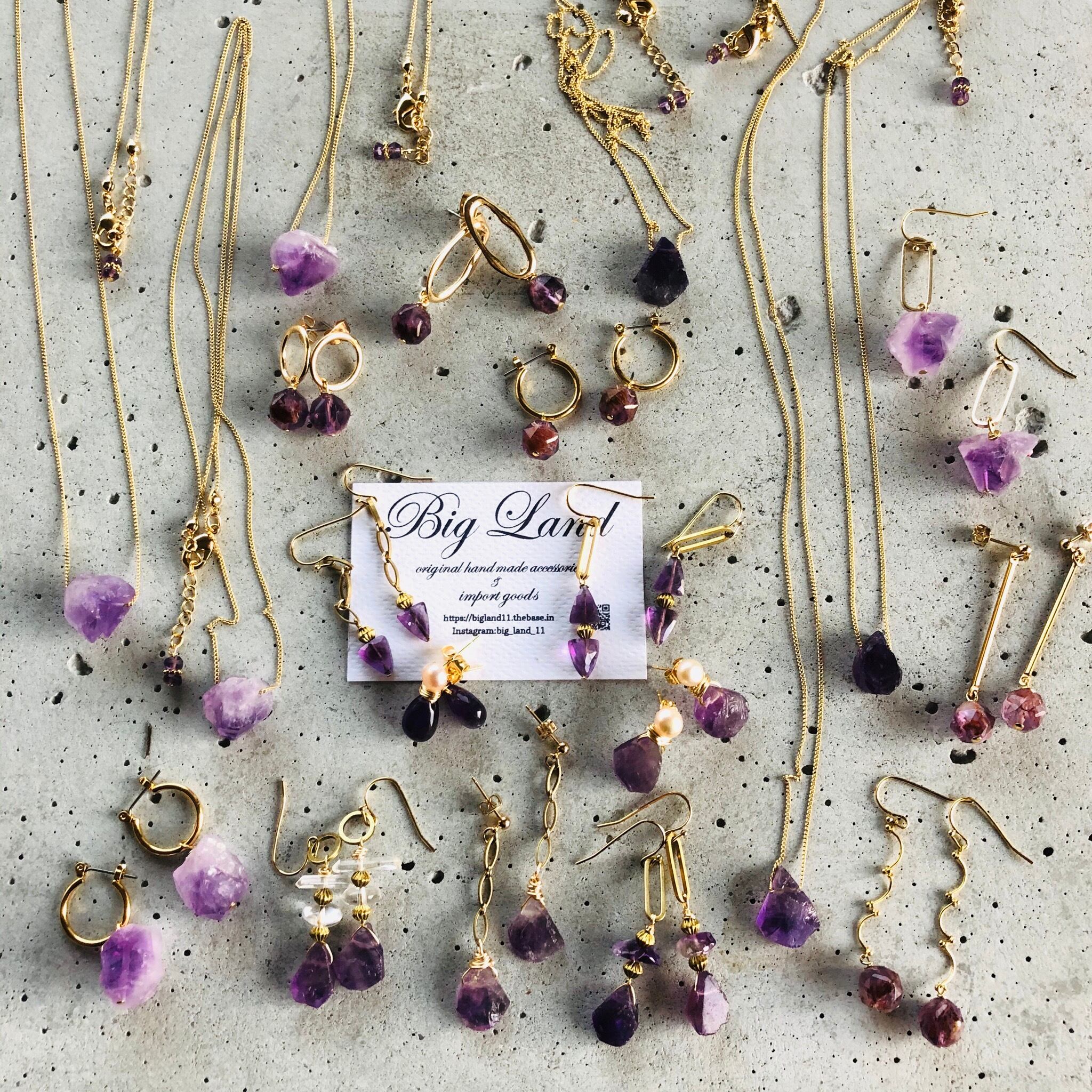 2月生まれのパワーストン、高貴な紫色「アメジスト」美しいカッティングのアメジストや真鍮を使いどこかエキゾチックな雰囲気で...綺麗目ファッションから白ティーデニムとカジュアルスタイルにもgood✨