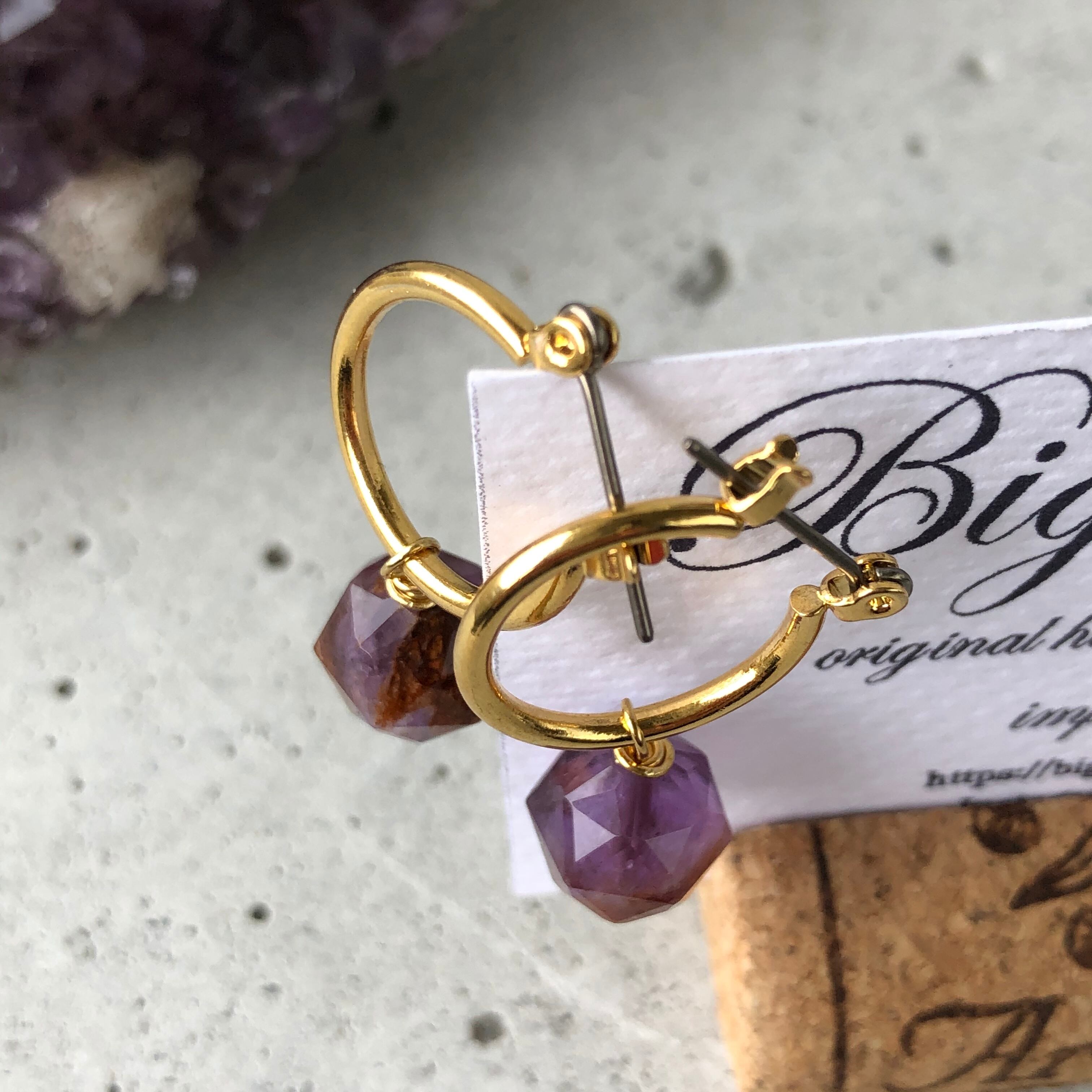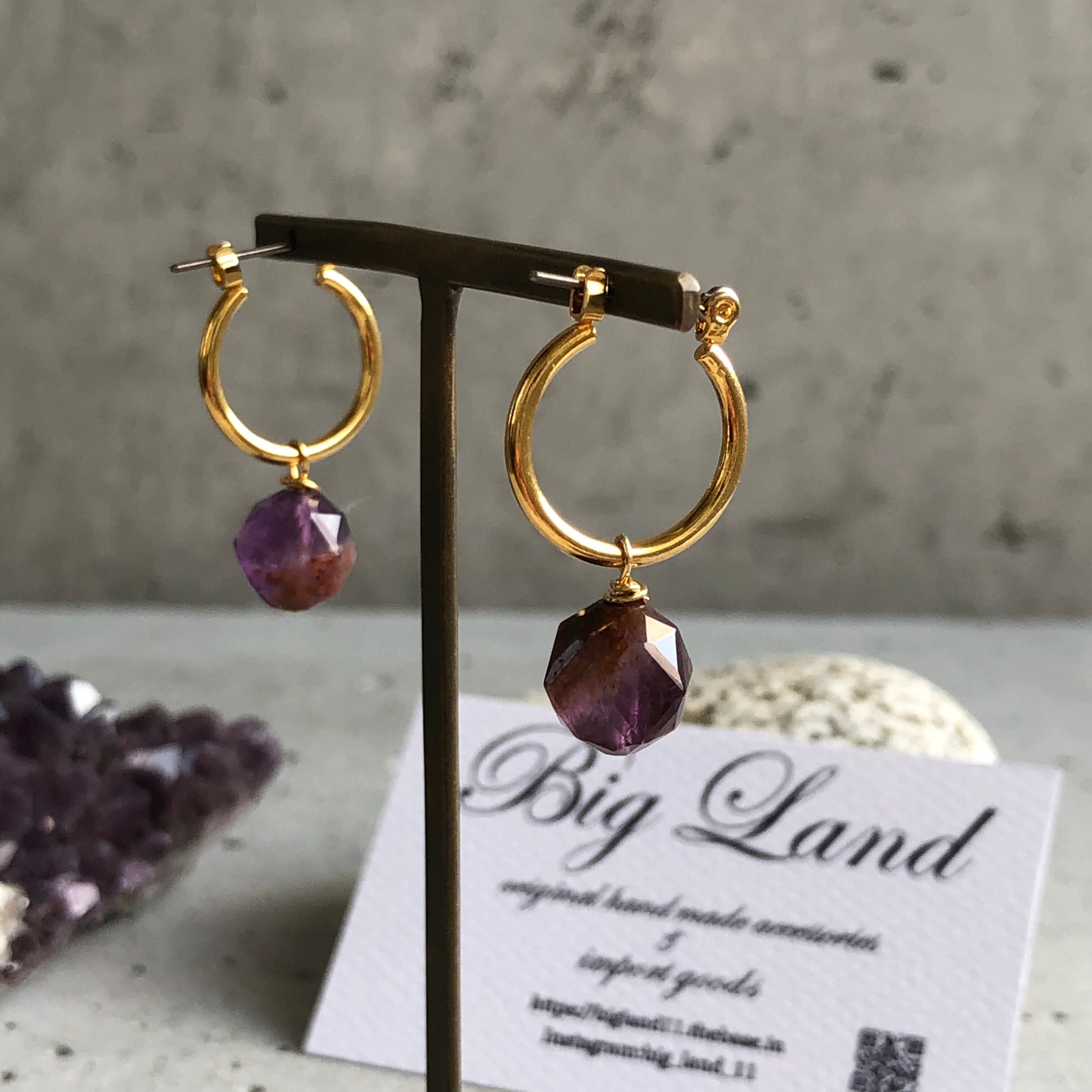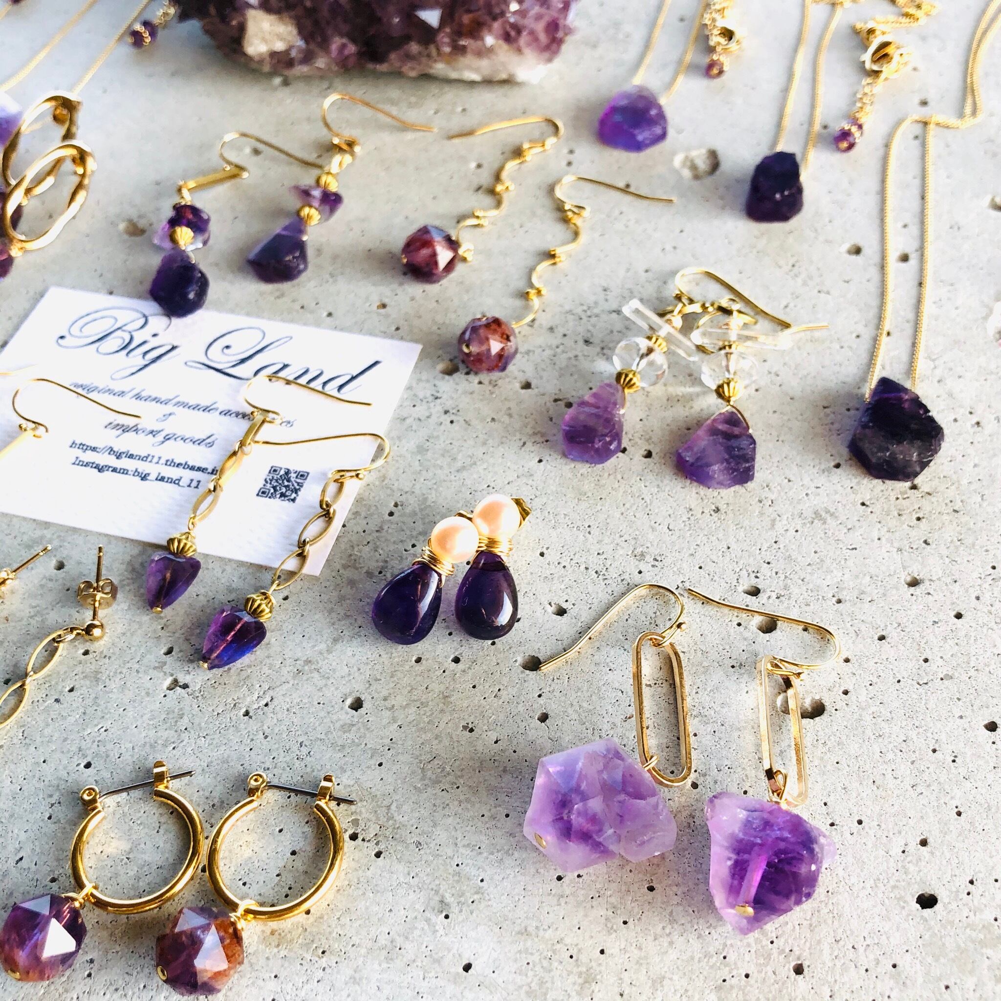 2月生まれのパワーストン、高貴な紫色「アメジスト」美しいカッティングのアメジストを使いコーデし易いピアスに仕上げ....綺麗目ファッションからカジュアルスタイルにもgood✨