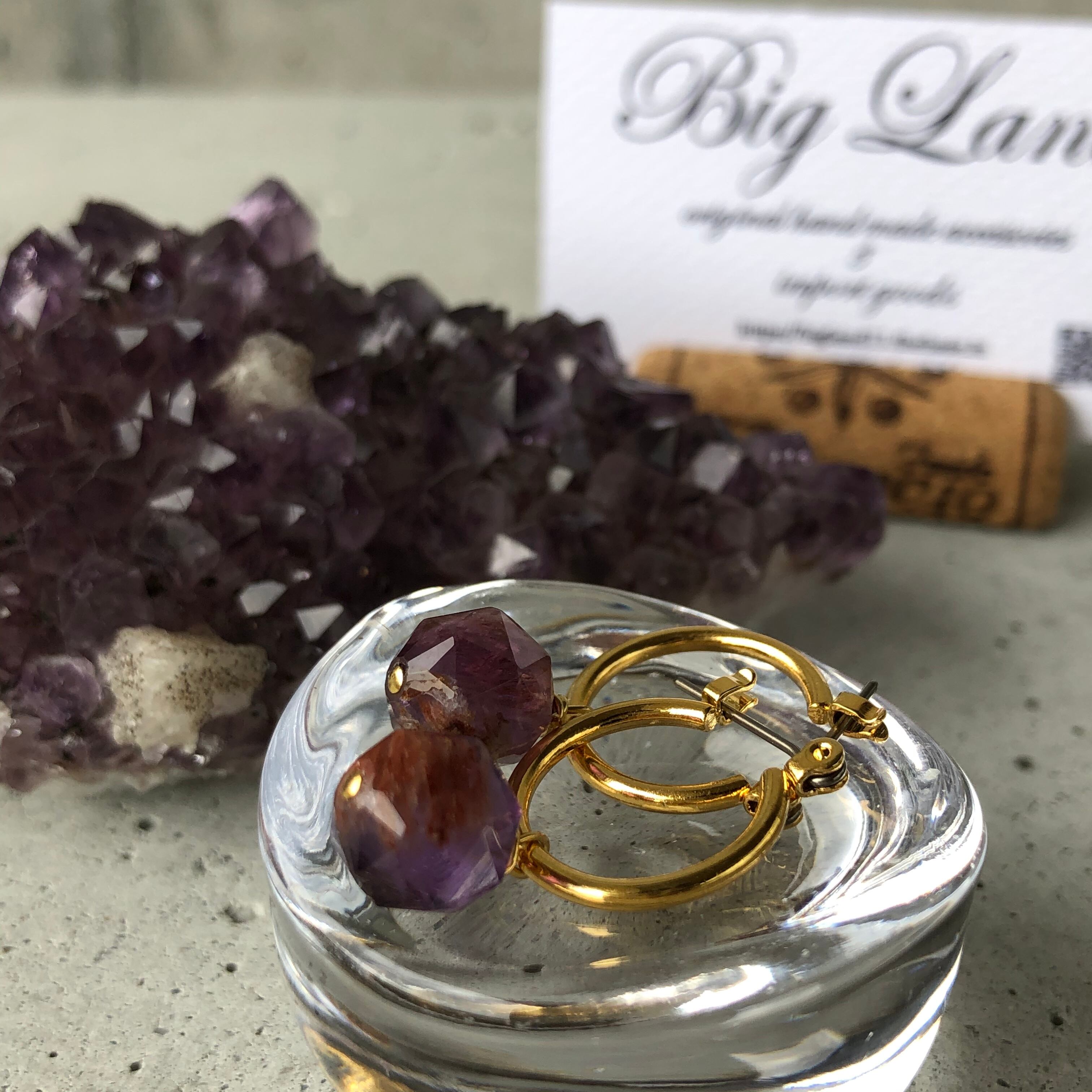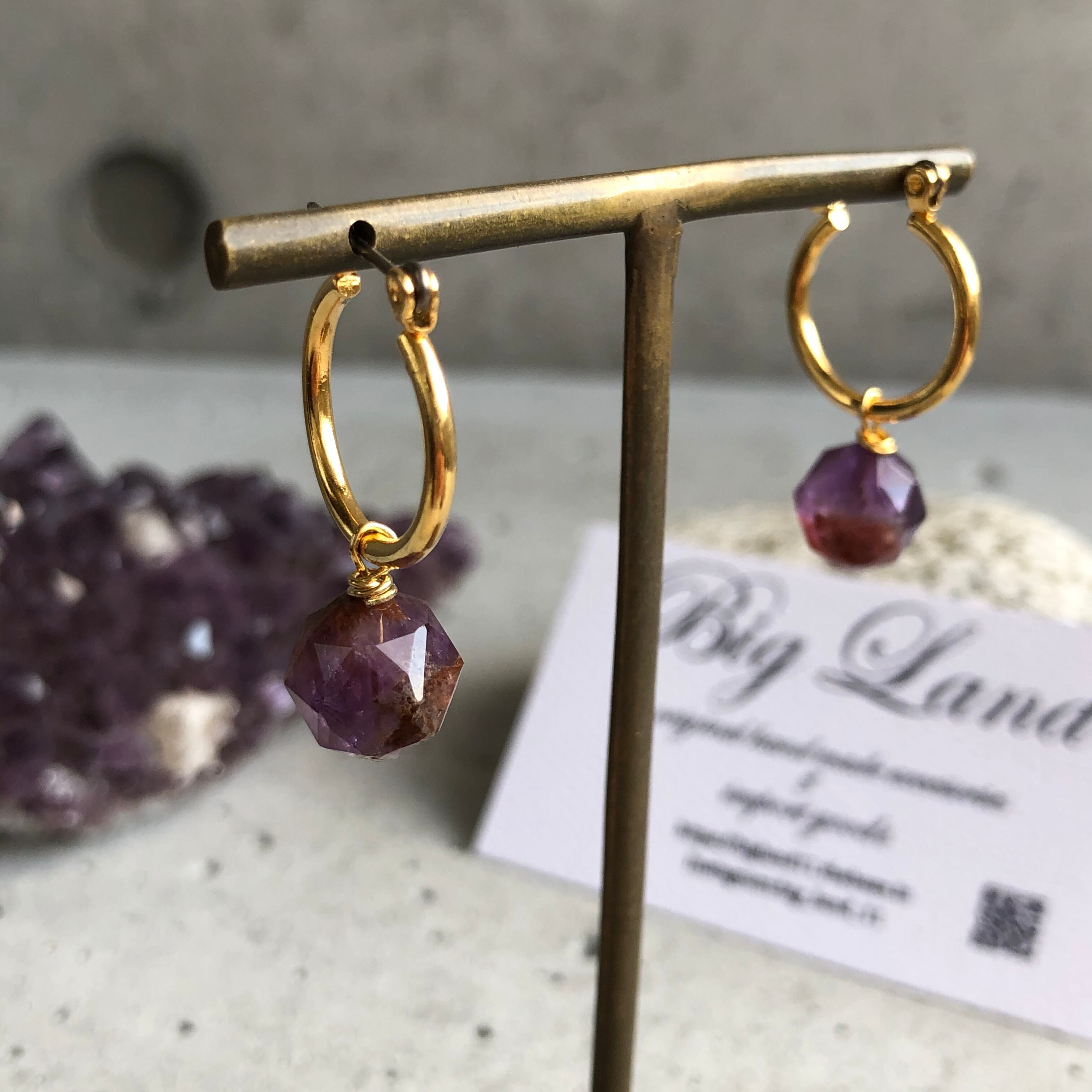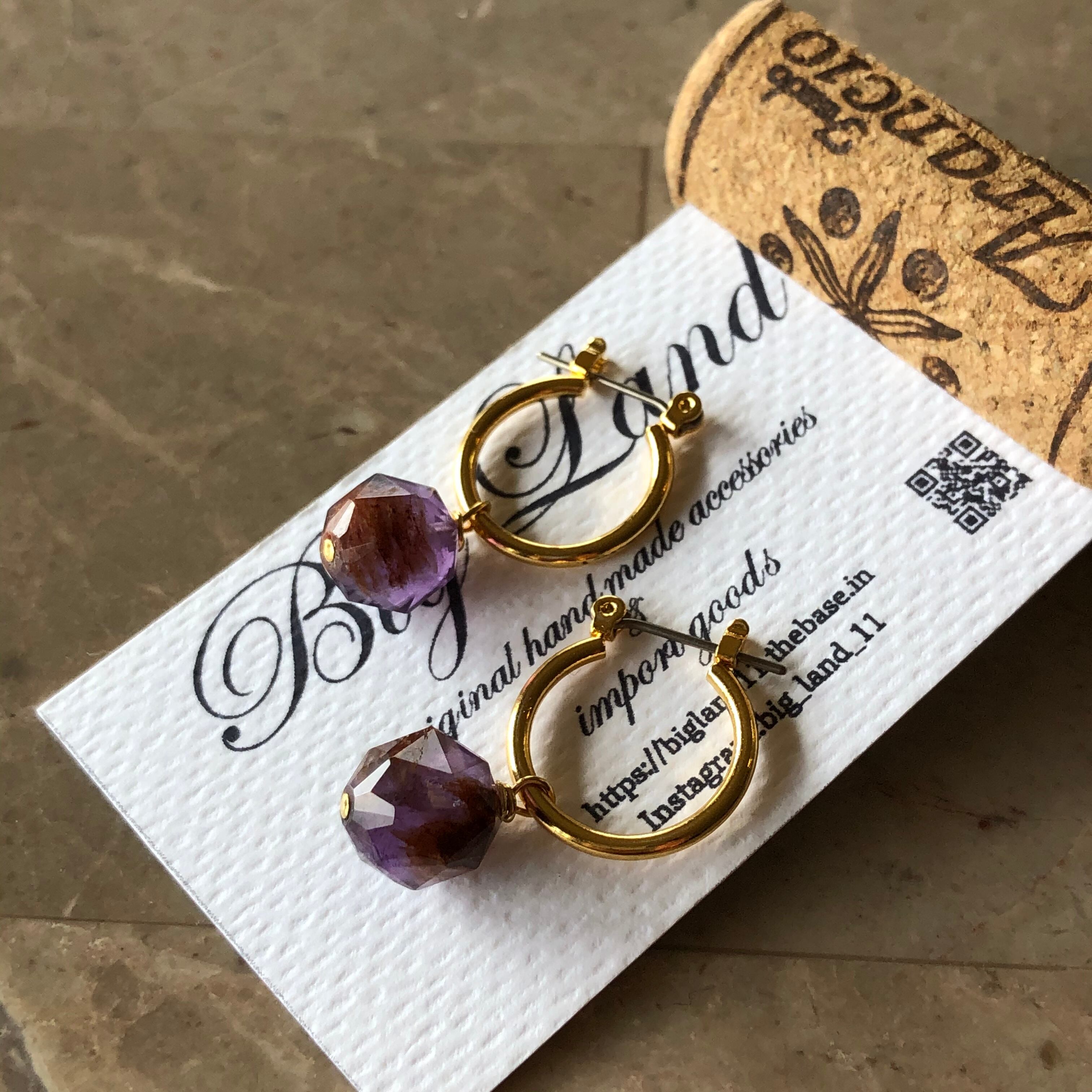 2月生まれのパワーストン、高貴な紫色「アメジスト」美しいカッティングのアメジストを使いコーデし易いピアスに仕上げ....綺麗目ファッションからカジュアルスタイルにもgood✨