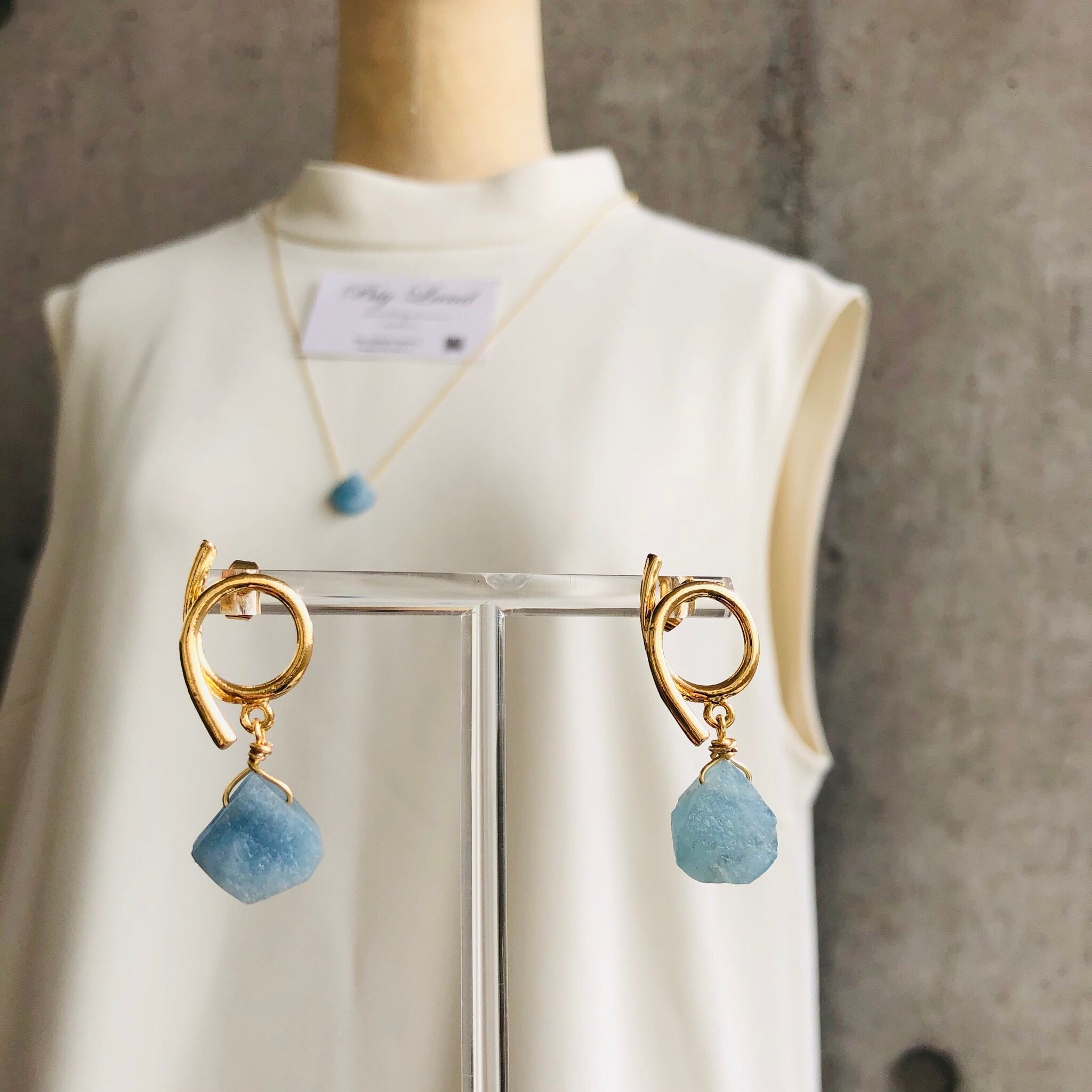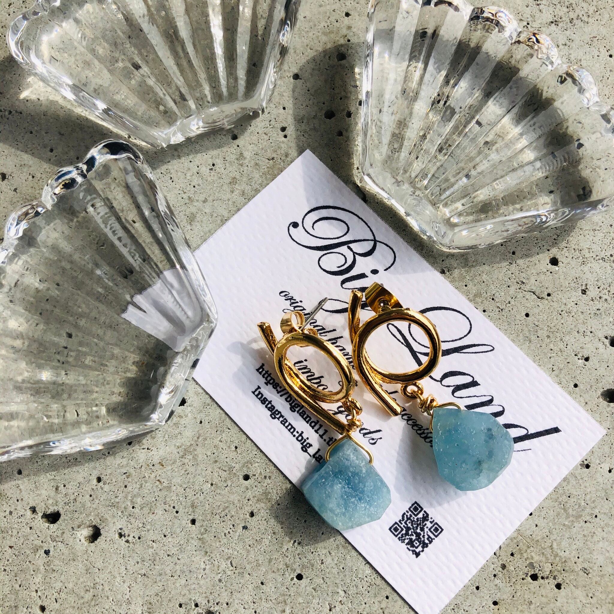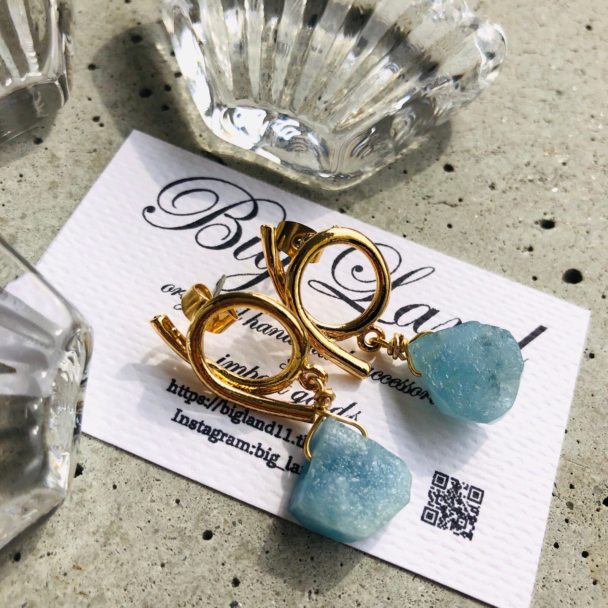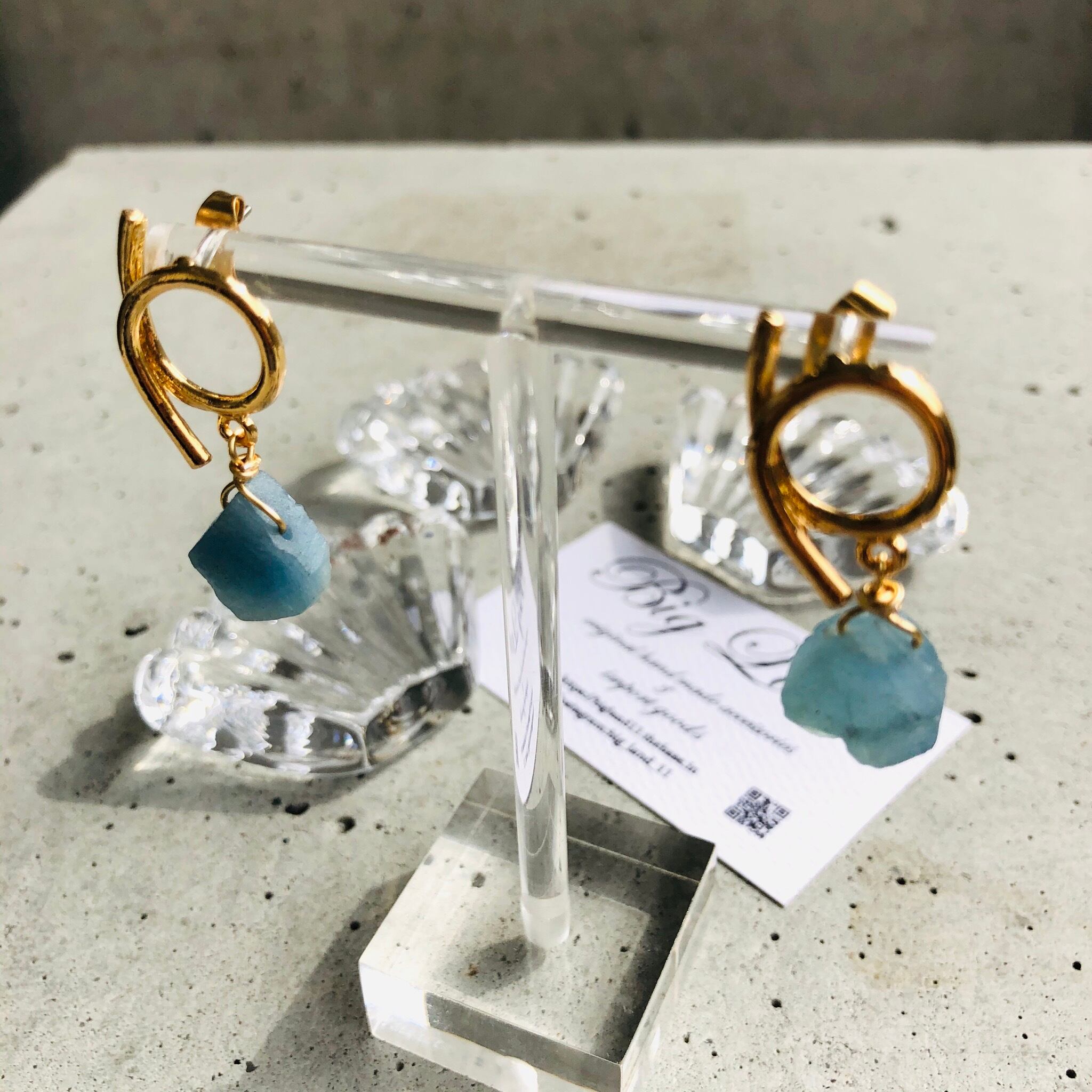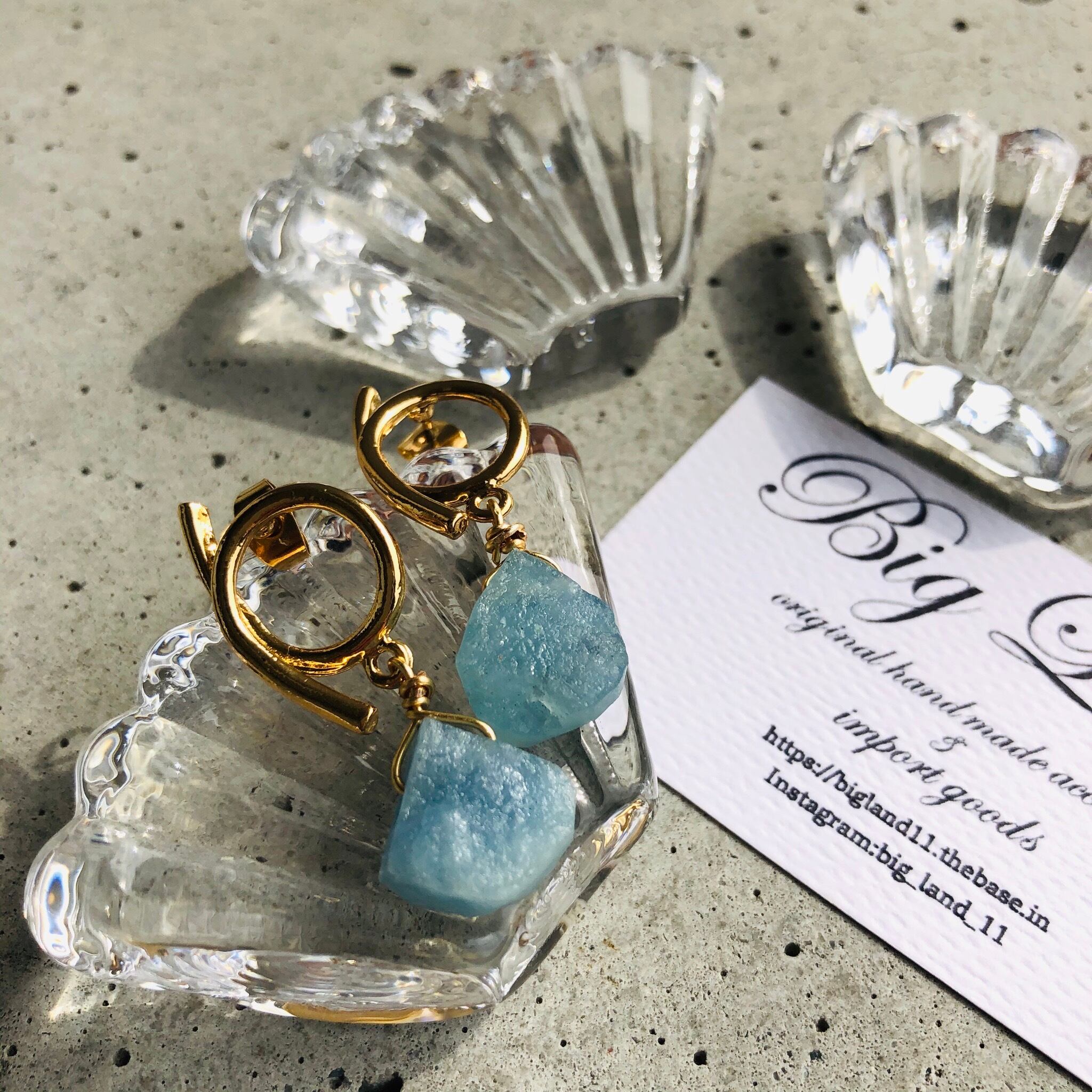 アクアマリンの原石を使った一点モノ!!今年はブルーや水色がトレンドカラーで雑誌でも推してるので小物で取り入れて爽やか気分でコーデをお楽しみ下さい✨