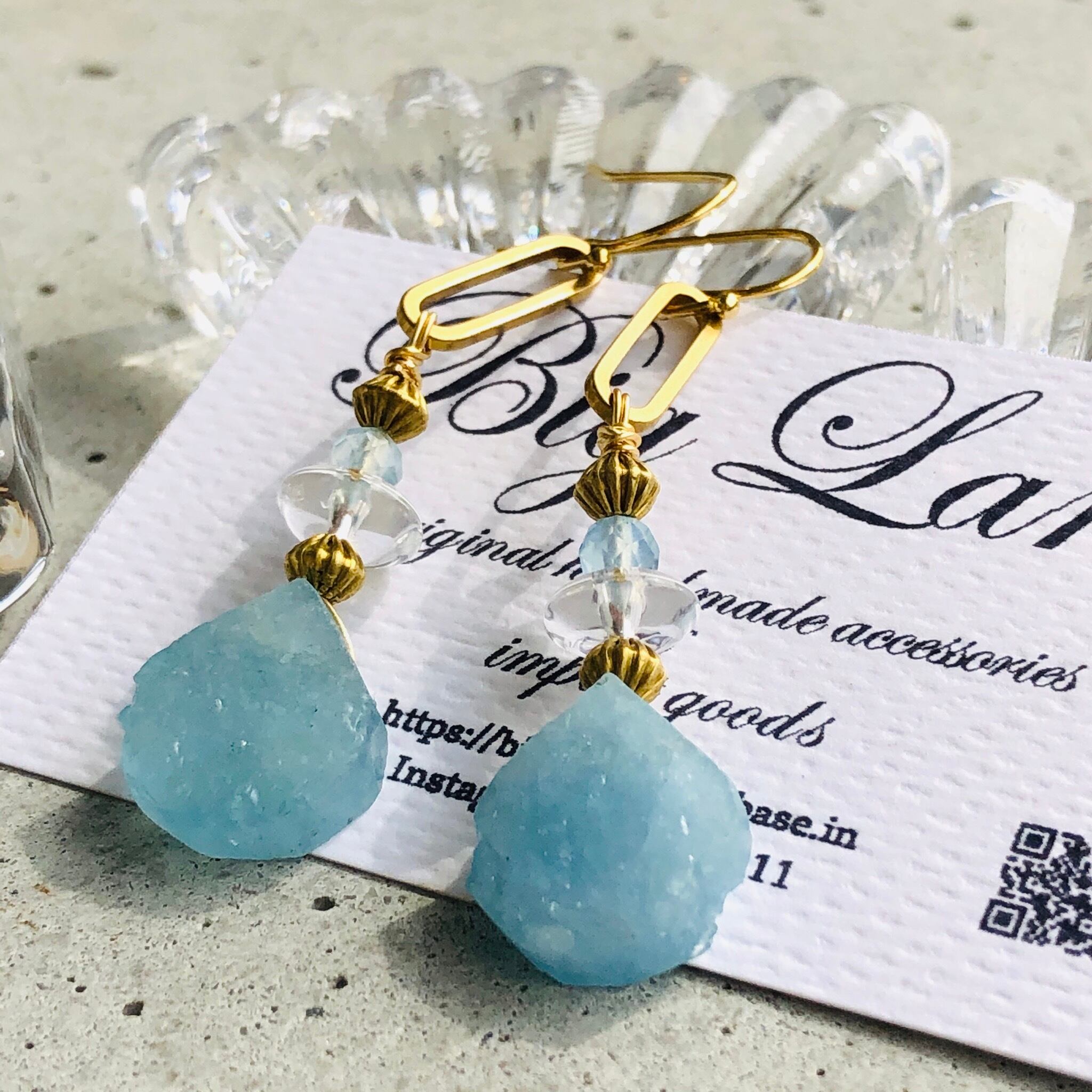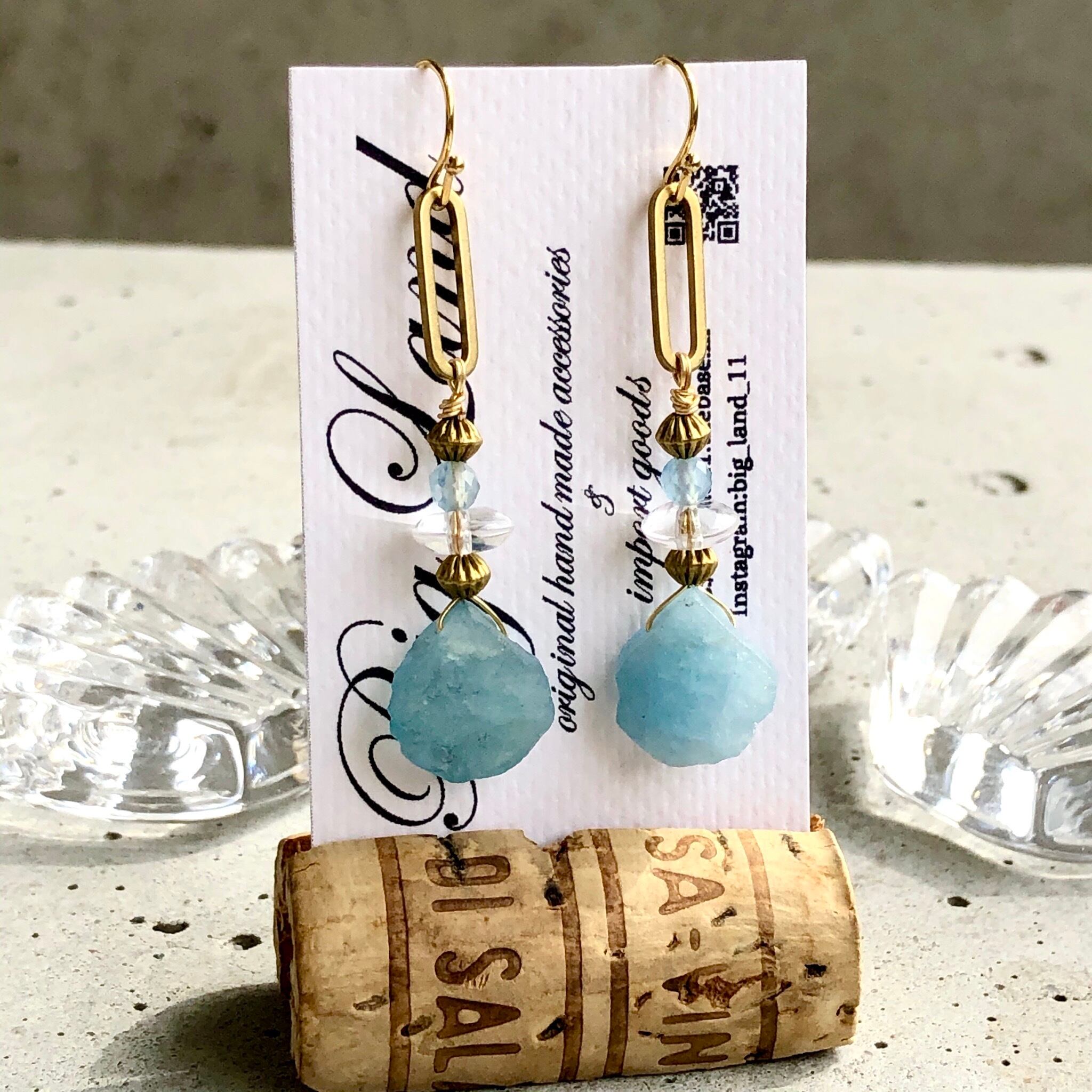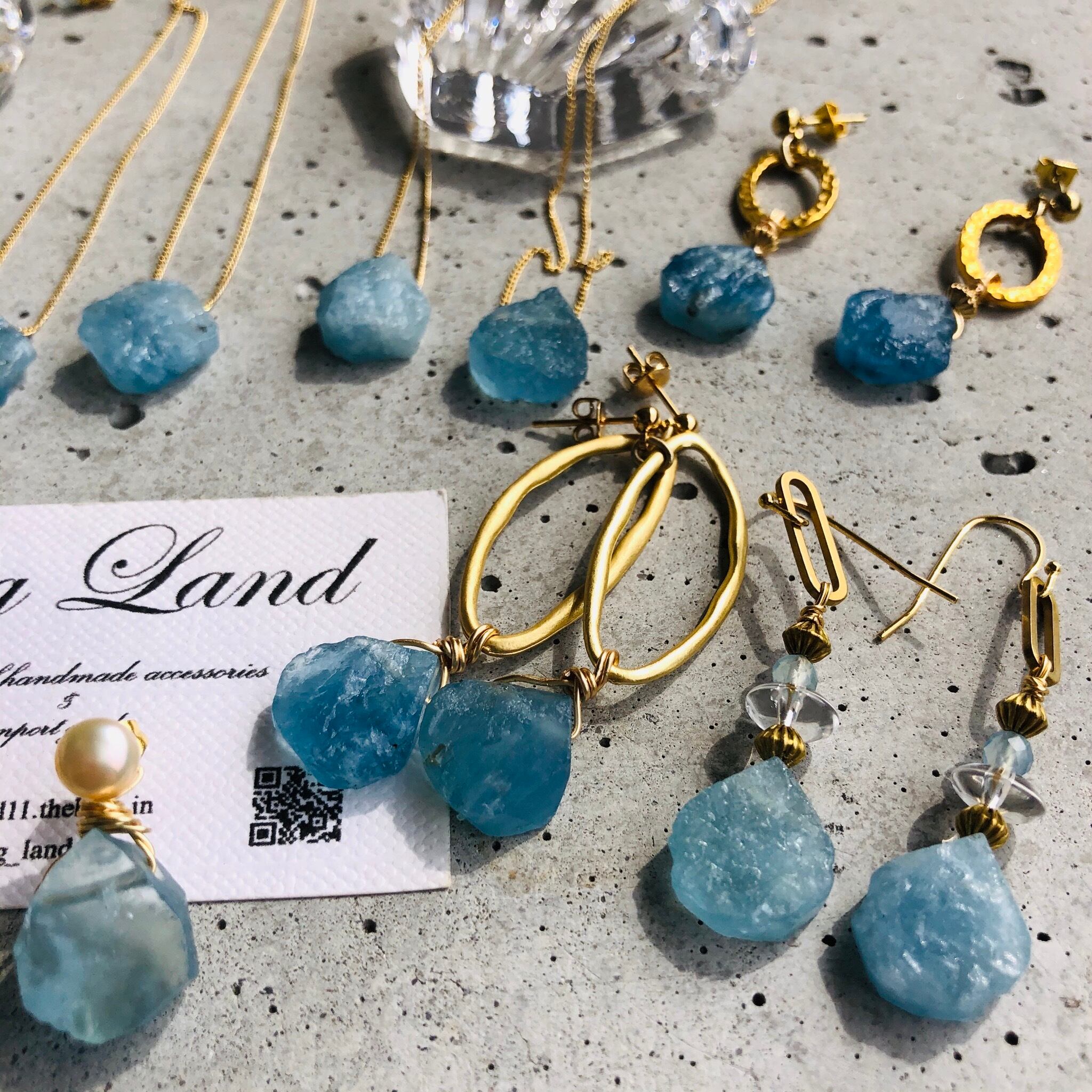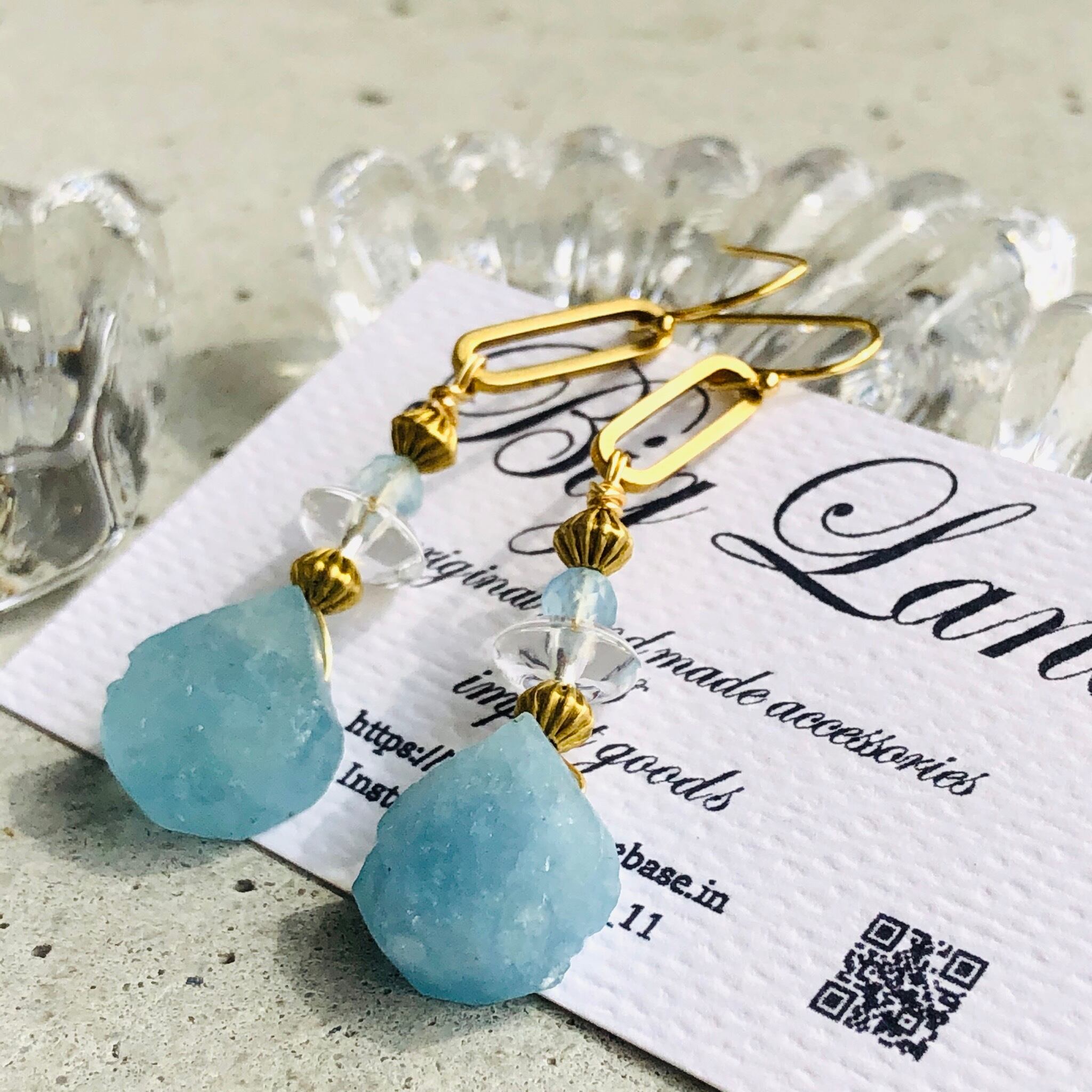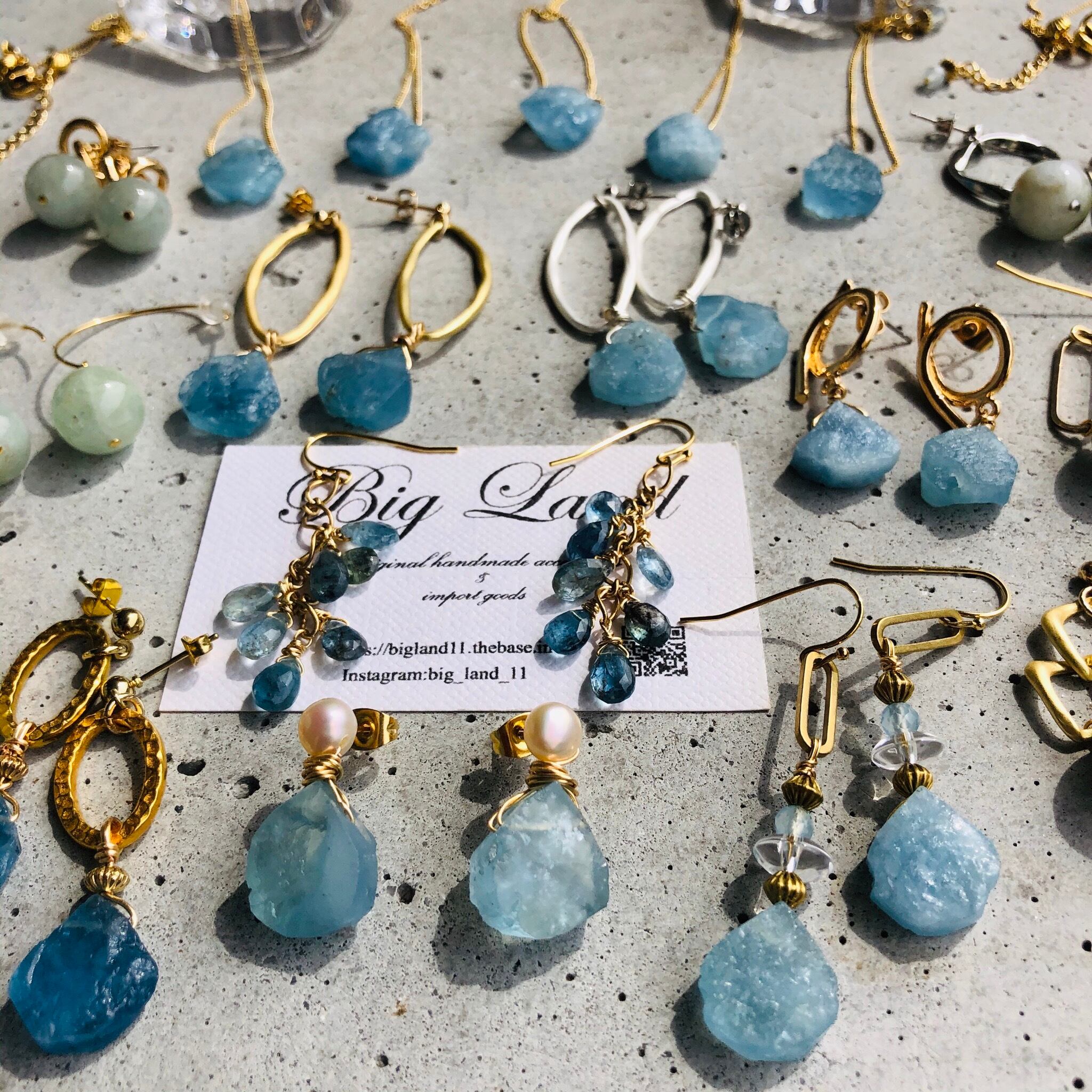 アクアマリンの原石&水晶&真鍮を使いエキゾチックな雰囲気に仕上げてみました!!今年はブルーや水色がトレンドカラーで雑誌でも推してるので小物で取り入れて爽やか気分でコーデをお楽しみ下さい✨