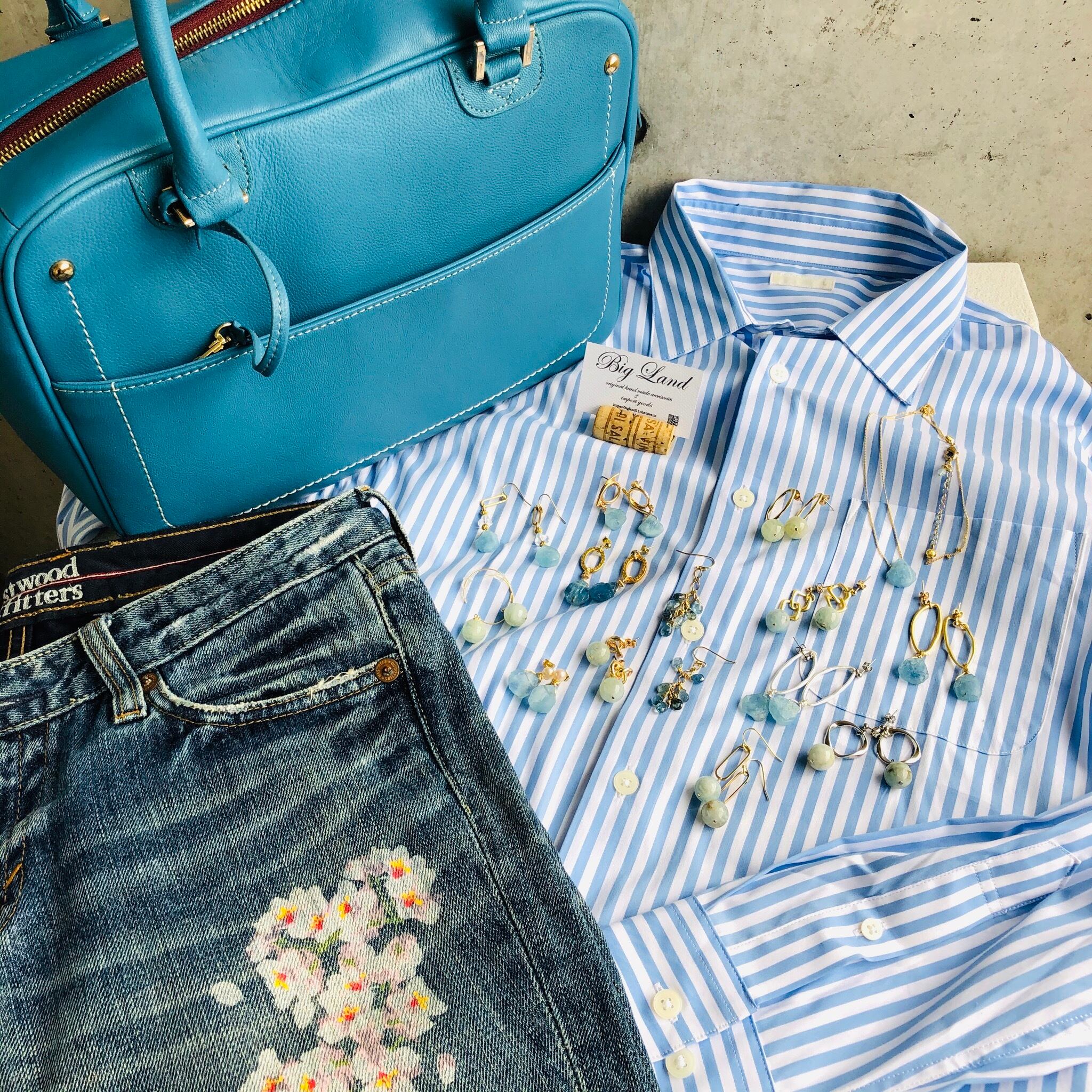 今年はブルーや水色がトレンドカラーで雑誌でも推してるので小物で取り入れて爽やか気分でコーデをお楽しみ下さい✨
