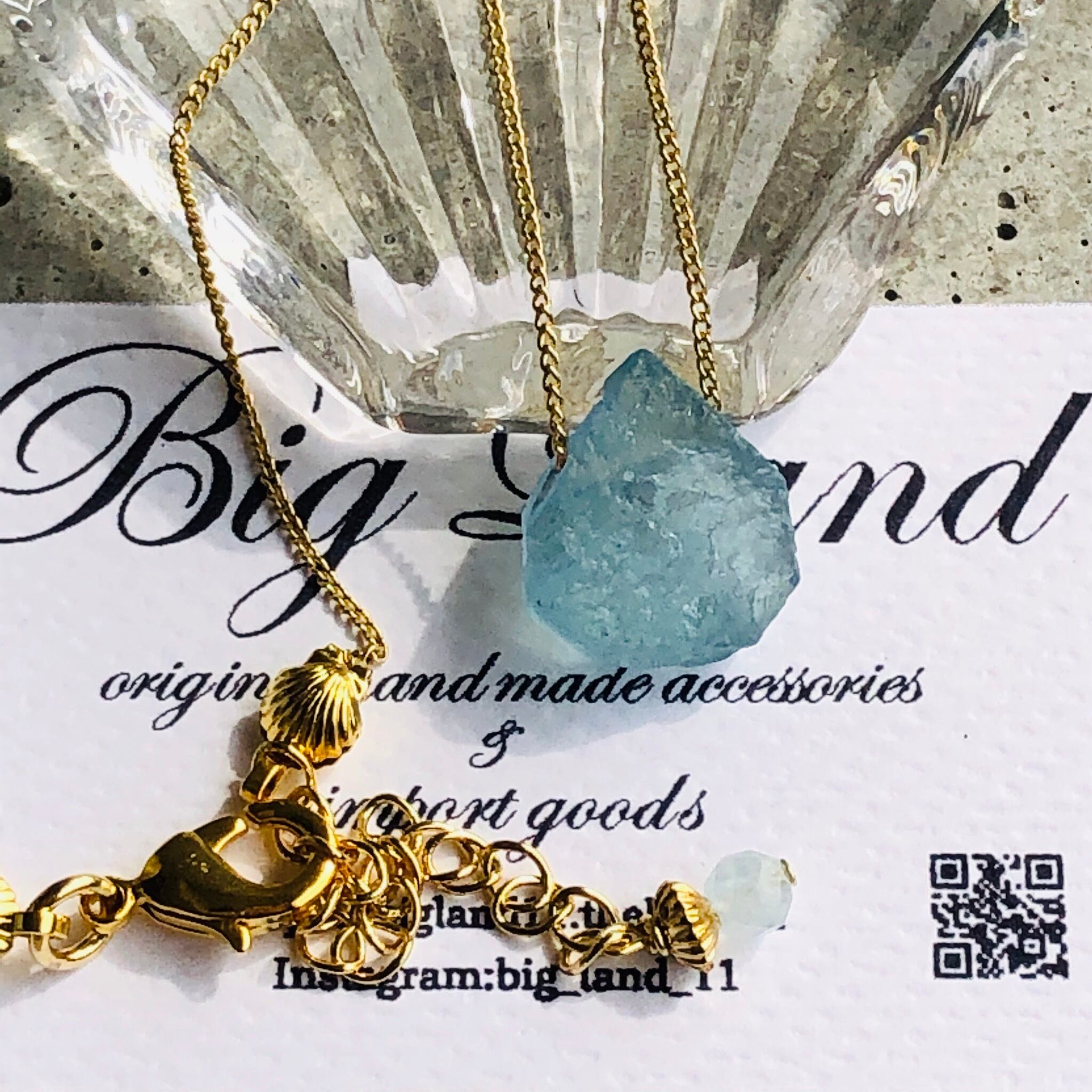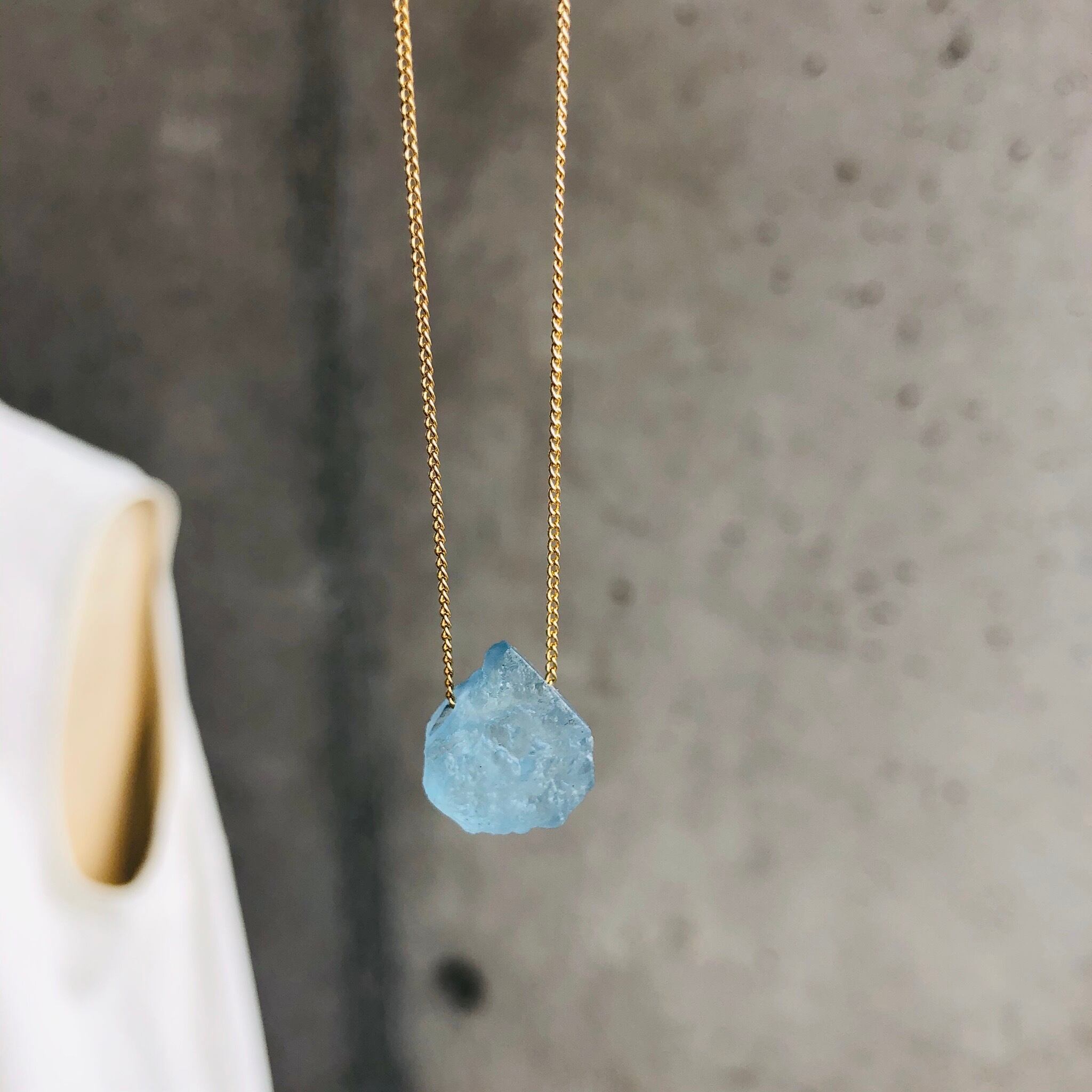 アクアマリン原石の珍しいしずく型ネックレス‼︎