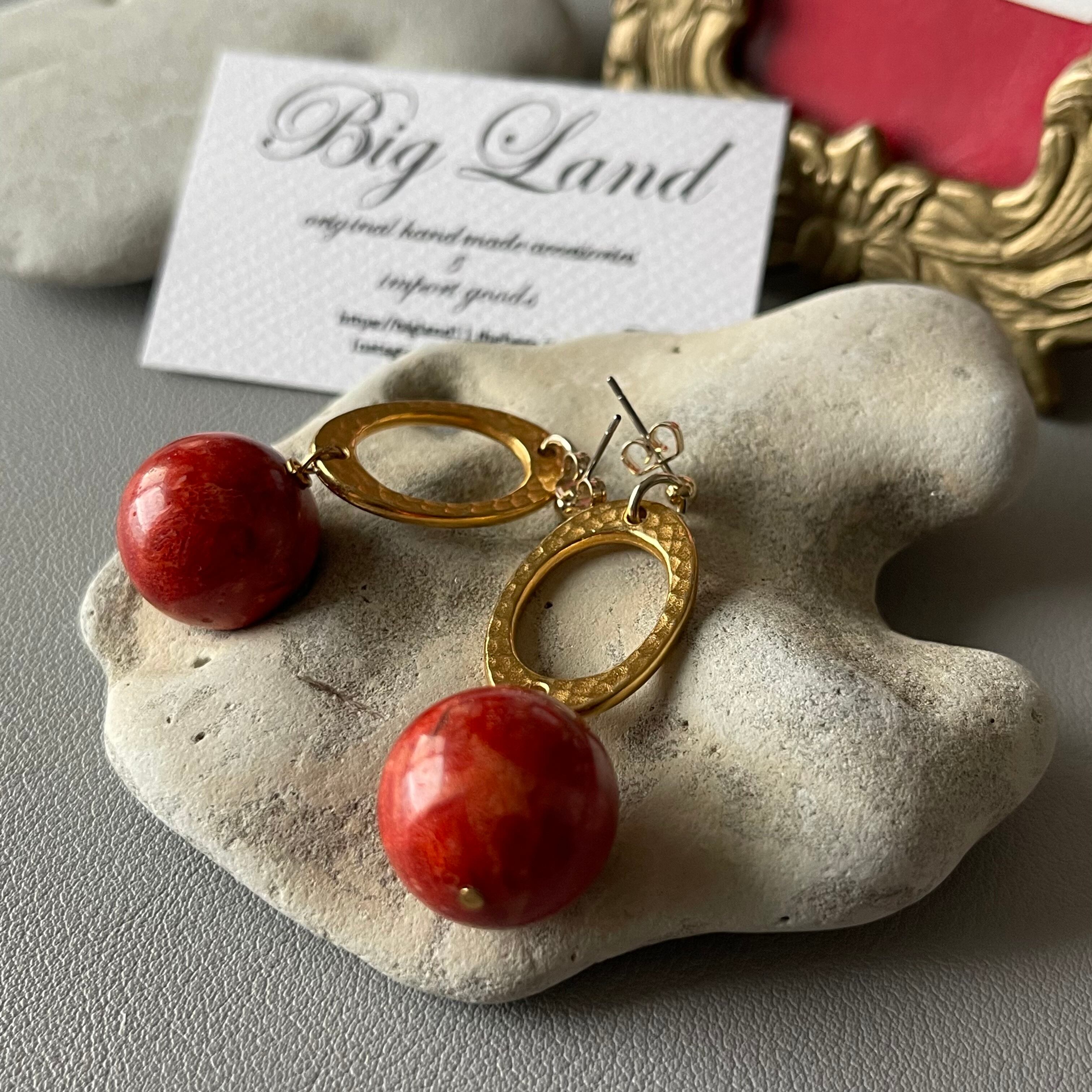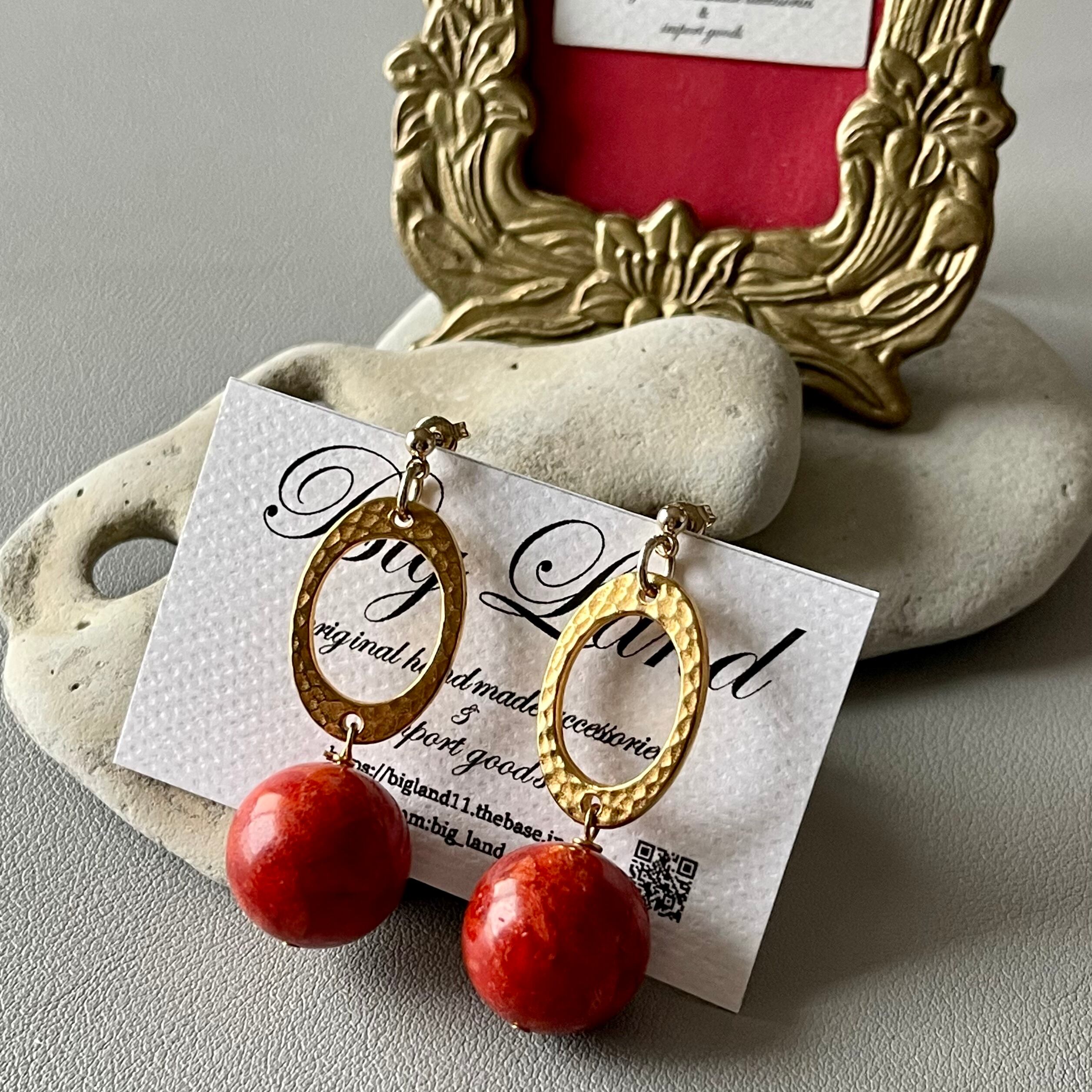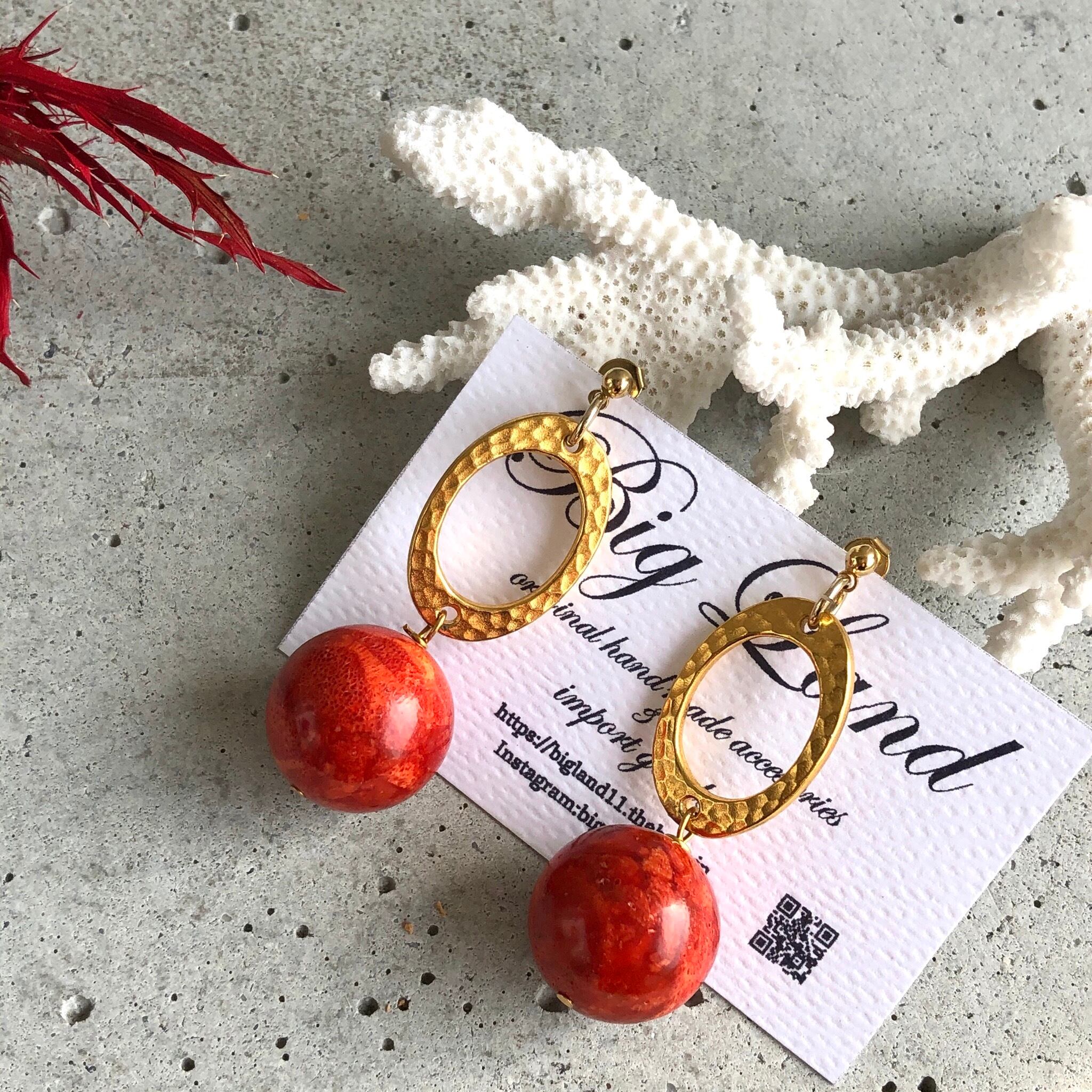 スポンジ珊瑚は軽いのが特徴なので、大玉をピアスに使いパンチを出してみました!!