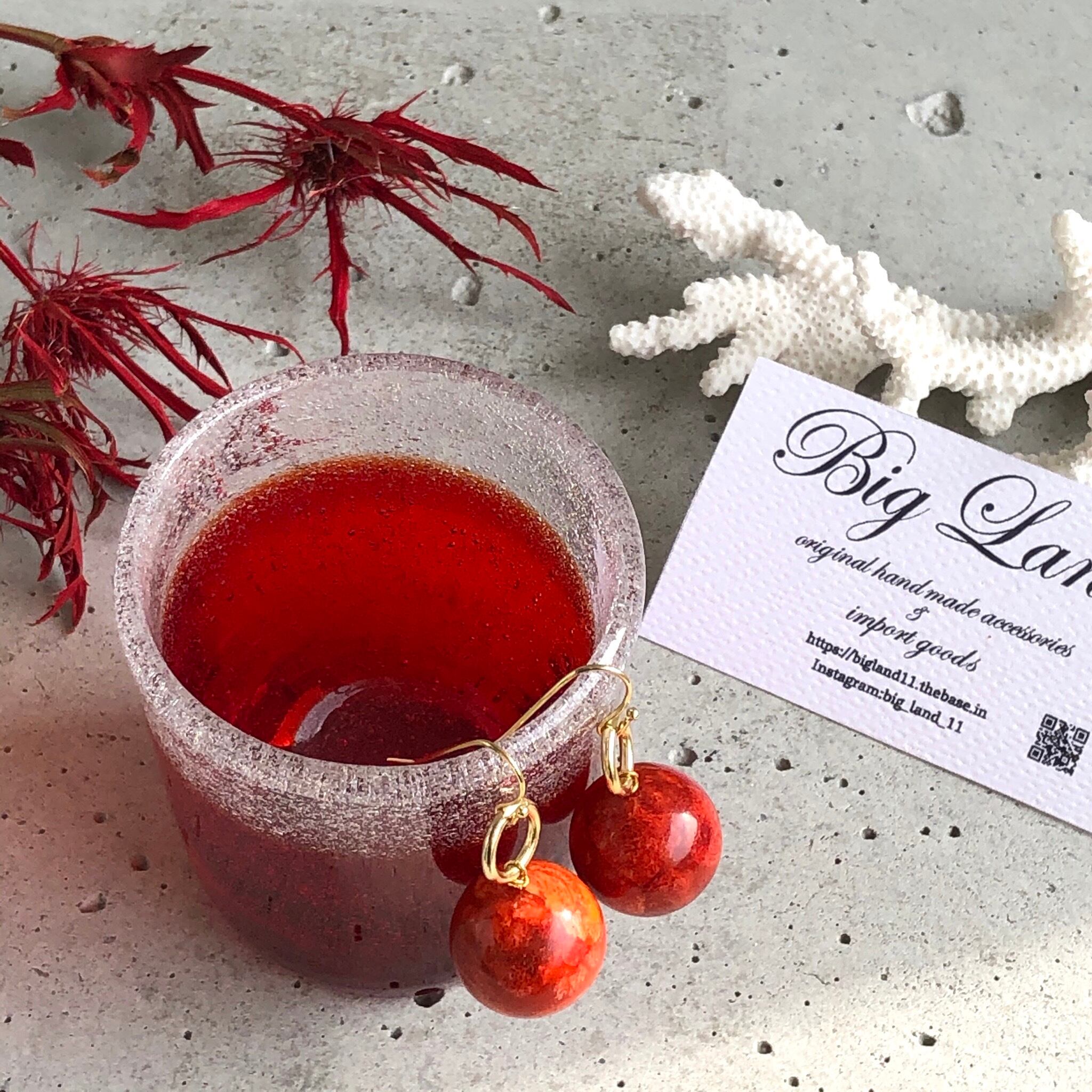 朱色の情熱カラー大玉スポンジ珊瑚でシンプルに仕上げました‼️