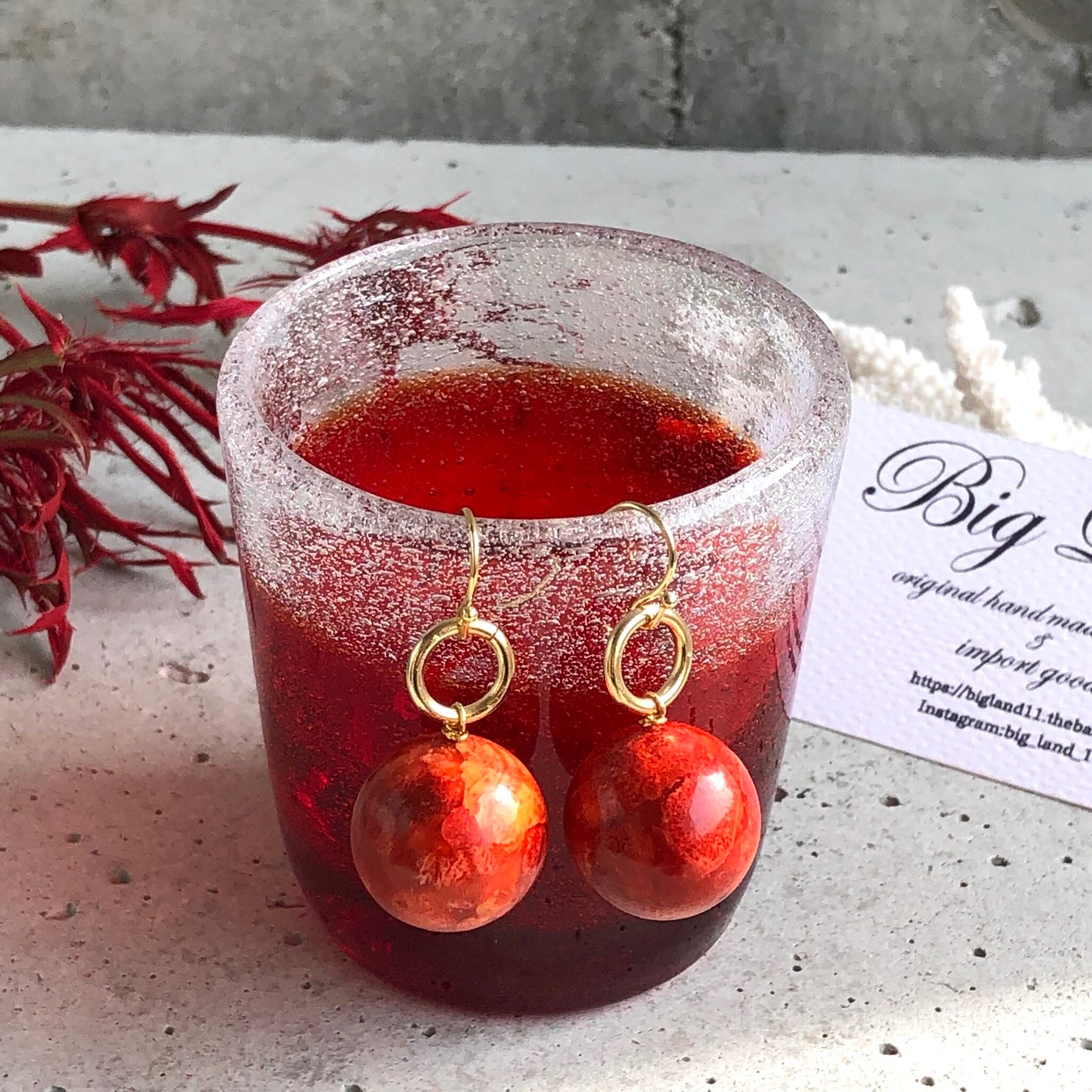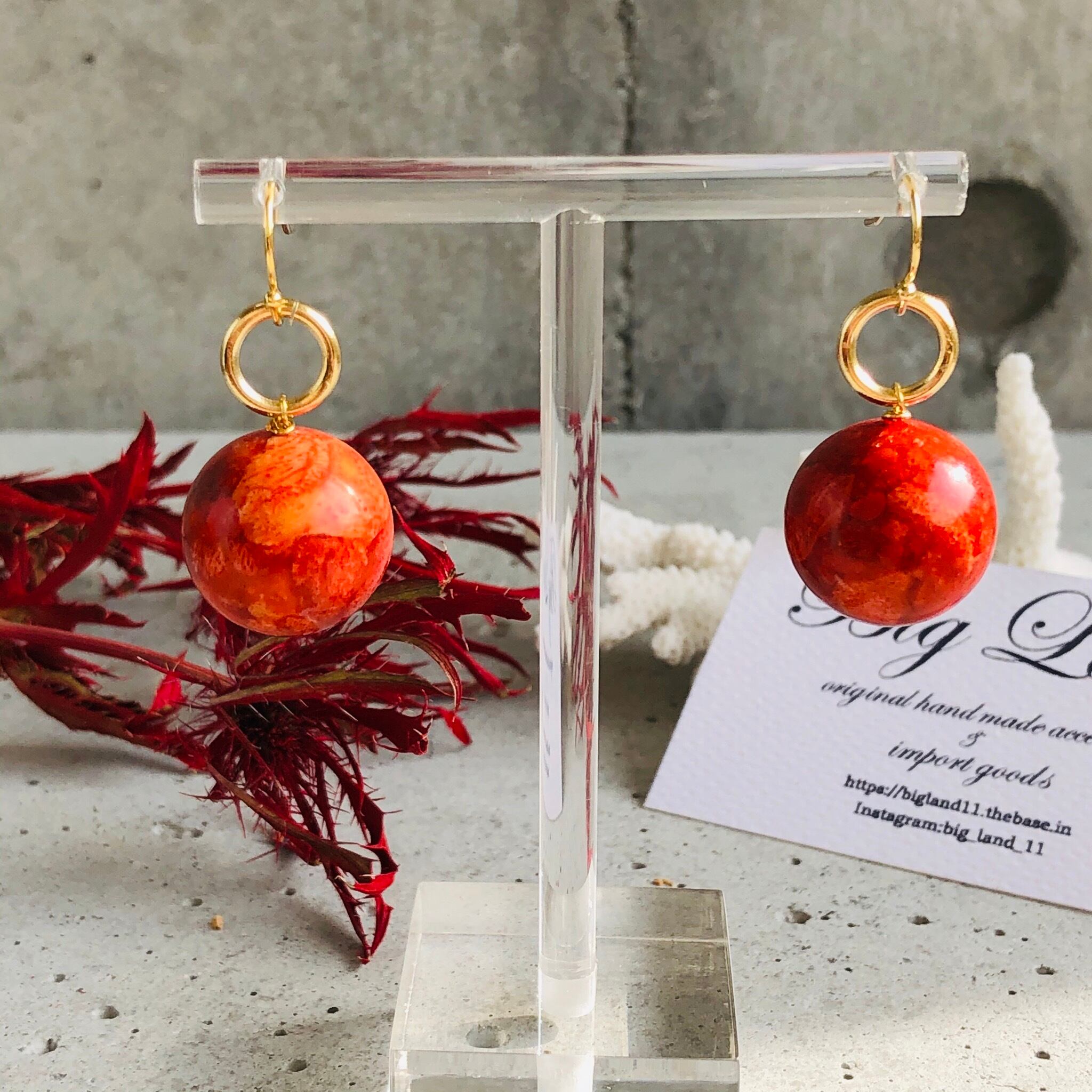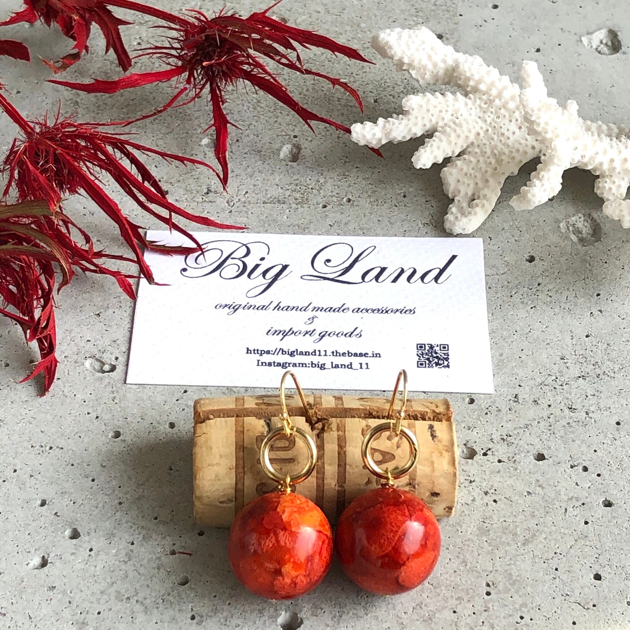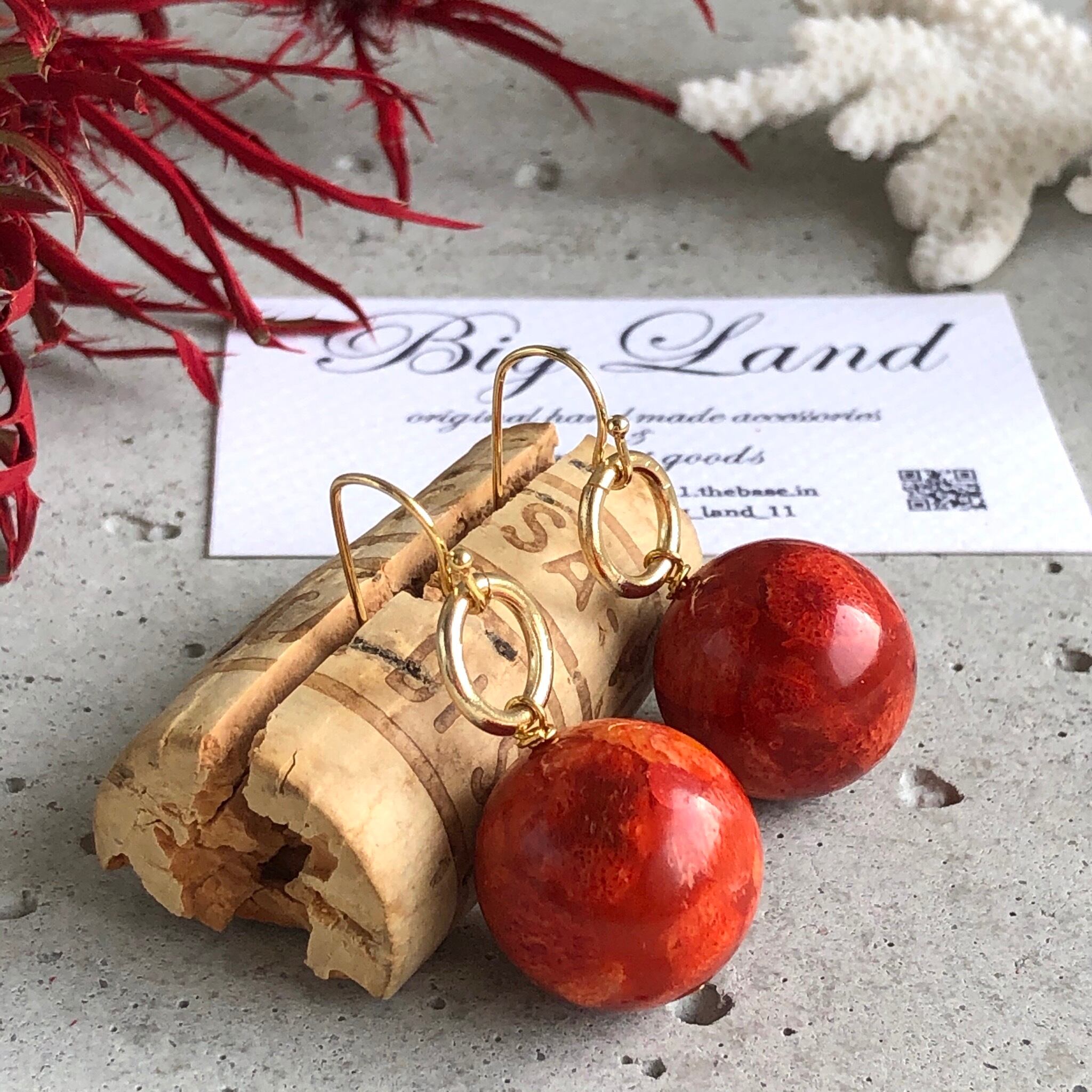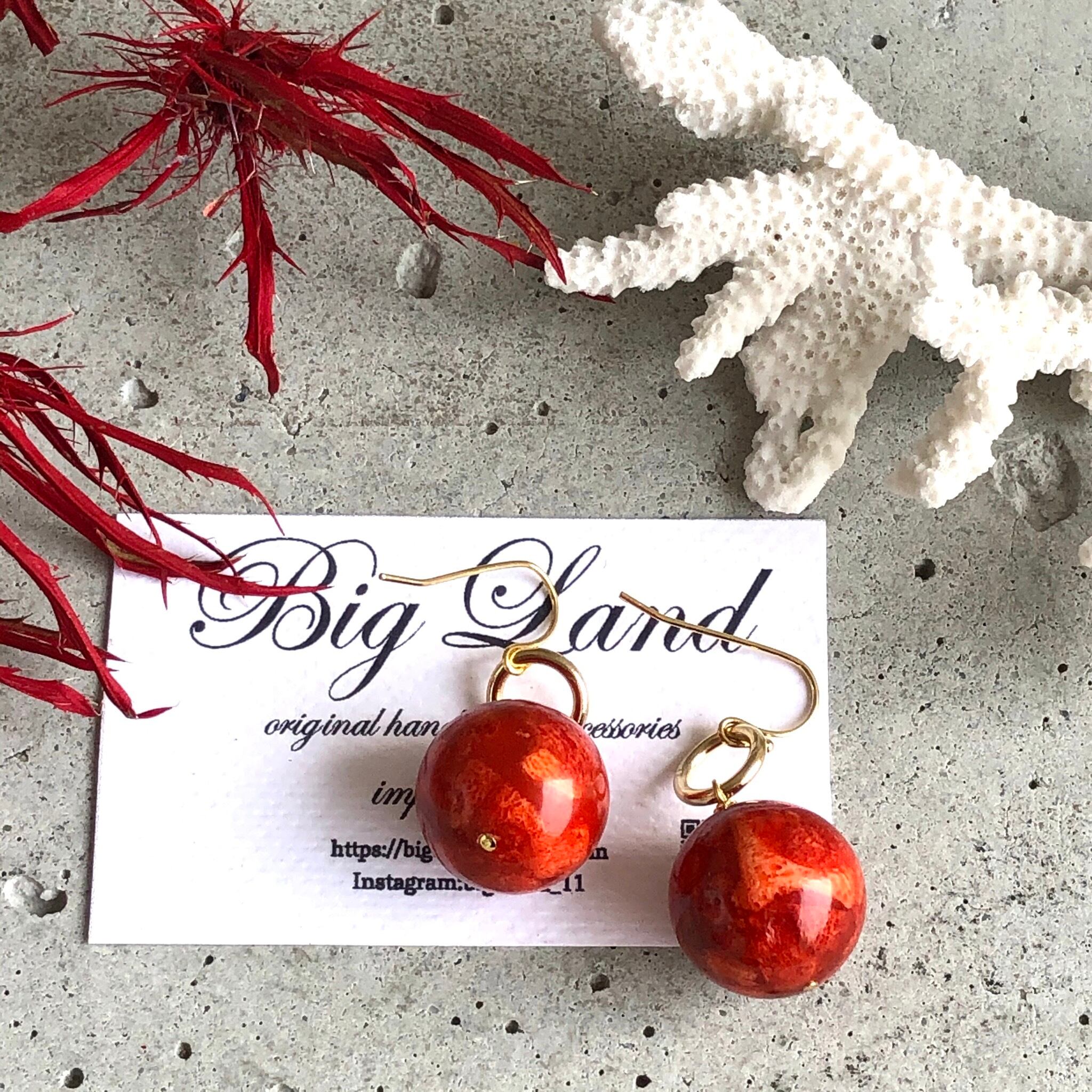スポンジ珊瑚は軽いのが特徴なので、大玉をピアスに使いパンチを出してみました!!