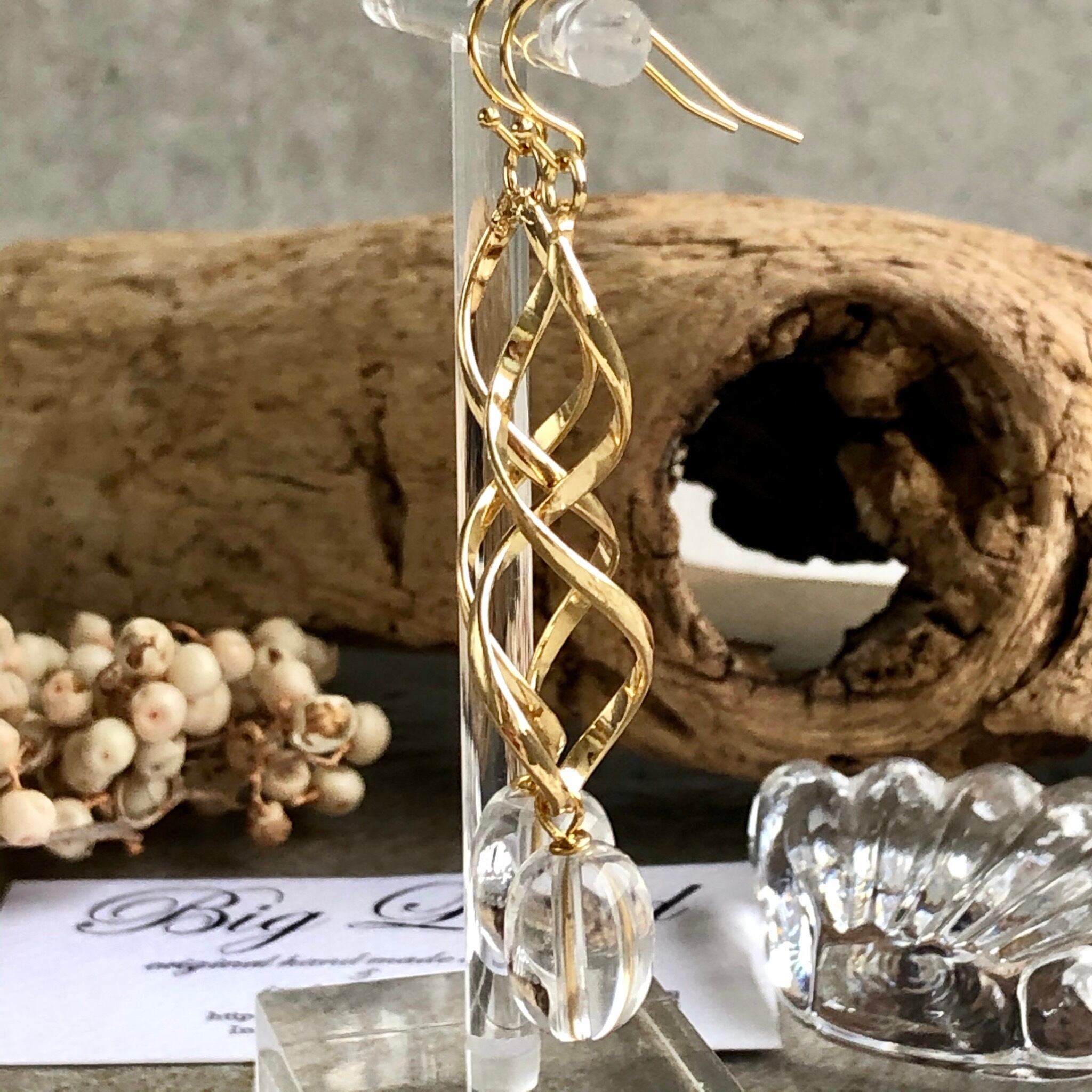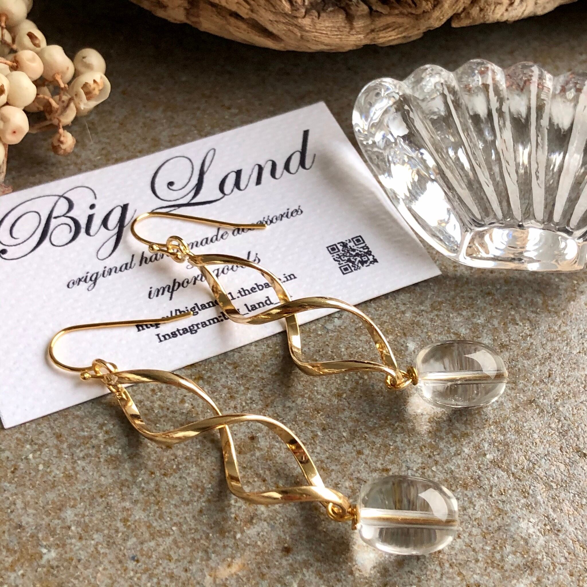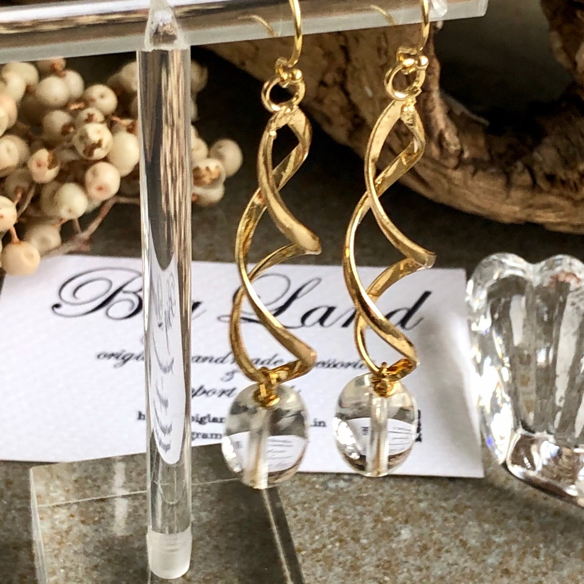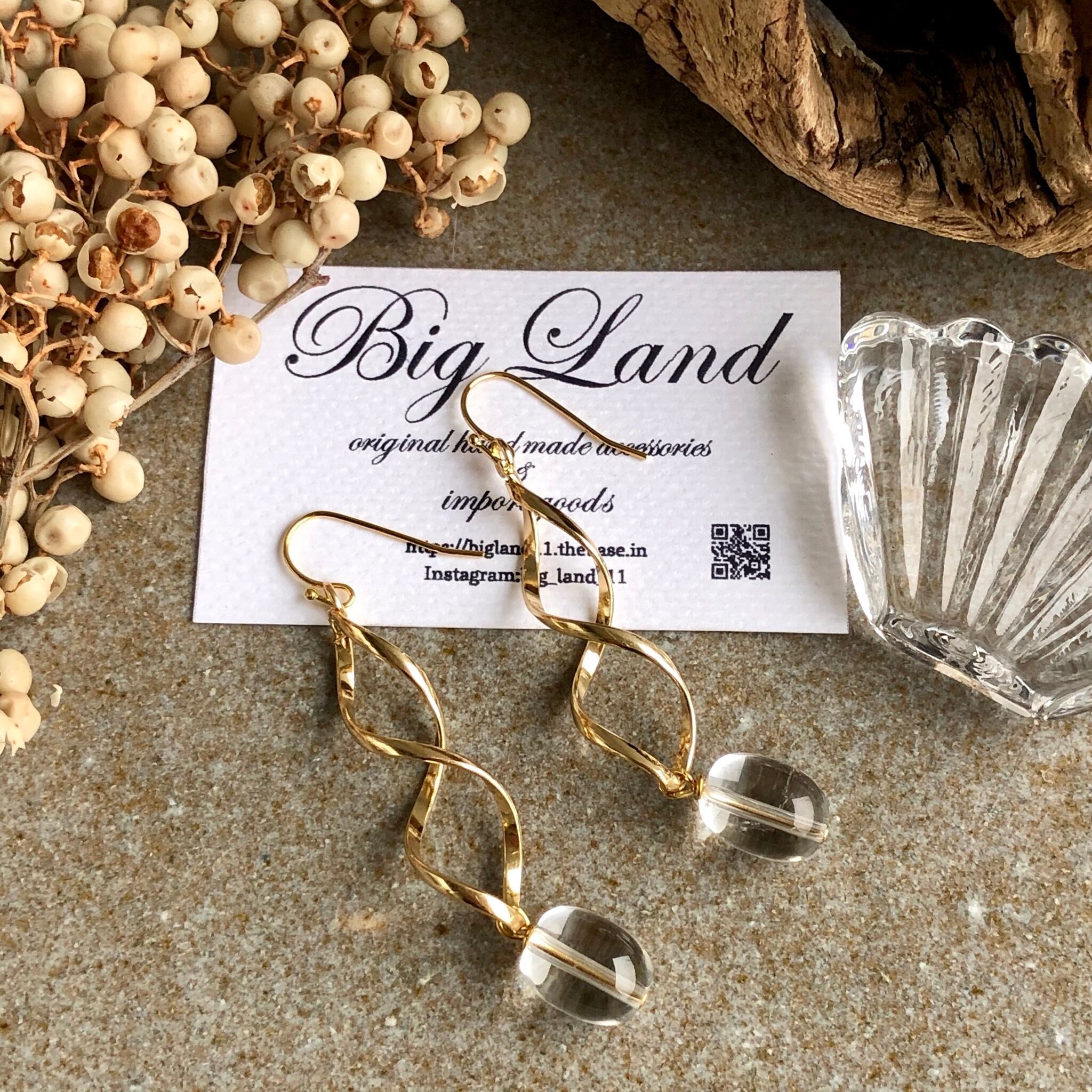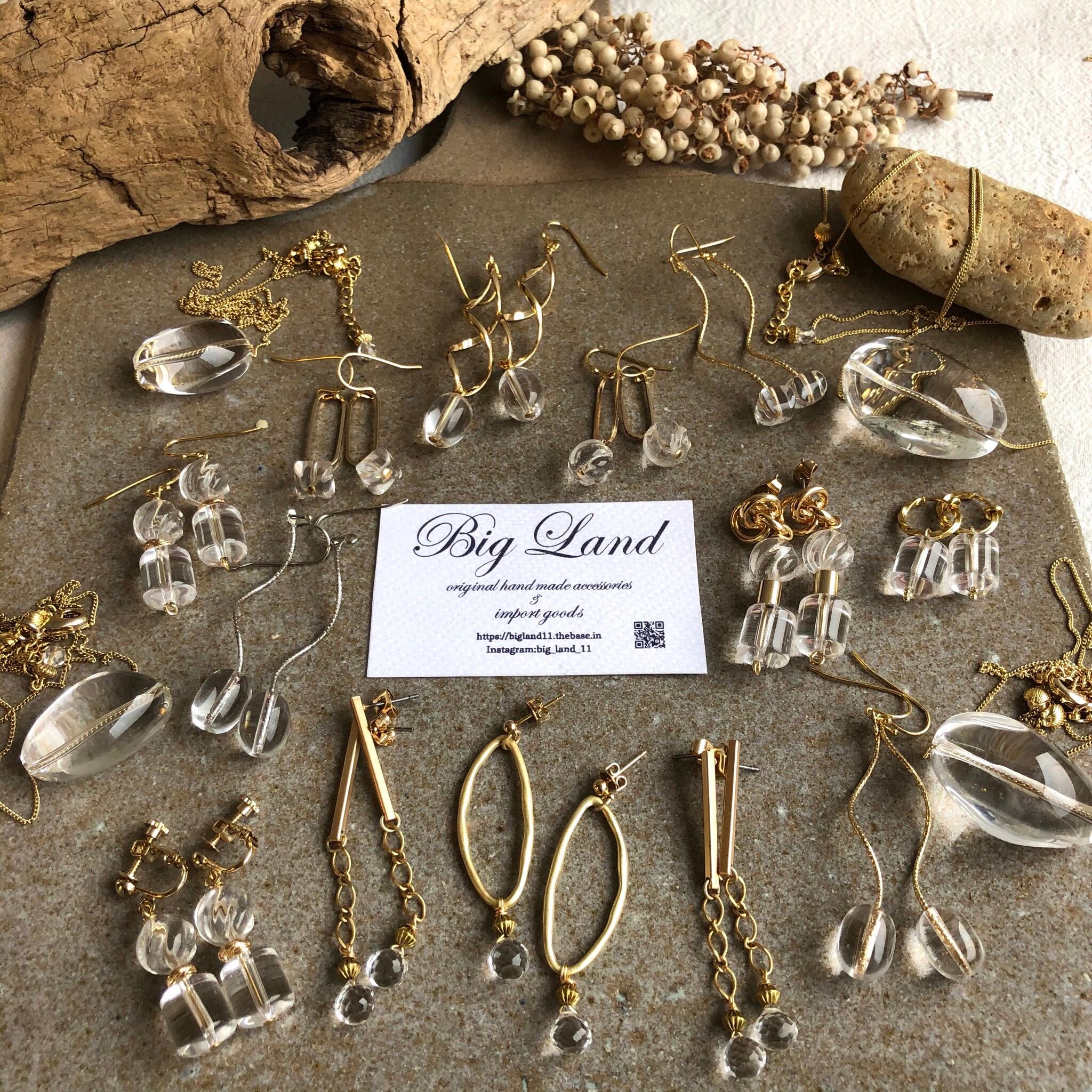 小ぶりな楕円タマゴ型が優しい雰囲気で少し長めのサイズにして揺れる事により水晶にキラキラと光が差し遊び心のあるデザインに仕上げました✨