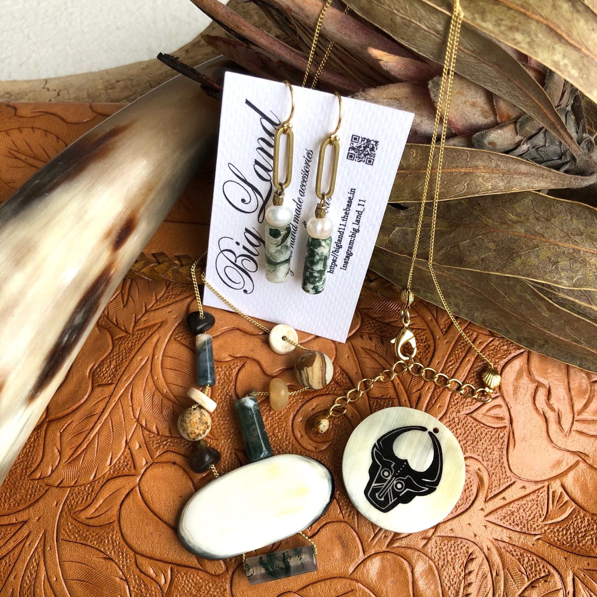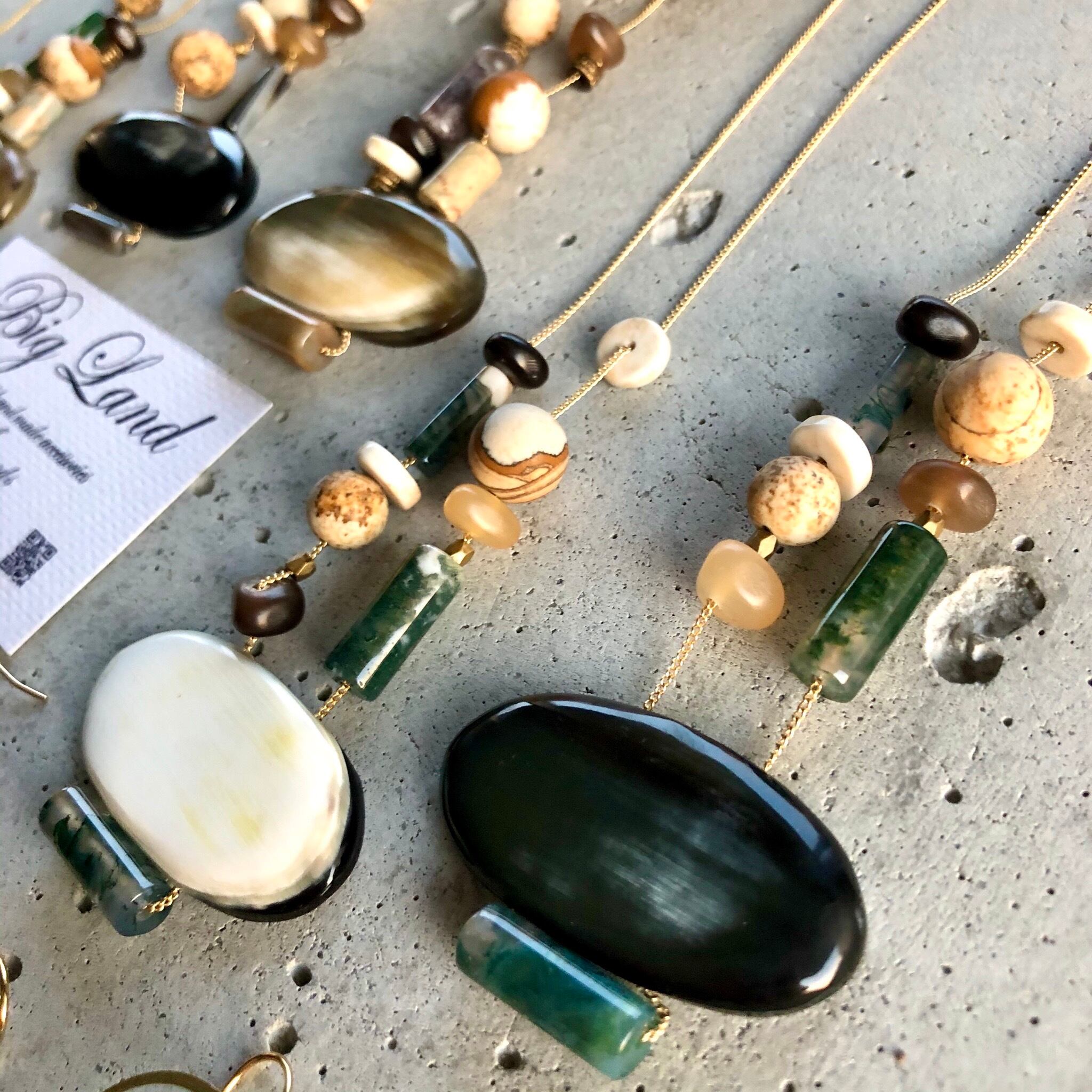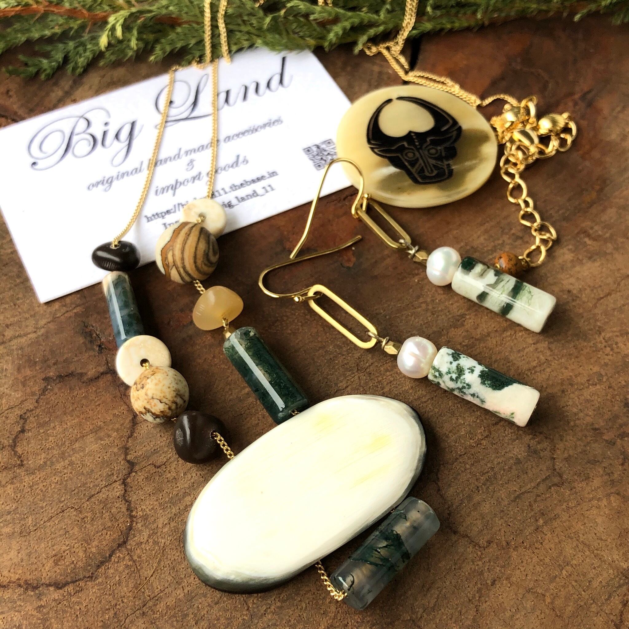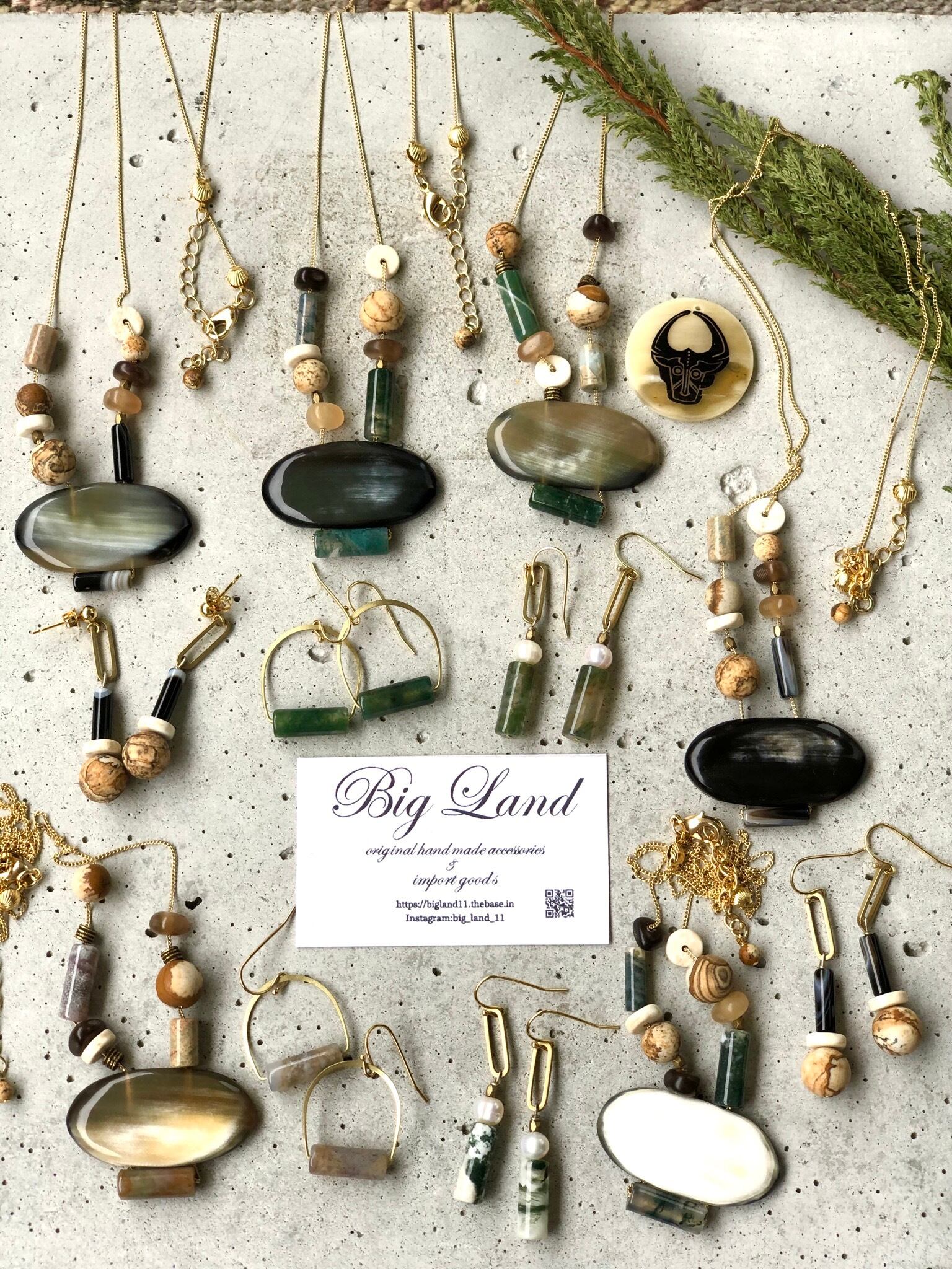 トレンドの水牛とナチュラルな色合いの天然石を色々と組み合わせ斬新なデザイナーズな雰囲気に仕上げました✨