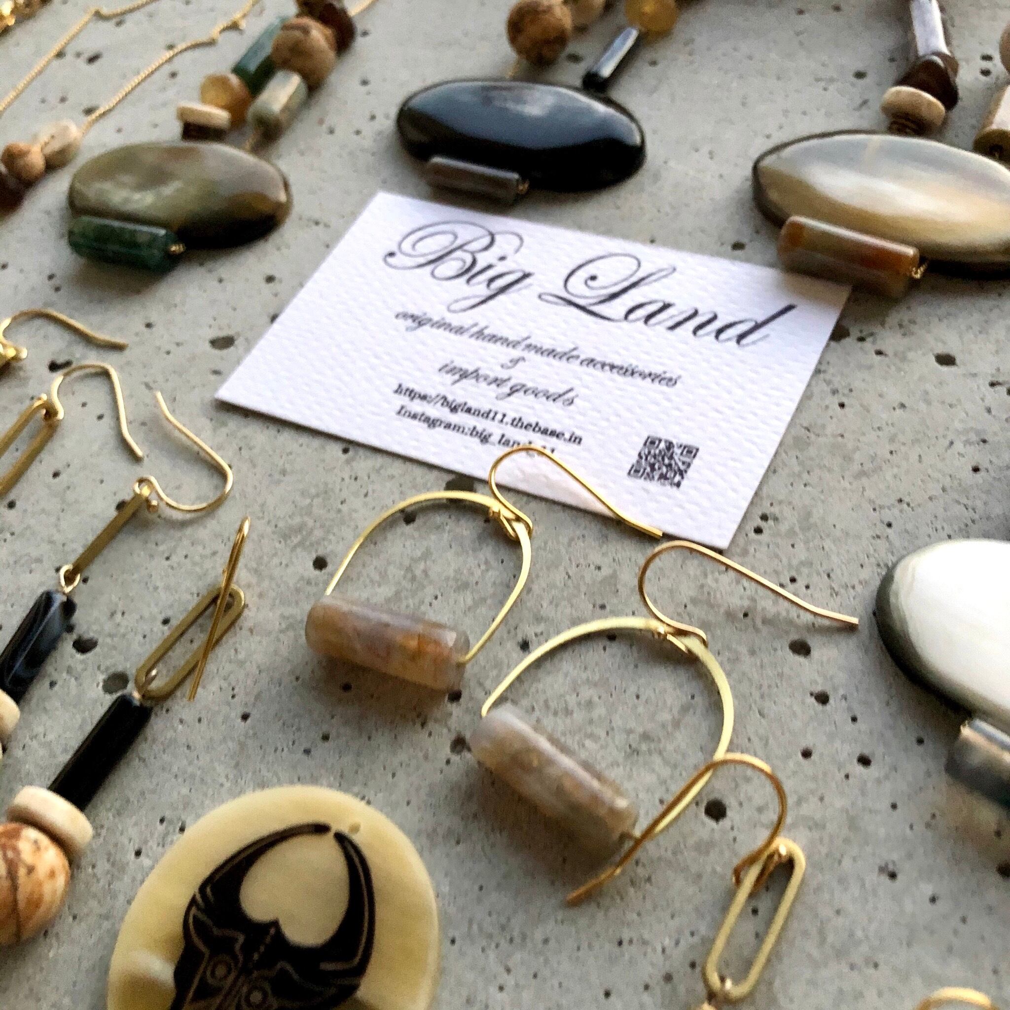 ナチュラルな色合いの天然石と真鍮を組み合わせ斬新なデザイナーズな雰囲気に仕上げました✨
