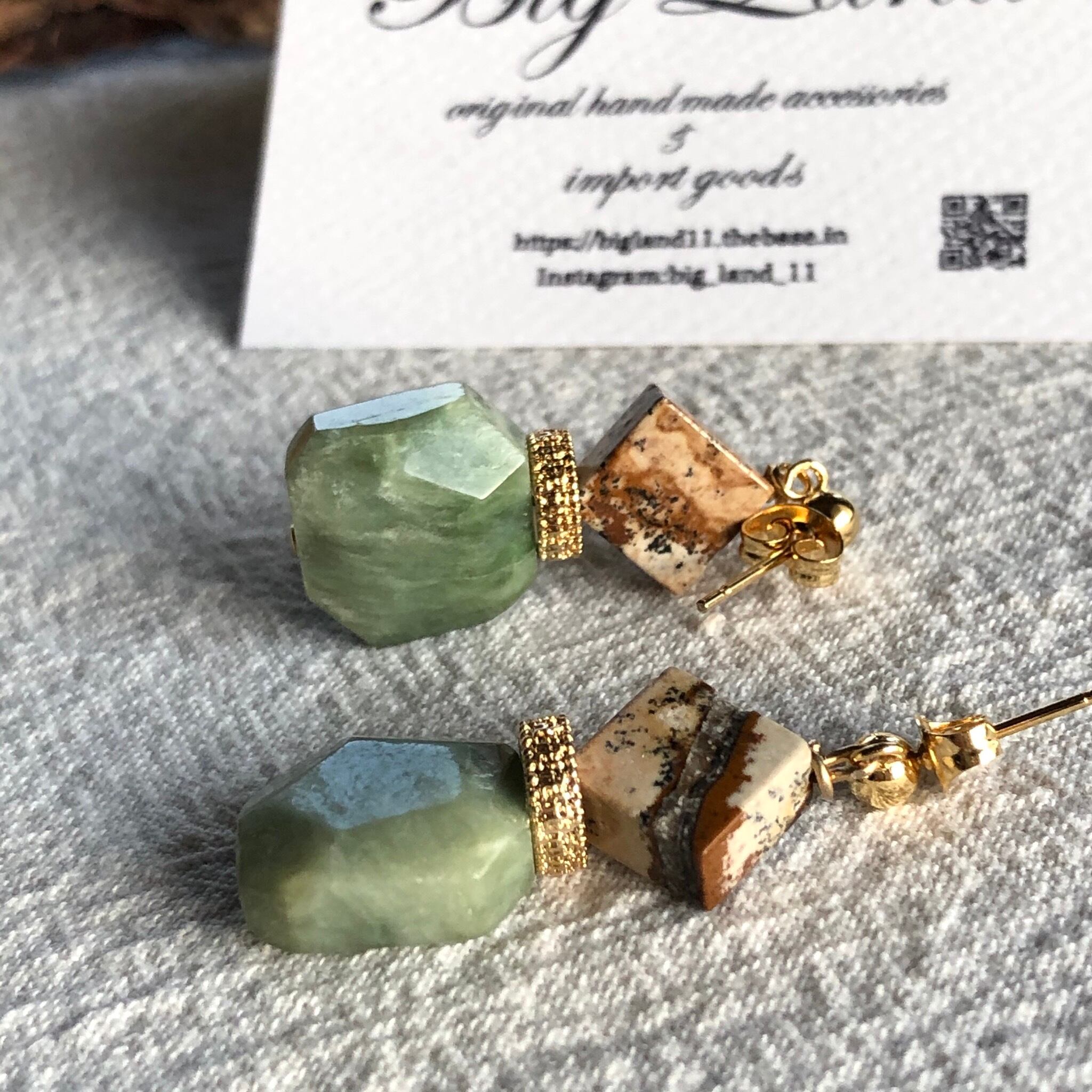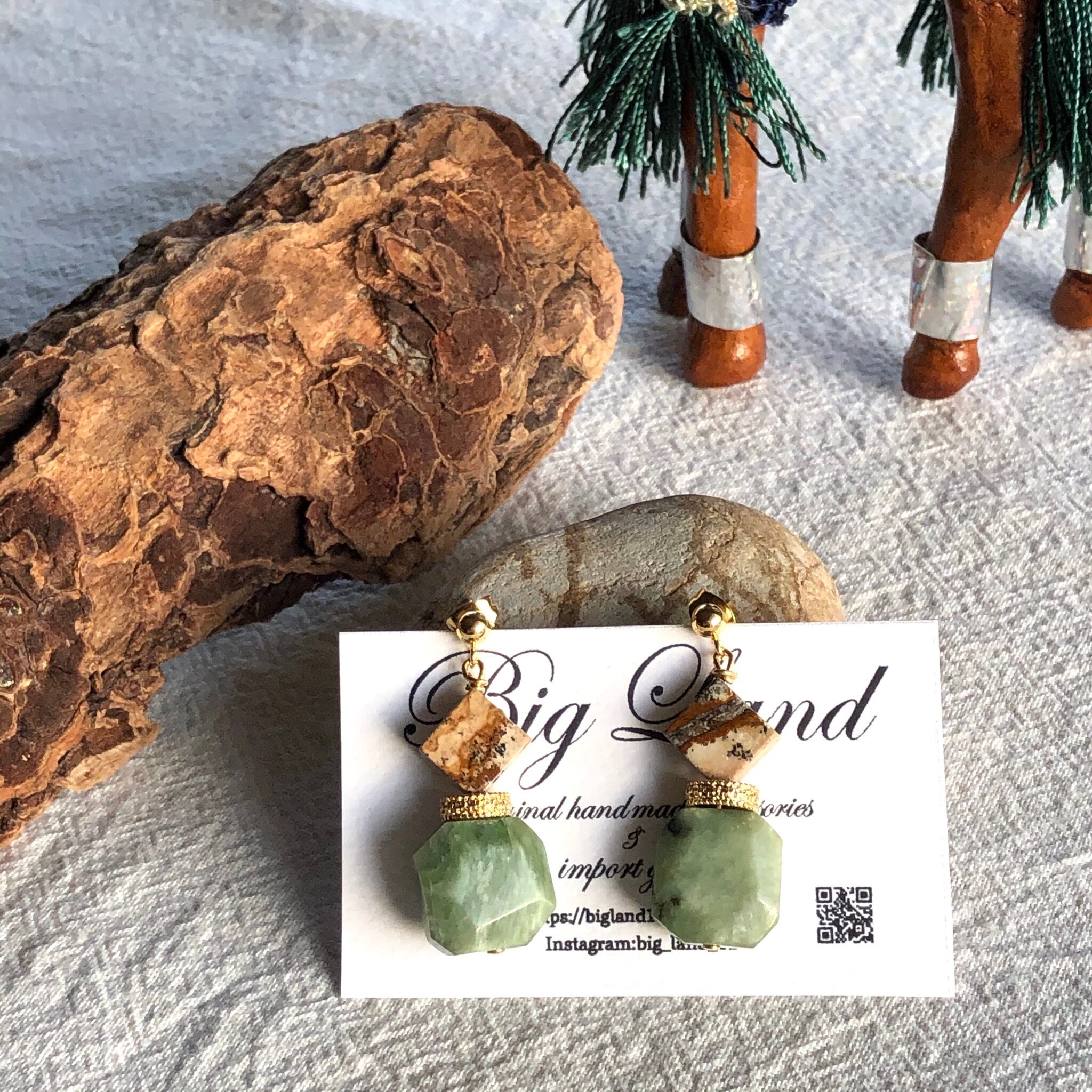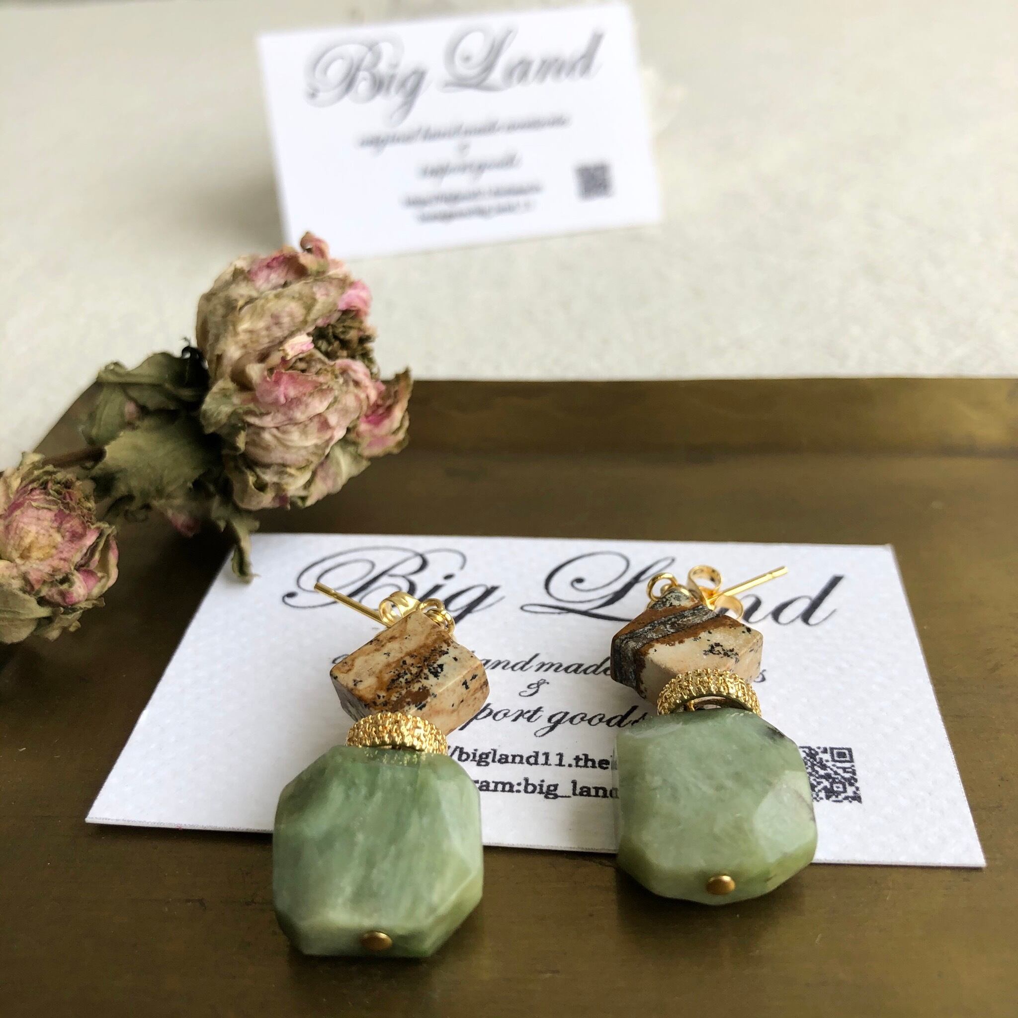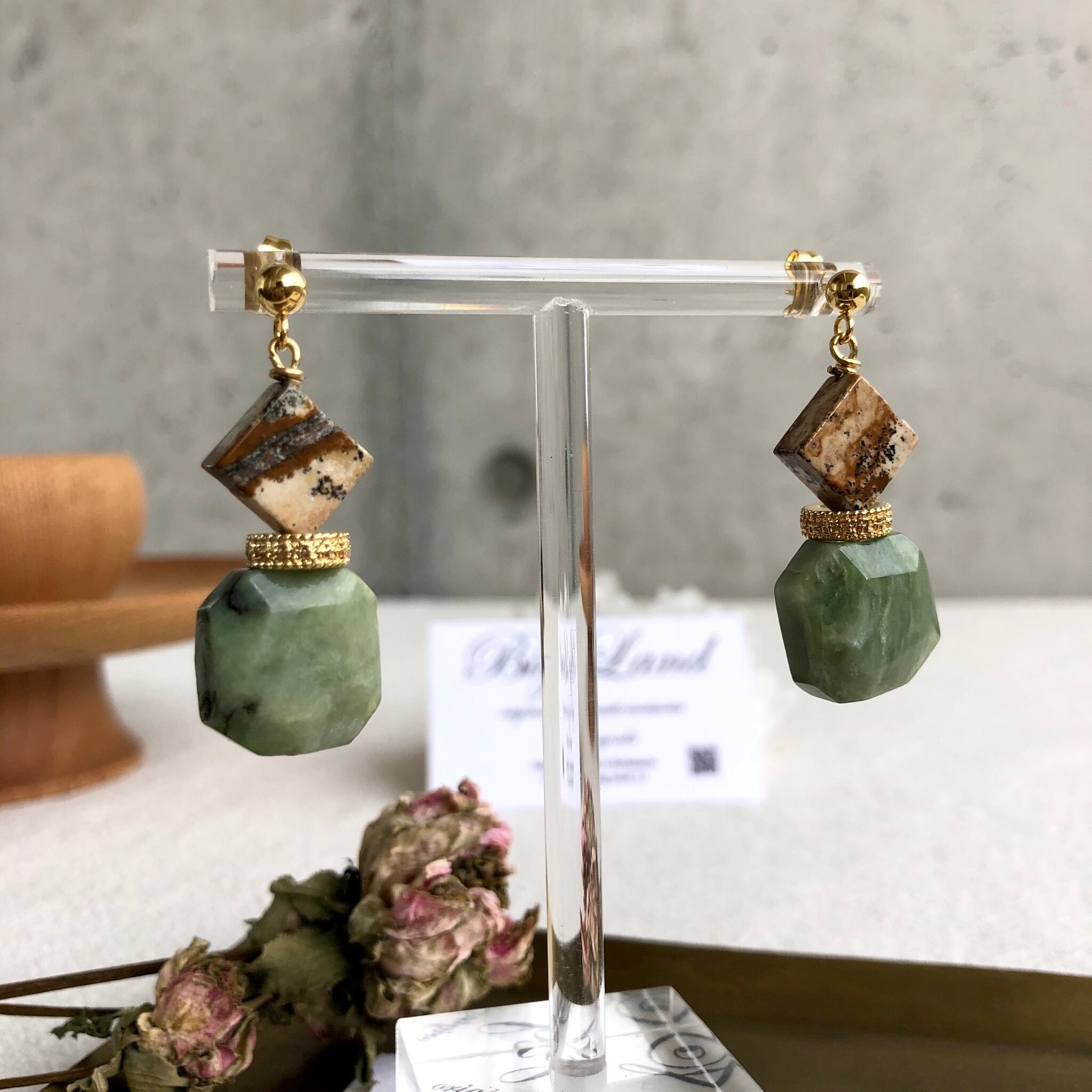 ネフライトとジャスパーを組み合わせ、大地の恵みを感じるピアスに仕上げました!!