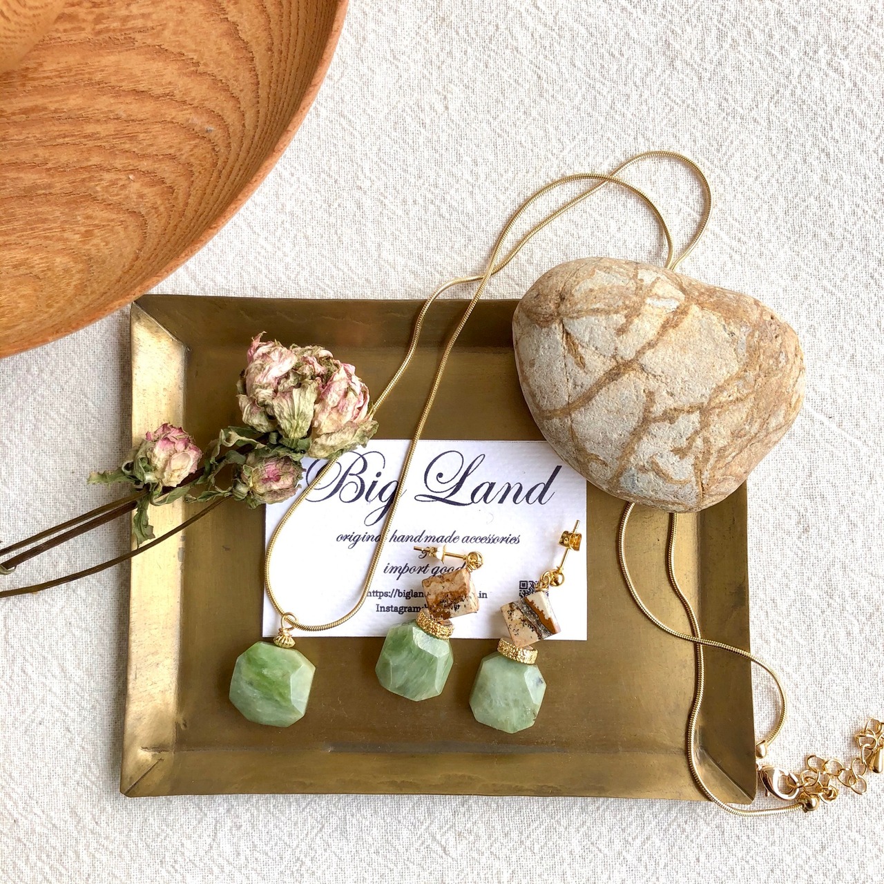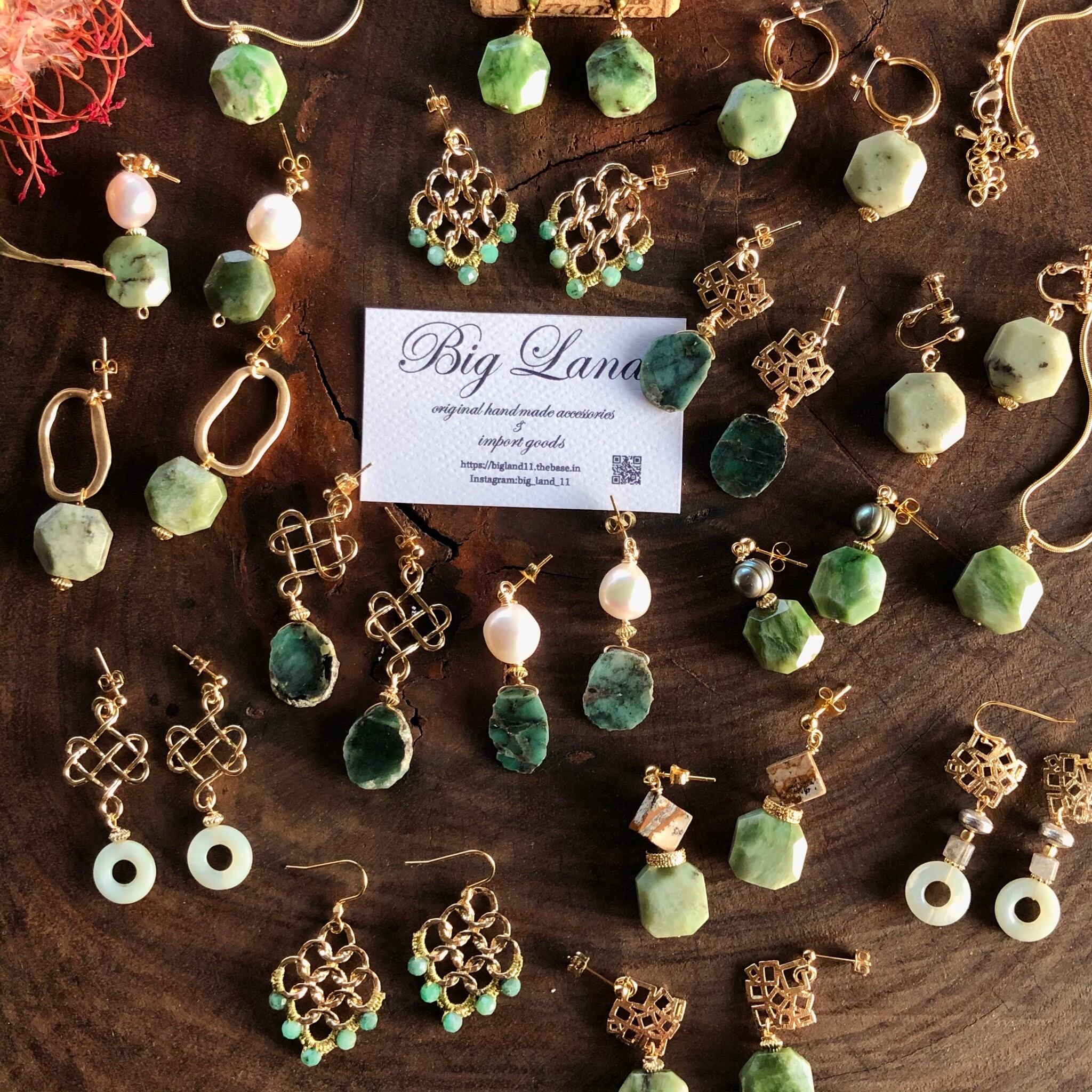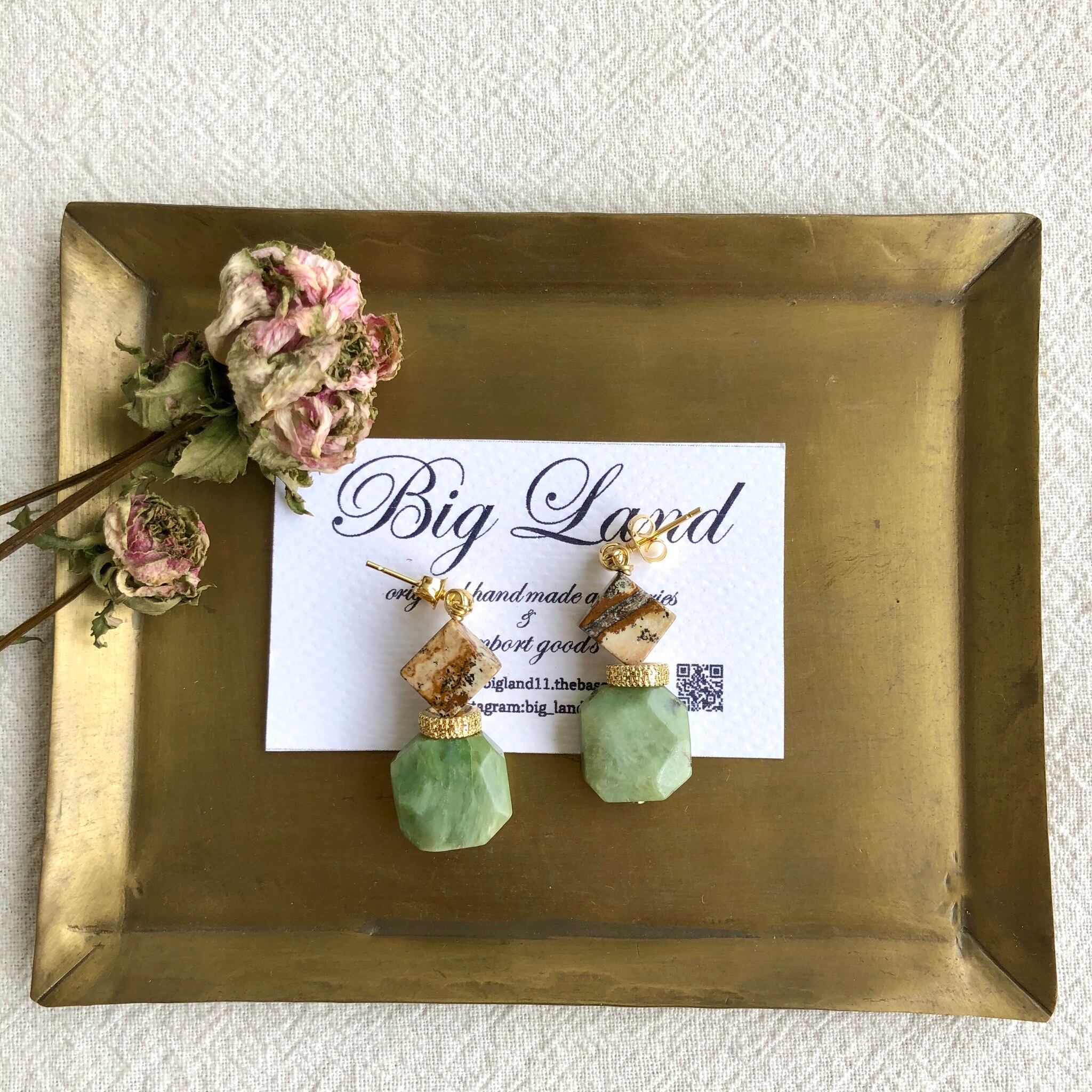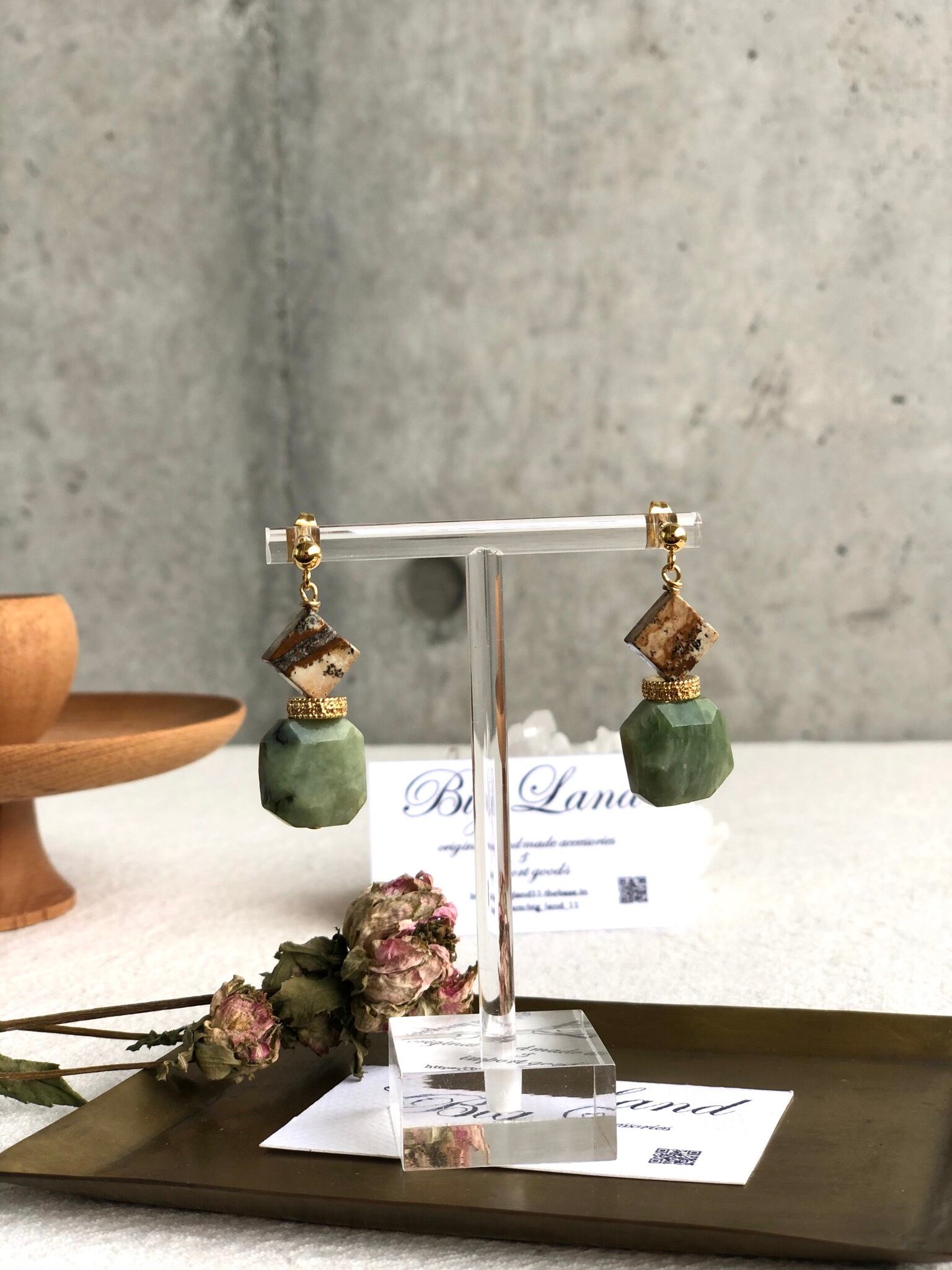 ネフライトとジャスパーを組み合わせ、大地の恵みを感じるピアスに仕上げました!!