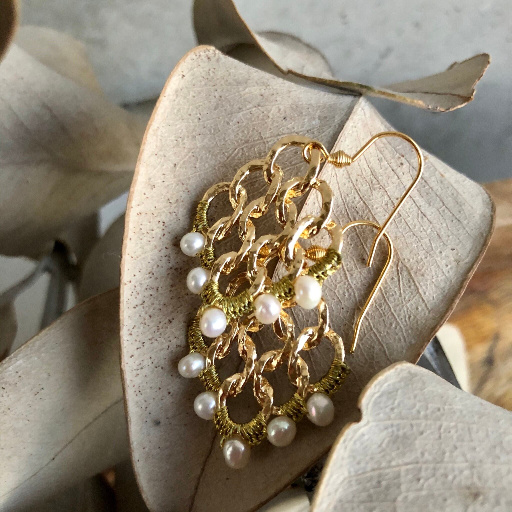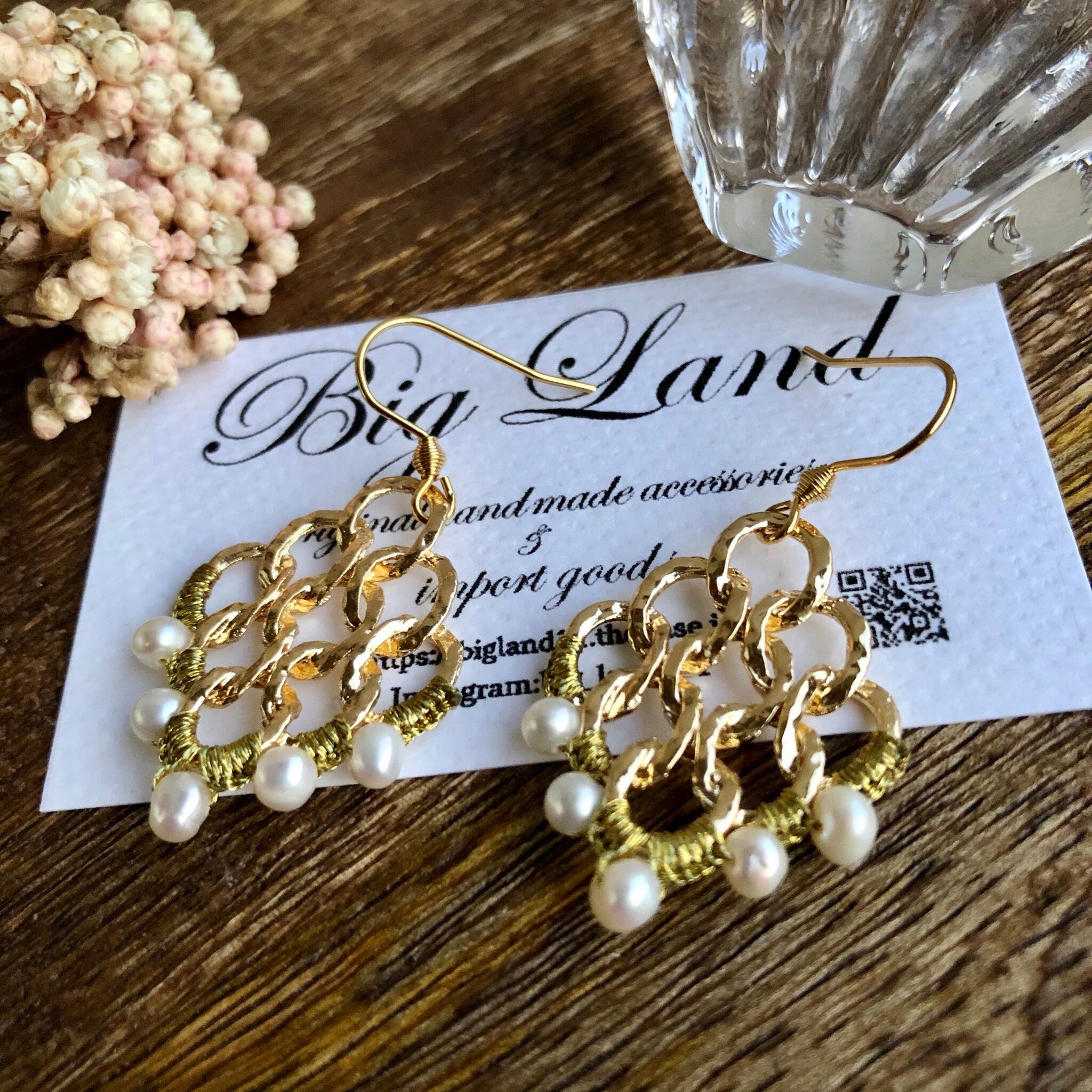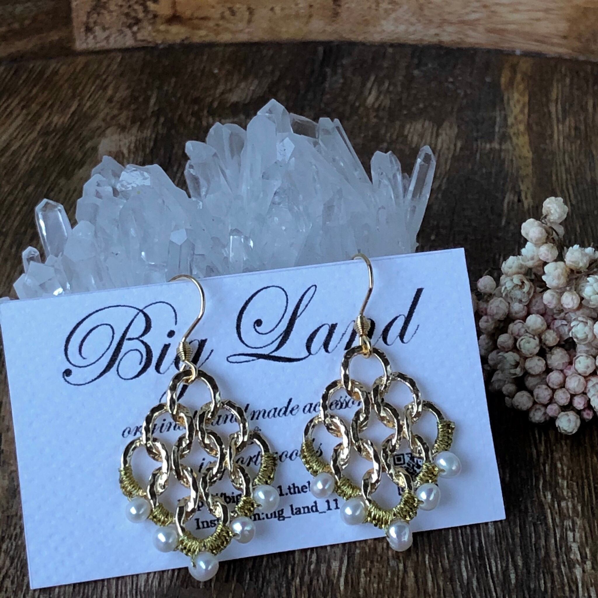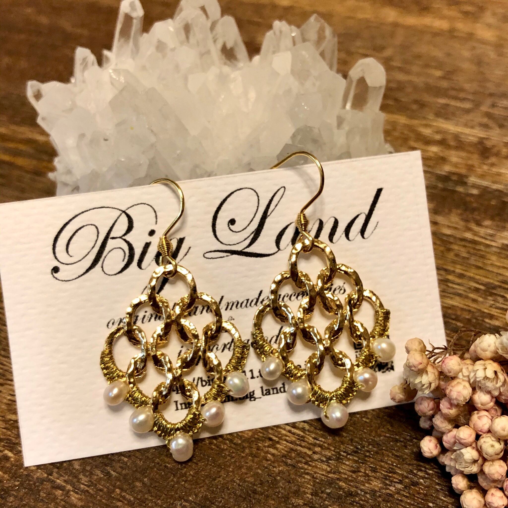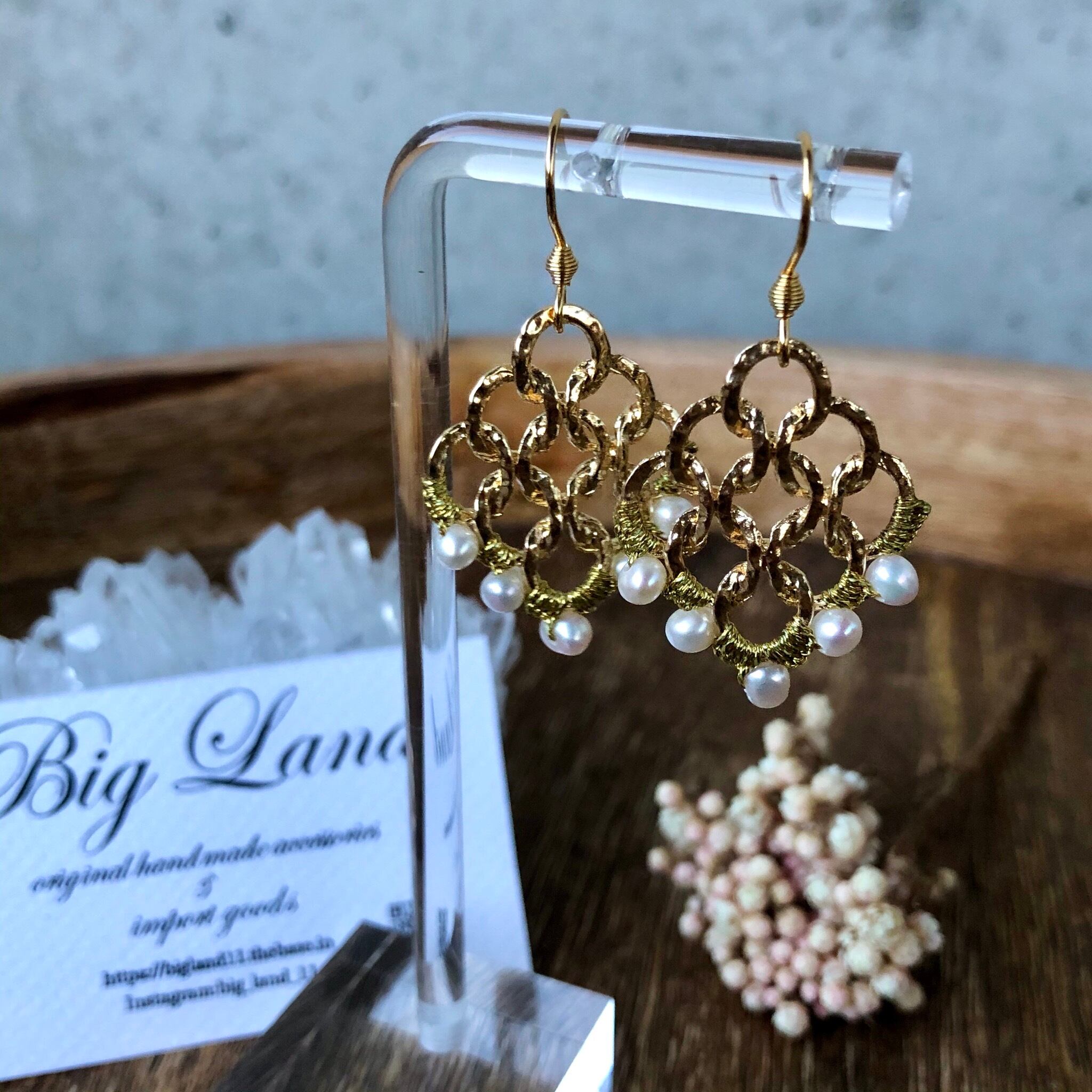 小粒パールを透かしデザインに編み込みオリエンタルな雰囲気に仕上がりました‼︎