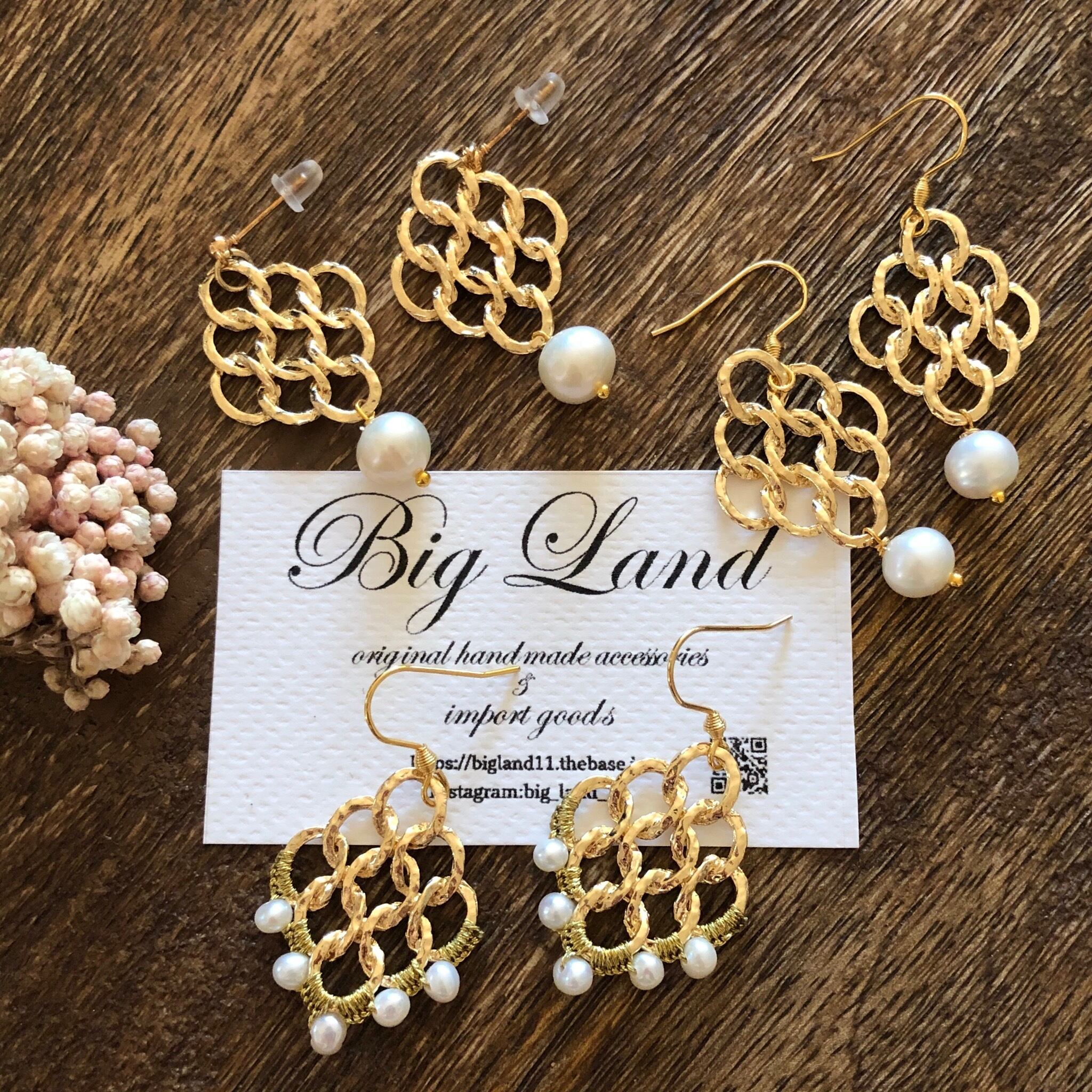 ゴールドとホワイトパールの組み合わせはどんなお洋服にも合わせ易い色合いで、夏になるとホワイトコーデが多くなるので、ワントーンコーデのアイテムに‼︎