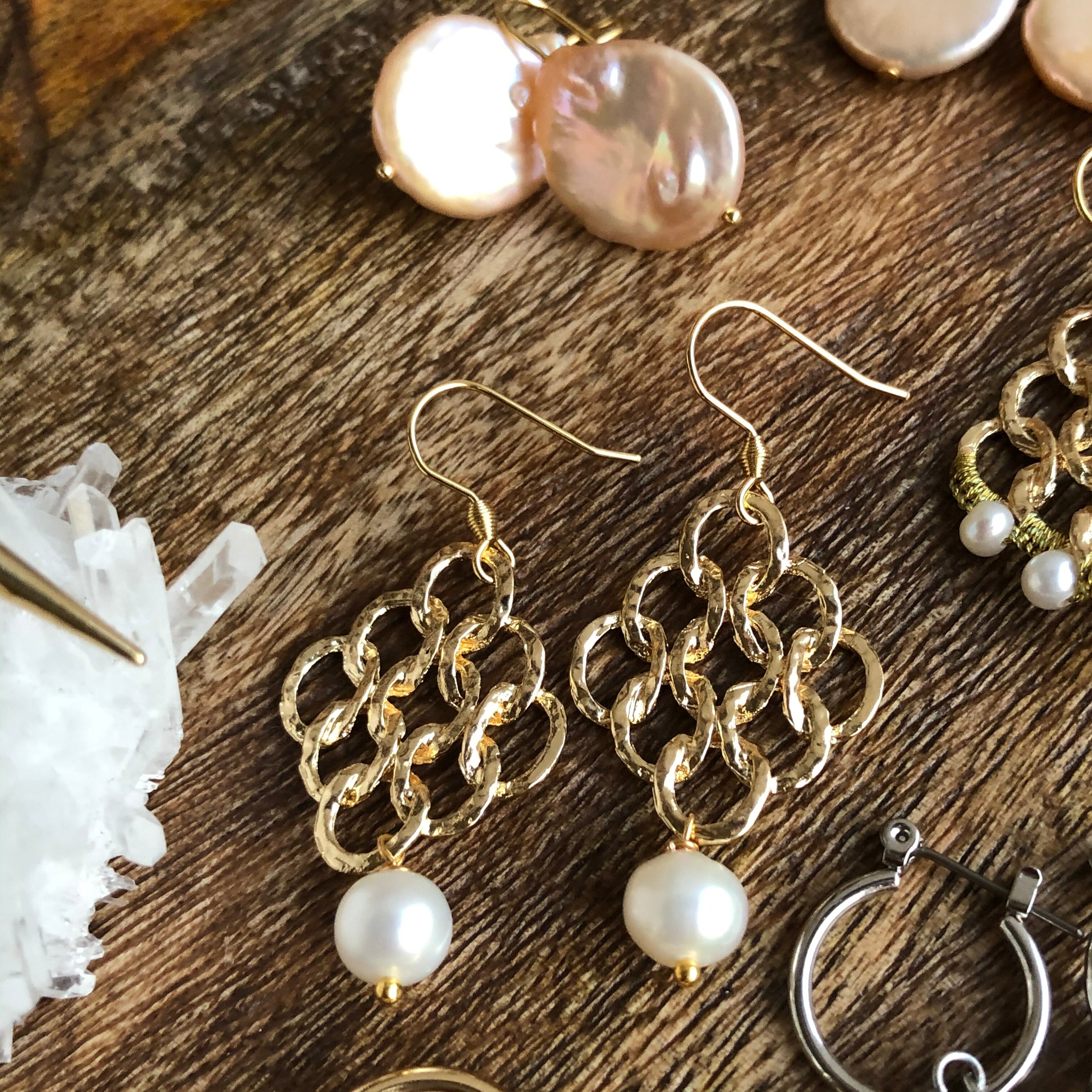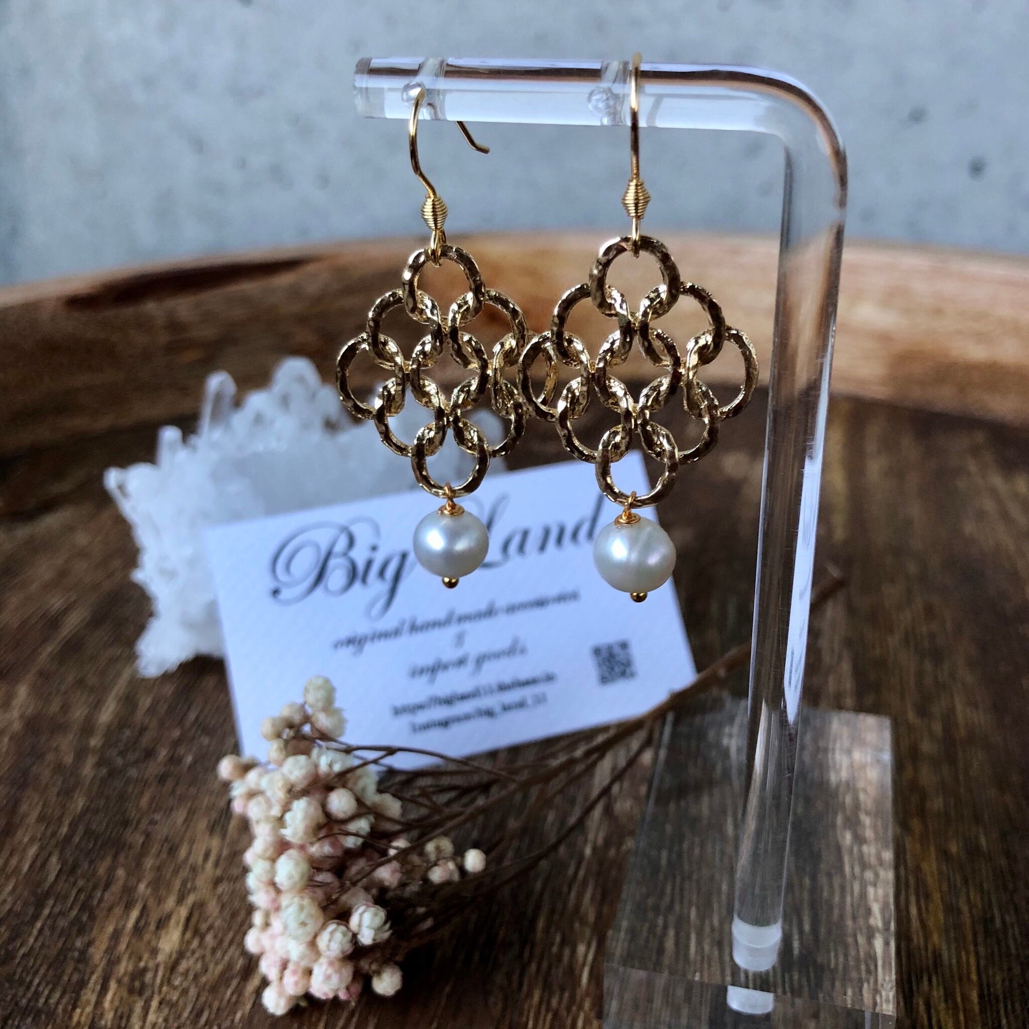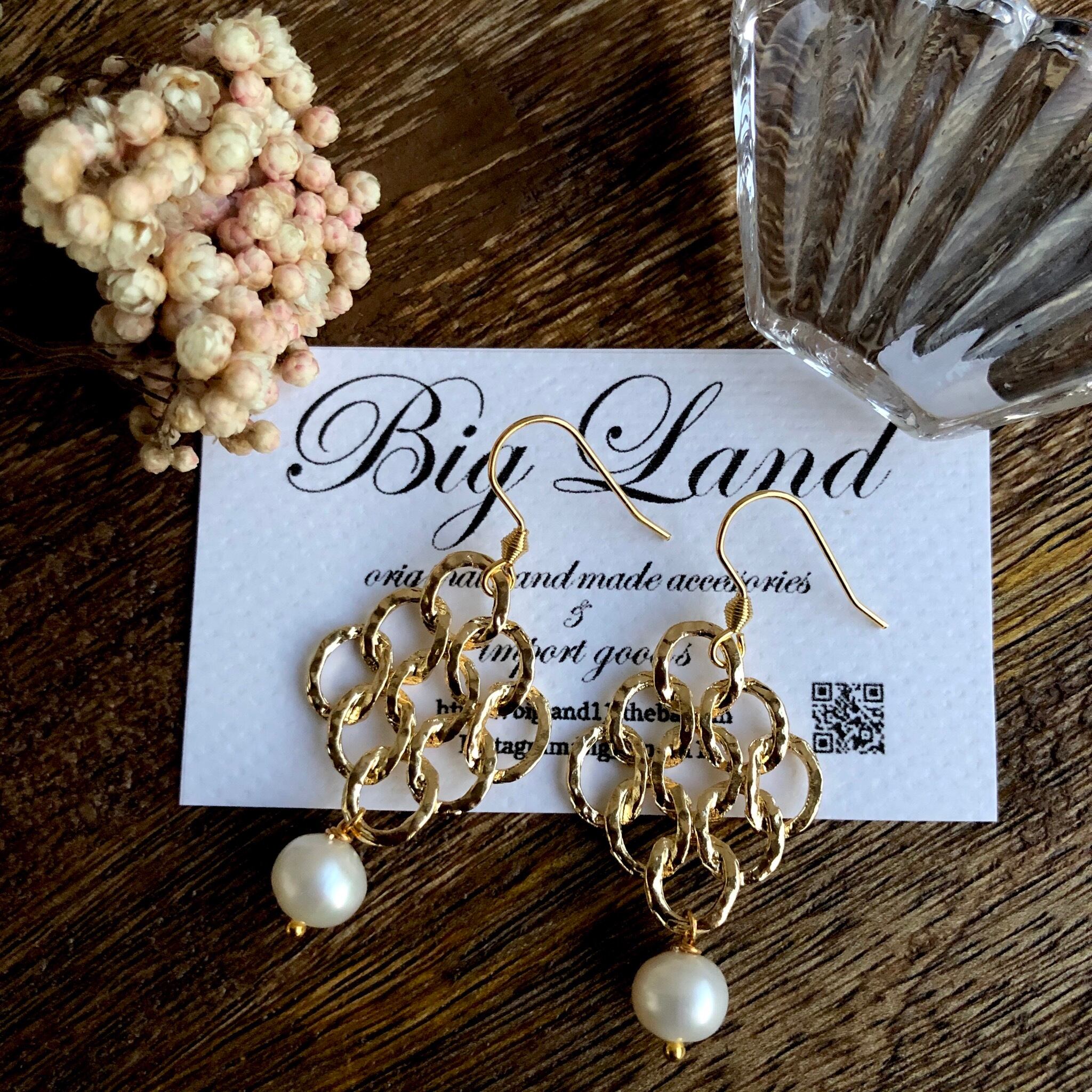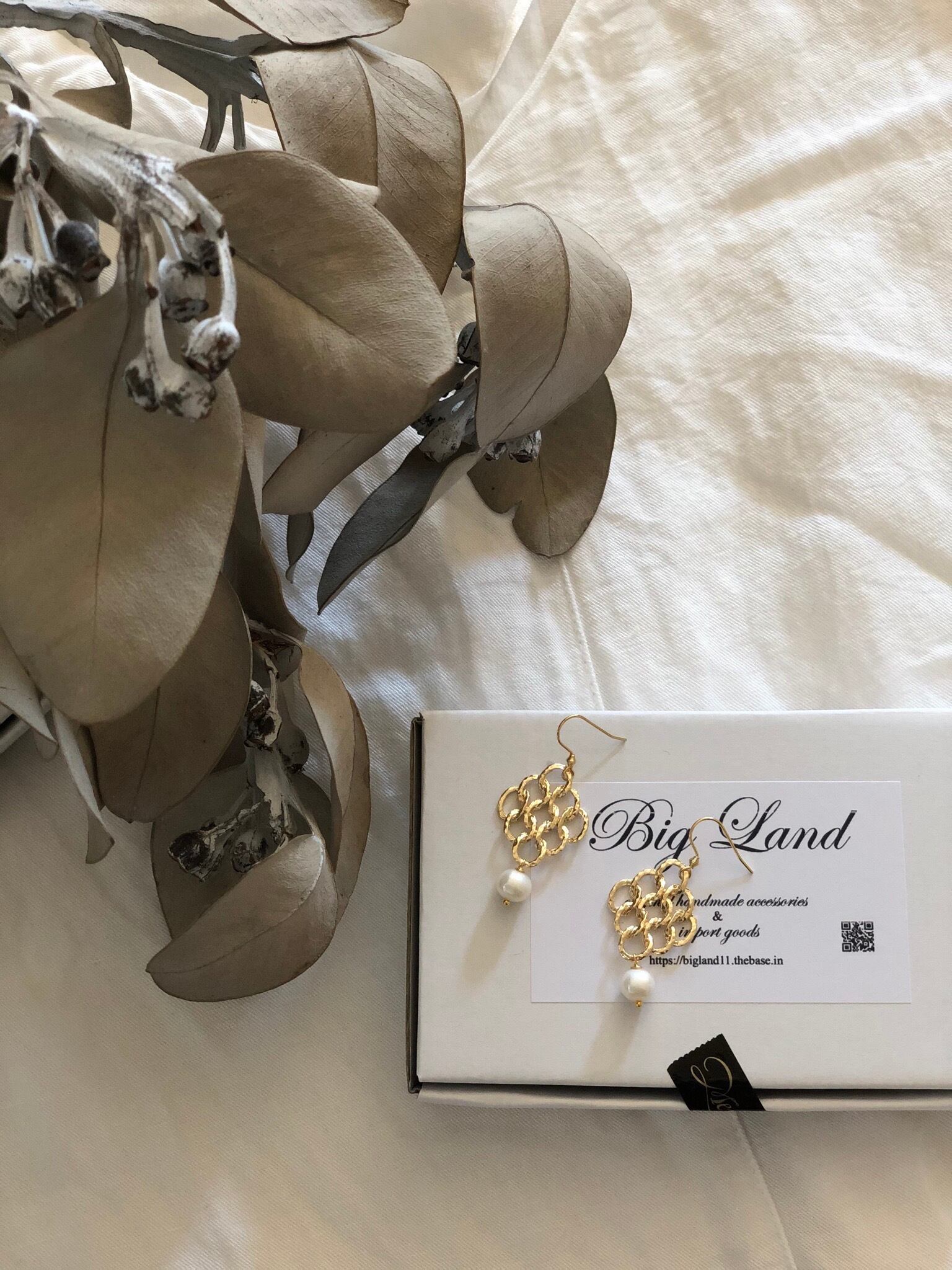 ゴールドとホワイトパールの組み合わせはどんなお洋服にも合わせ易い色合いで、夏になるとホワイトコーデが多くなるので、ワントーンコーデのアイテムに‼︎