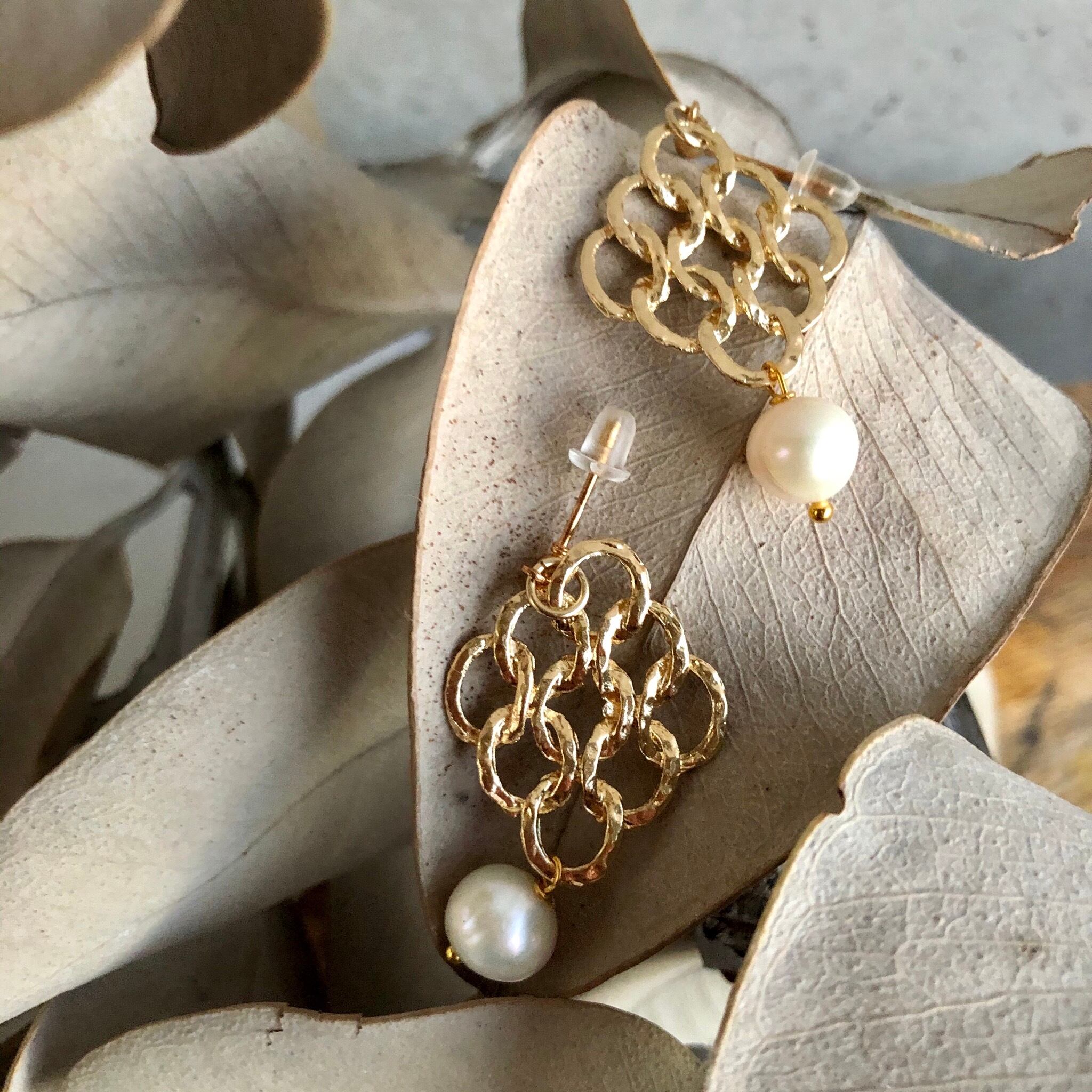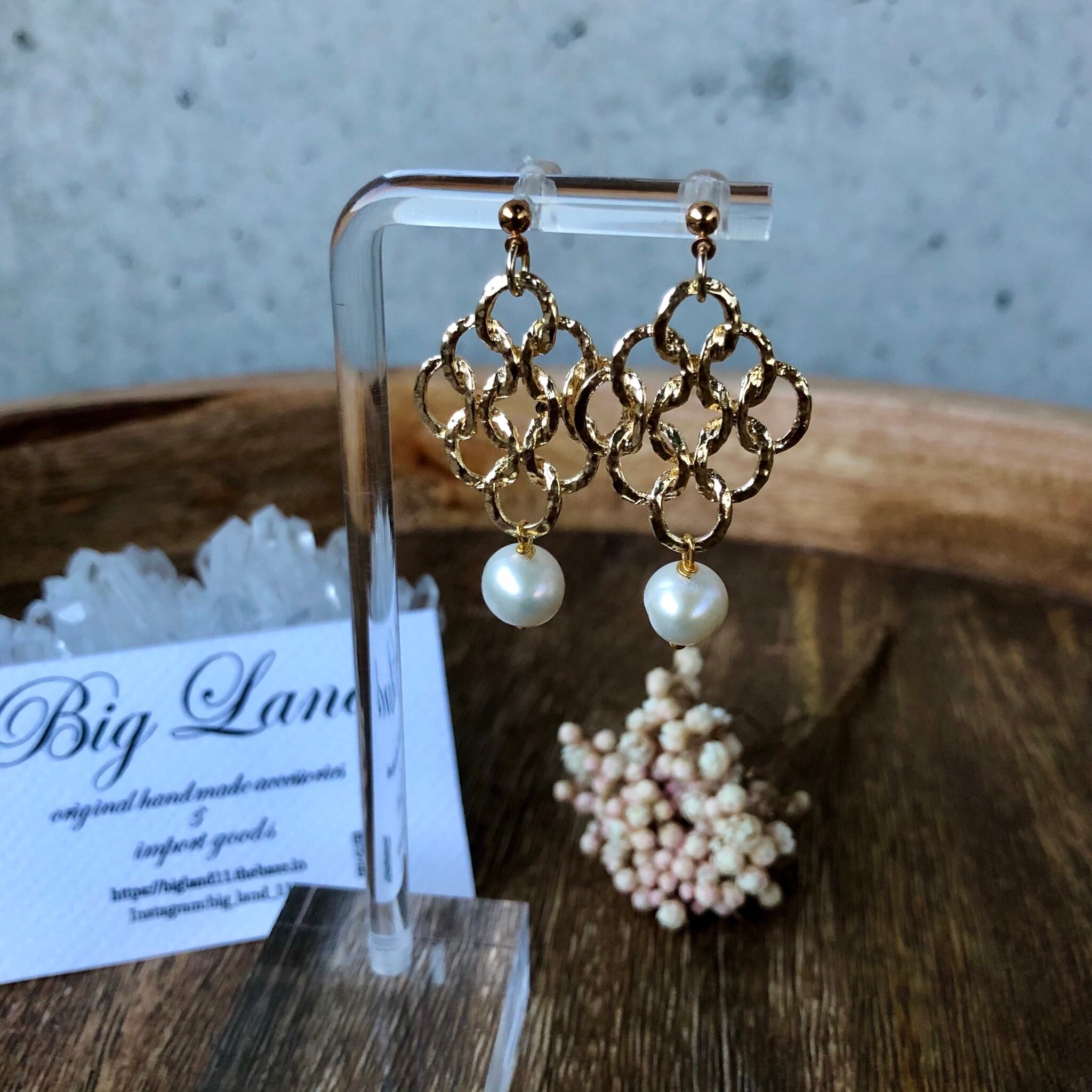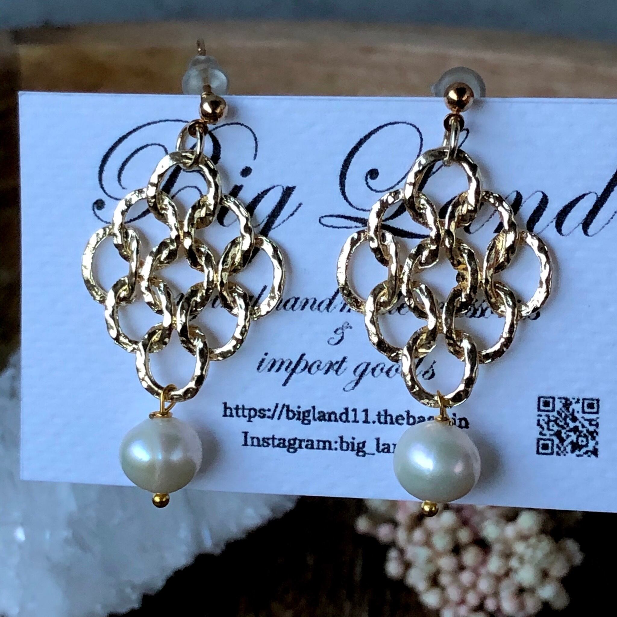 ゴールドとホワイトパールの組み合わせはどんなお洋服にも合わせ易い色合いで、夏になるとホワイトコーデが多くなるので、ワントーンコーデのアイテムに‼︎